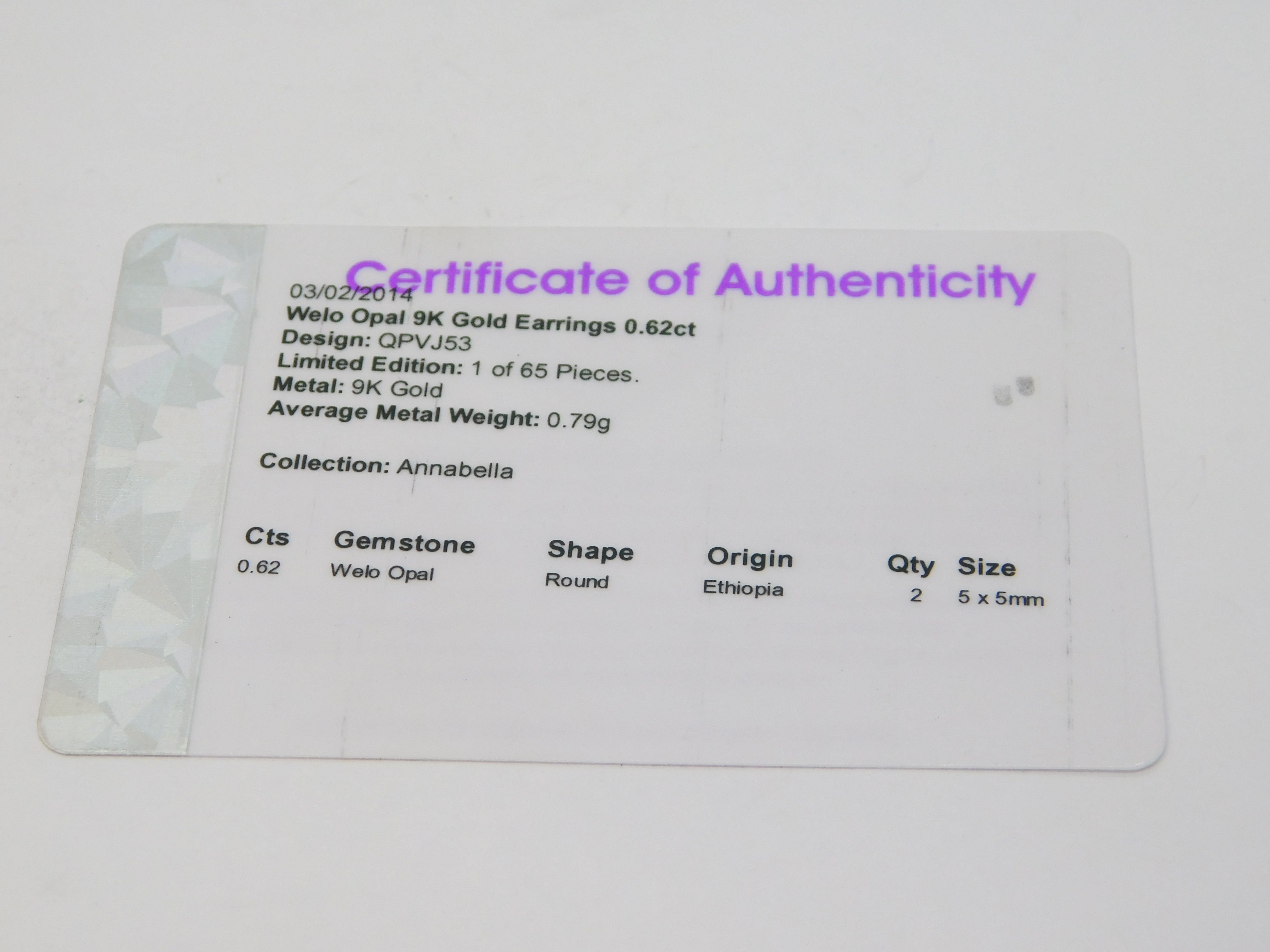 Details: A fantastic and wonderfully designed vintage 9ct yellow gold & 0.6ct welo opal stud earrings with lovely detailing included with the original authentication certificate. This is a wonderful item that would make a perfect gift or addition to any collection. We are more than happy to provide XRF reports for items upon request.