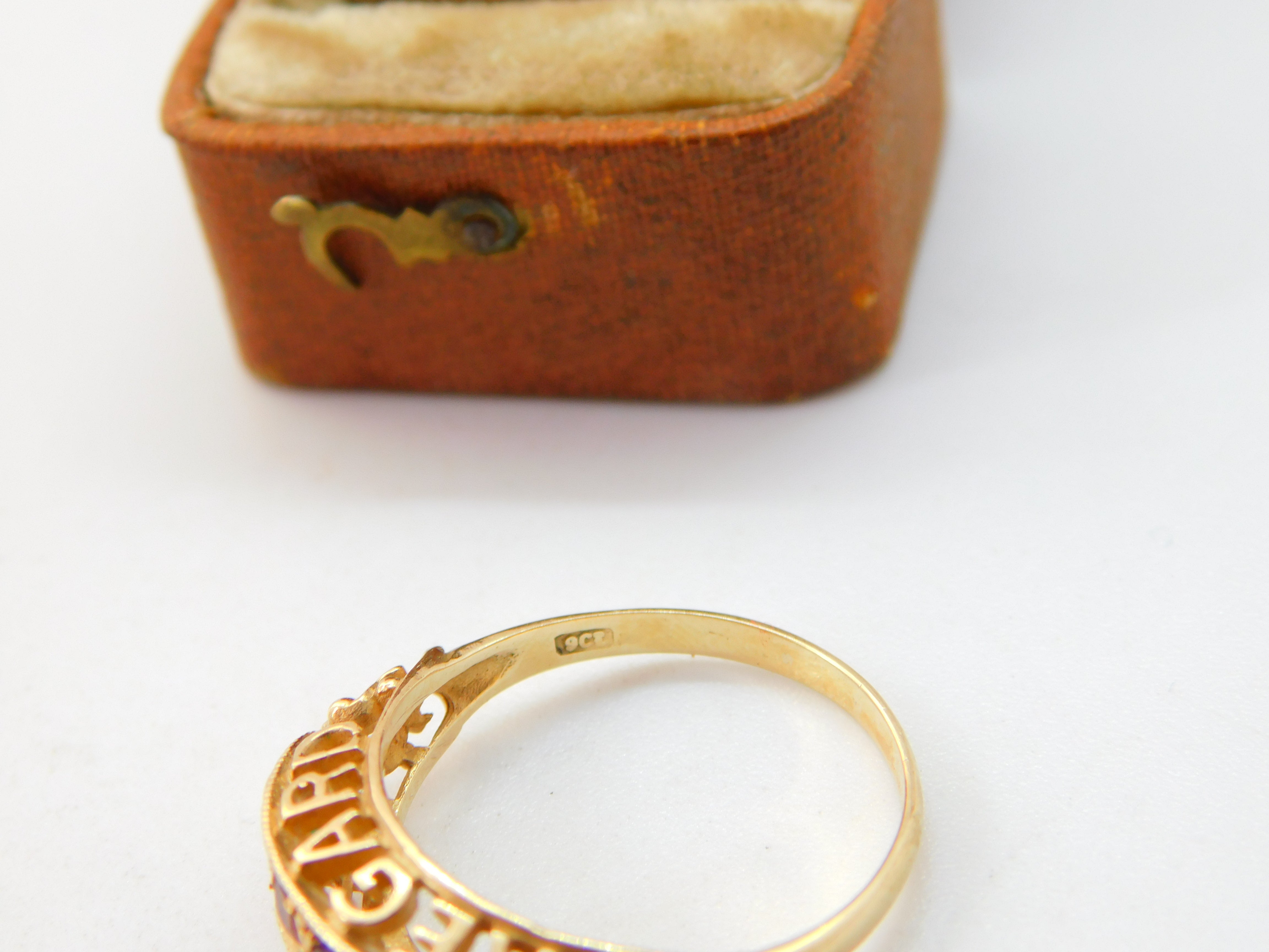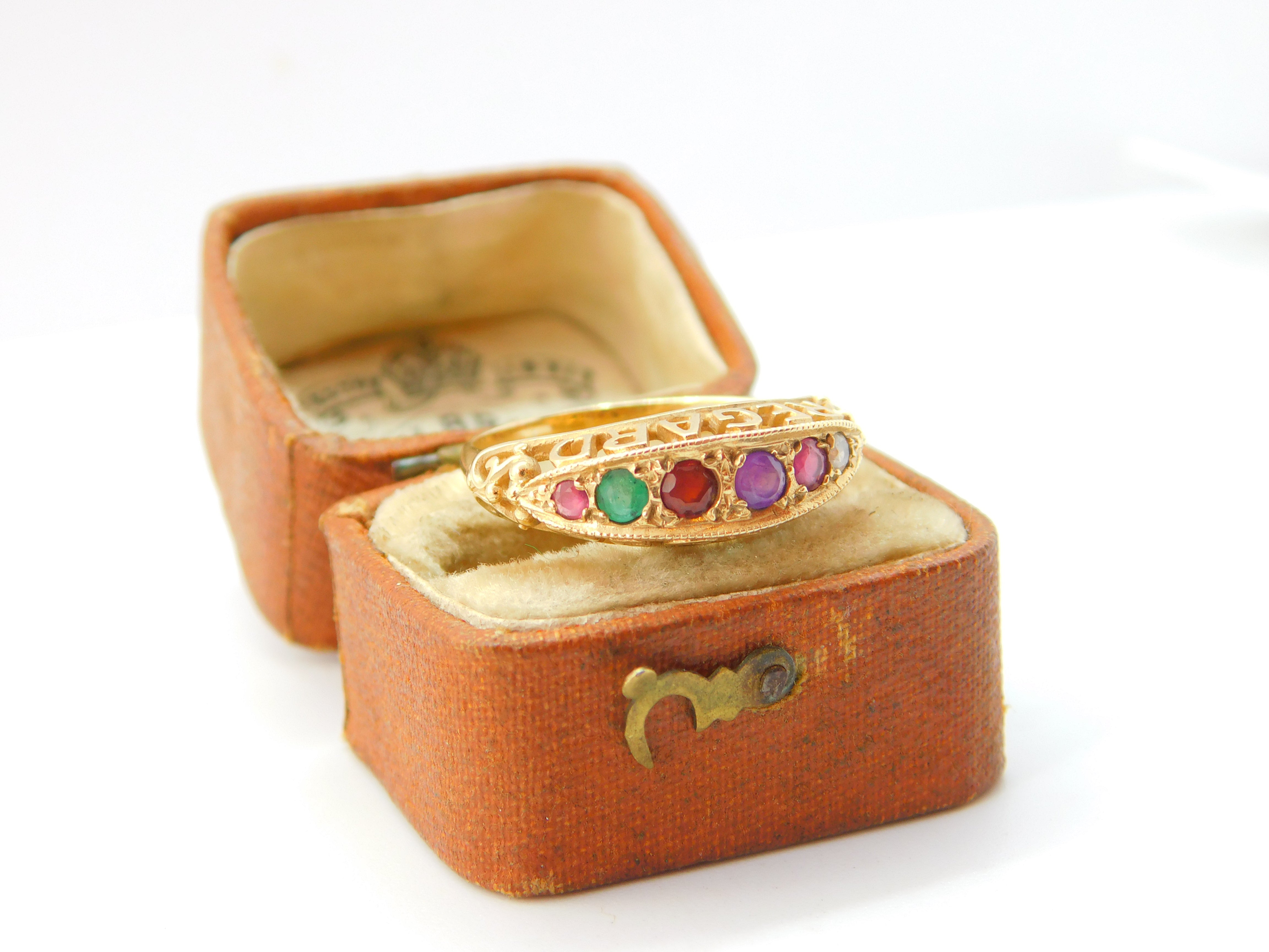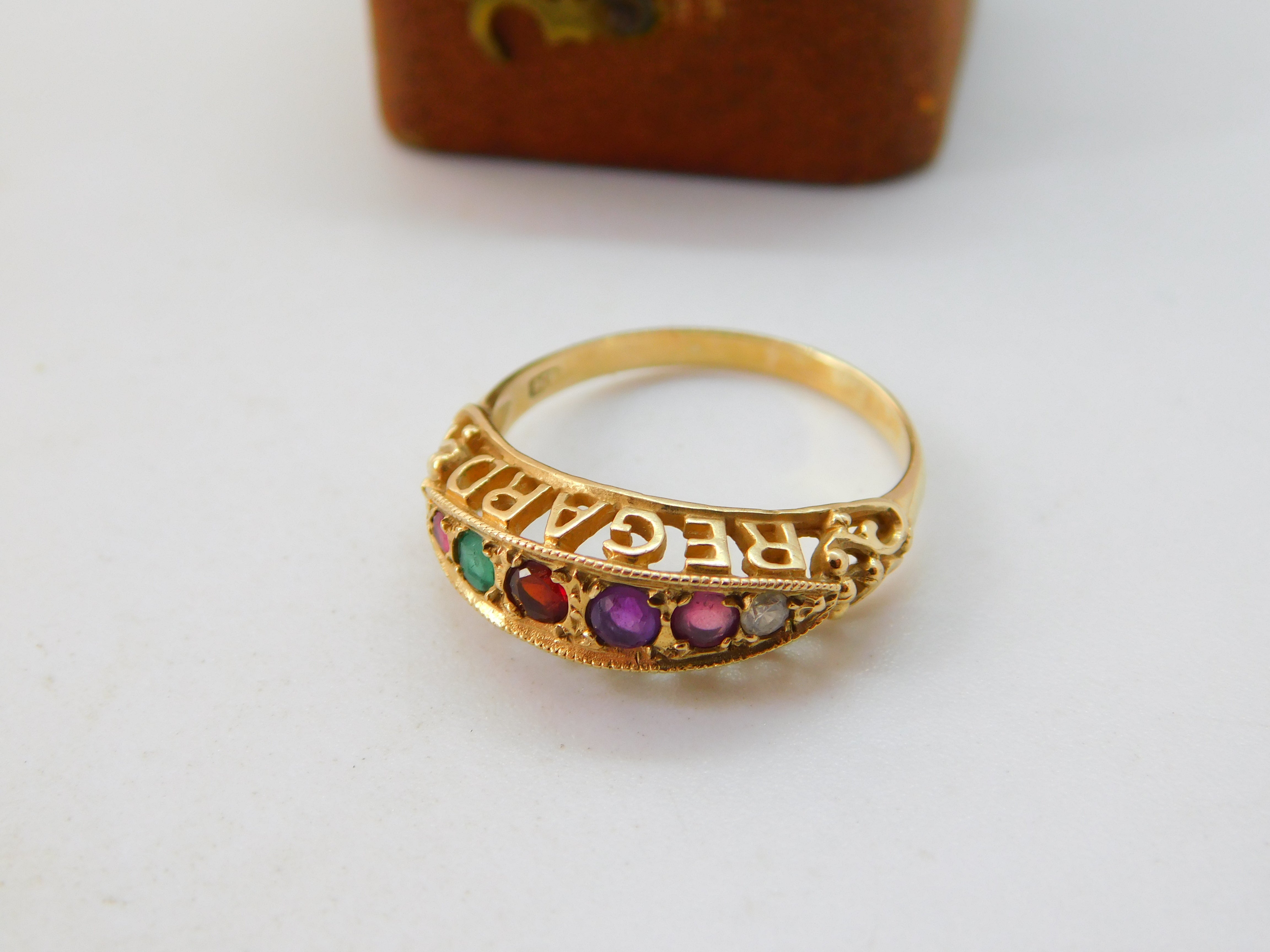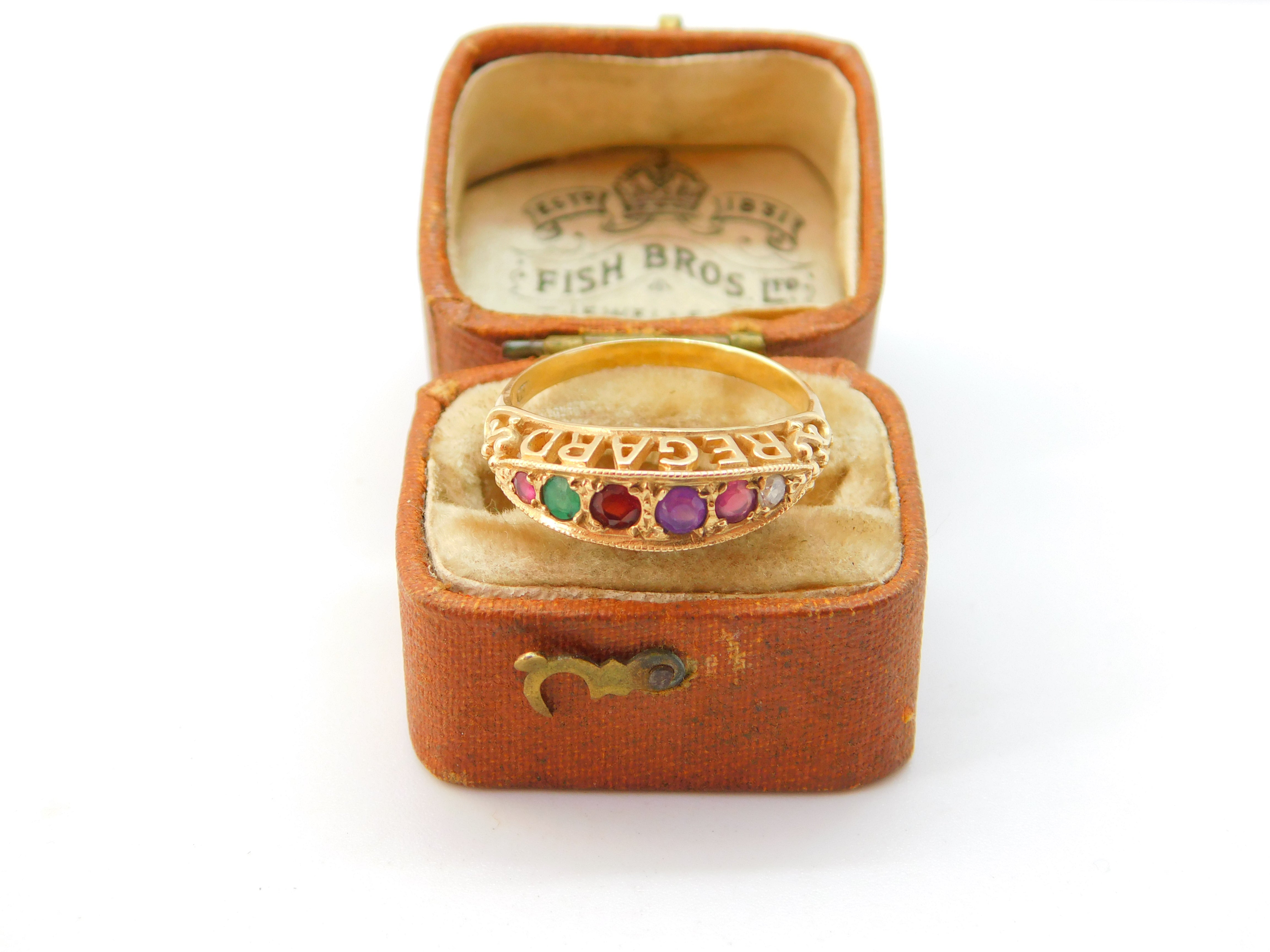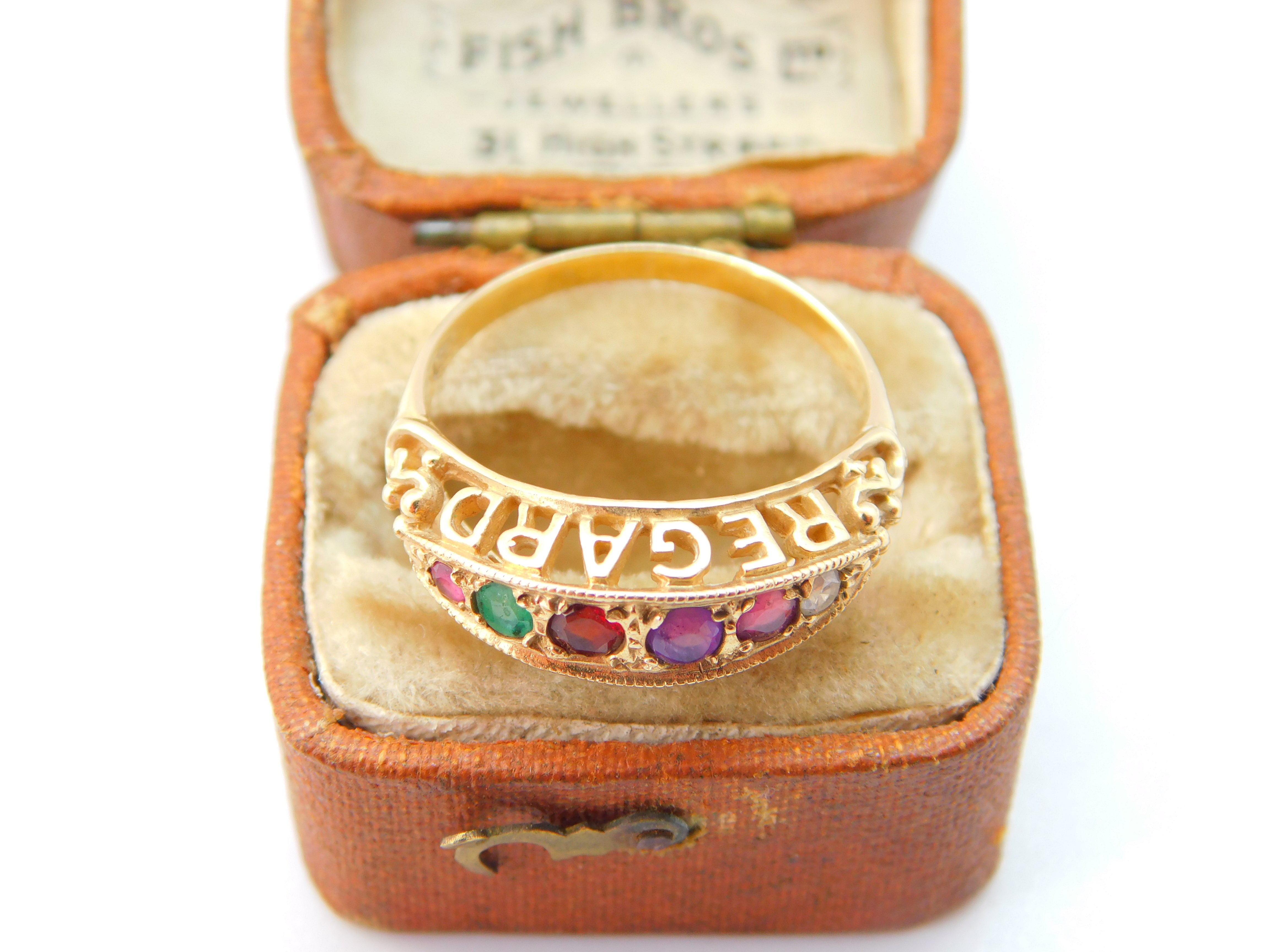 9ct Yellow Gold Acrostic Ring Stones Spelling 'REGARD' Antique c1920 Art Deco