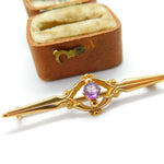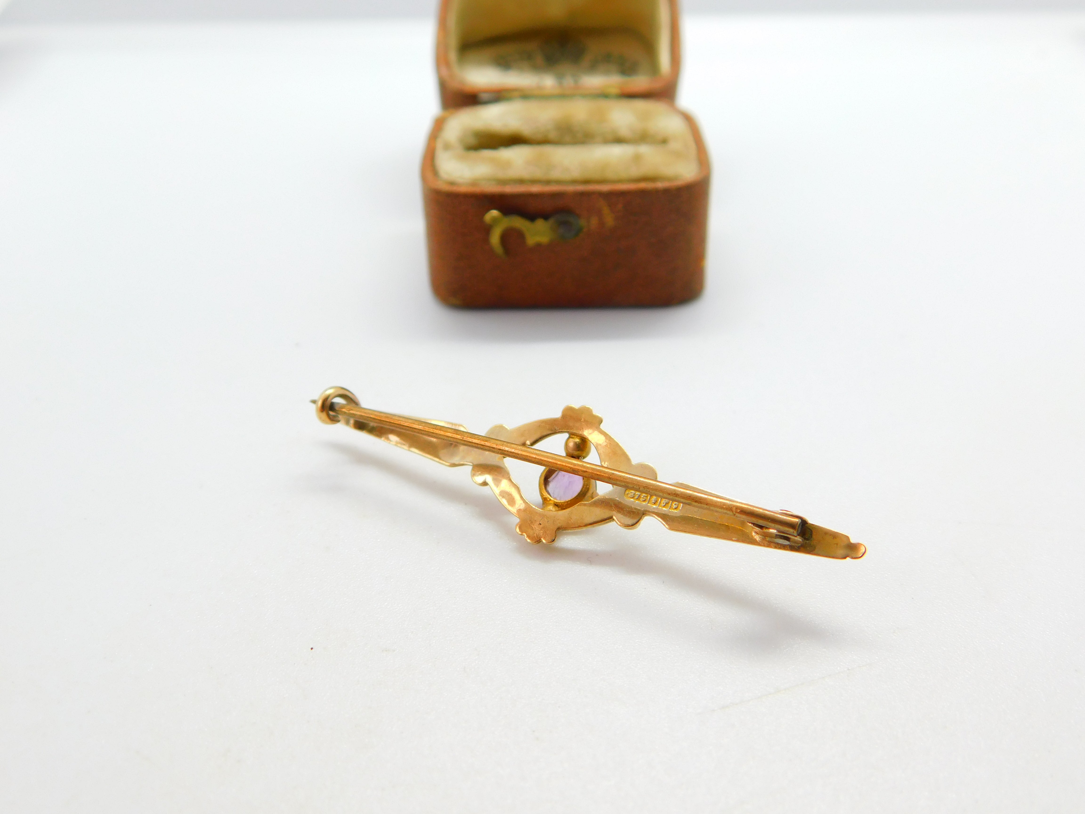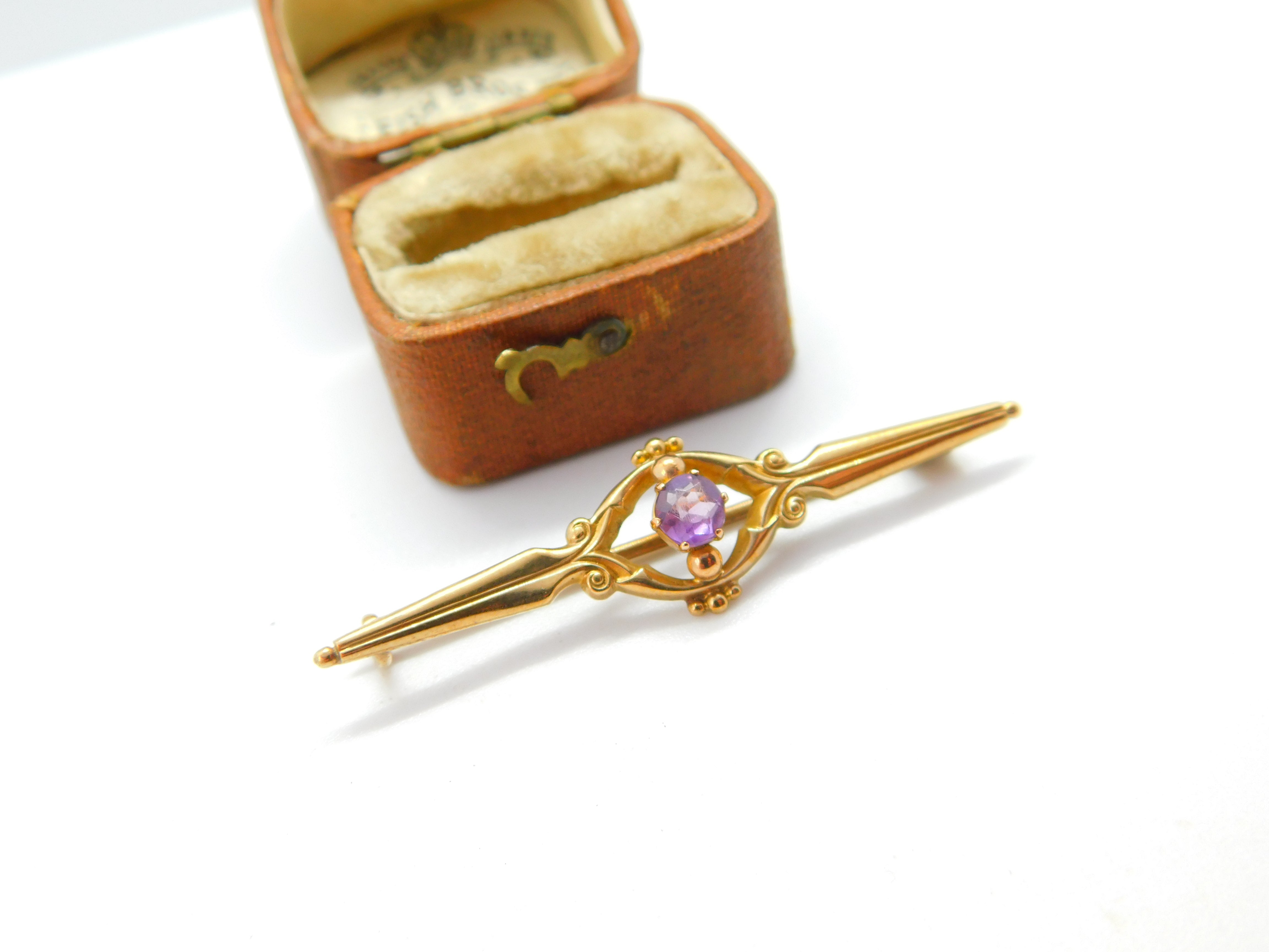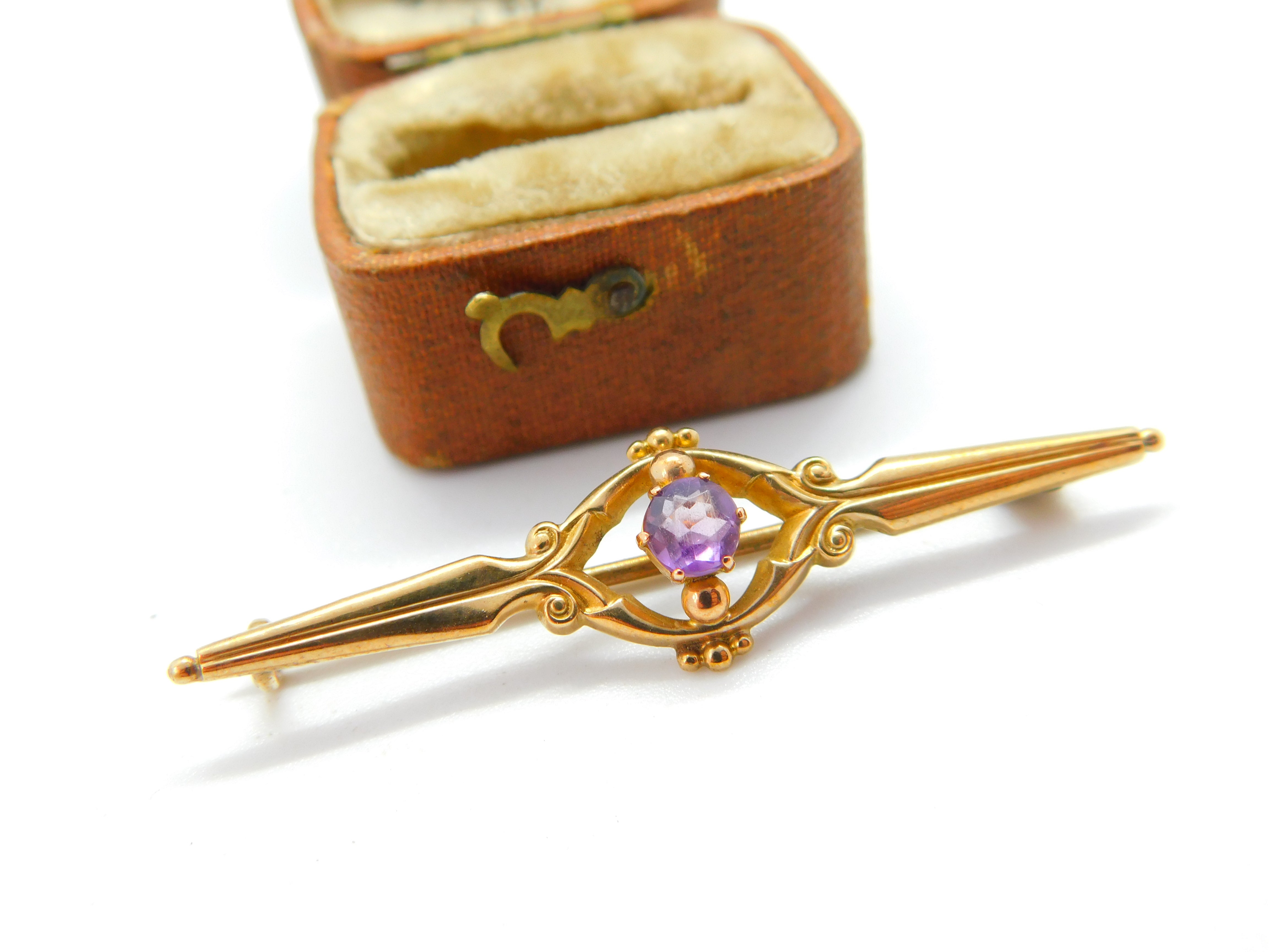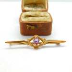 9ct Yellow Gold and Amethyst Set Bar Brooch 1933 Birmingham Vintage