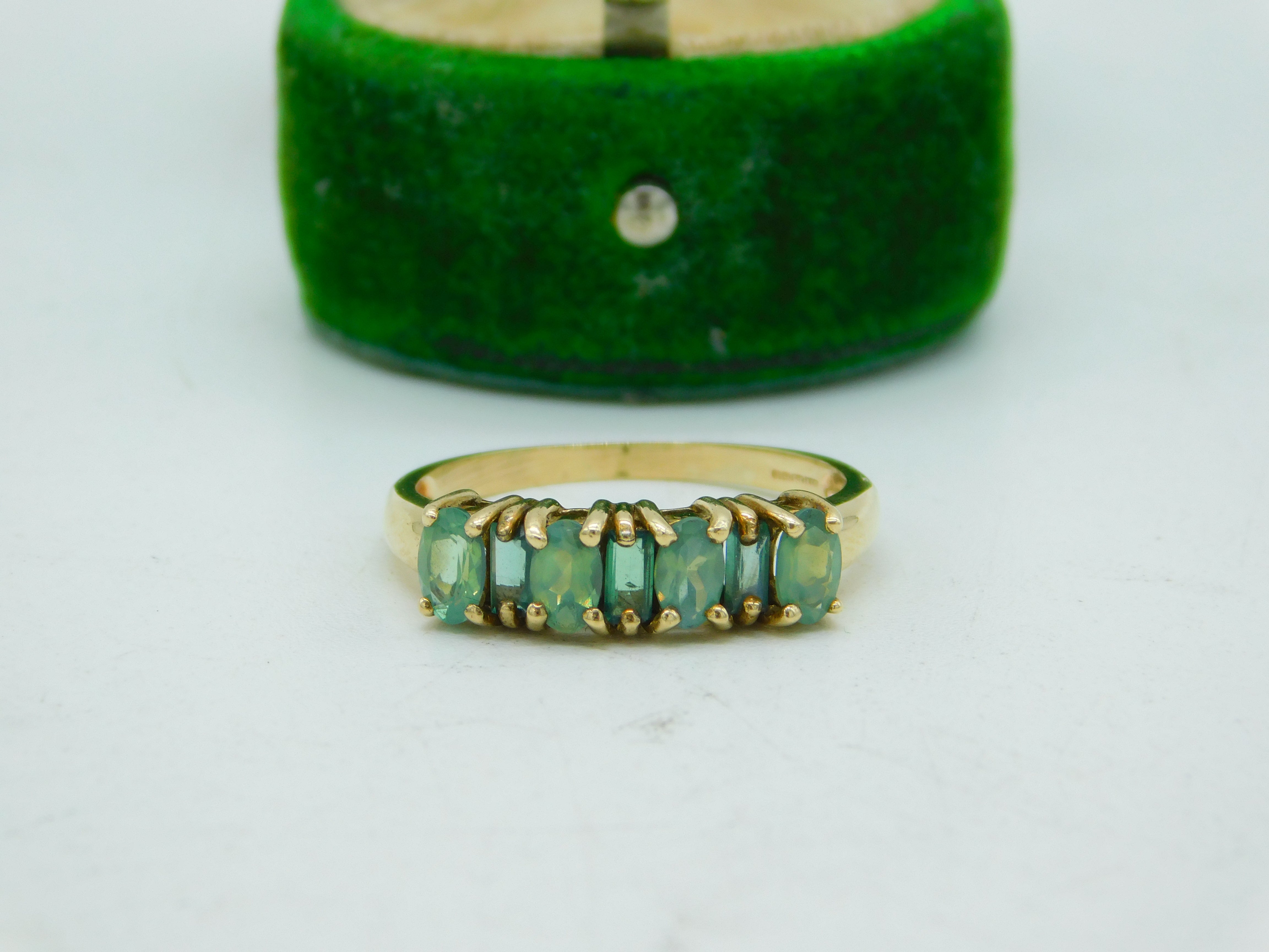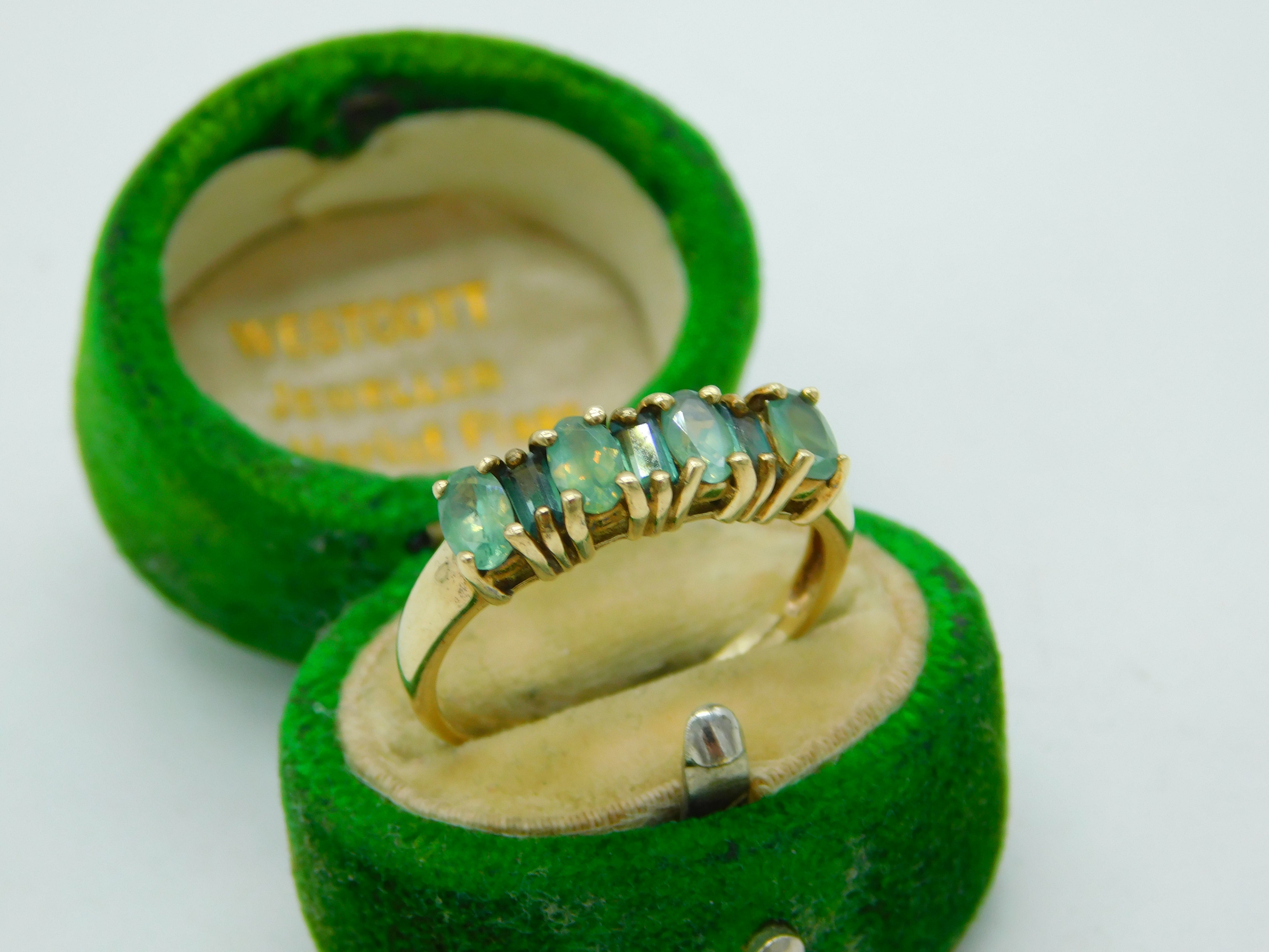 9ct Yellow Gold Baguette Cut Green Topaz Dress Ring Vintage 2005 Birmingham