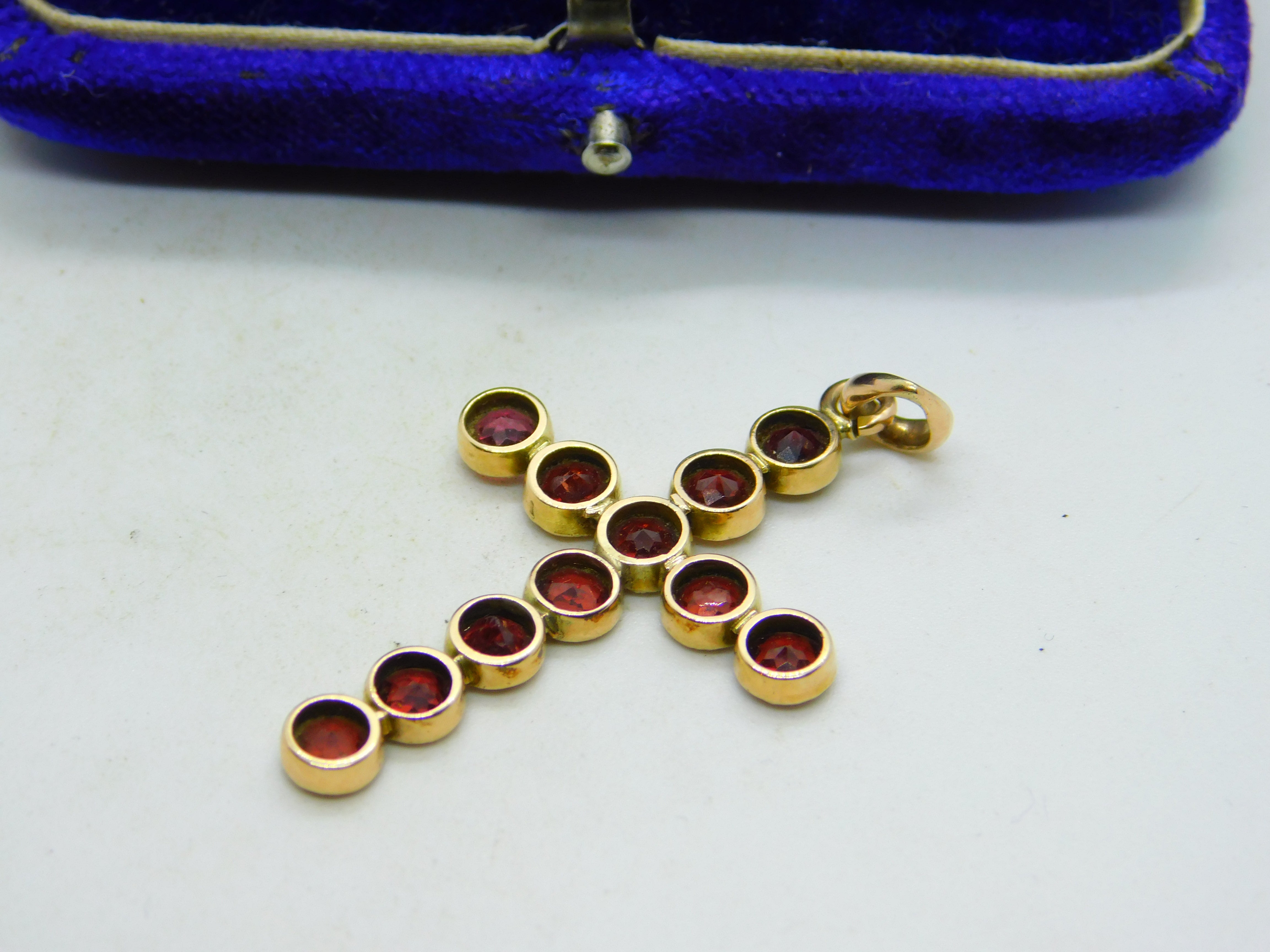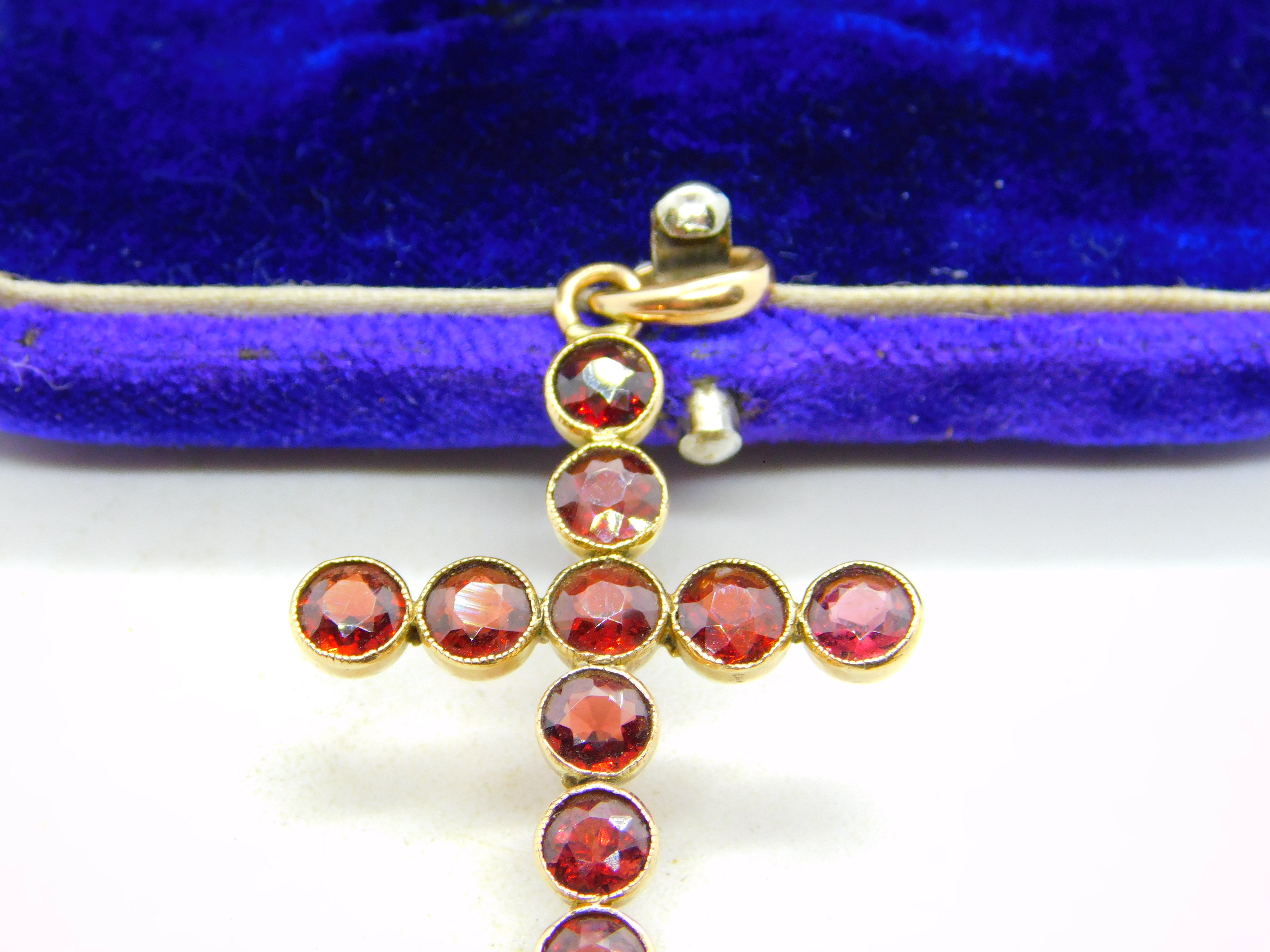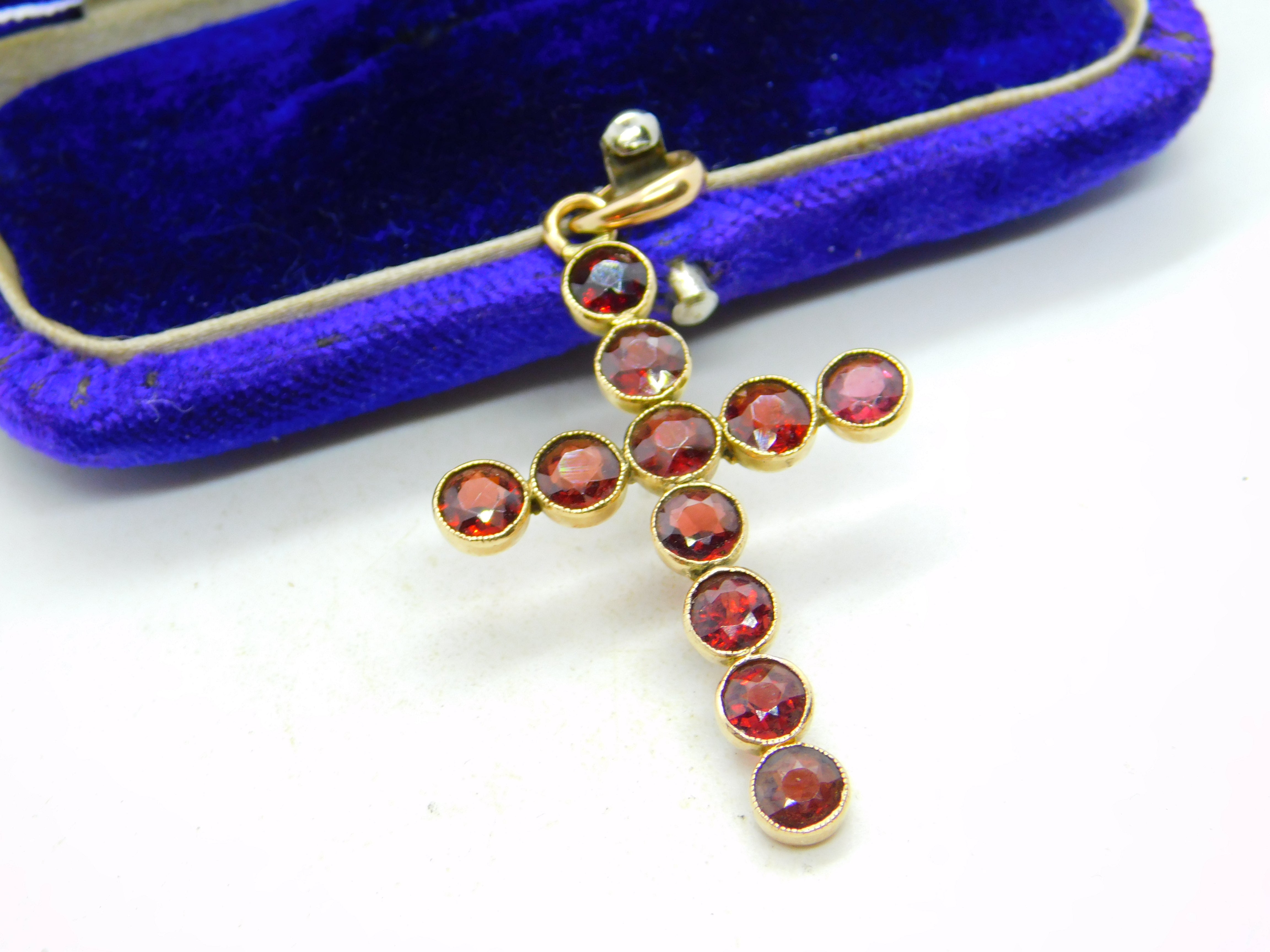 Details: A fantastic and wonderfully designed antique art deco 9ct yellow gold bohemian garnet cross pendant with lovely detailing hallmarked '9ct' to the bale c1920. This is a wonderful item that would make a perfect gift or addition to any collection. The BOX pictured is for PRESENTATION ONLY and is NOT included in the listings but used to frame the pictures unless specifically stated otherwise.