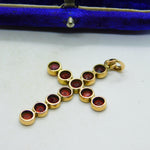9ct Yellow Gold Bohemian Garnet Set Cross Pendant Antique c1920 Art Deco