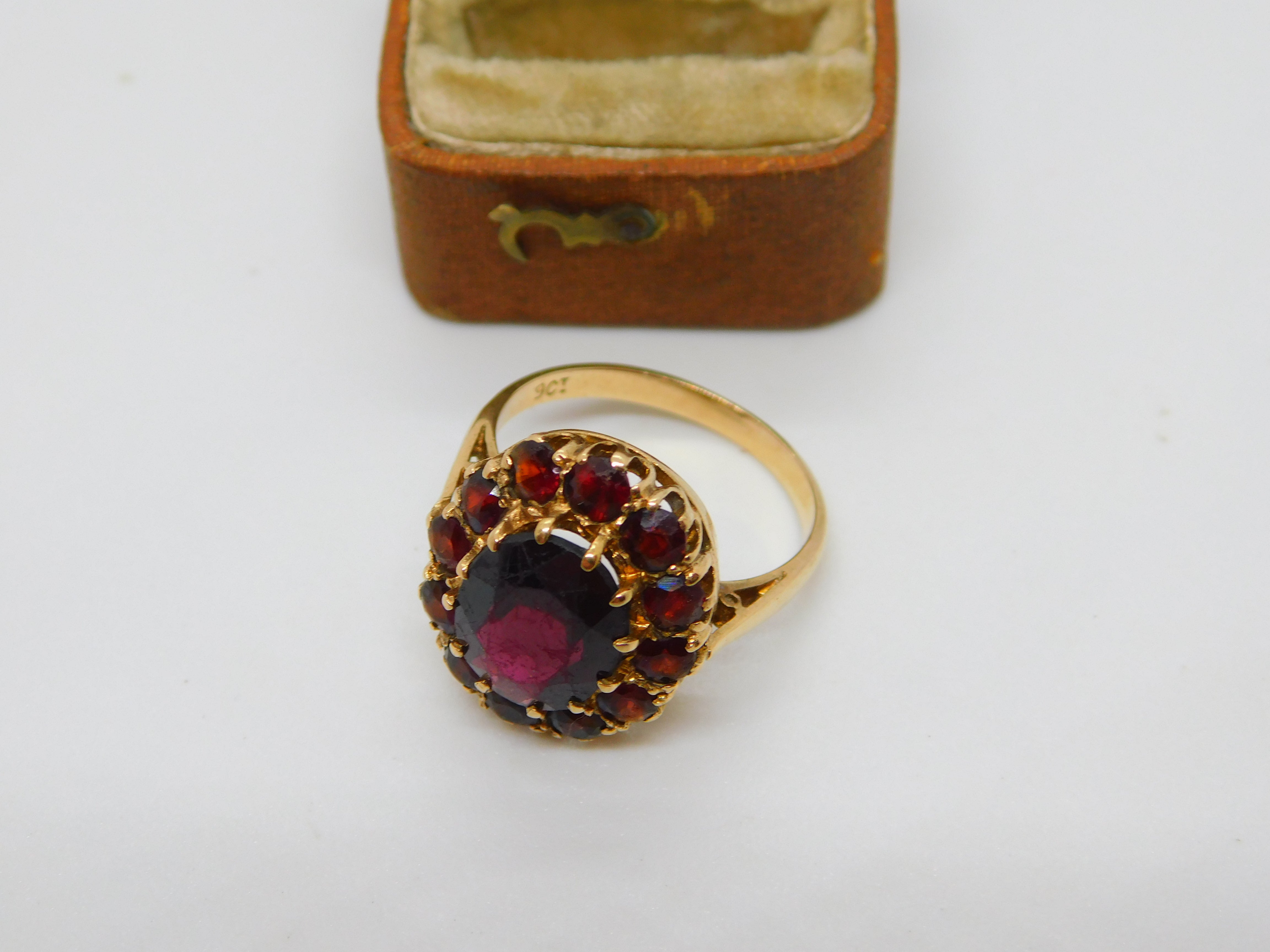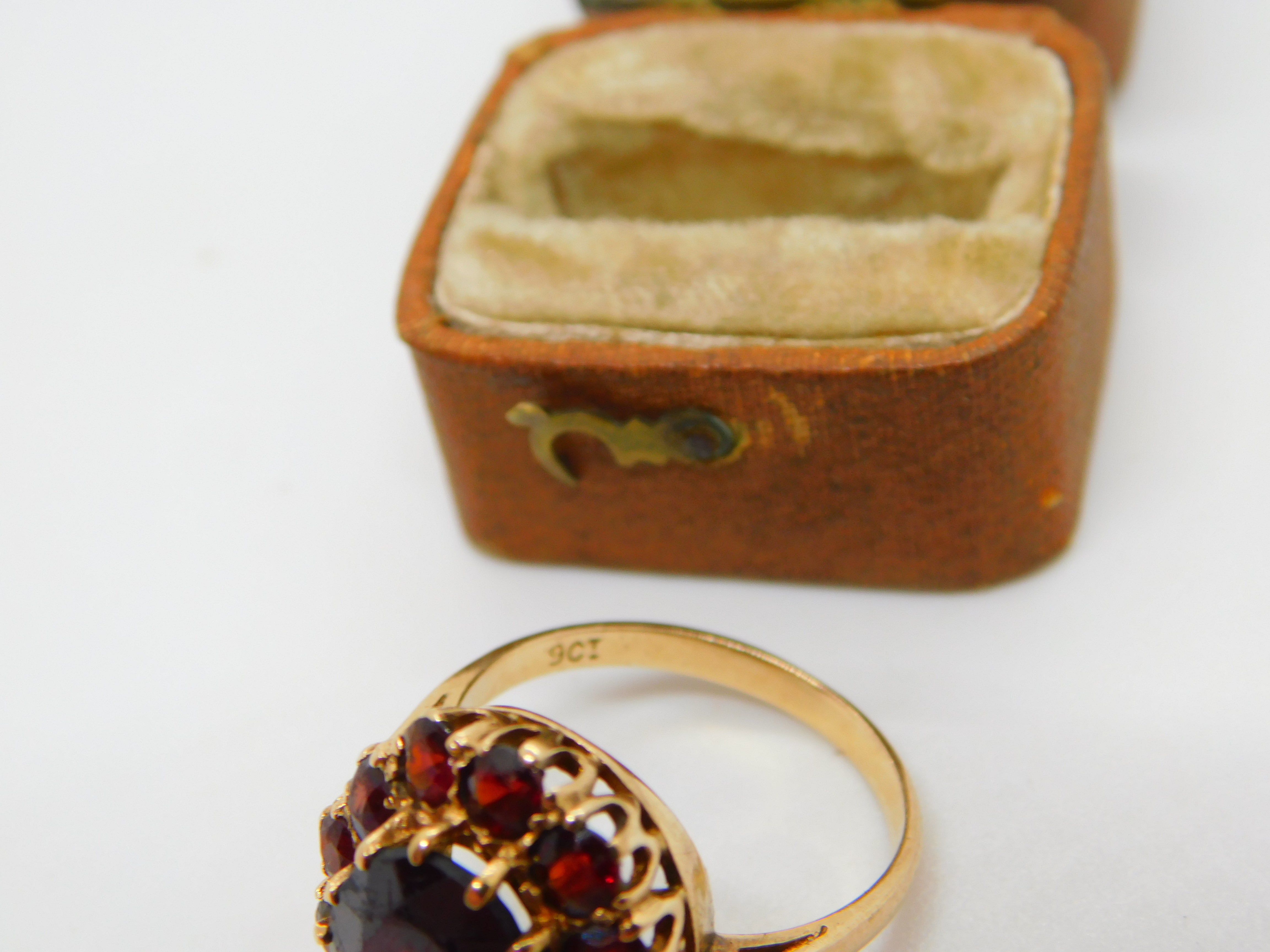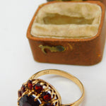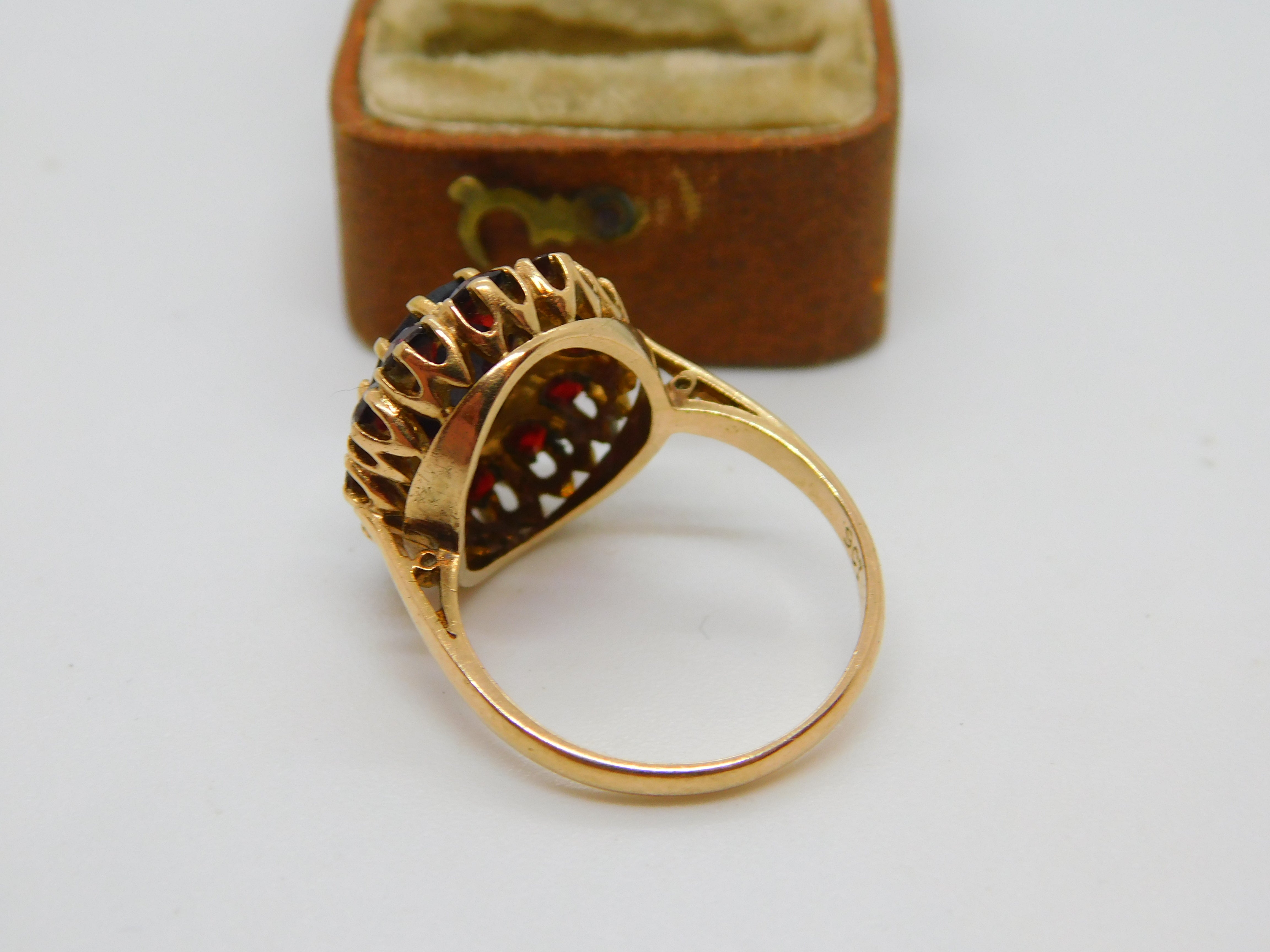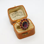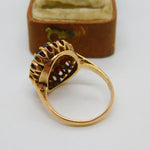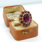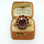 9ct Yellow Gold Bohemian Garnet Set Floral Cluster Ring Antique c1940 Art Deco