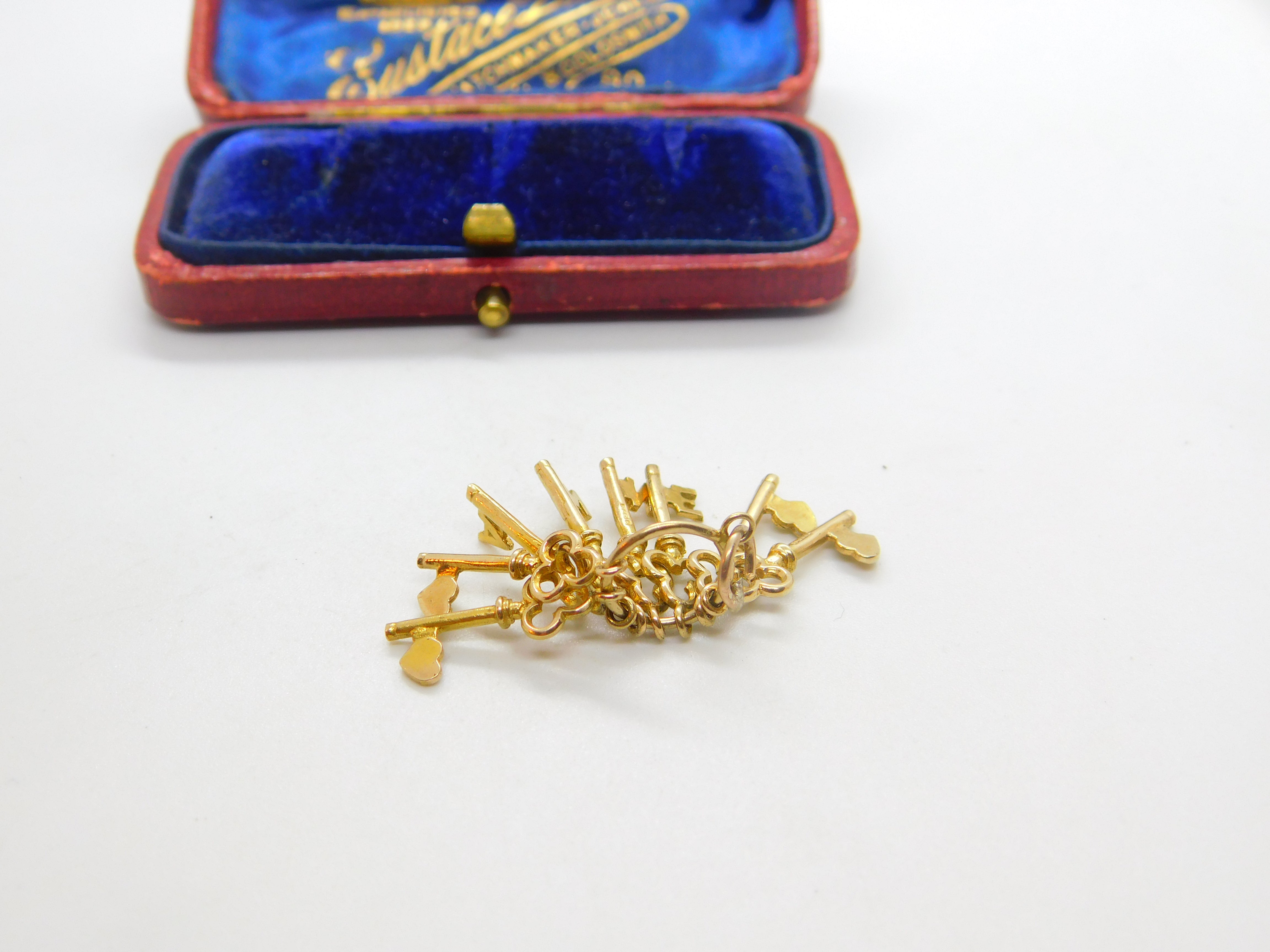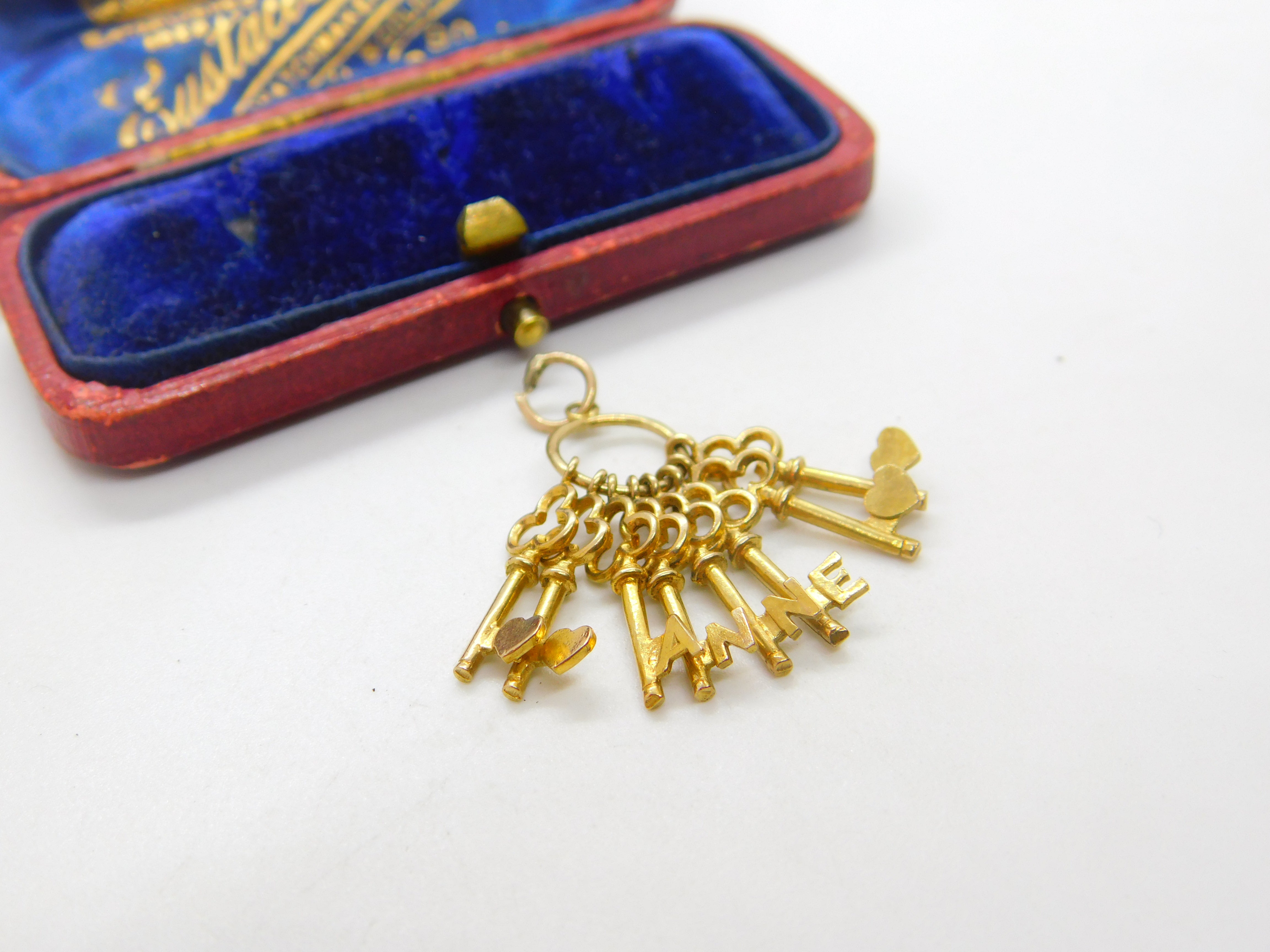 9ct Yellow Gold Bunch of Keys Charm Pendant 'Anne' Vintage 1971 Birmingham