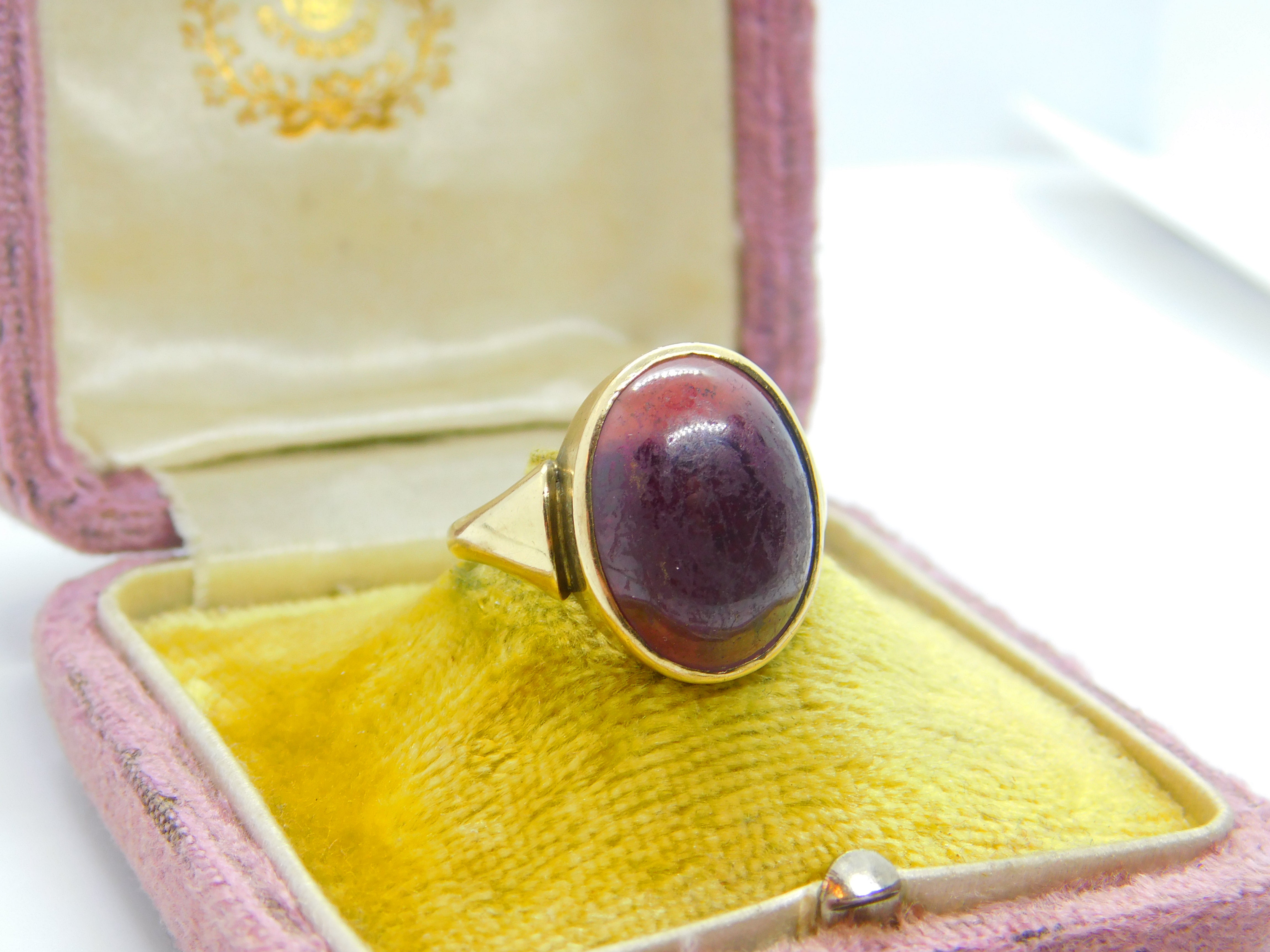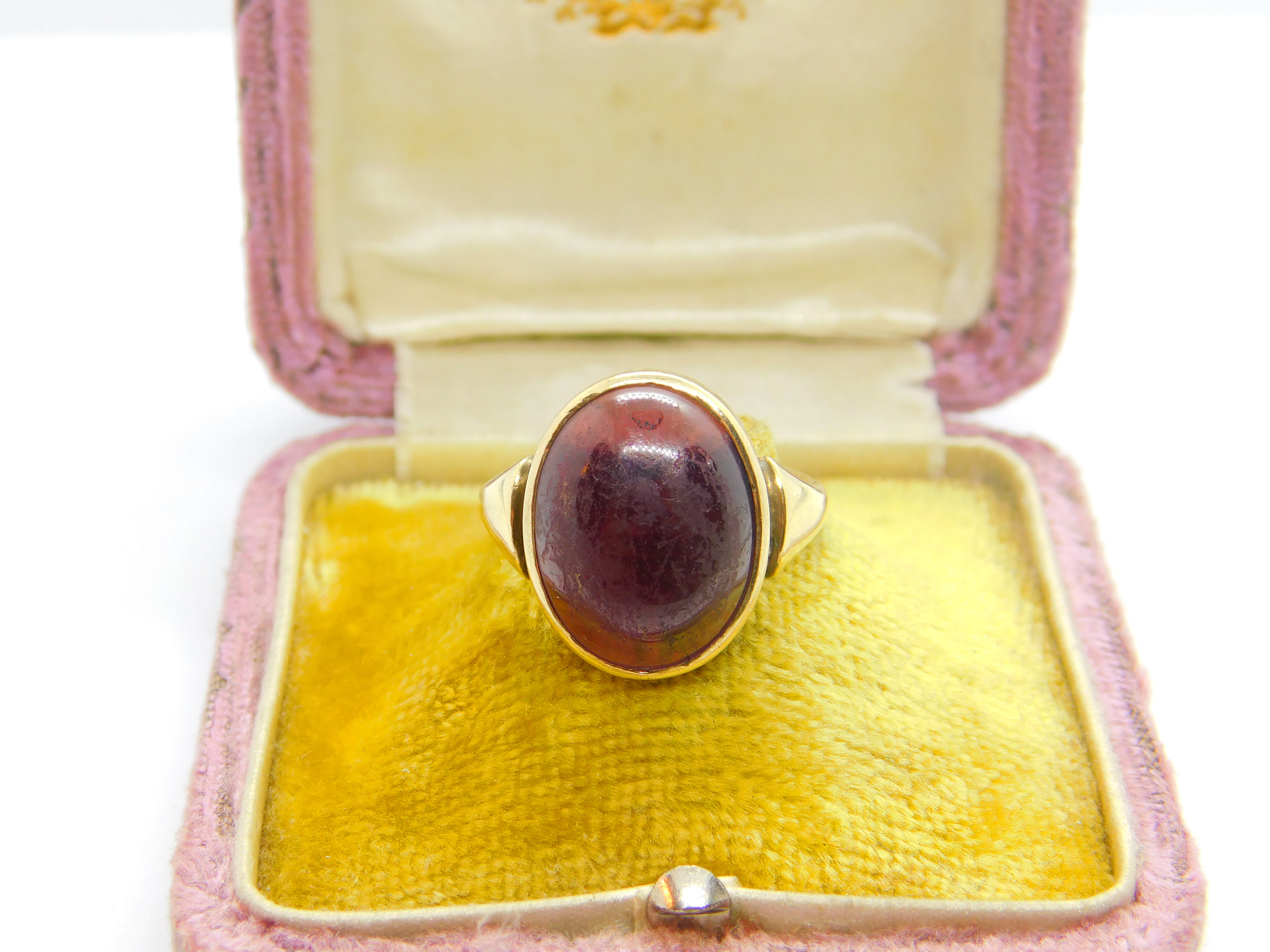 9ct Yellow Gold & Cabochon Almandine Garnet Dress Ring c1920 Art Deco