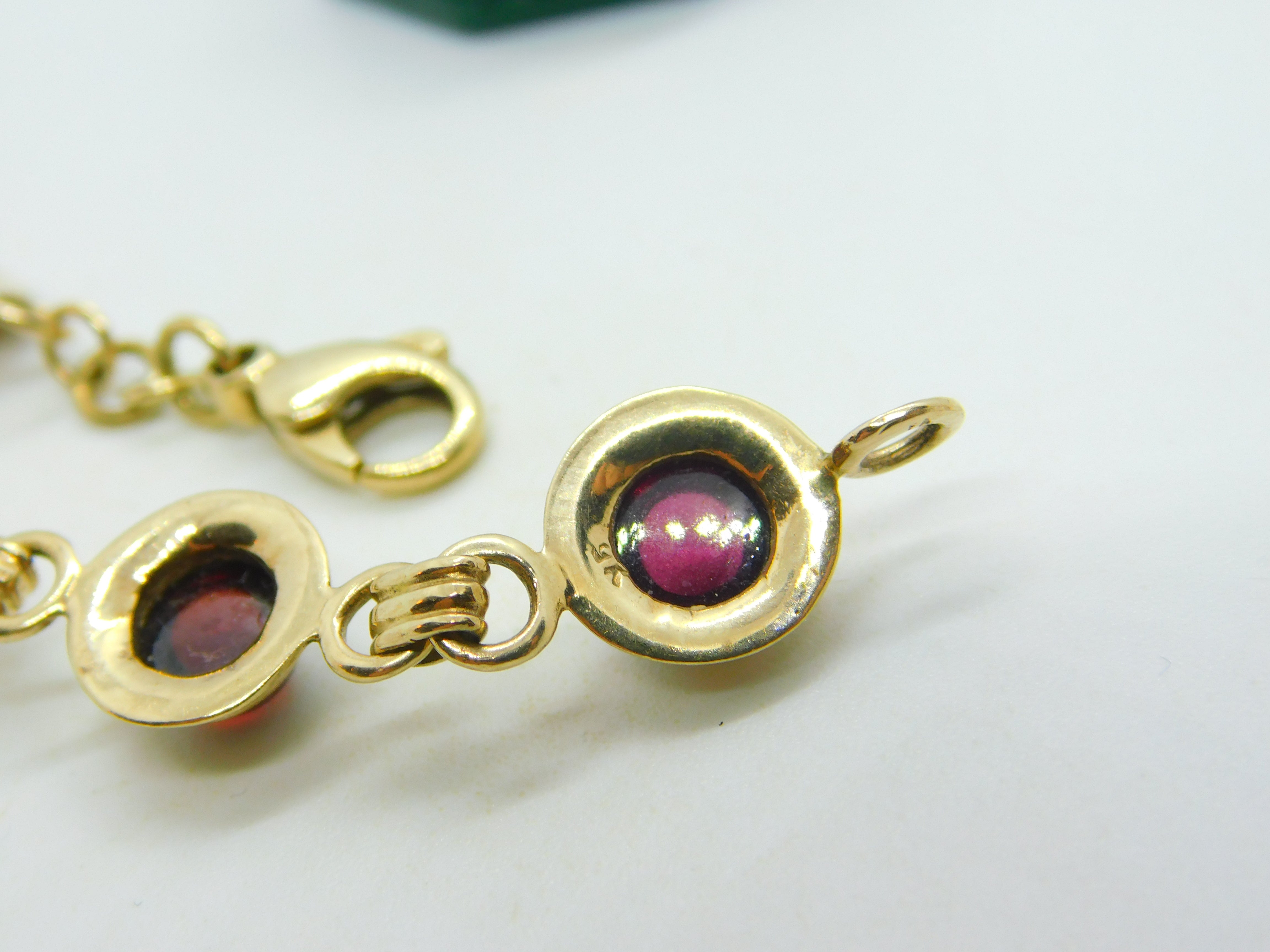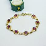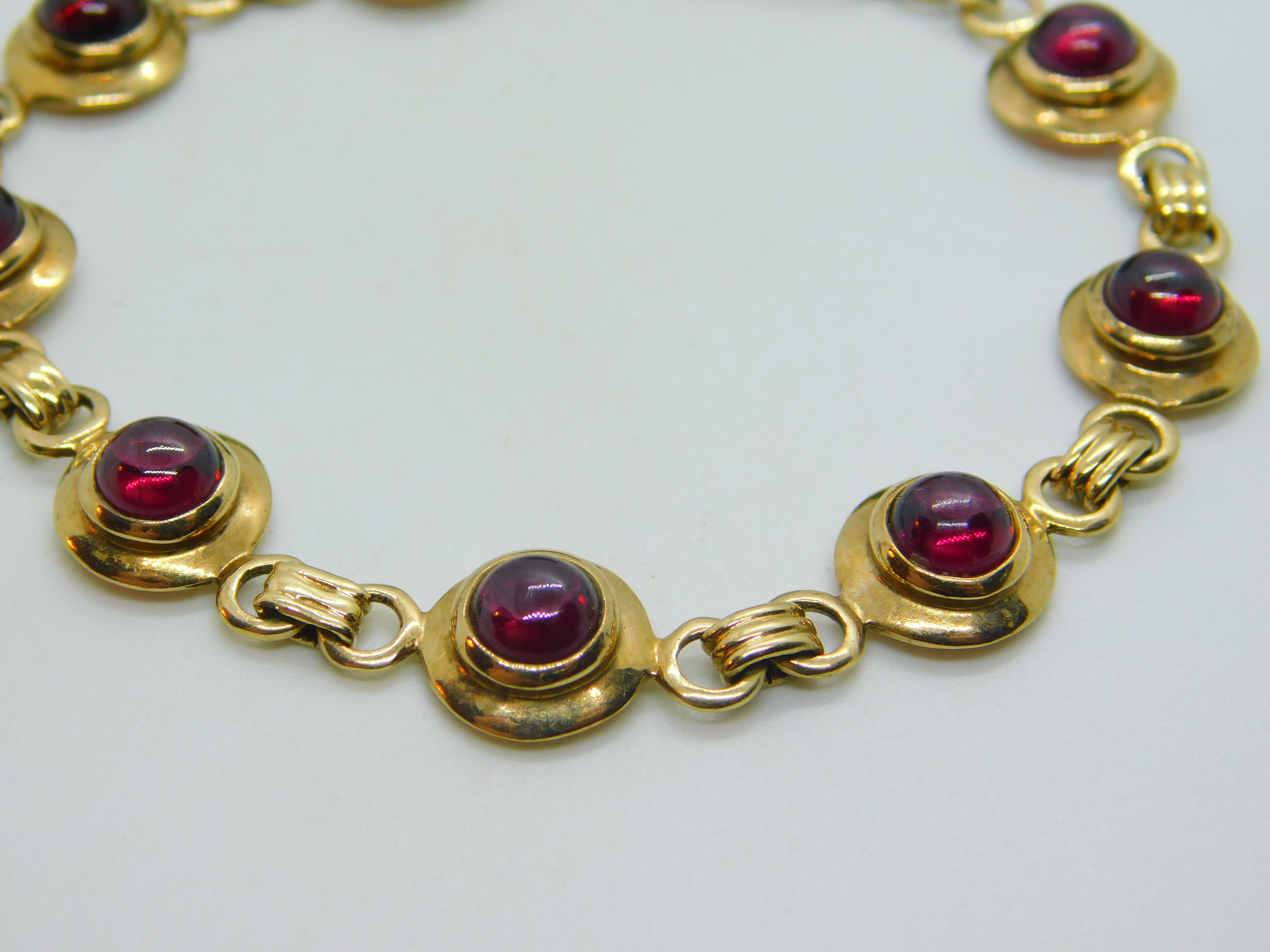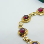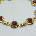 9ct Yellow Gold & Cabochon Almandine Garnet Panel Bracelet Vintage c1970