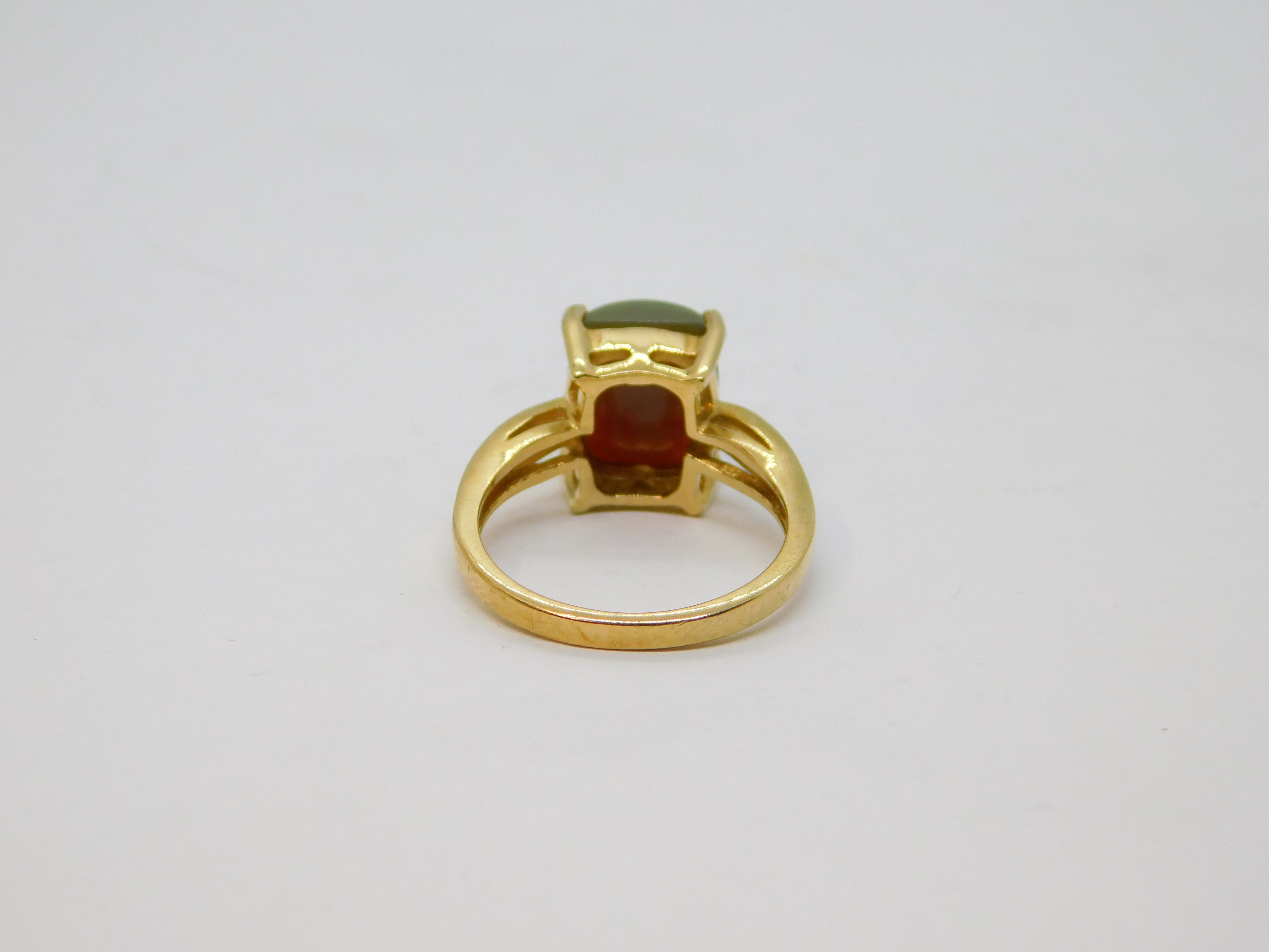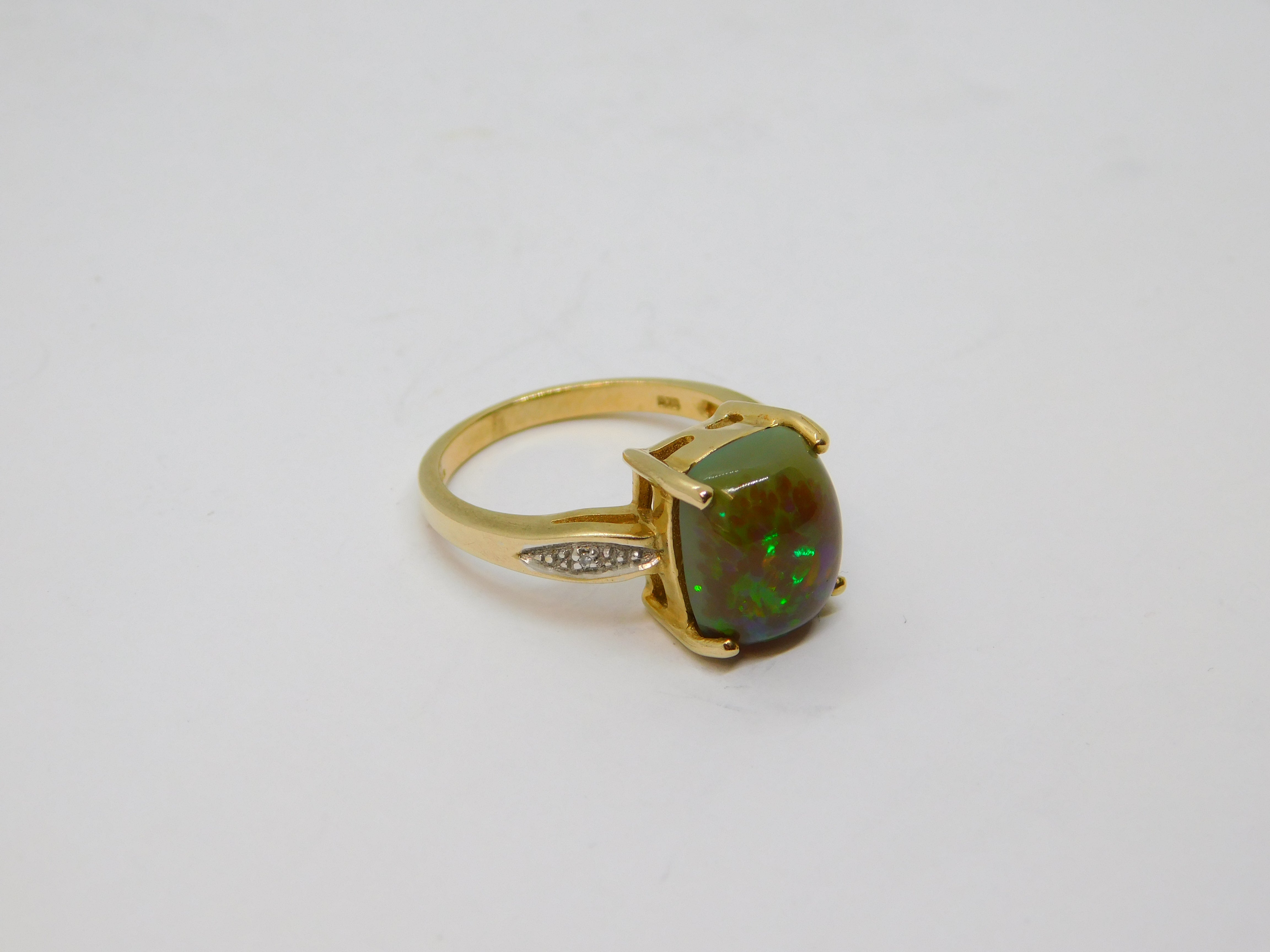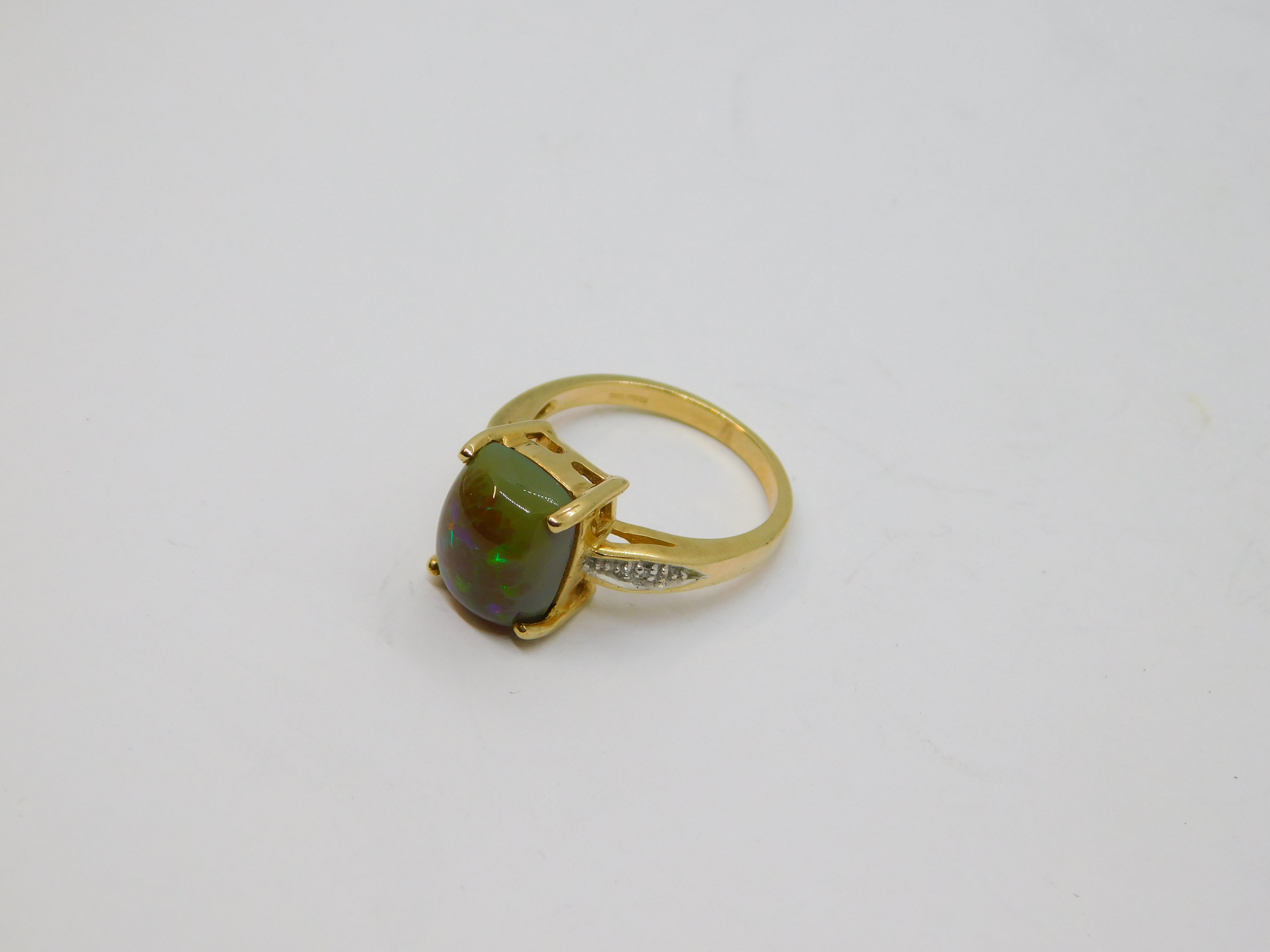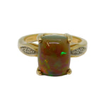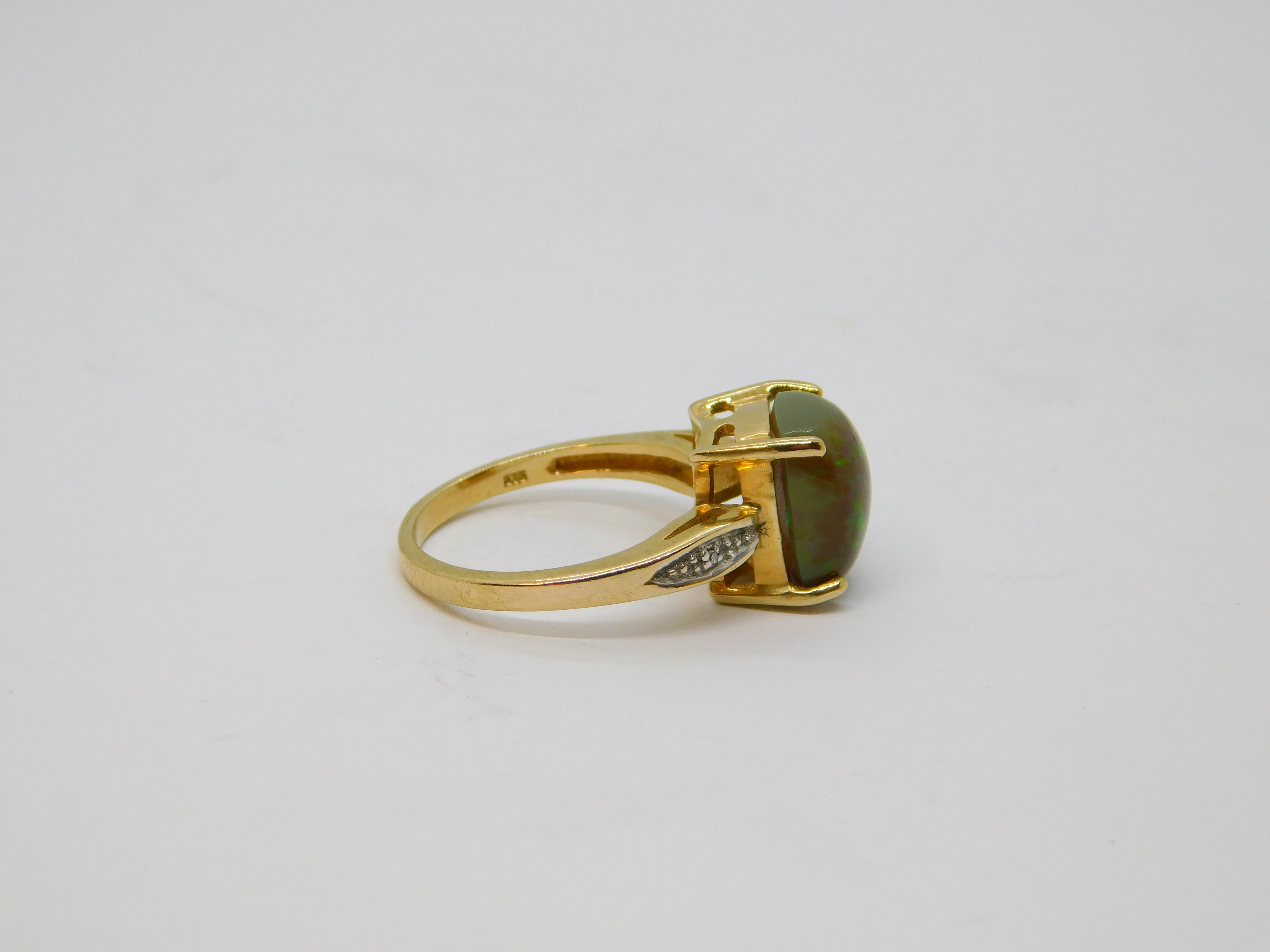 9ct Yellow Gold, Cabochon Boulder Opal & Diamond Dress Ring Vintage c1970