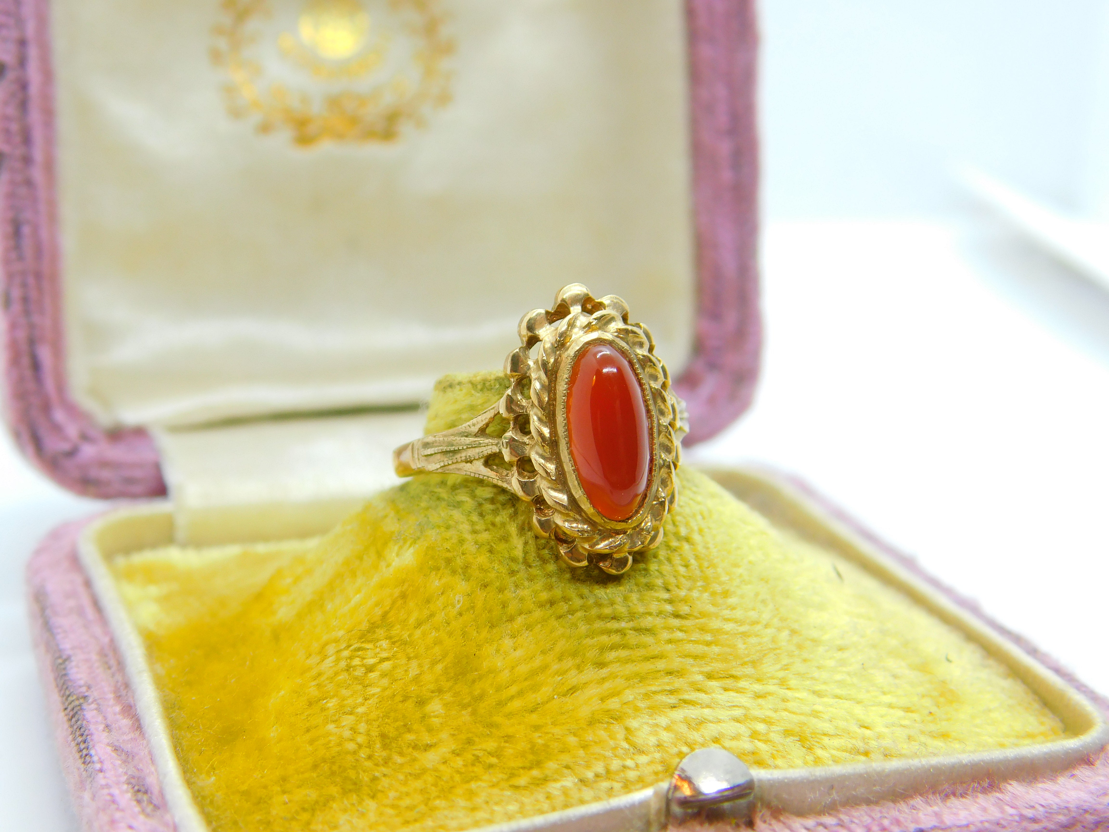 Details: A fantastic and wonderfully designed vintage 9ct yellow gold signet ring set with cabochon carnelian hallmarked Birmingham 1975. This is a wonderful item that would make a perfect gift or addition to any collection. The BOX pictured is for PRESENTATION ONLY and is NOT included in the listings but used to frame the pictures unless specifically stated otherwise.