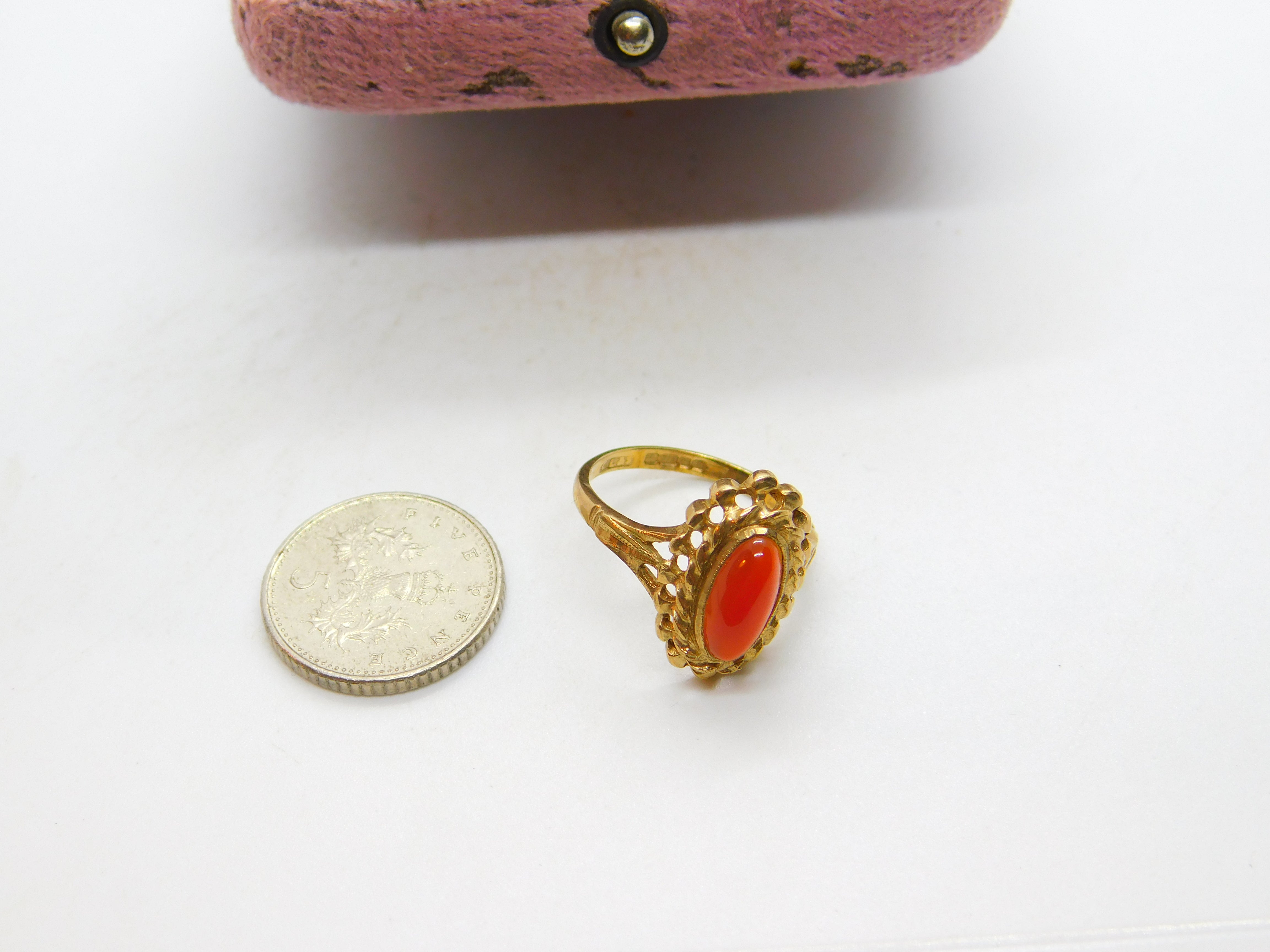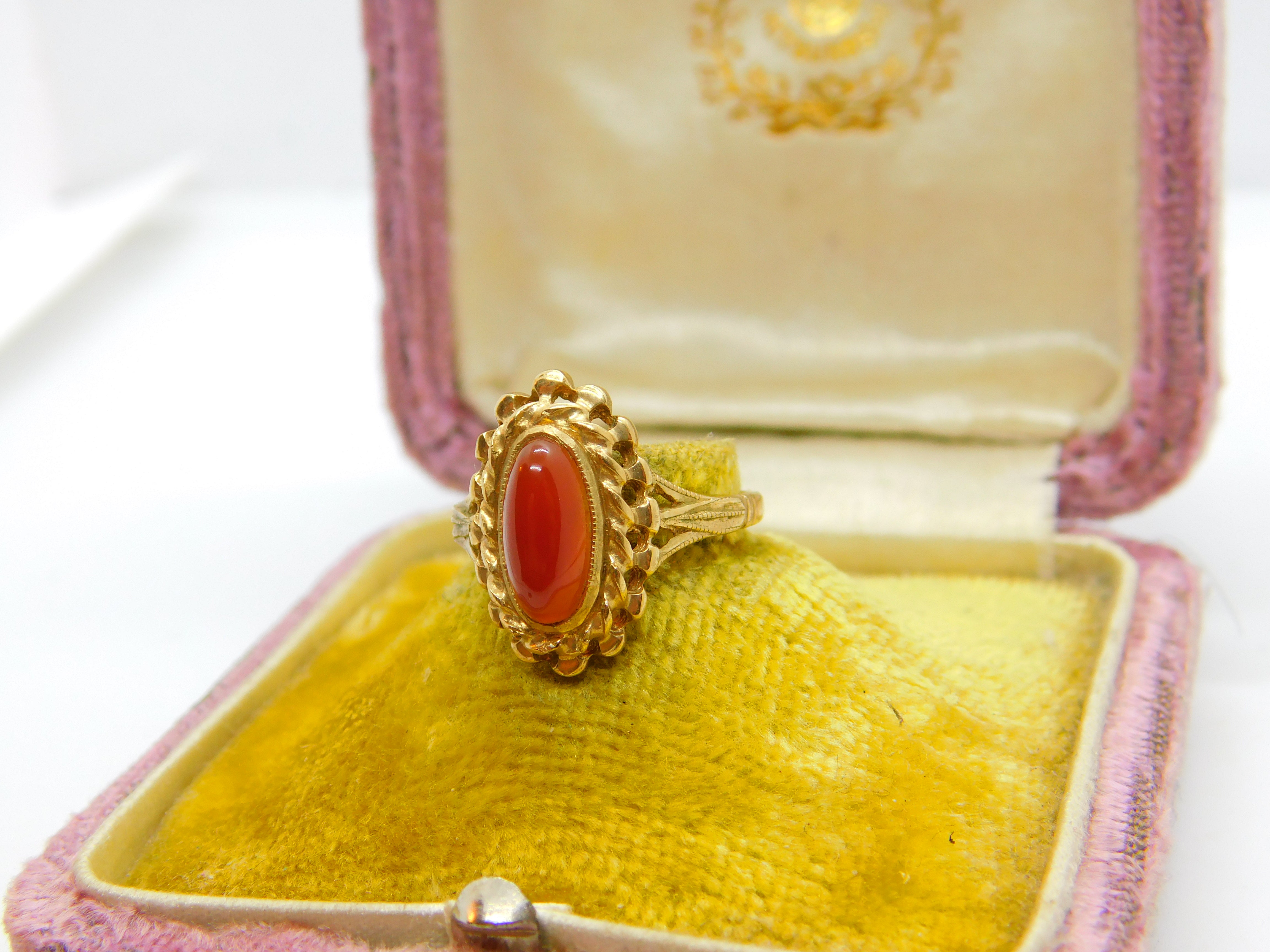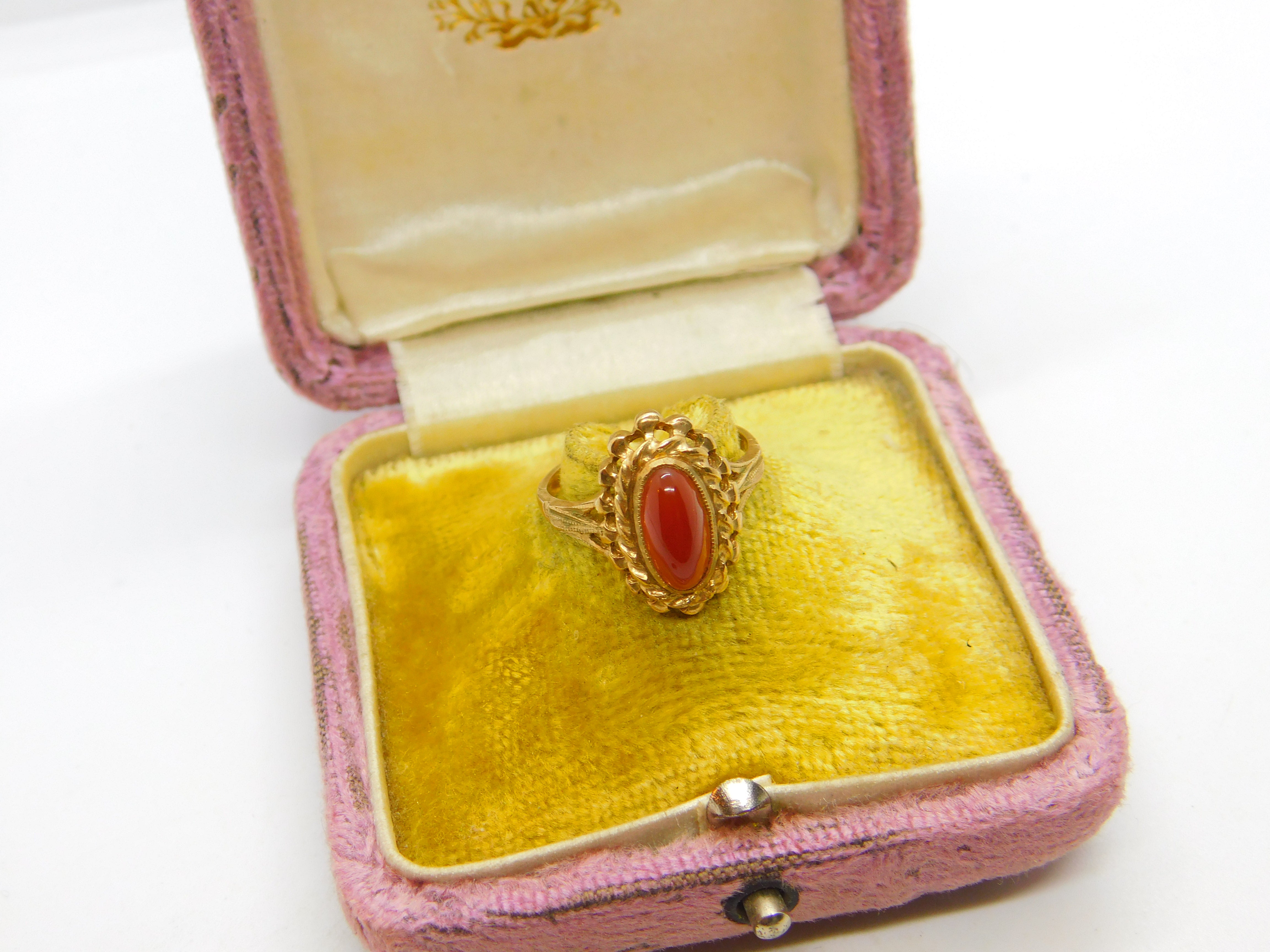 9ct Yellow Gold Cabochon Carnelian Set Signet Ring Vintage 1975 Birmingham