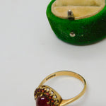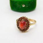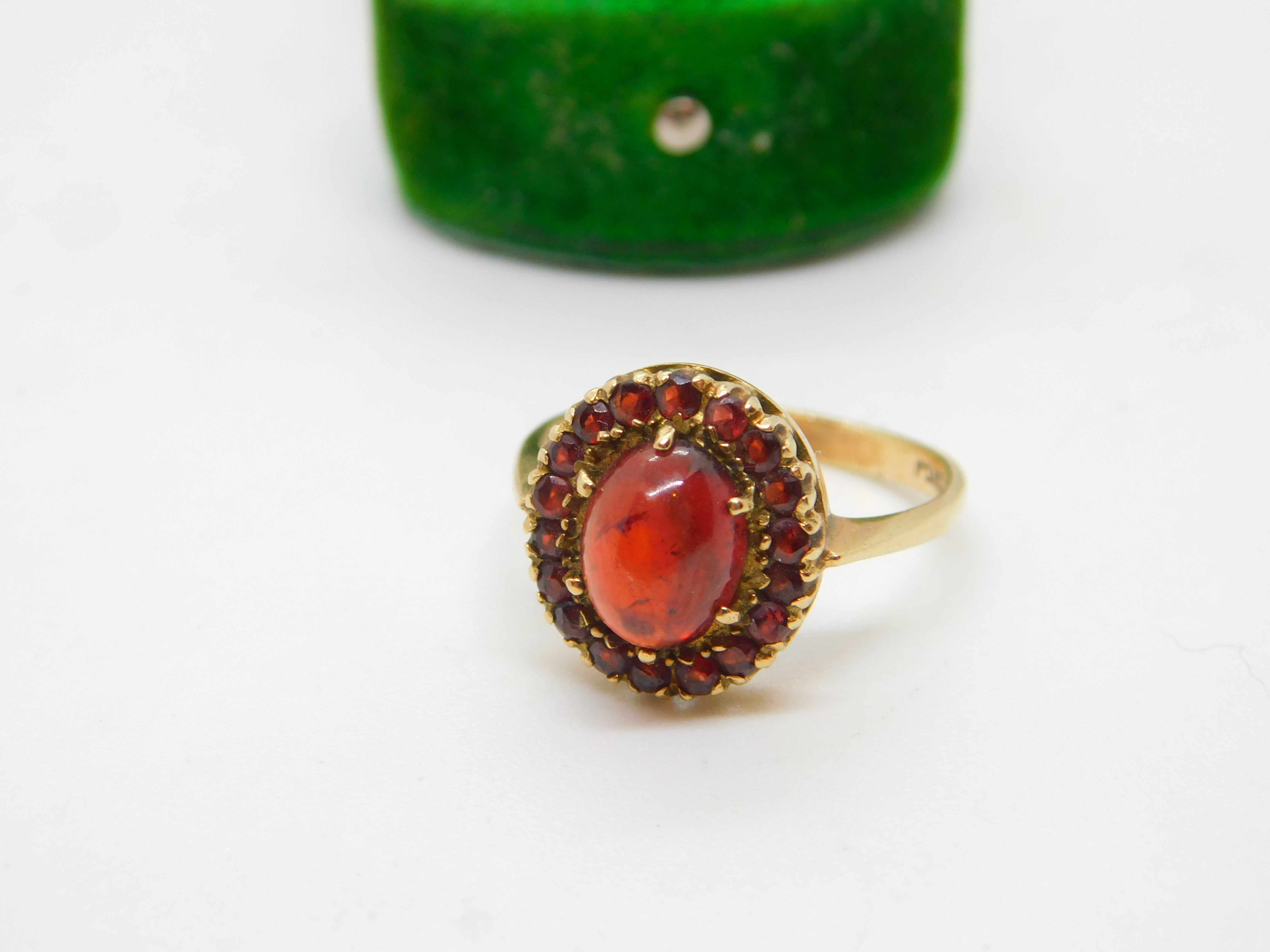 9ct Yellow Gold Cabochon Cut Bohemian Garnet Floral Cluster Ring Vintage c1970