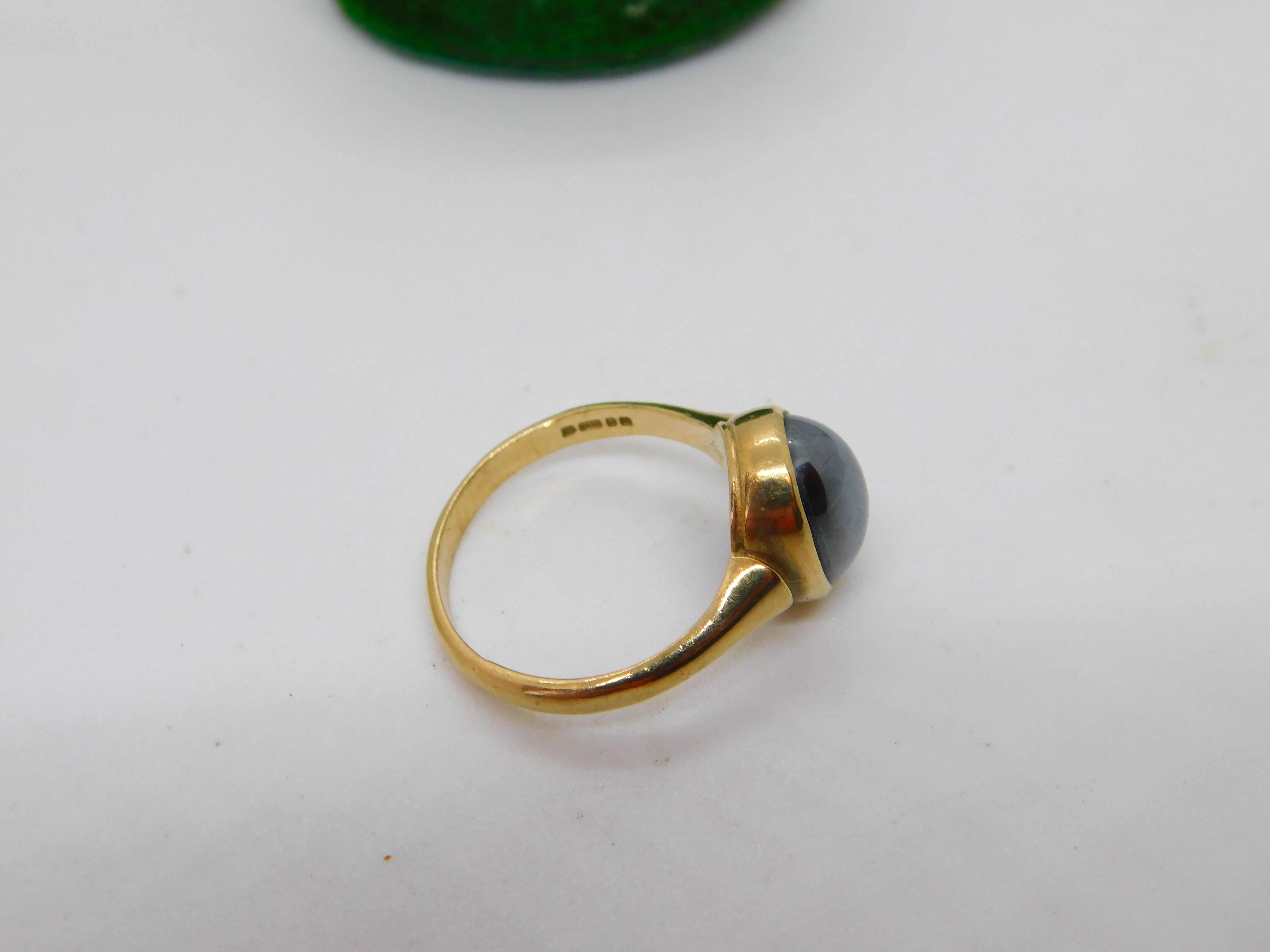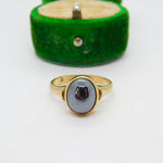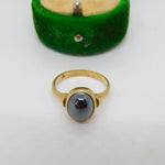 9ct Yellow Gold Cabochon Cut Haematite Dress Ring Vintage 1989 London