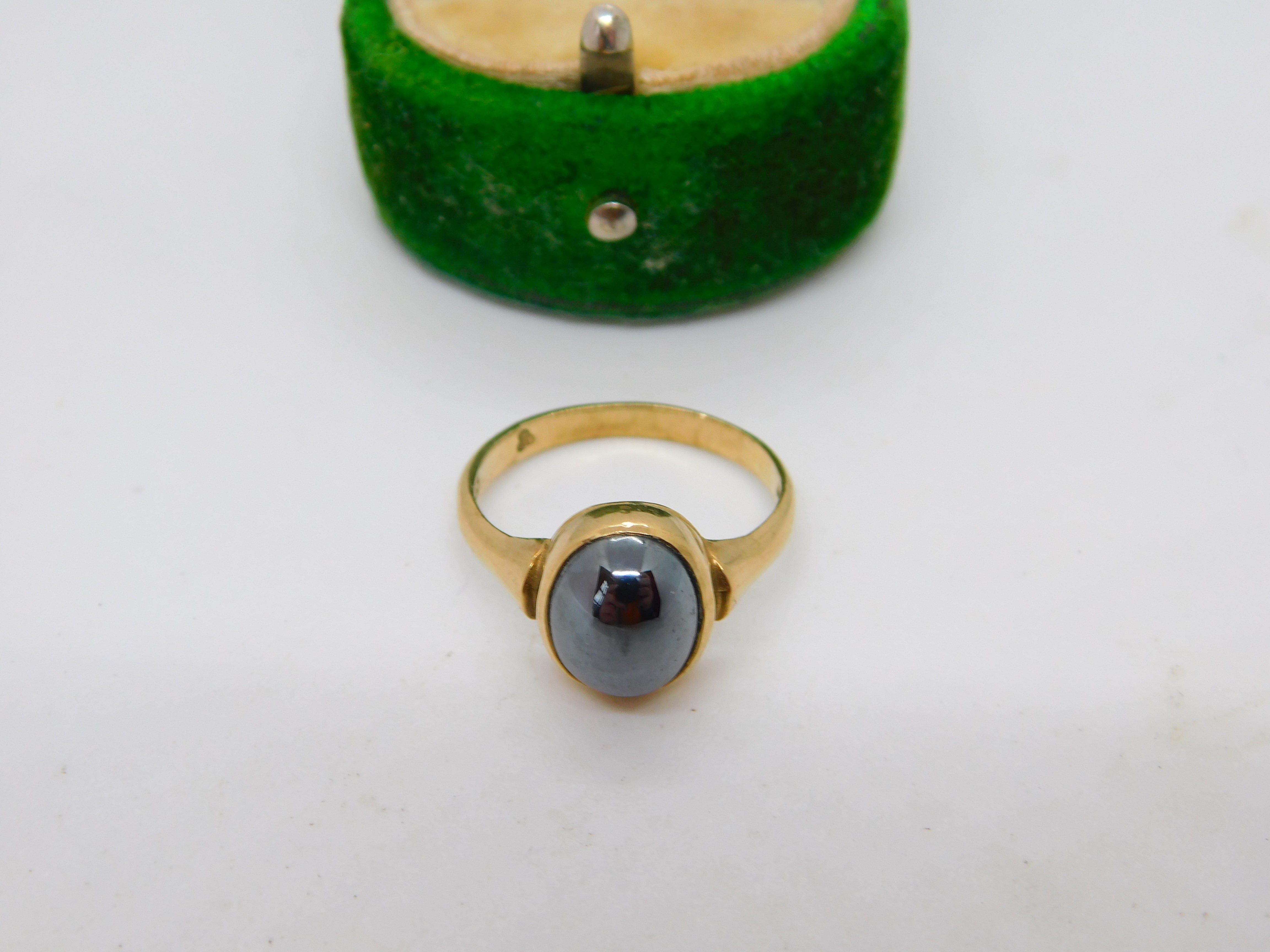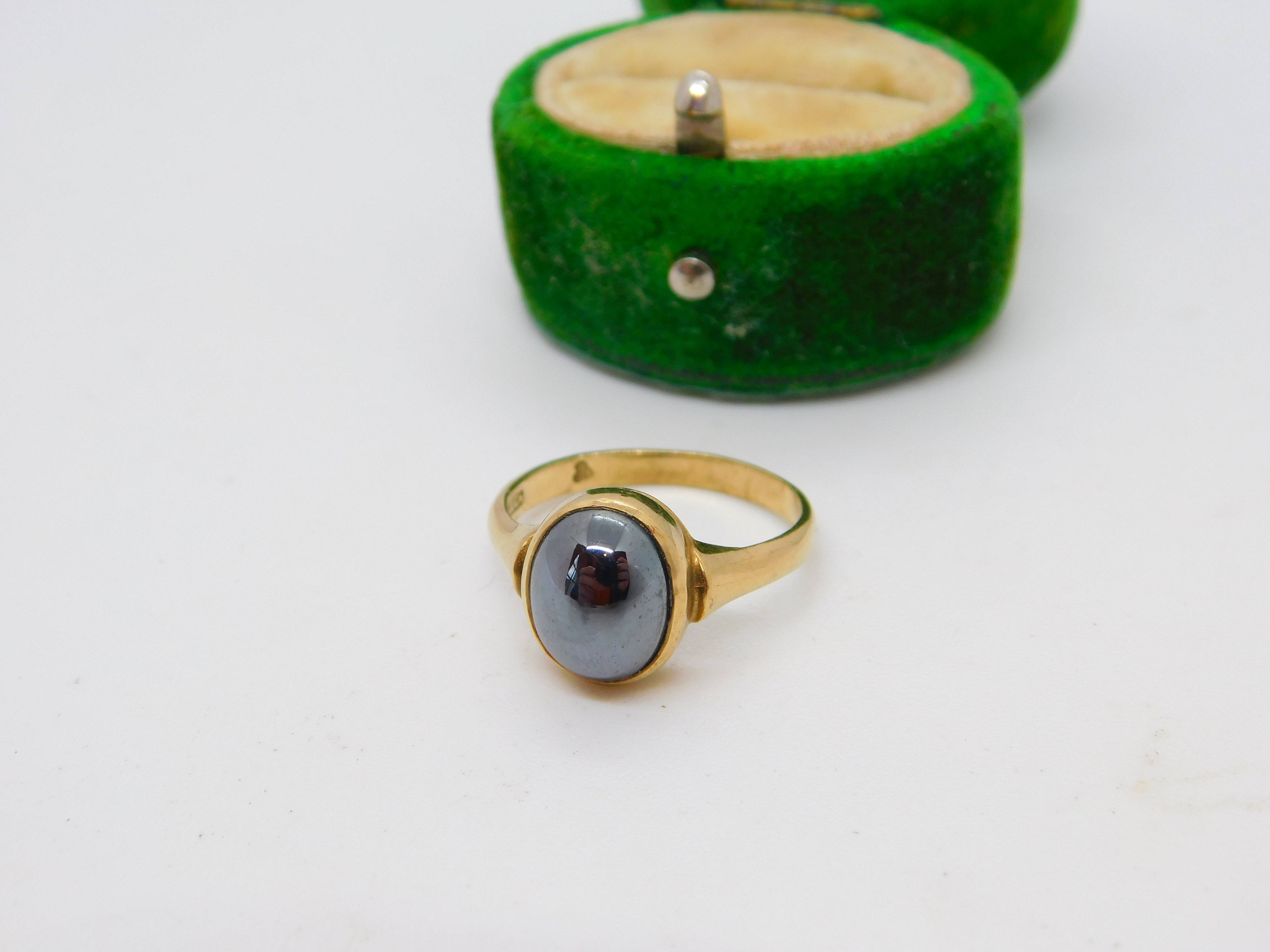 Details: A fantastic and wonderfully designed vintage 9ct yellow gold & cabochon haematite dress ring hallmarked London 1989 to the interior band. This is a wonderful item that would make a perfect gift or addition to any collection. The BOX pictured is for PRESENTATION ONLY and is NOT included in the listings but used to frame the pictures unless specifically stated otherwise.