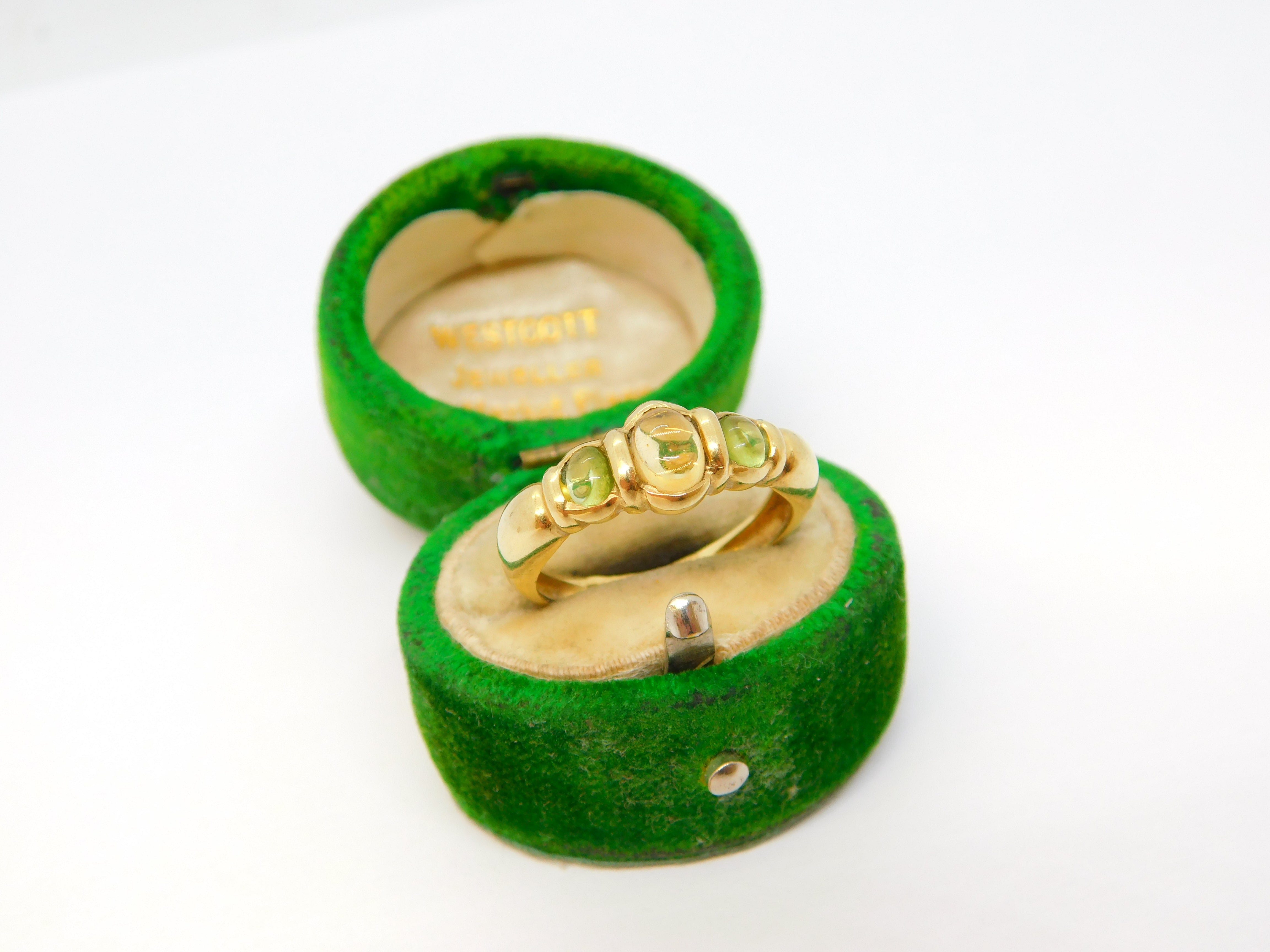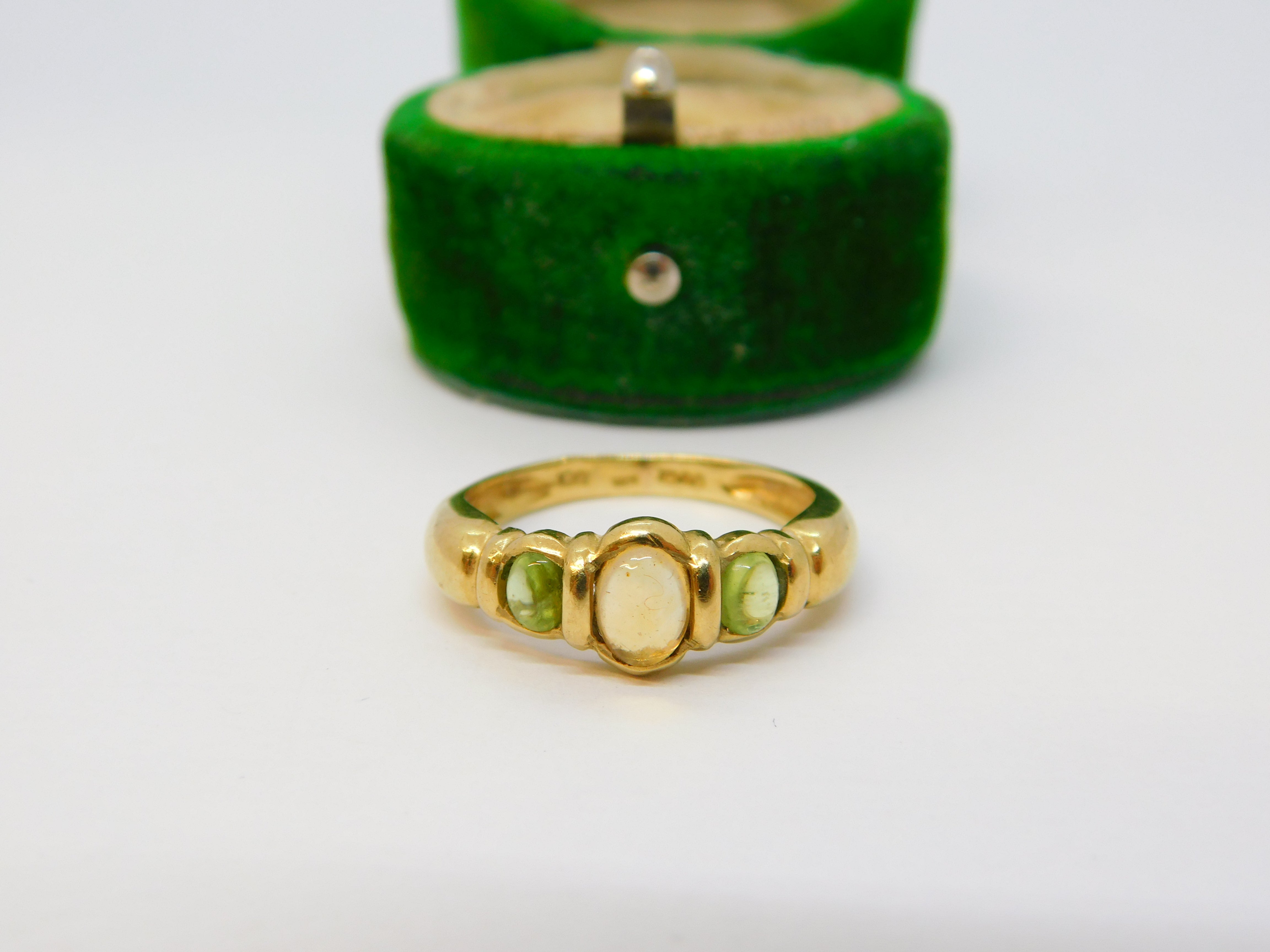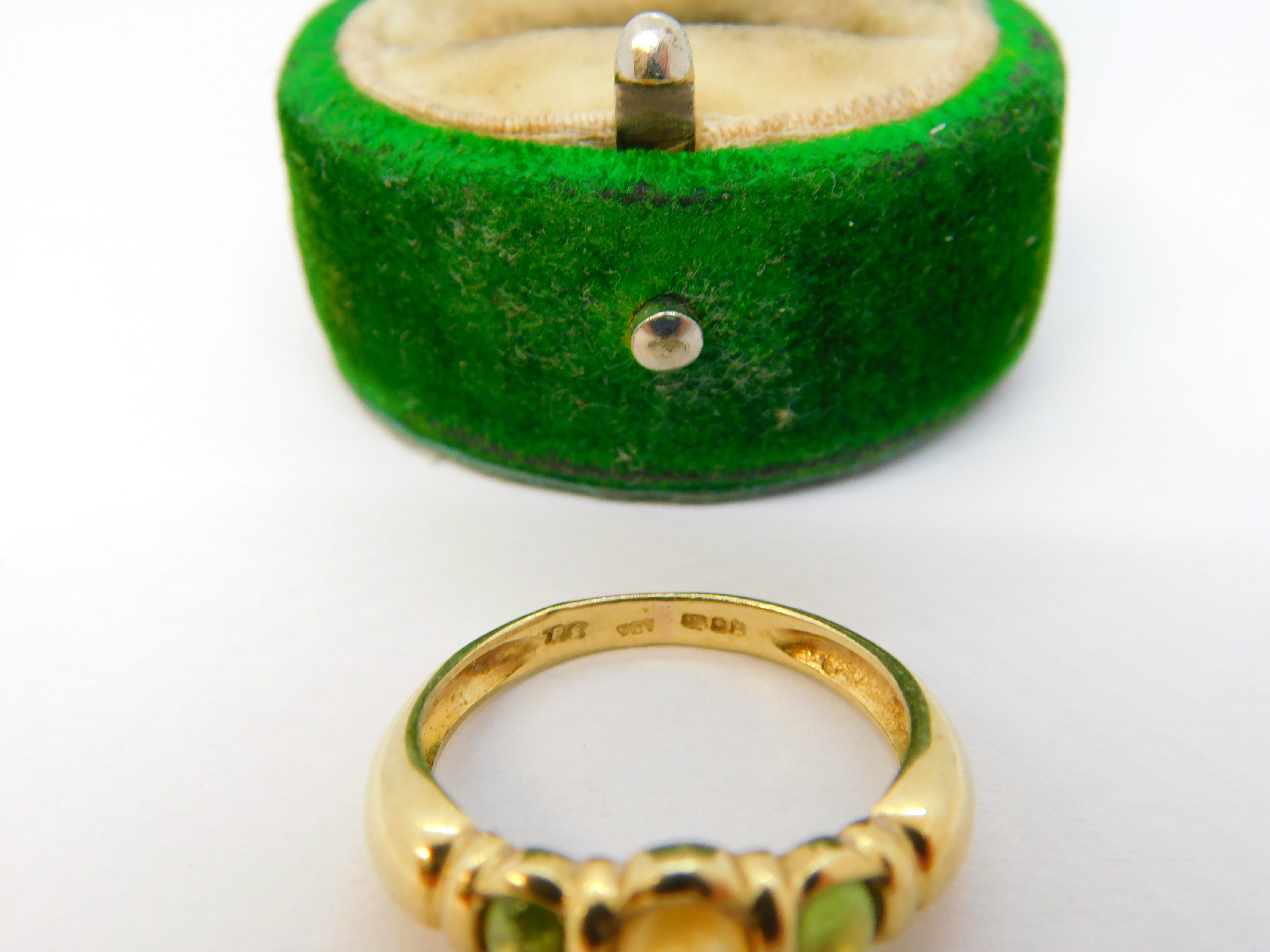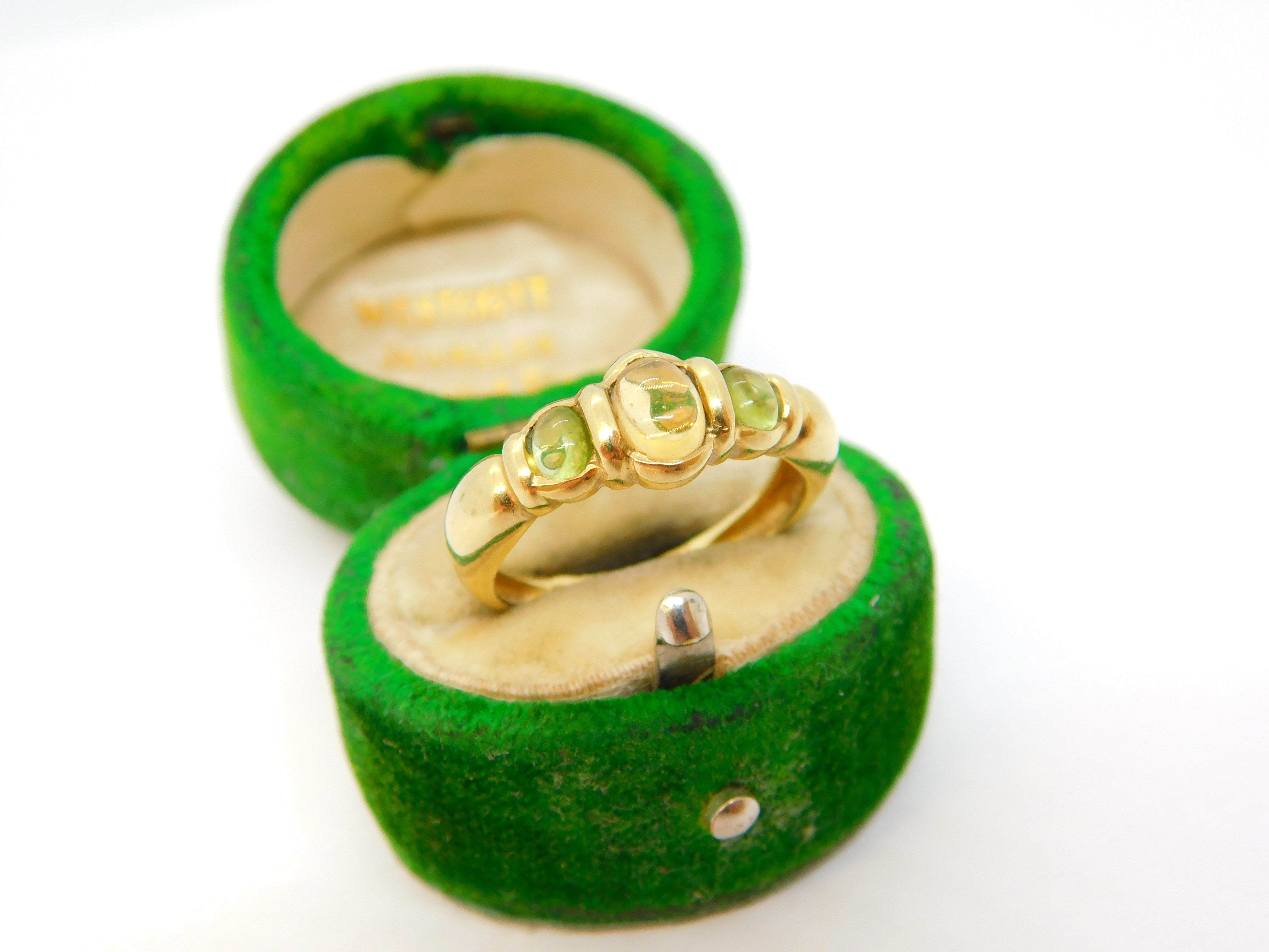 9ct Yellow Gold, Cabochon Cut Peridot & Citrine Band Ring Vintage 1997 London