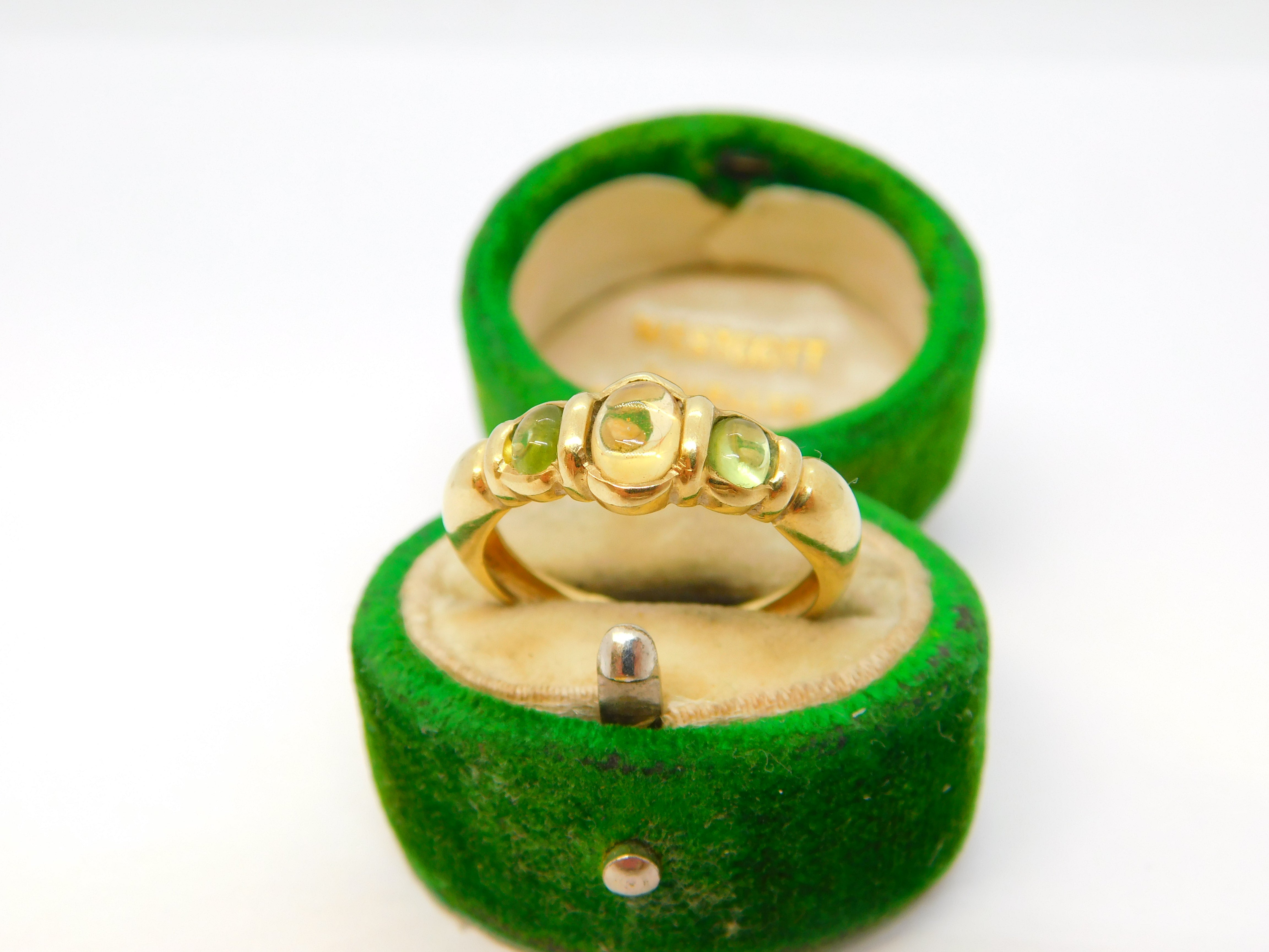 Details: A fantastic and wonderfully designed vintage 9ct yellow gold dress ring set with cabochon cut peridot and citrine stones hallmarked London 1997 to the interior, lovely colour to the stones. This is a wonderful item that would make a perfect gift or addition to any collection. The BOX pictured is for PRESENTATION ONLY and is NOT included in the listings but used to frame the pictures unless specifically stated otherwise.
