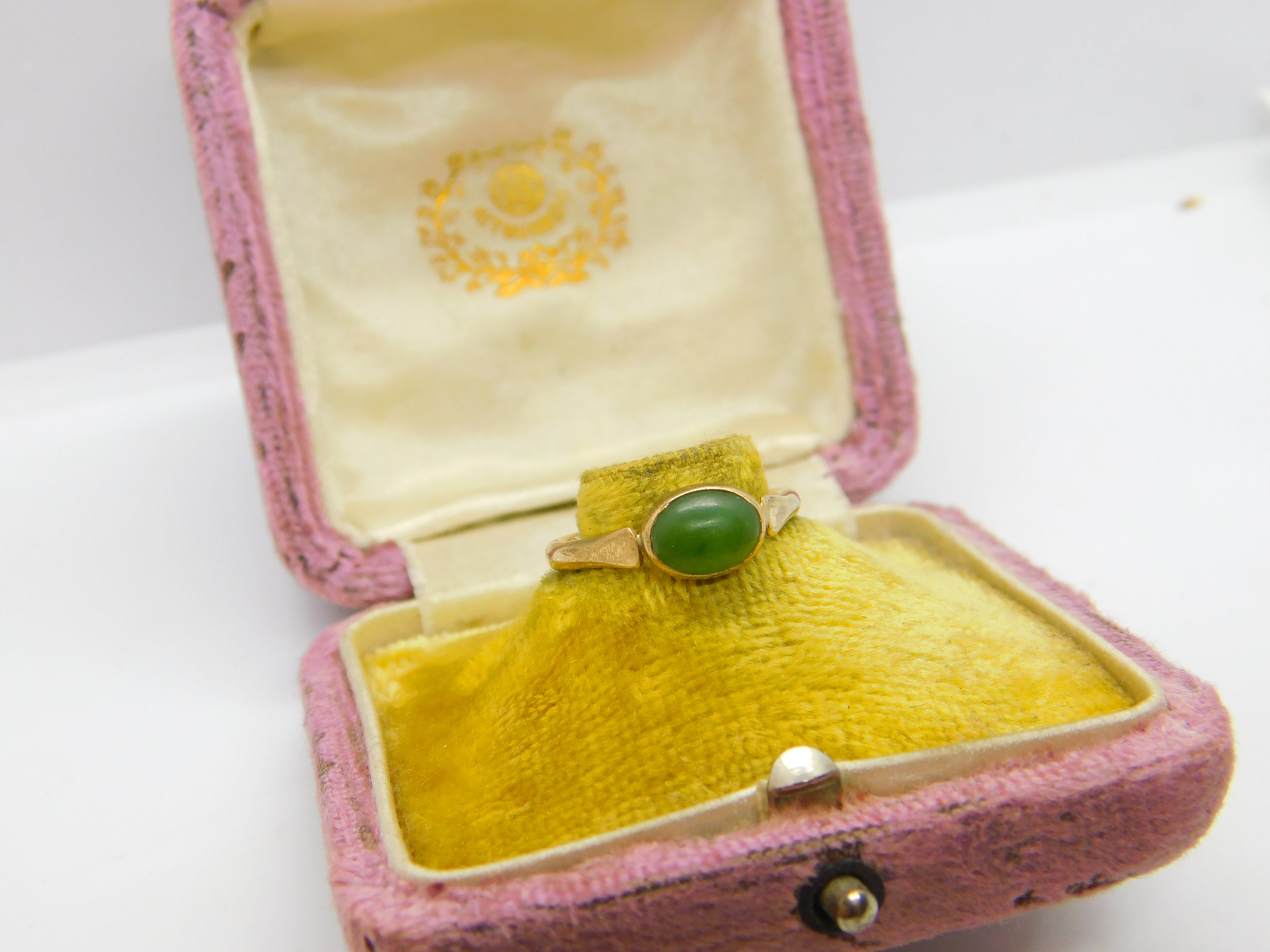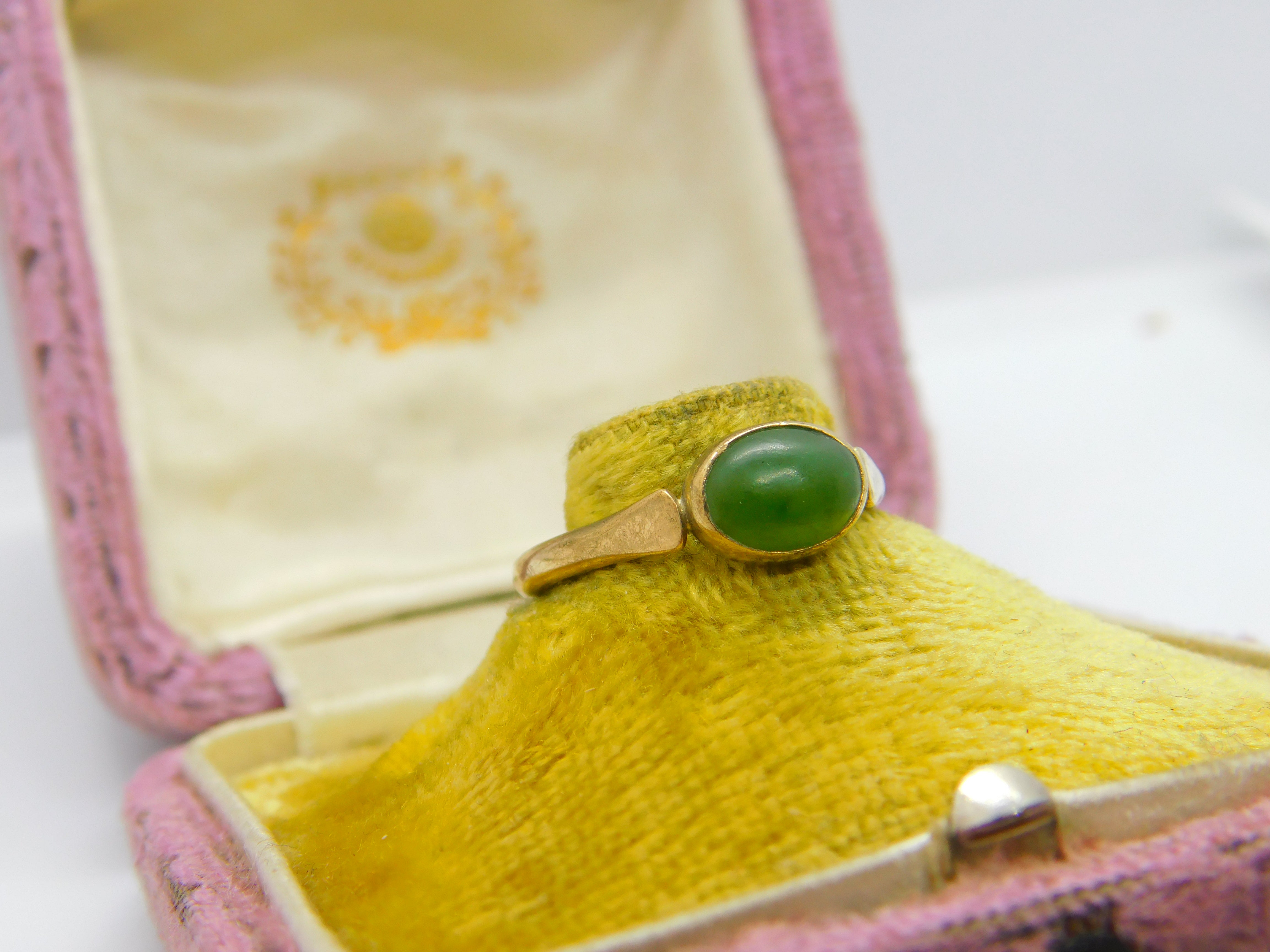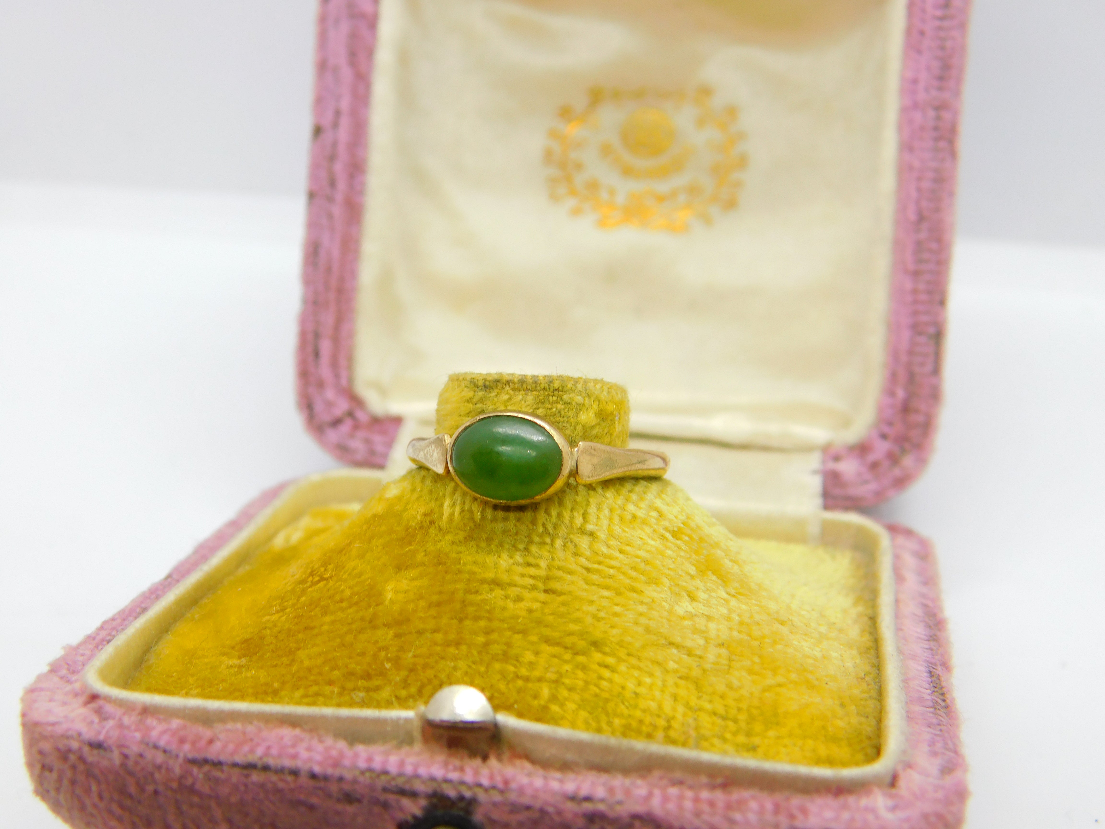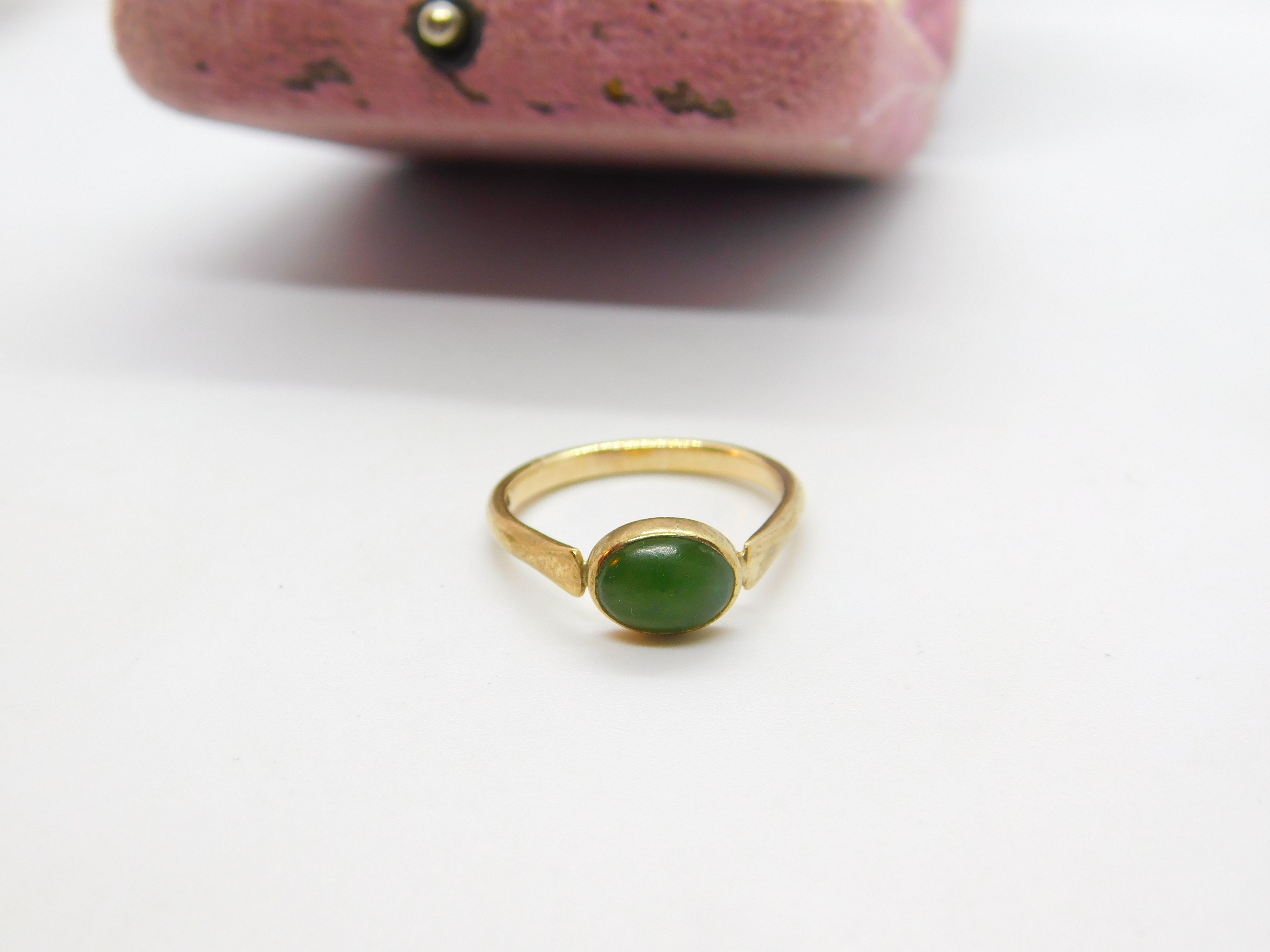 9ct Yellow Gold & Cabochon Jade Band Ring Vintage 1979 London