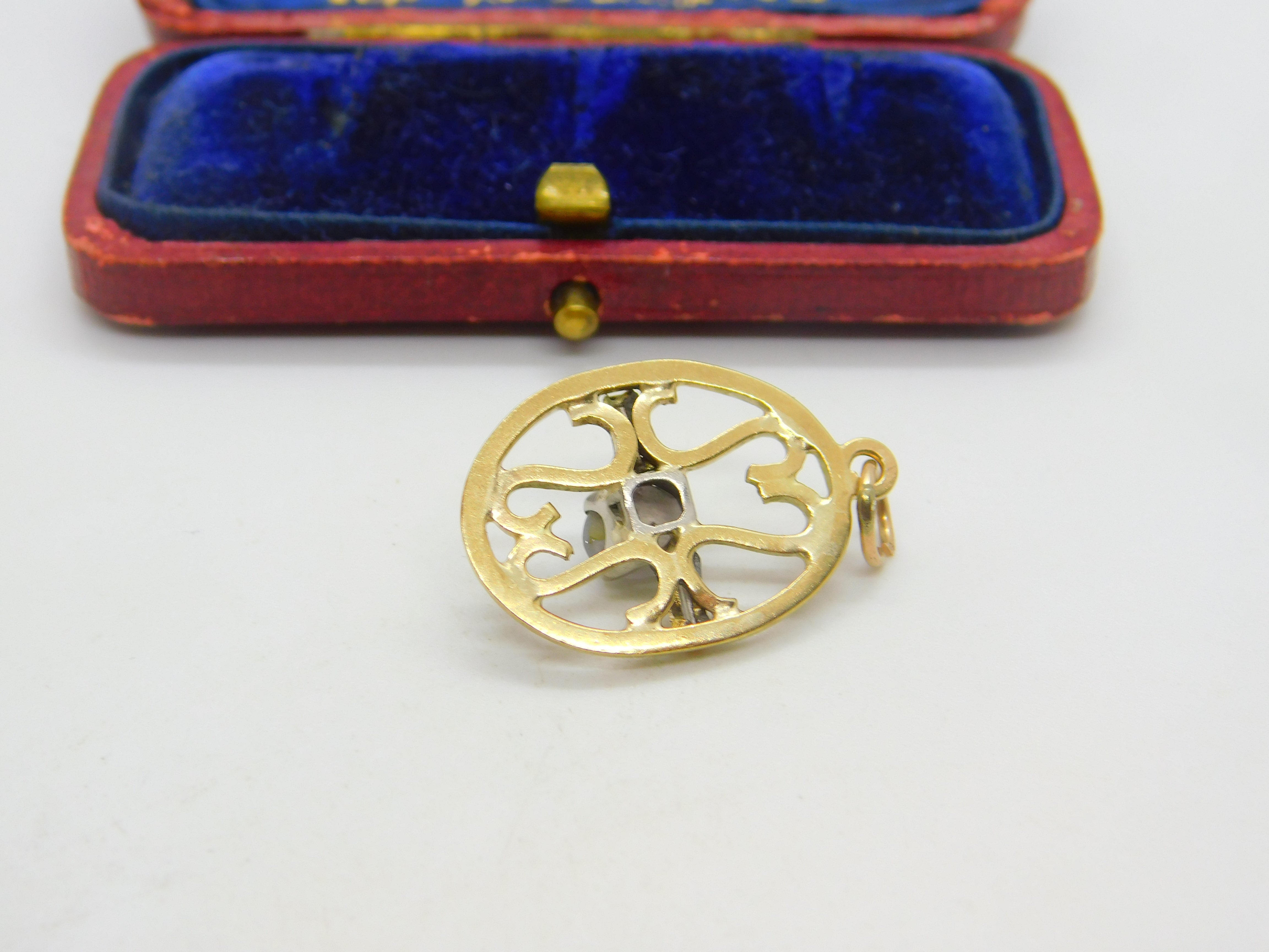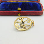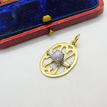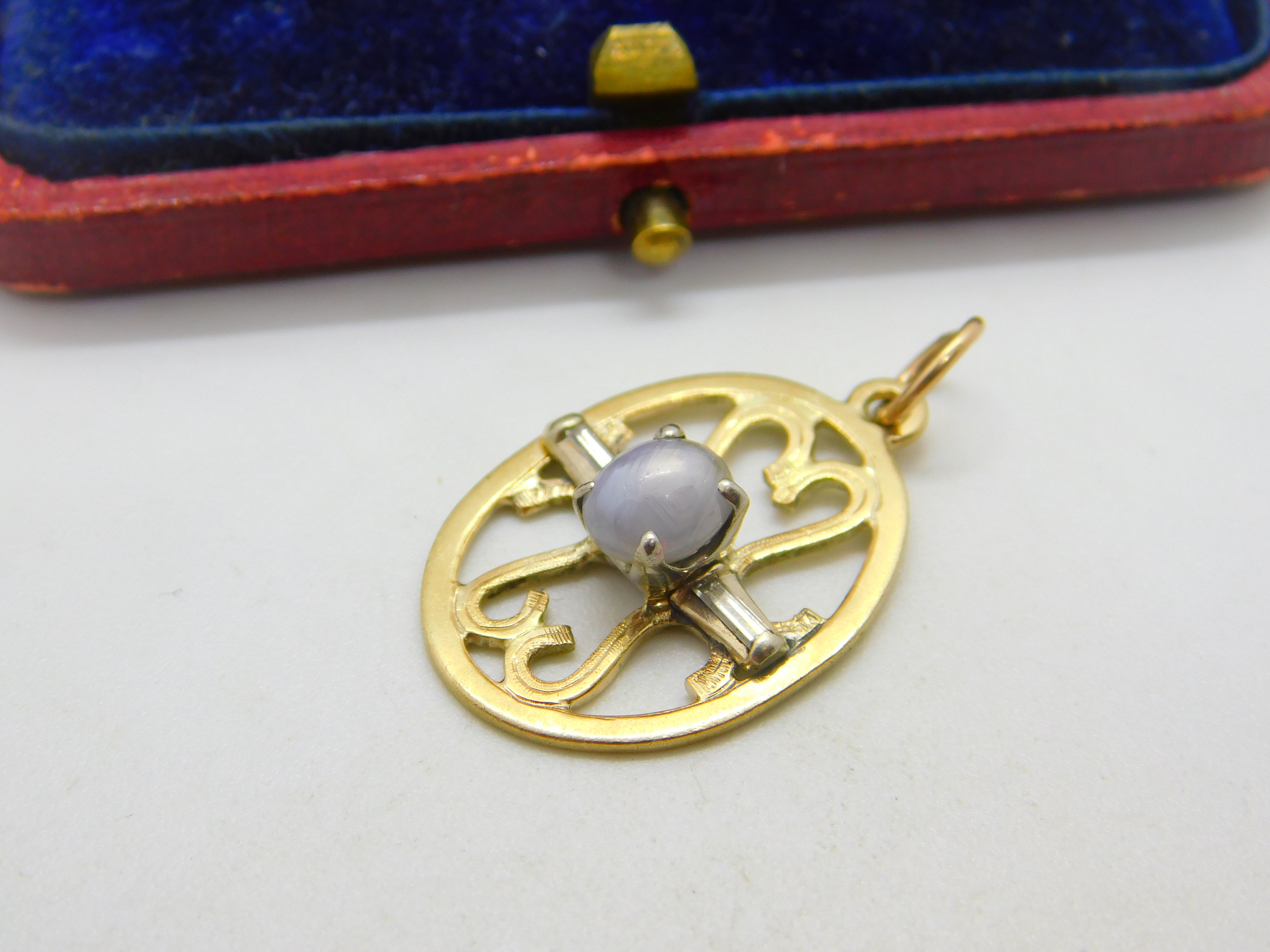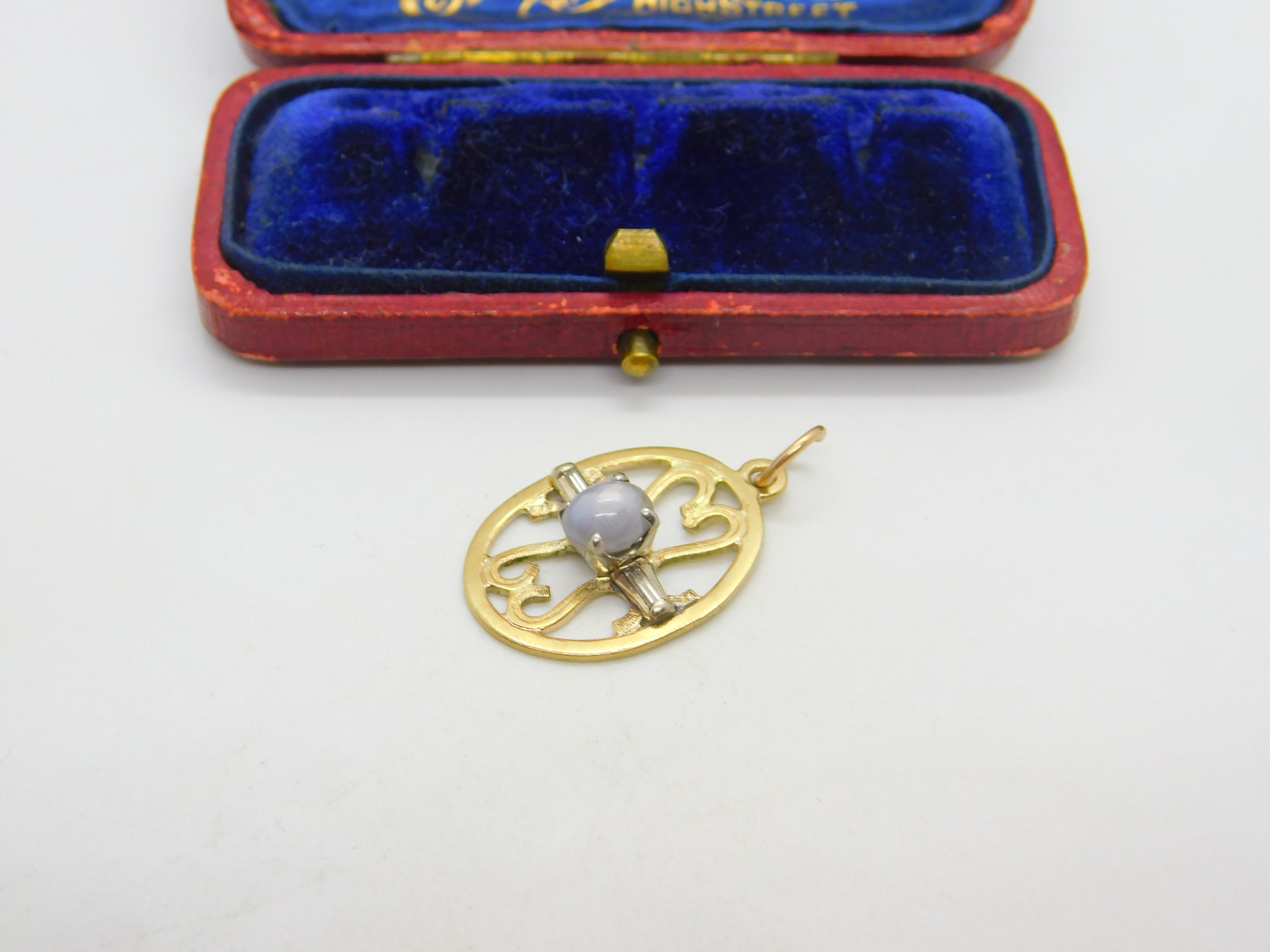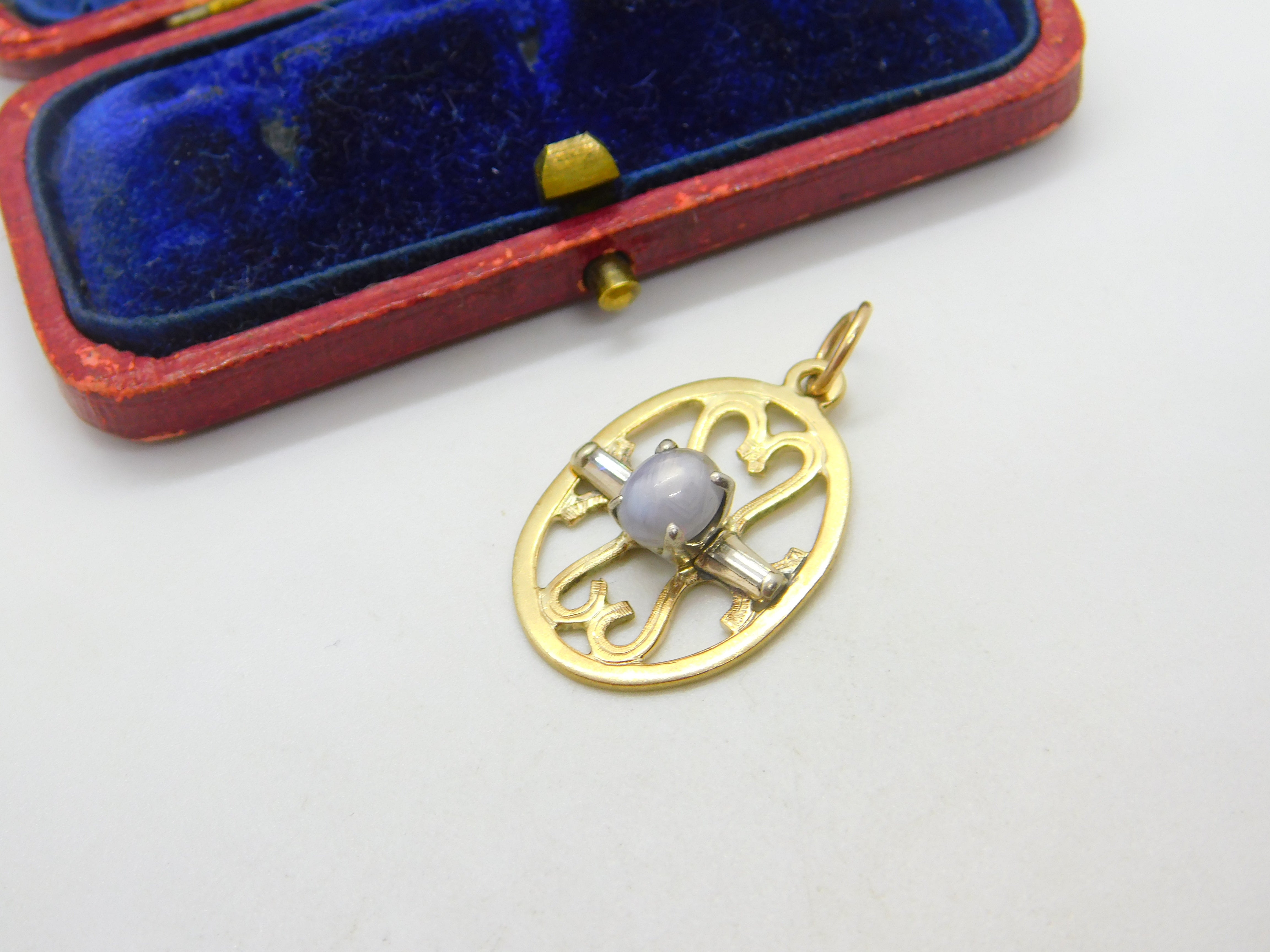 9ct Yellow Gold, Cabochon Moonstone & Diamond Drop Pendant Antique c1930