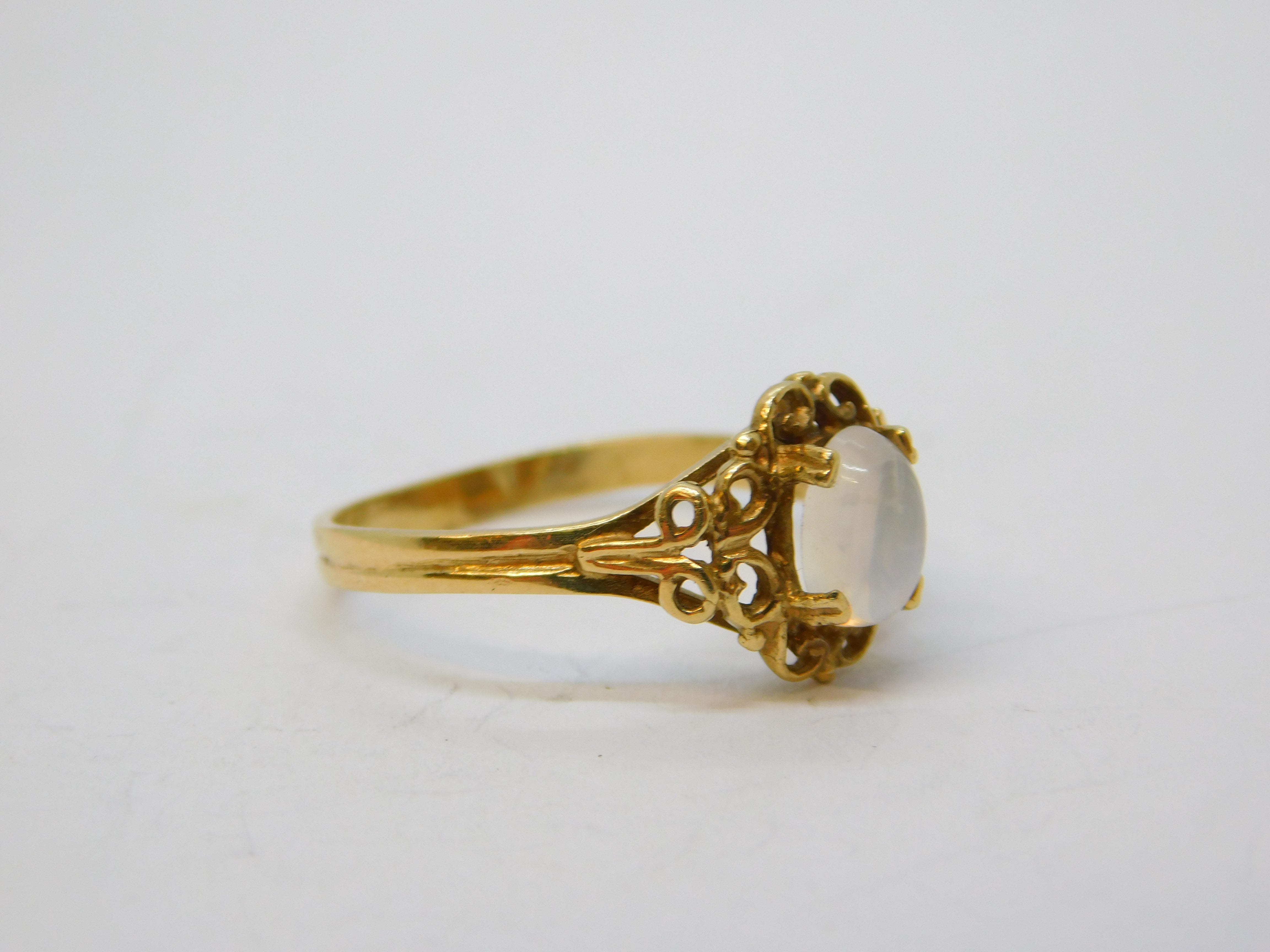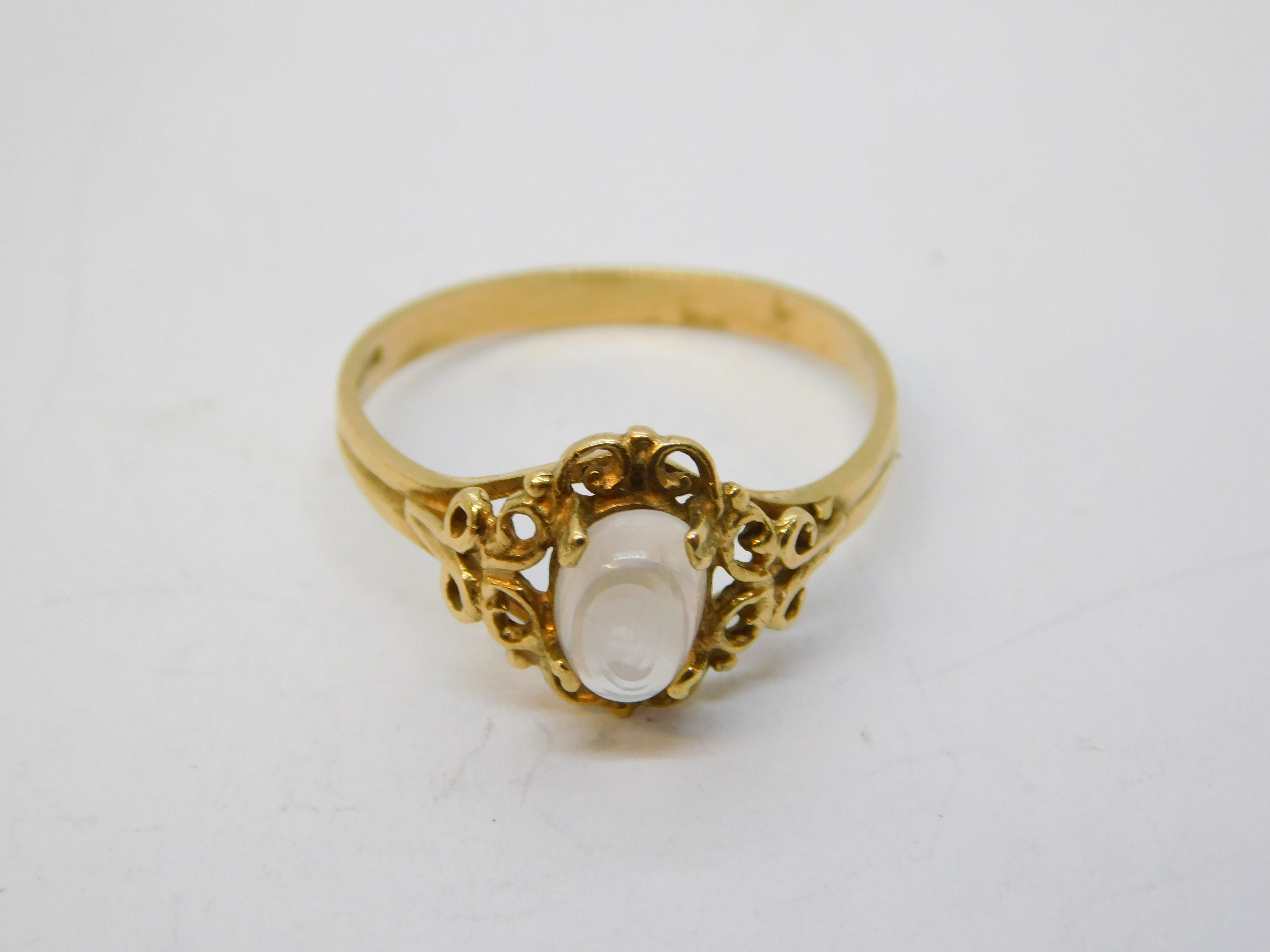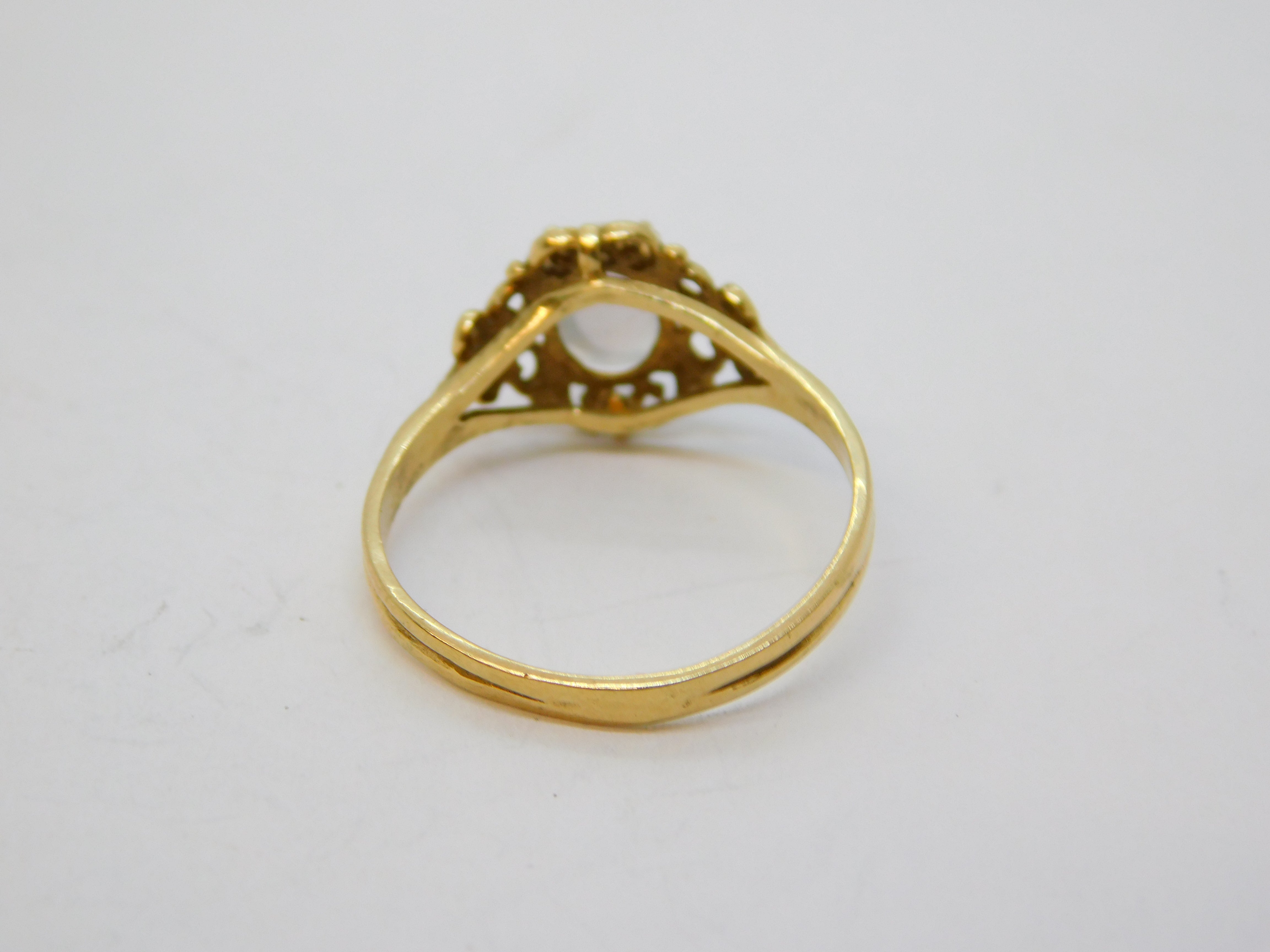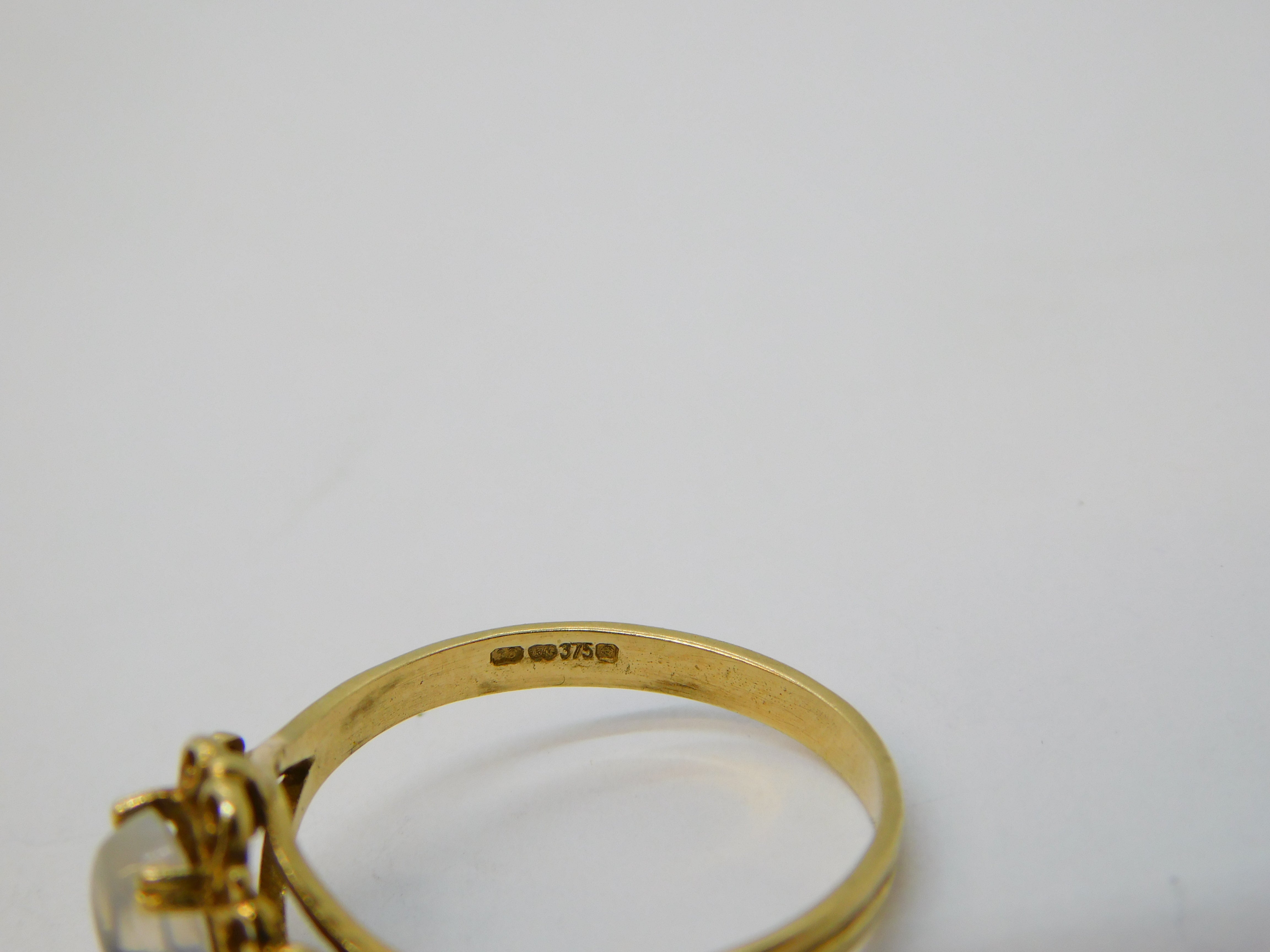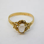 9ct Yellow Gold & Cabochon Moonstone Floral Dress Ring Vintage c1980