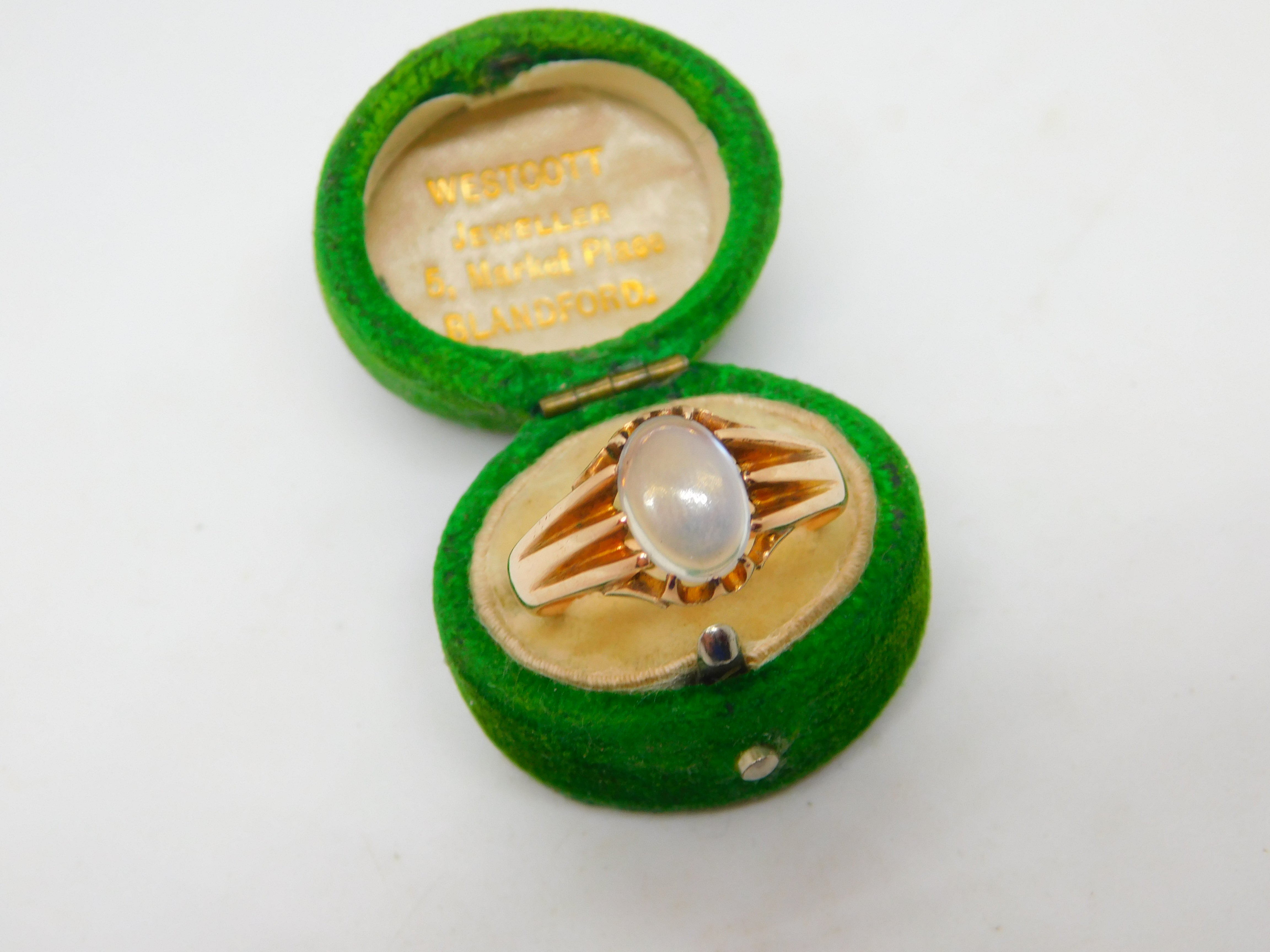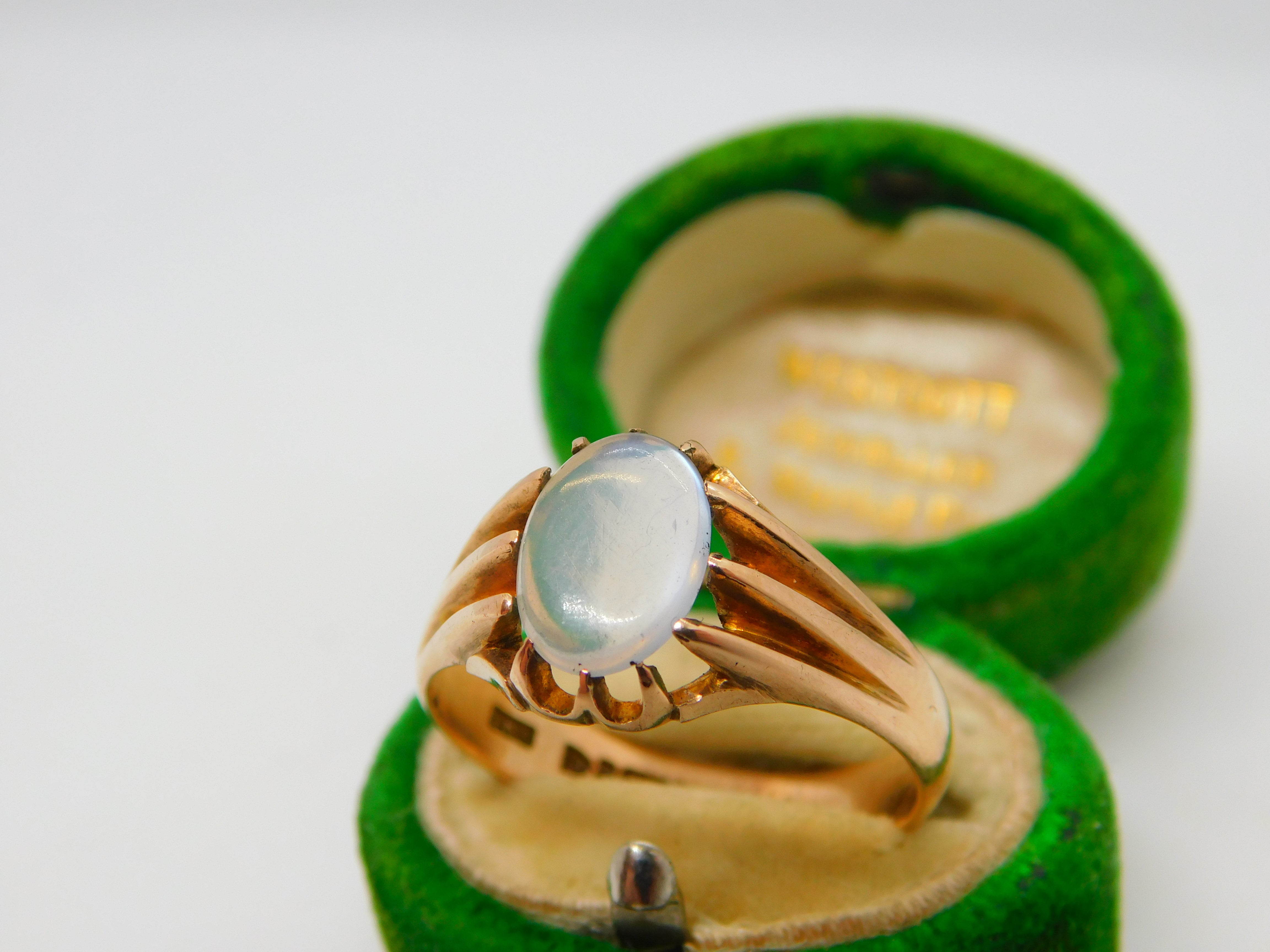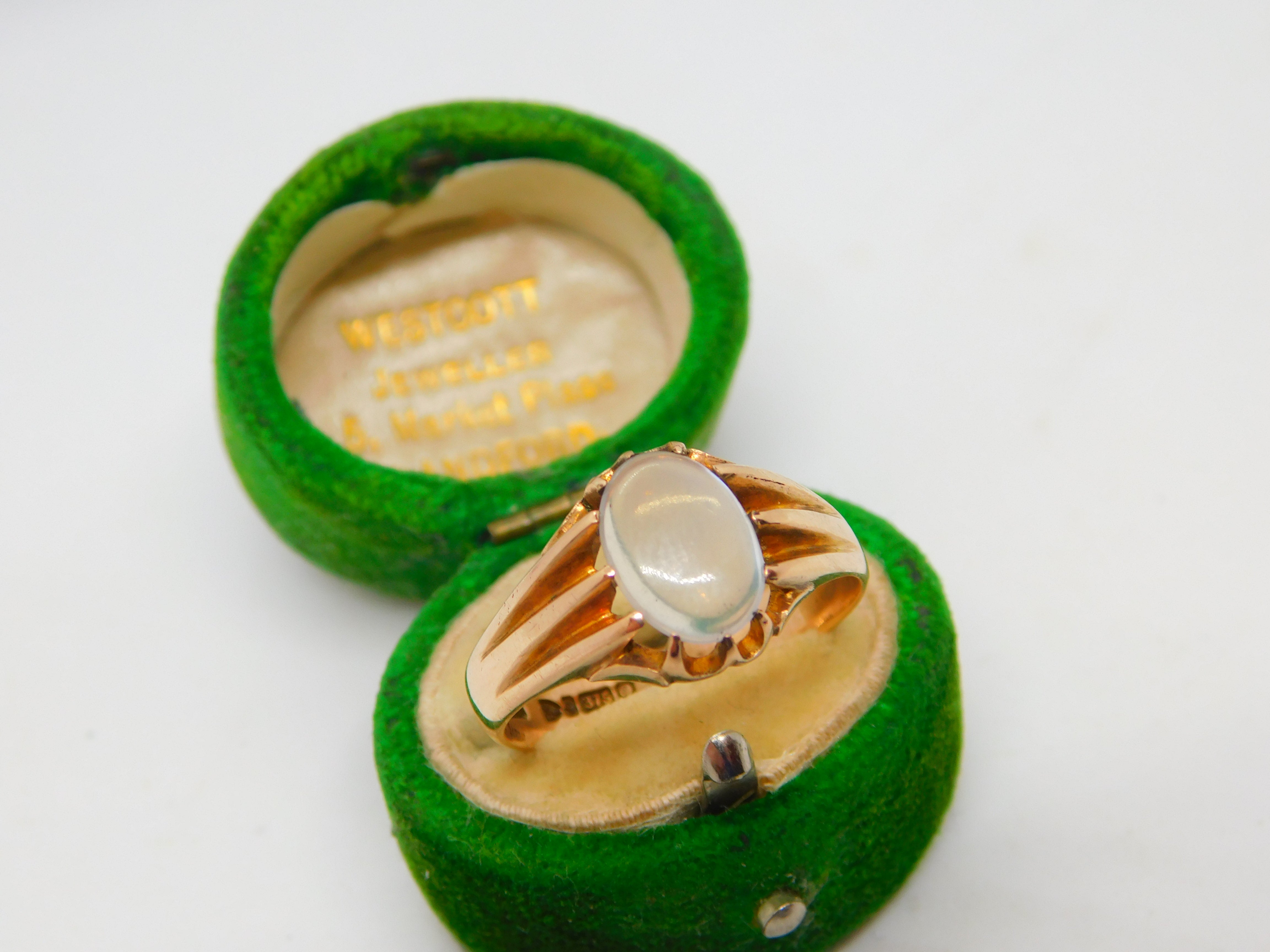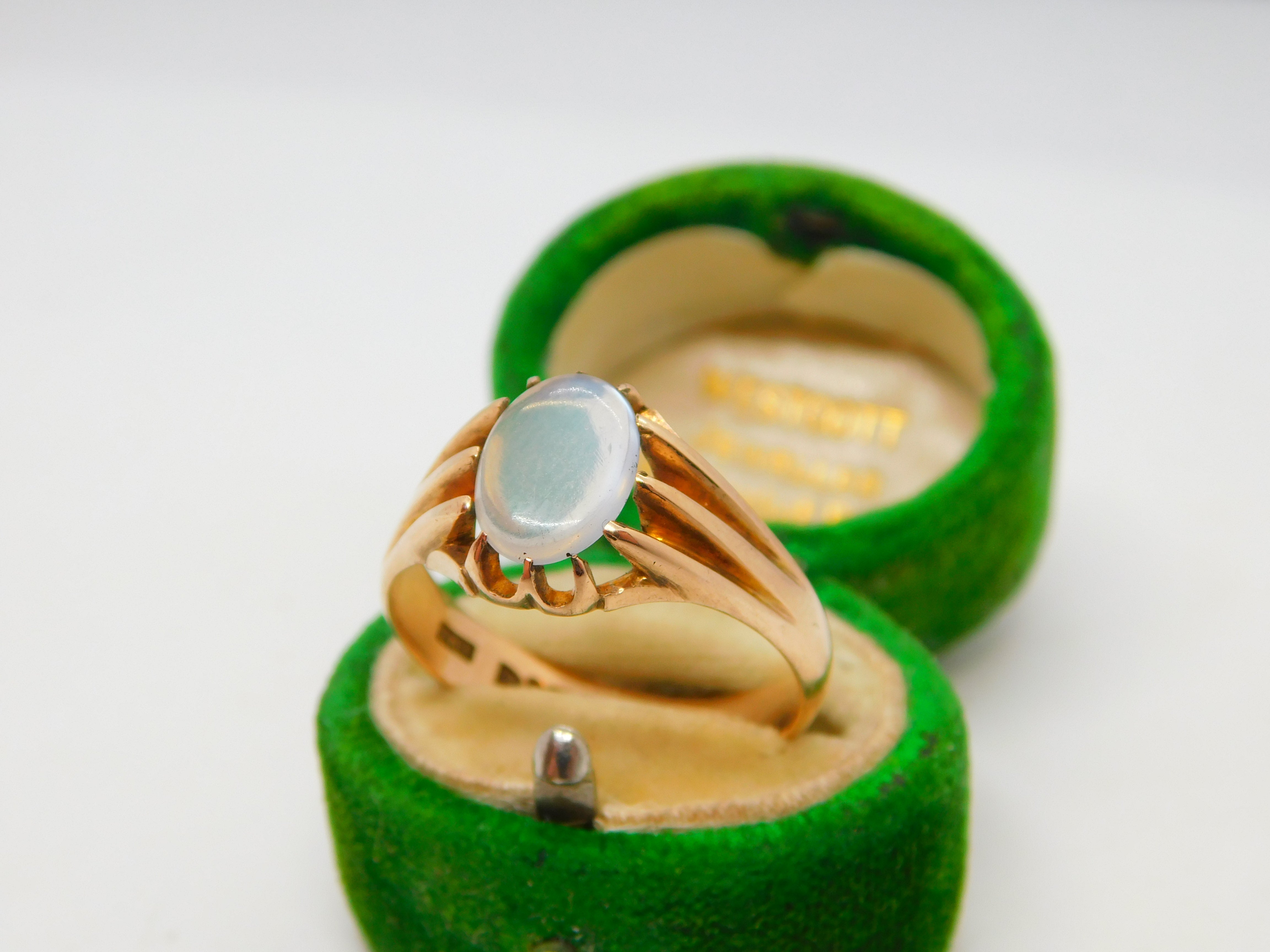 9ct Yellow Gold Cabochon Moonstone Signet Ring Antique 1911 Chester Art Deco