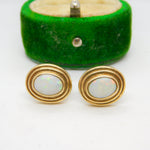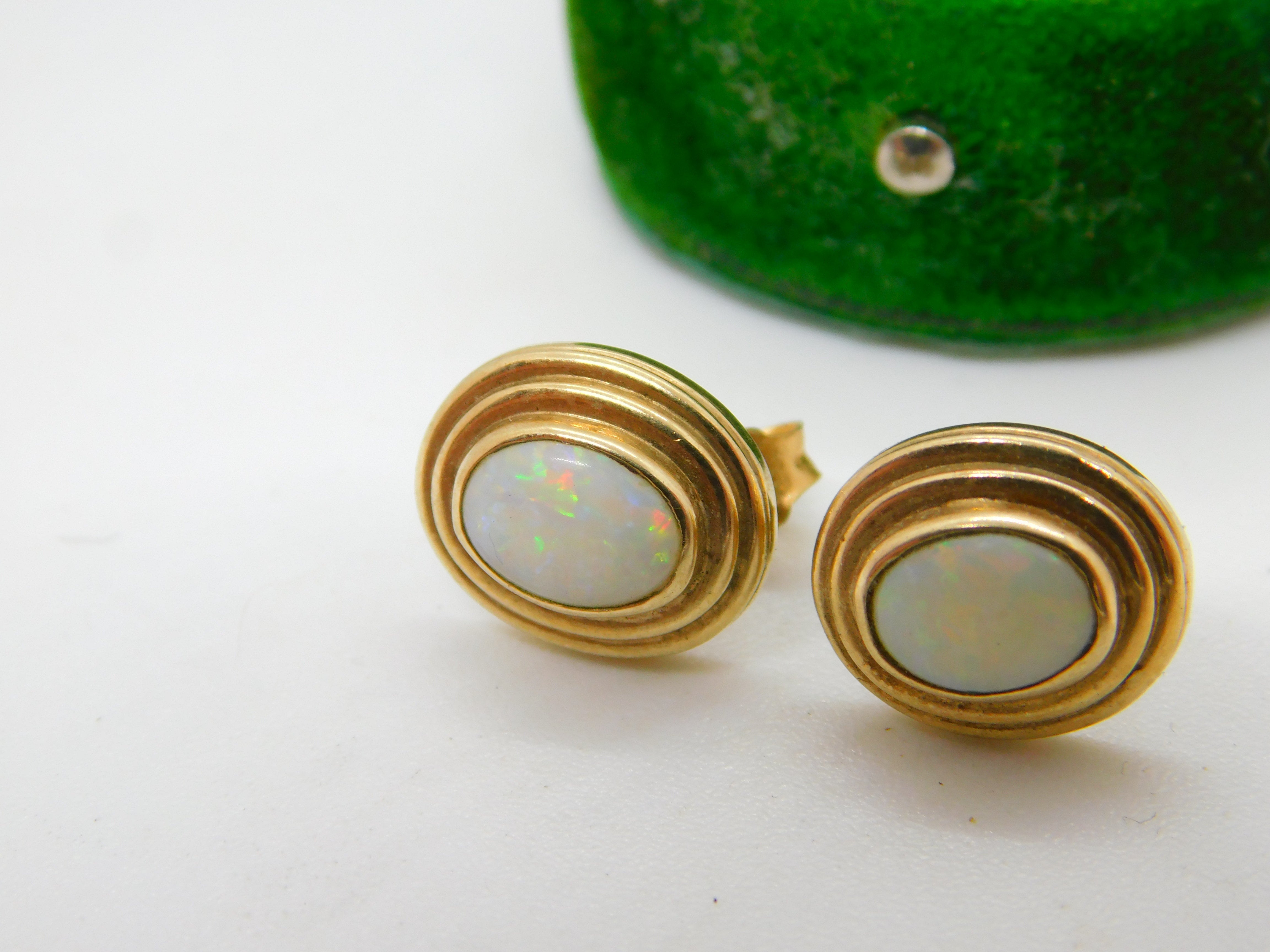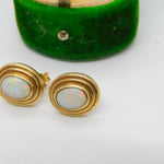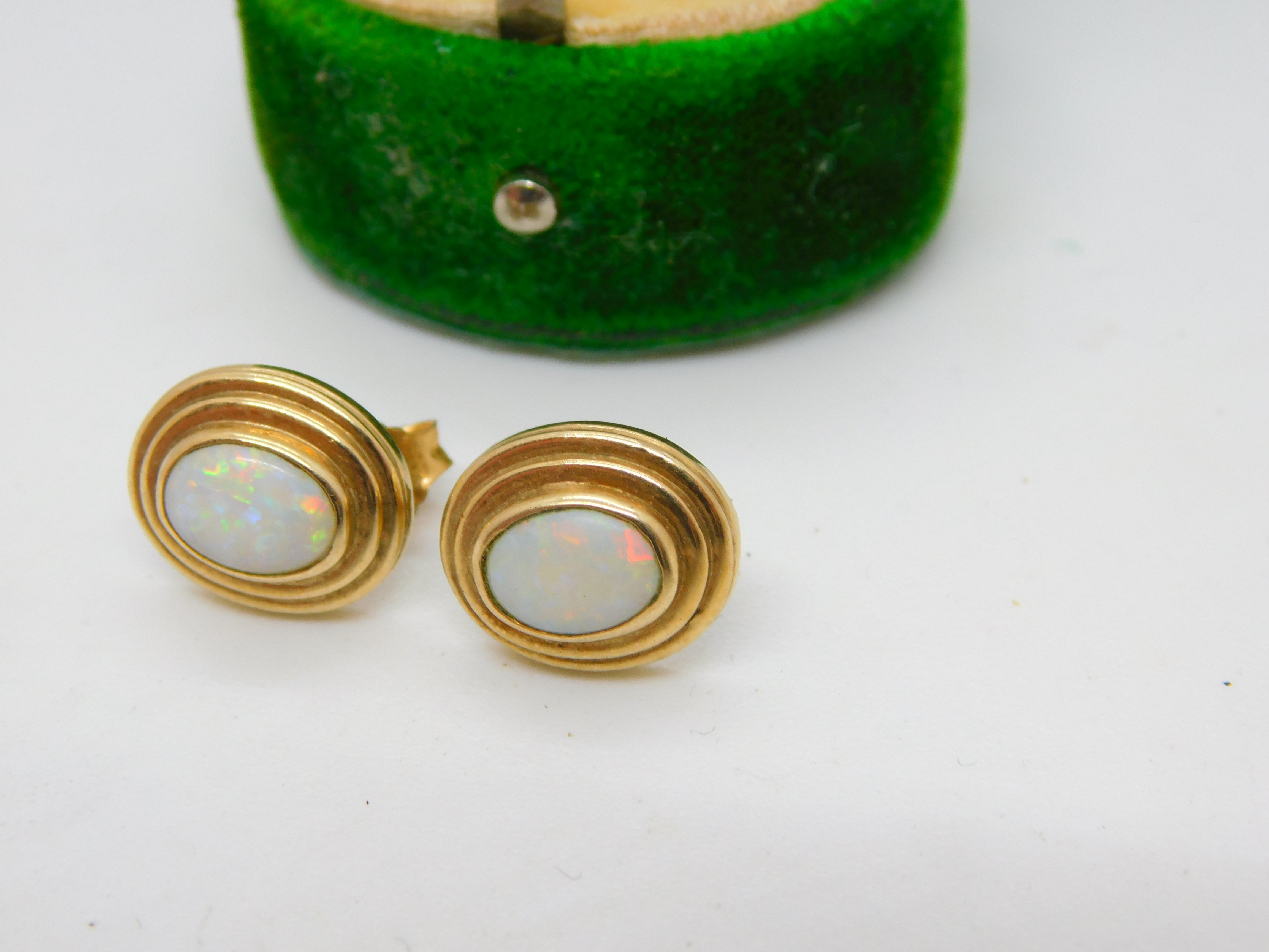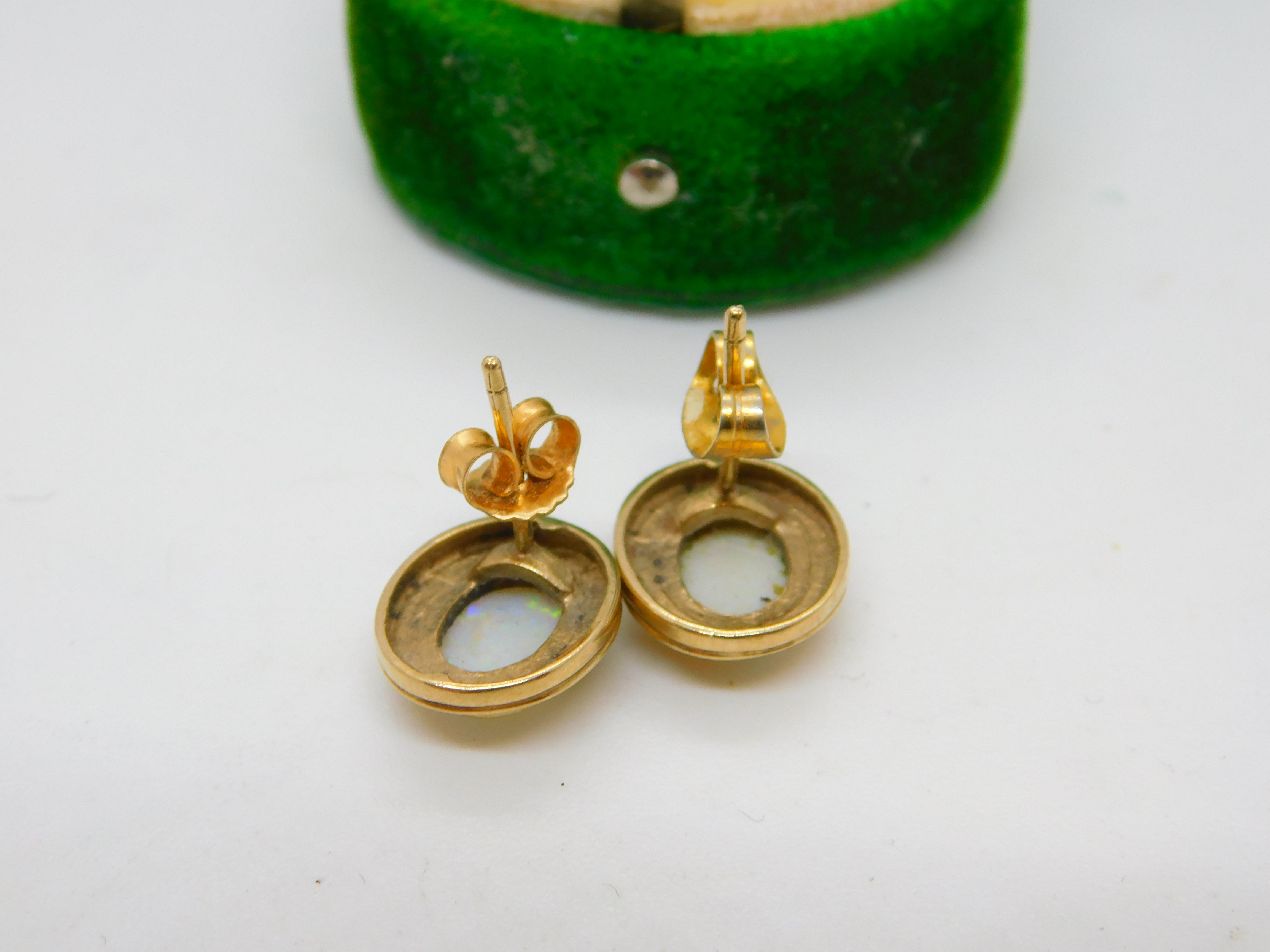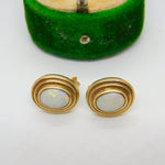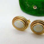 9ct Yellow Gold & Cabochon Opal Stud Earrings Vintage c1980 Birmingham