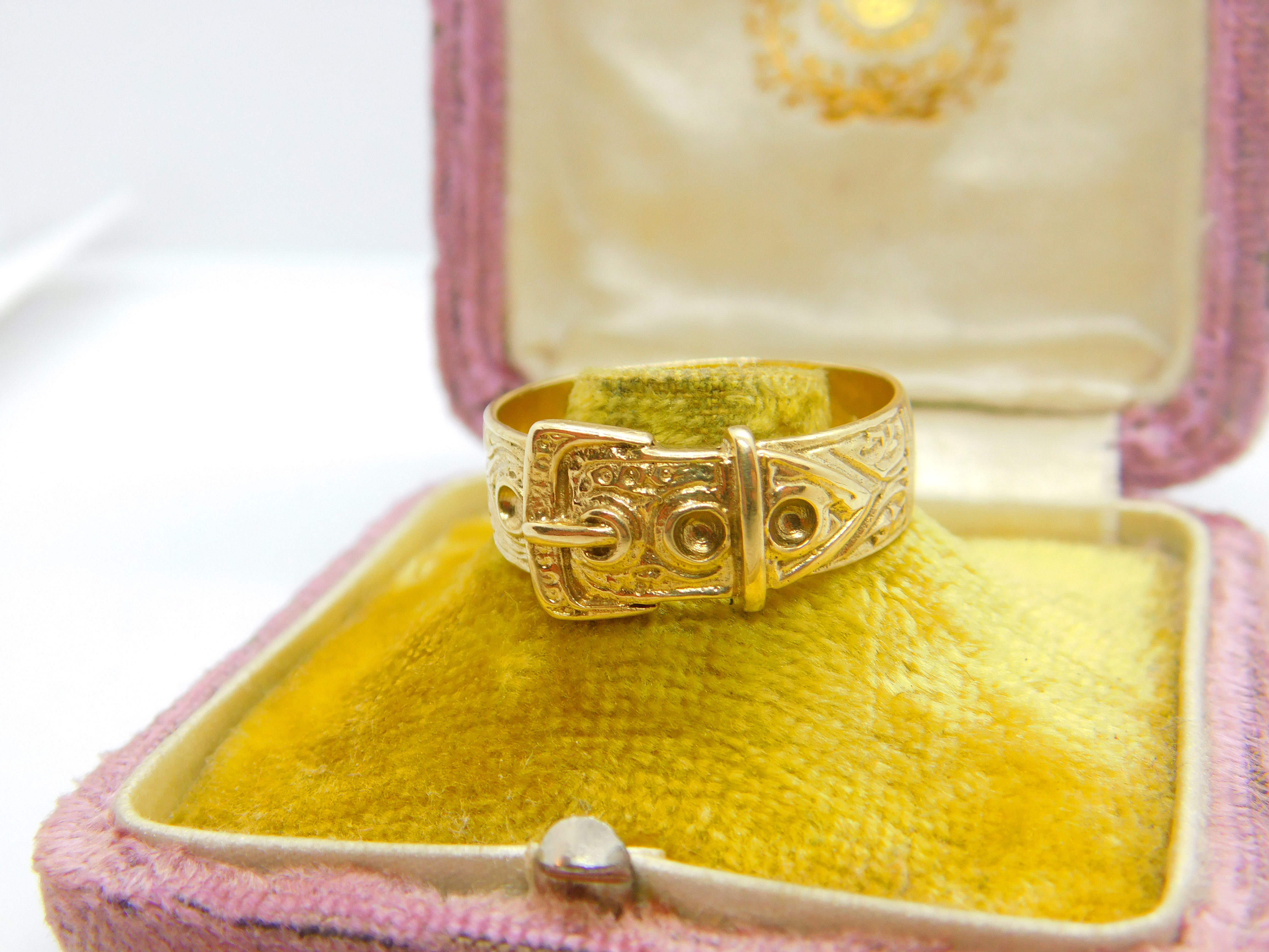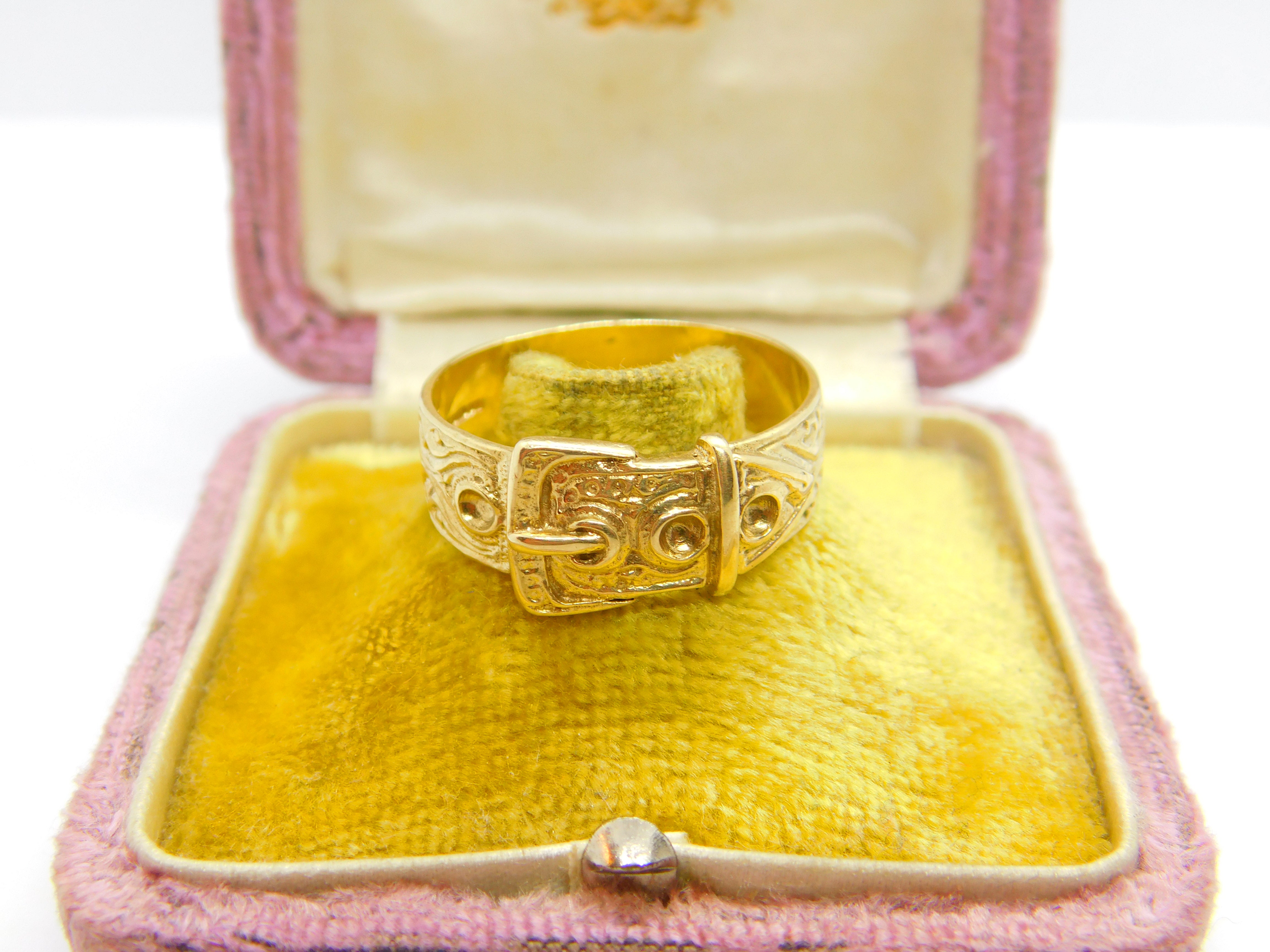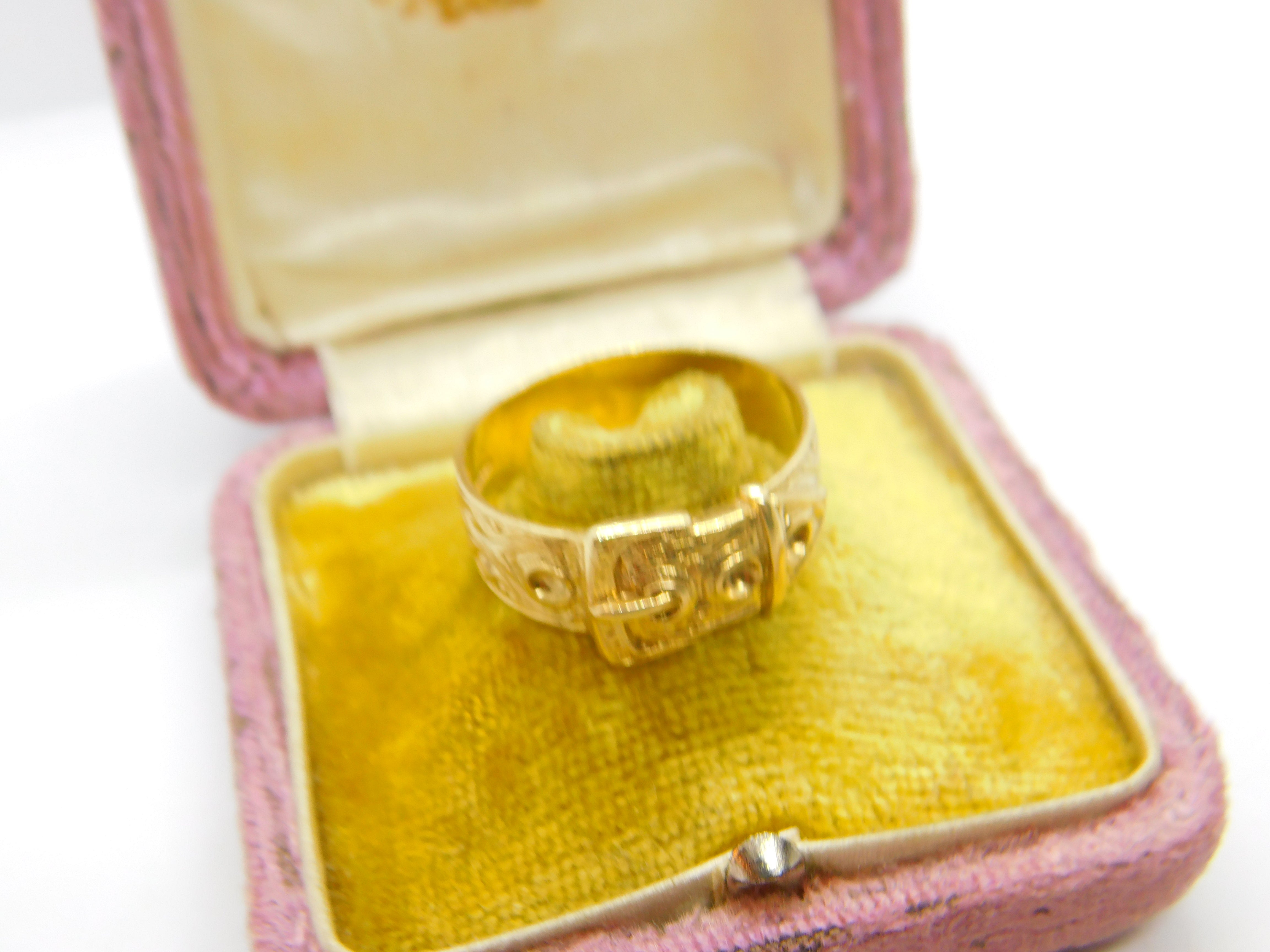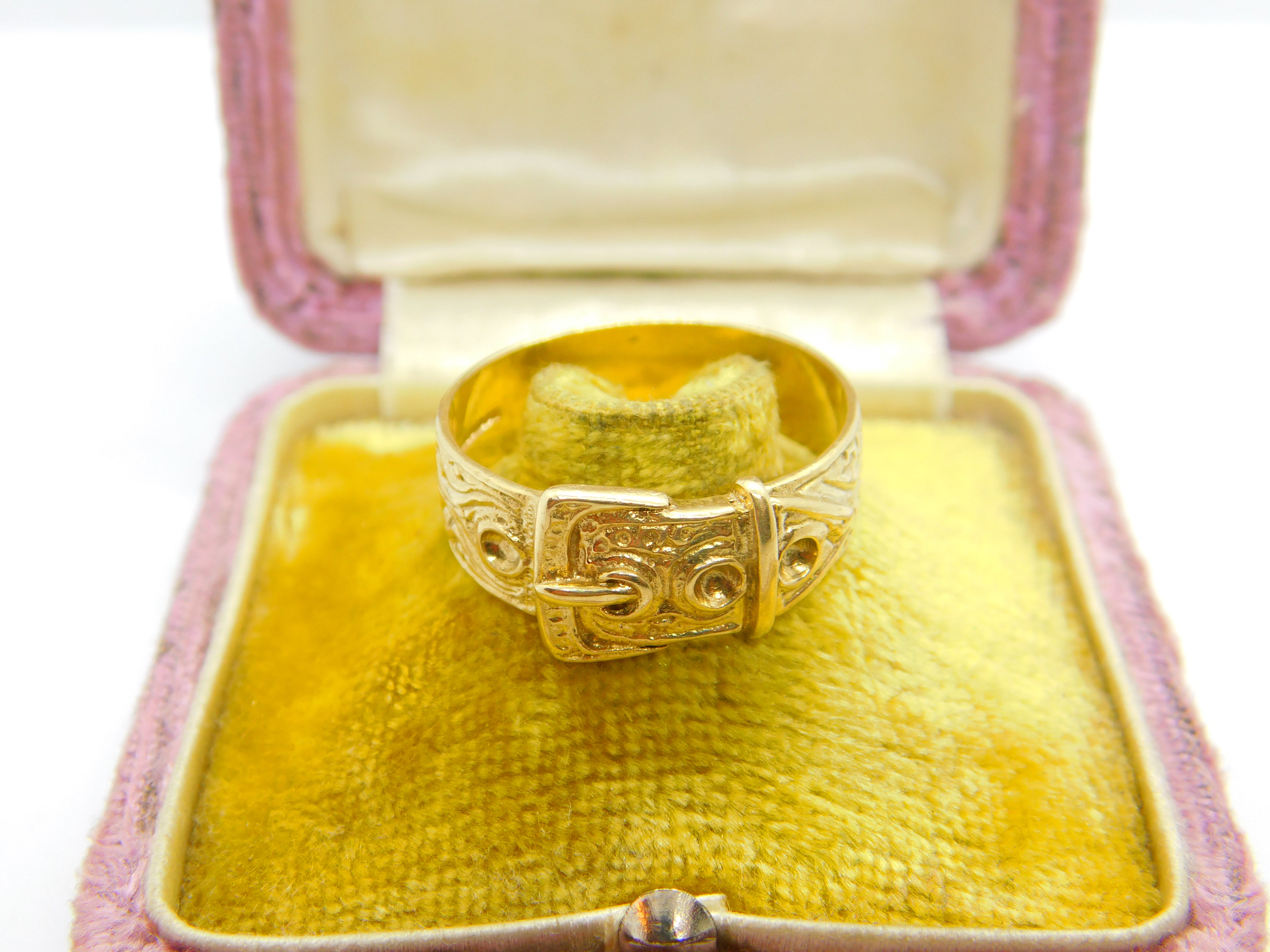 Details: A fantastic and wonderfully designed vintage 9ct yellow gold large buckle form band ring with lovely detailing hallmarked Birmingham 1962 to the interior. This is a wonderful item that would make a perfect gift or addition to any collection. The BOX pictured is for PRESENTATION ONLY and is NOT included in the listings but used to frame the pictures unless specifically stated otherwise.