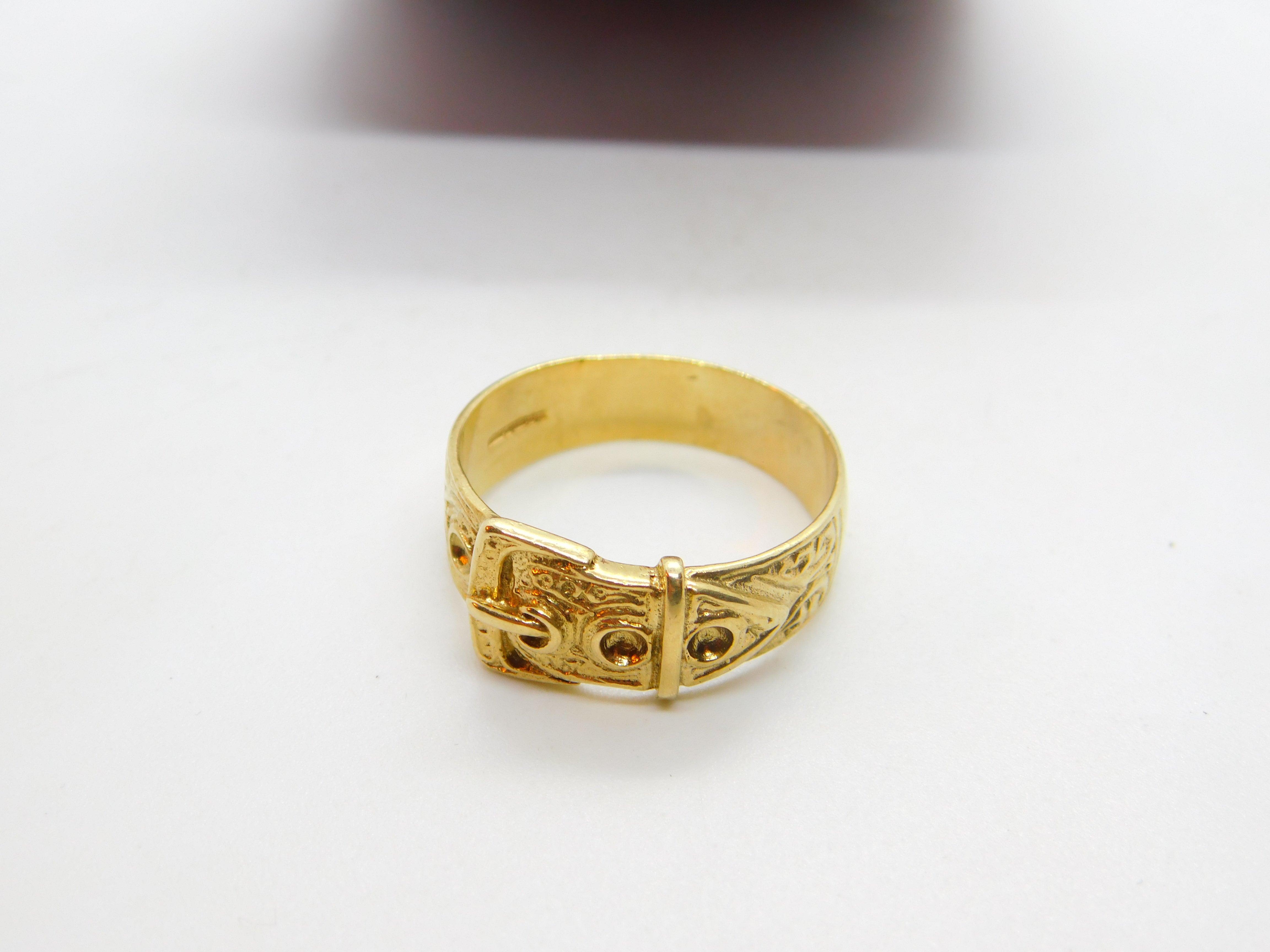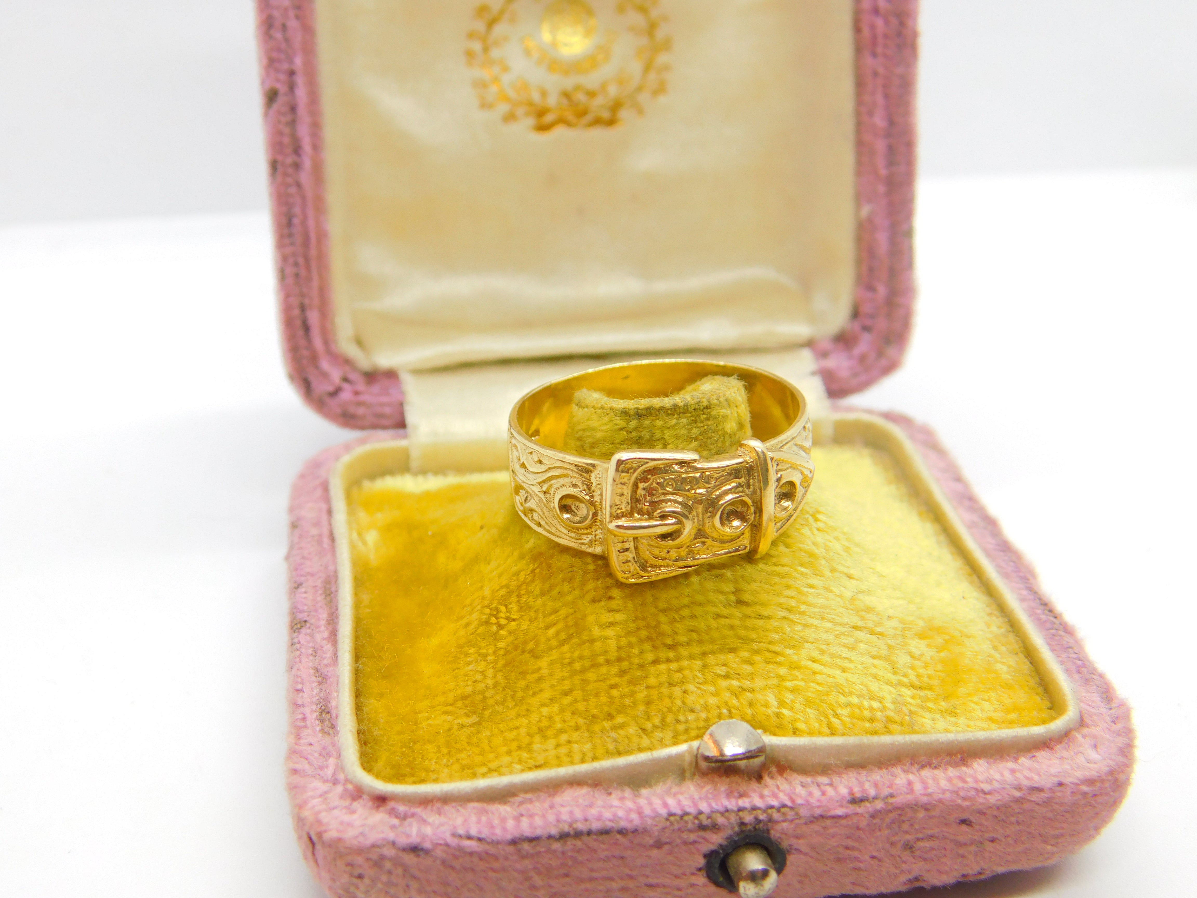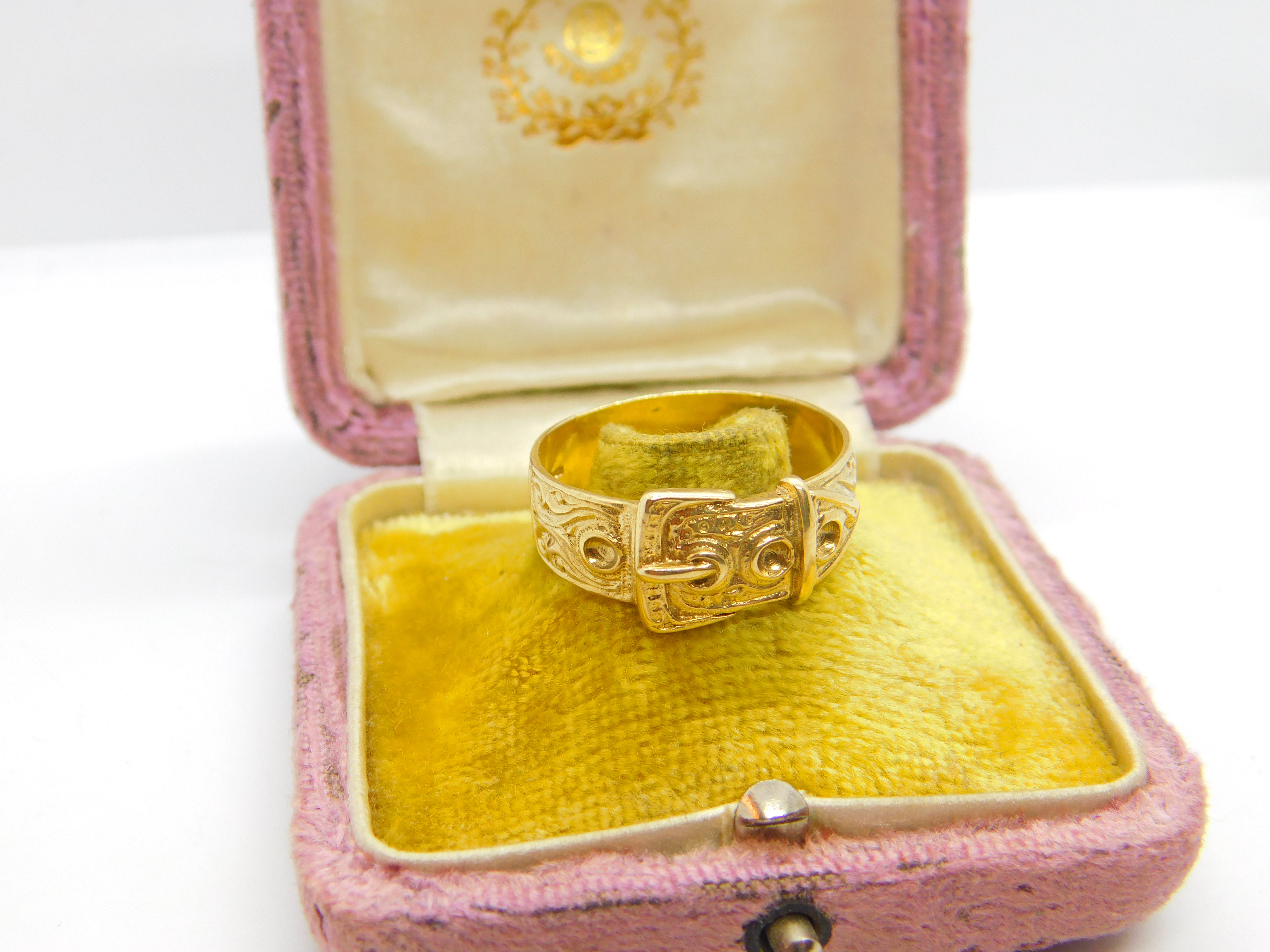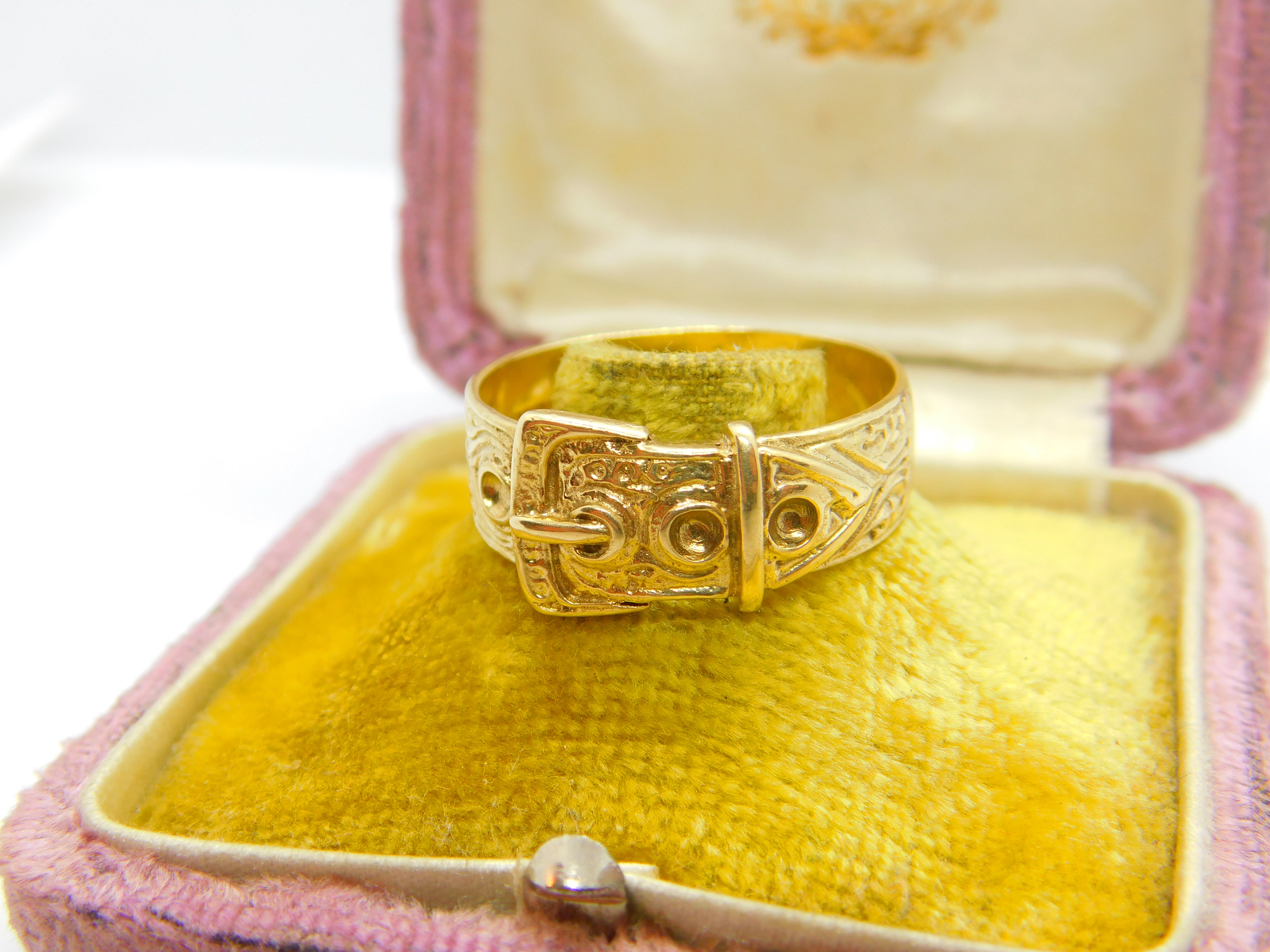 Details: A fantastic and wonderfully designed vintage 9ct yellow gold large buckle form band ring with lovely detailing hallmarked Birmingham 1962 to the interior. This is a wonderful item that would make a perfect gift or addition to any collection. The BOX pictured is for PRESENTATION ONLY and is NOT included in the listings but used to frame the pictures unless specifically stated otherwise.