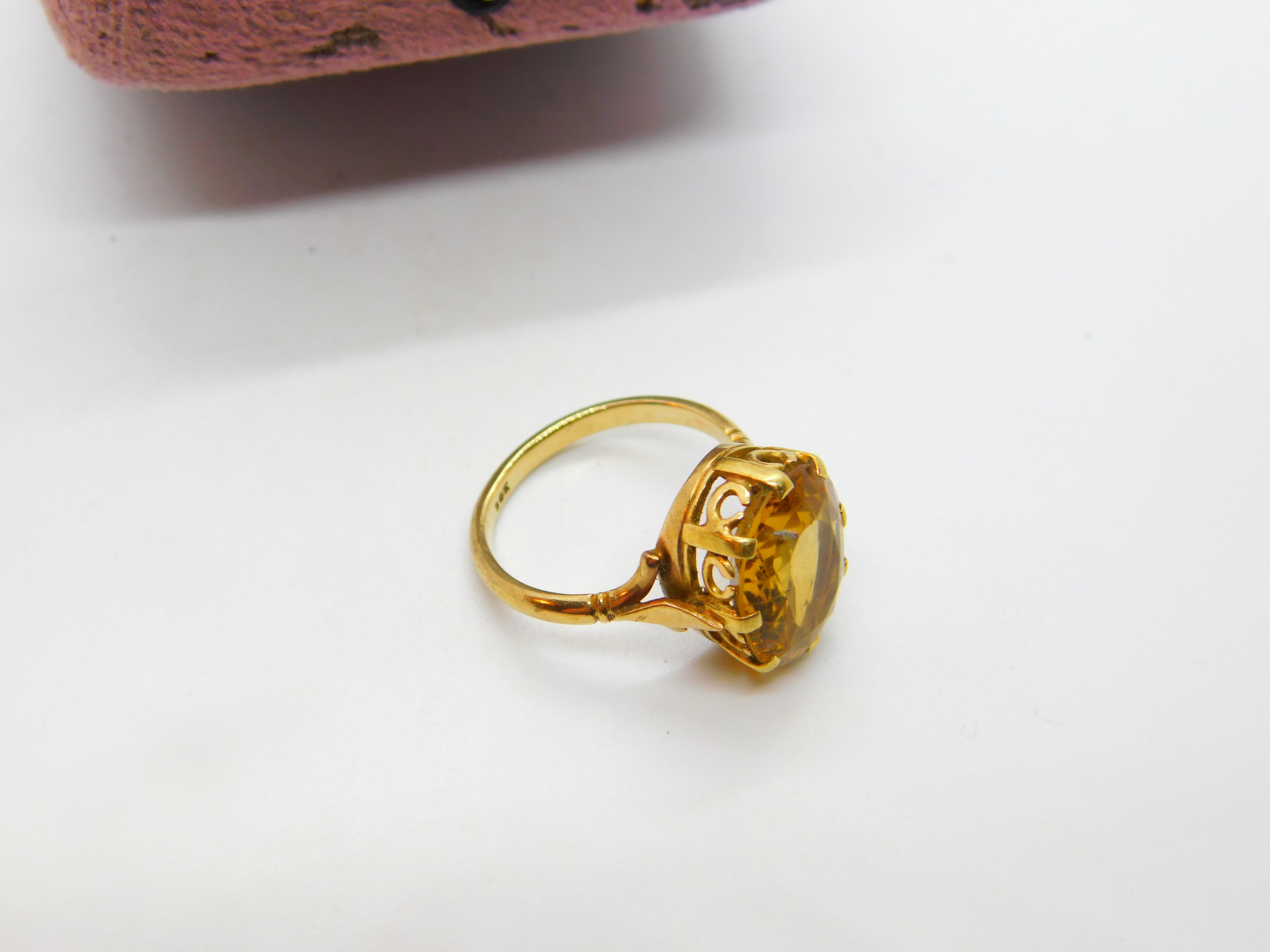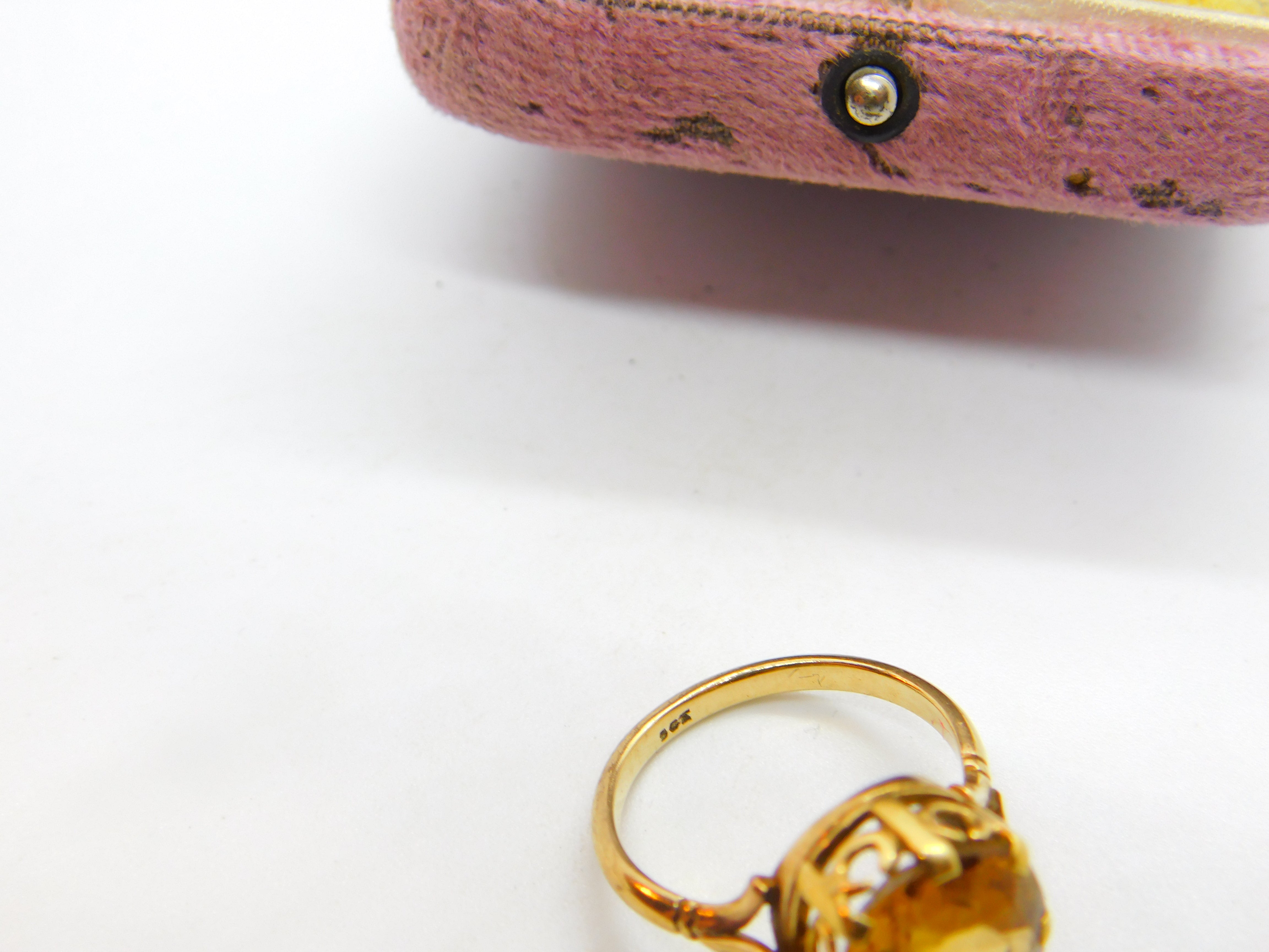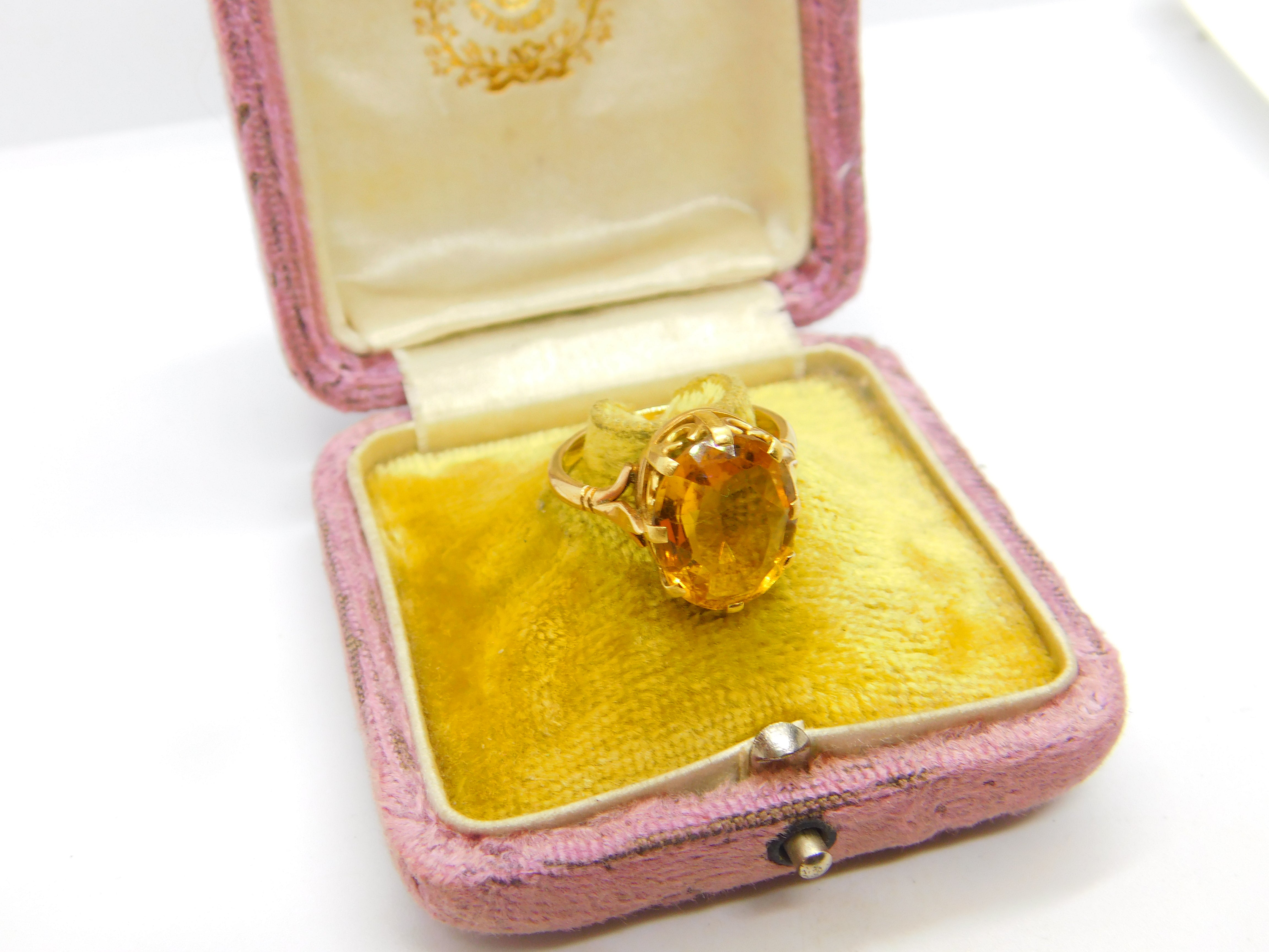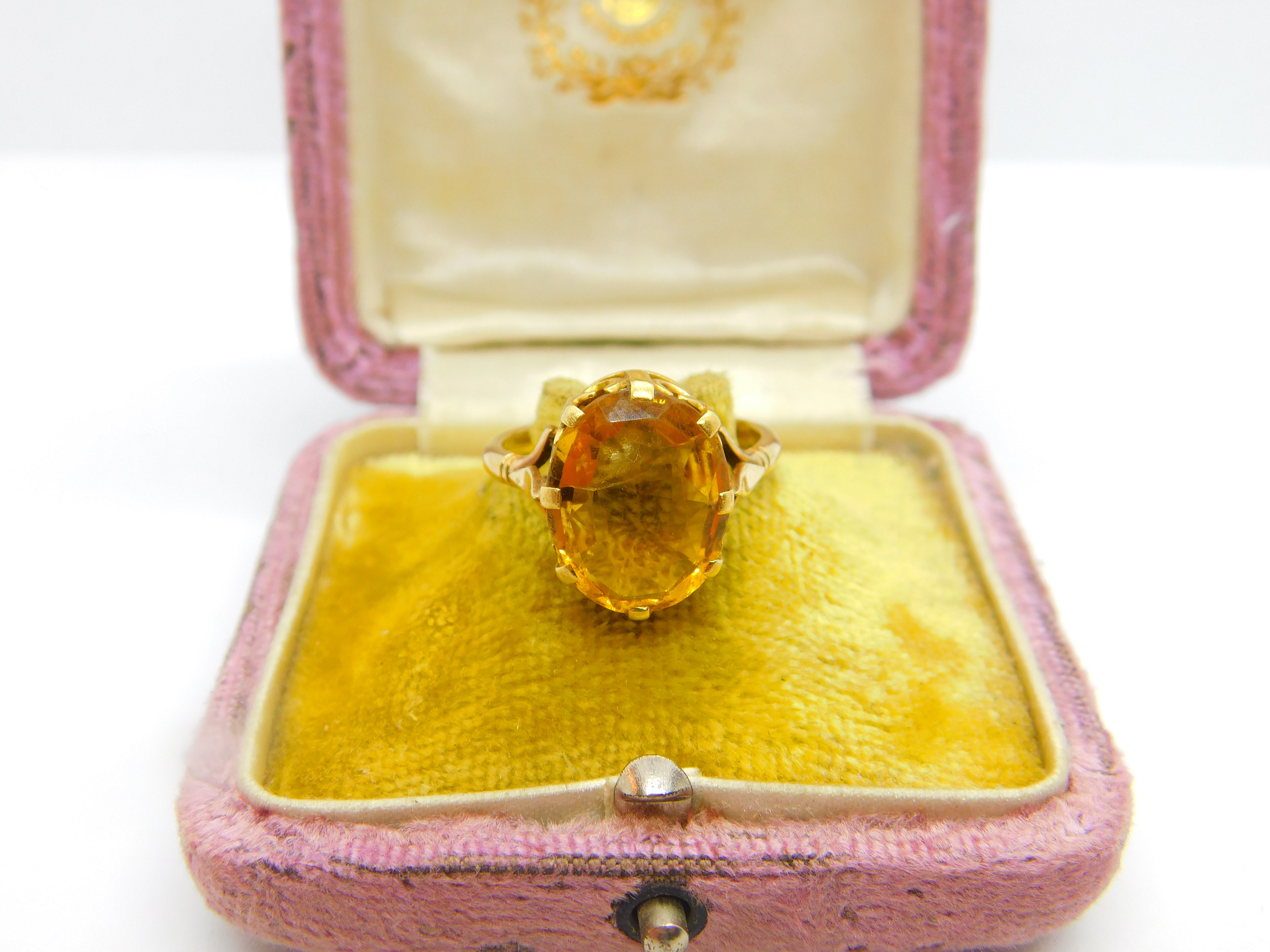 9ct Yellow Gold Citrine Set Cocktail Ring Antique c1920 Art Deco