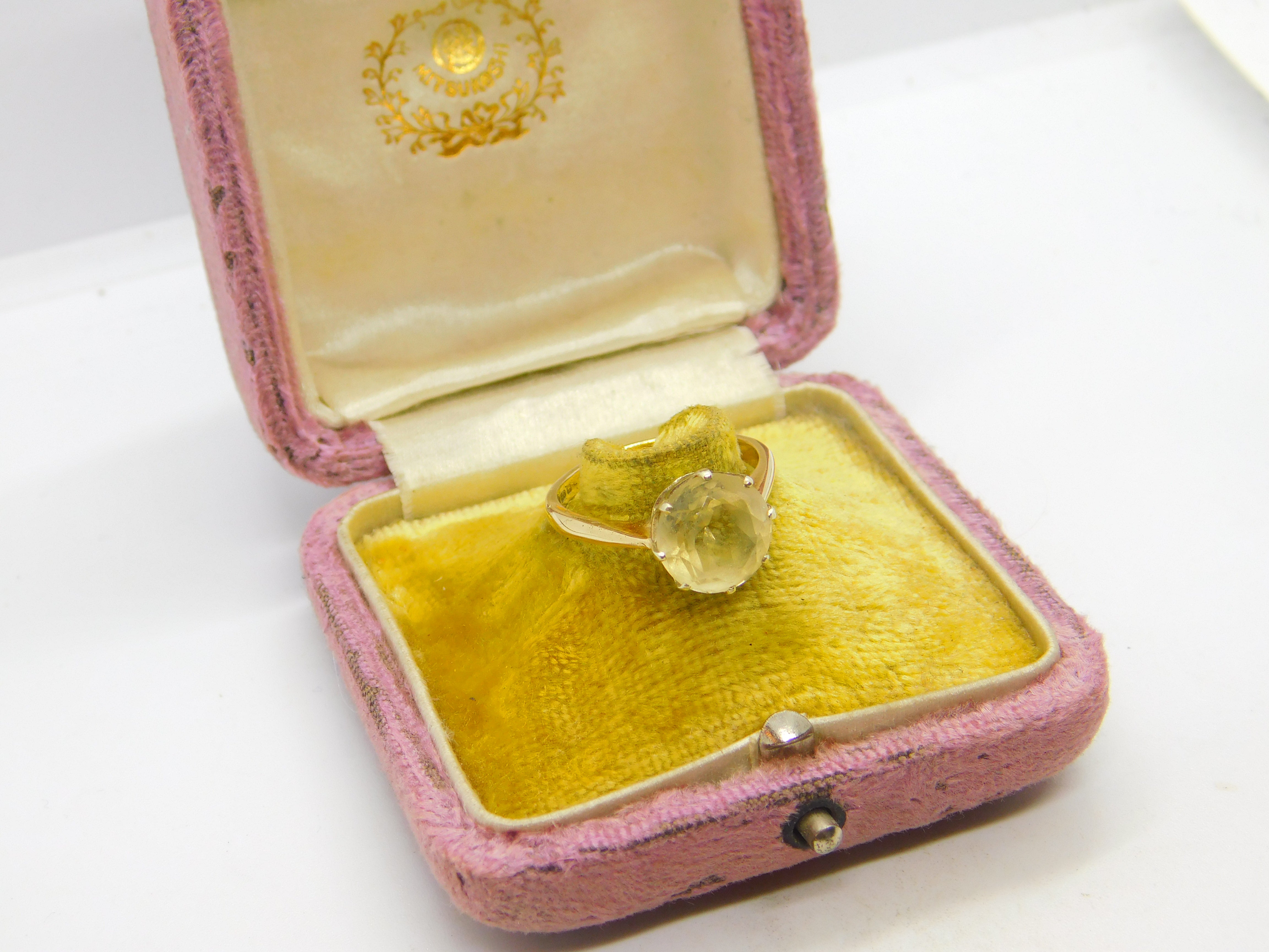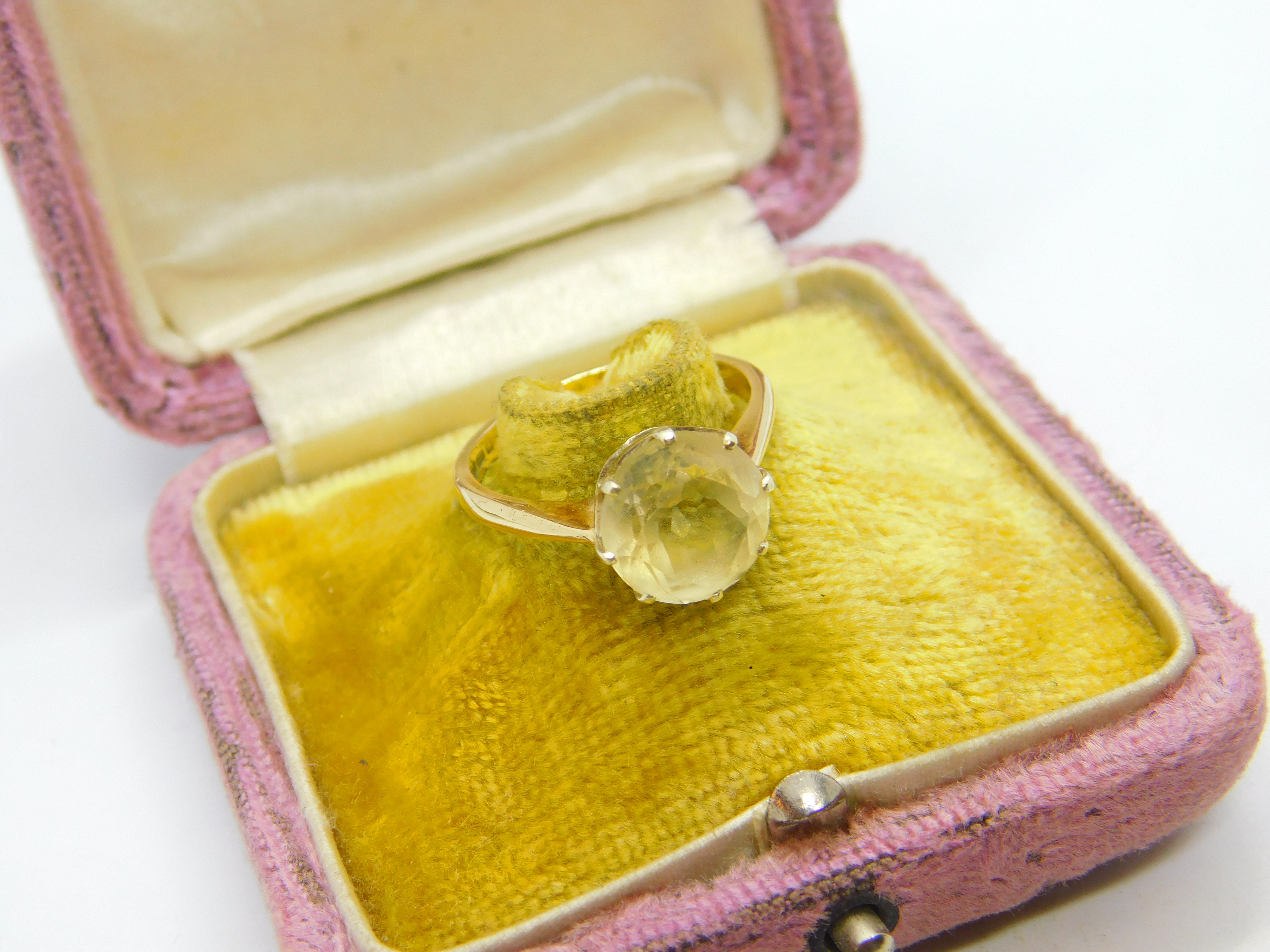 9ct Yellow Gold & Citrine Set Solitaire Ring Vintage c1970 Sheffield