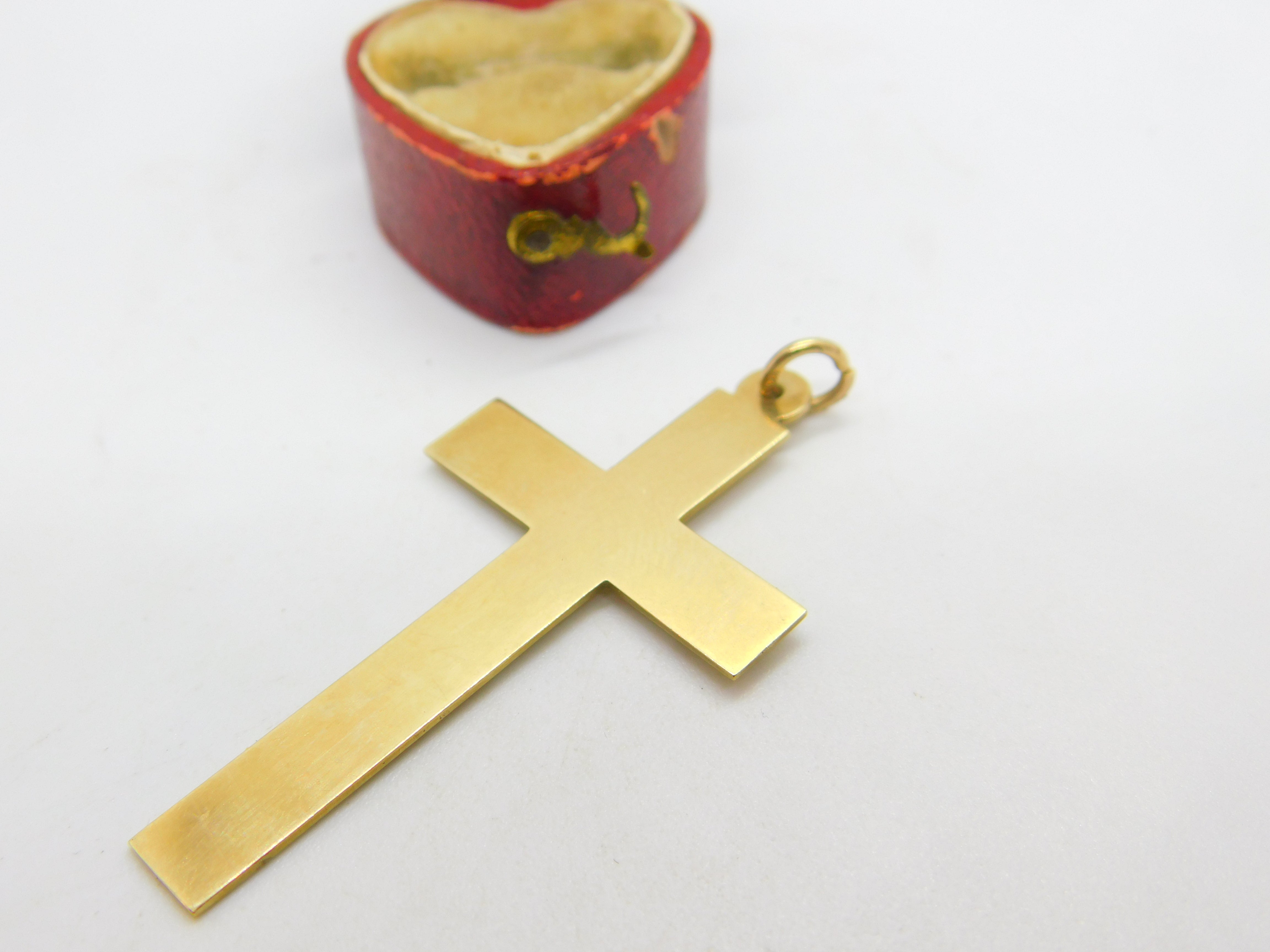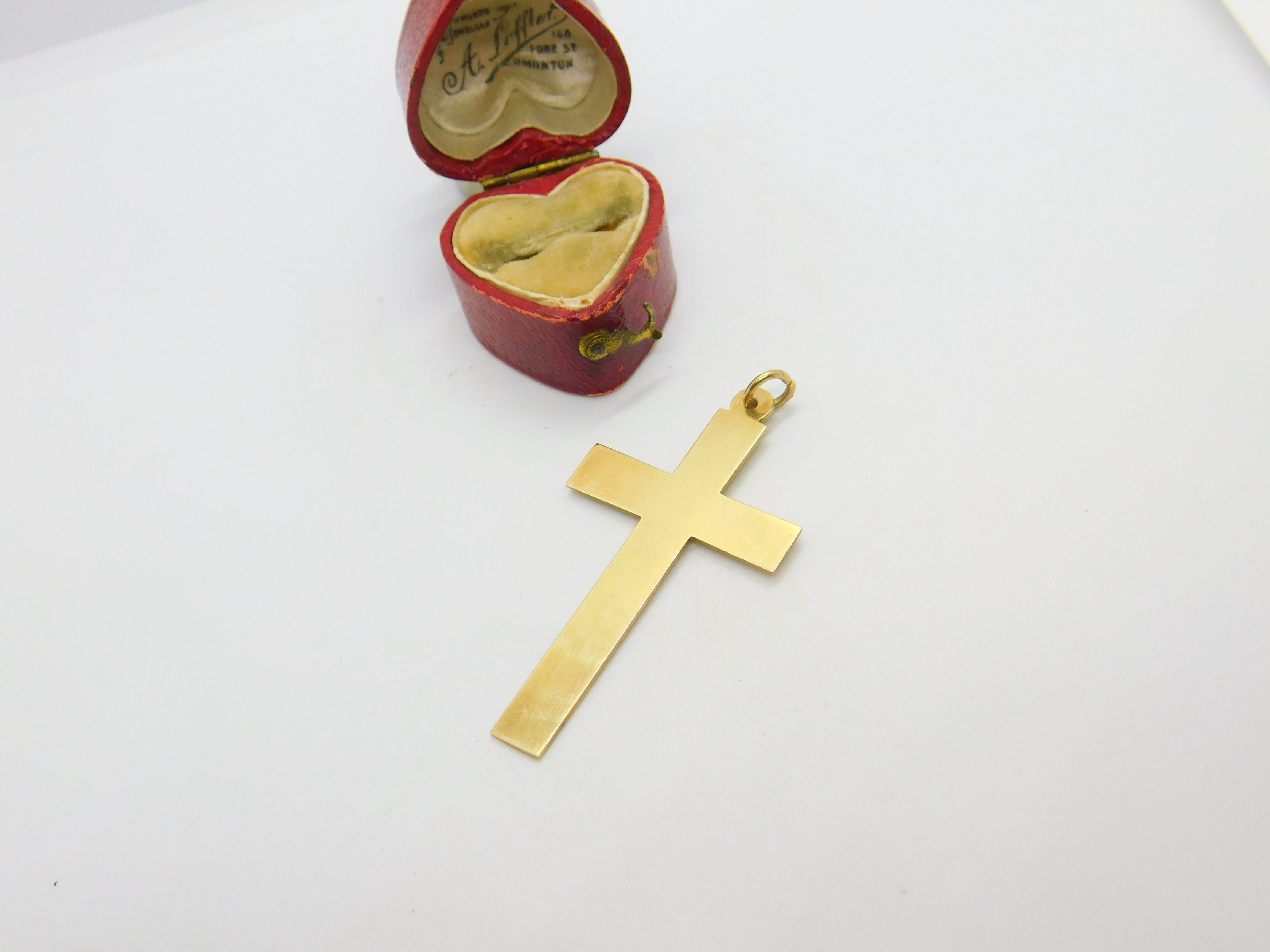 Dating from the time of World War II, this is a simple but charming vintage 9ct yellow gold cross pendant. Stamped with the English Chester assay office along with the date letter for the year 1939. All in good order and a wonderful size please see the pictures.