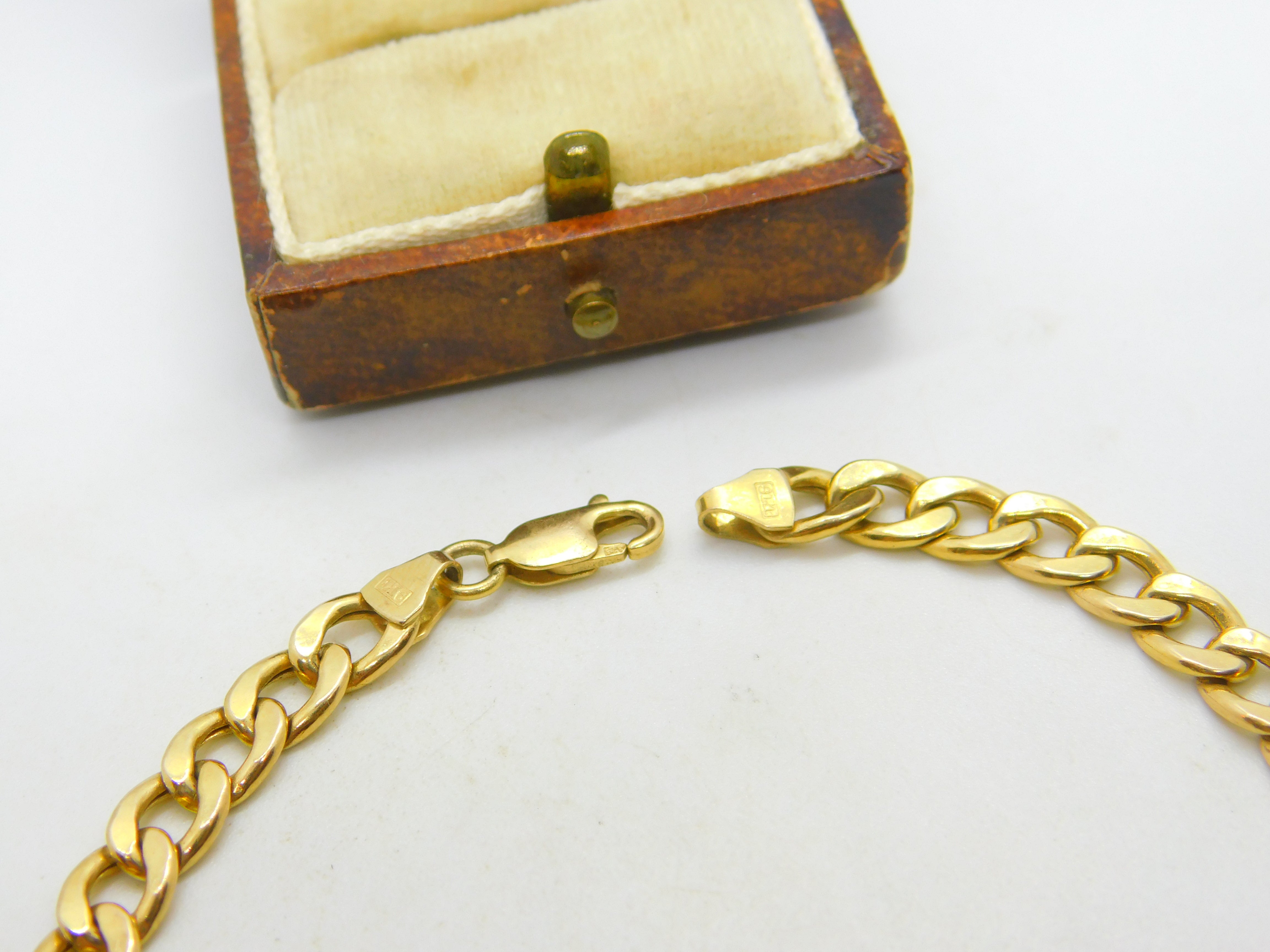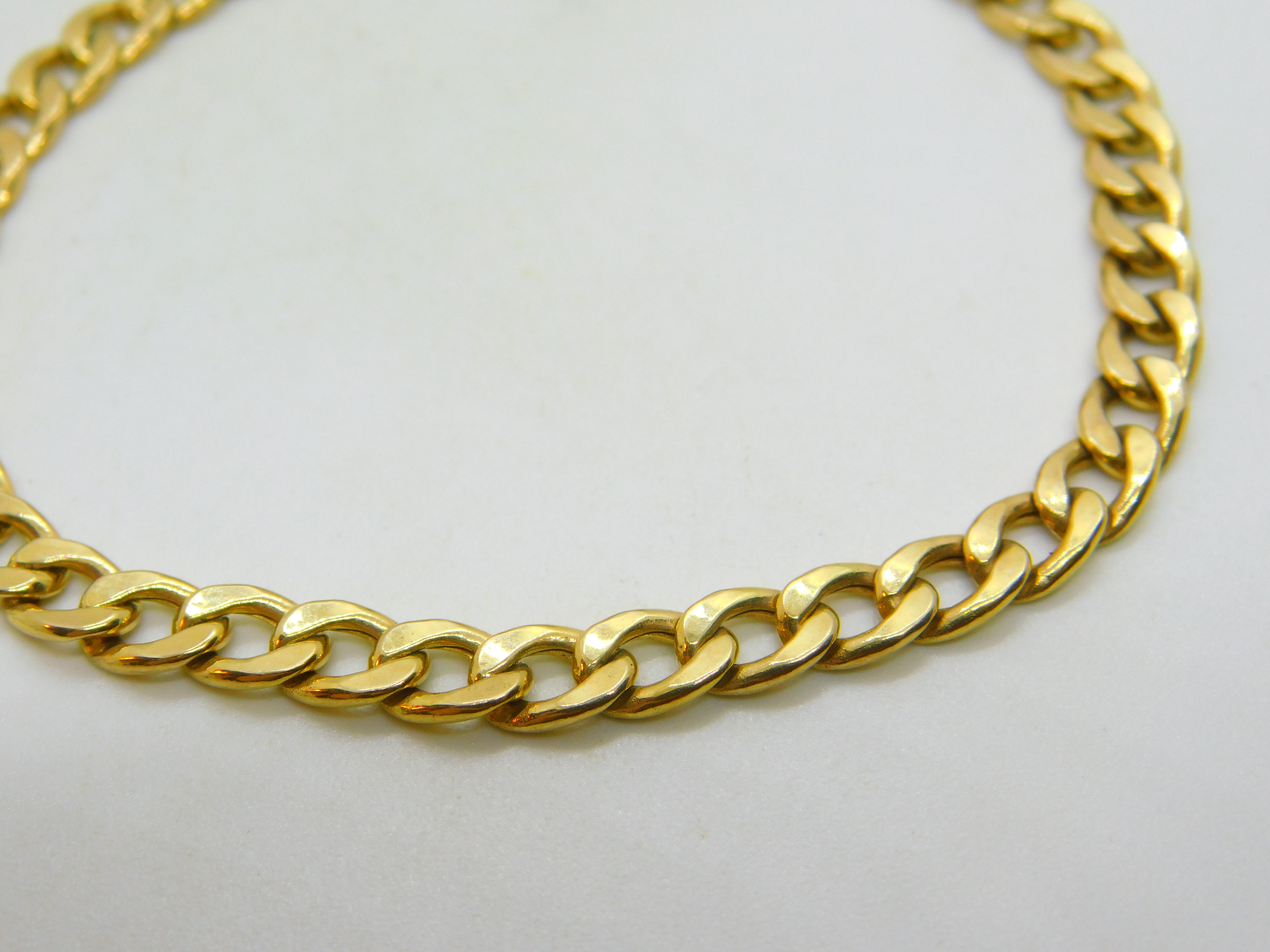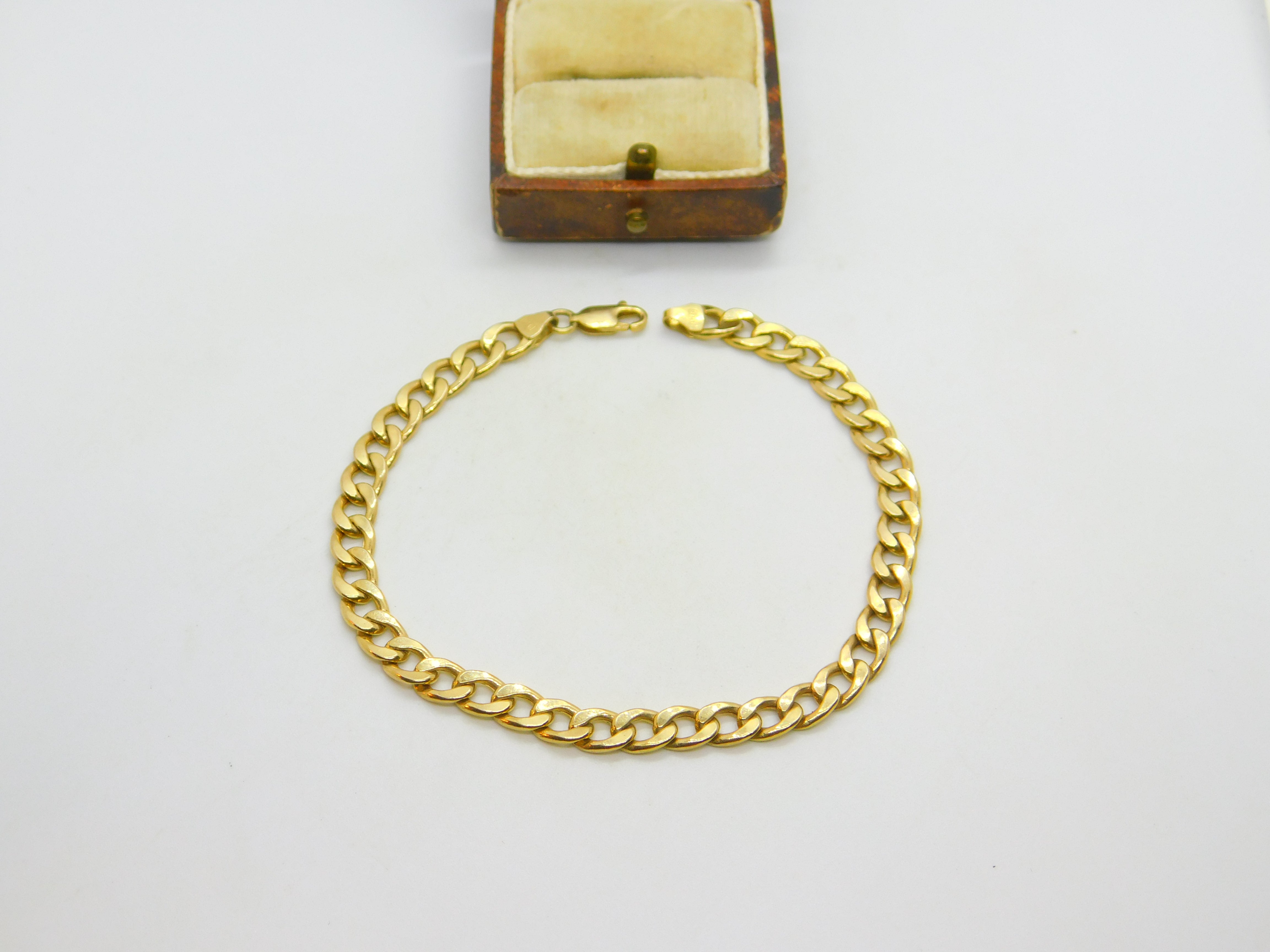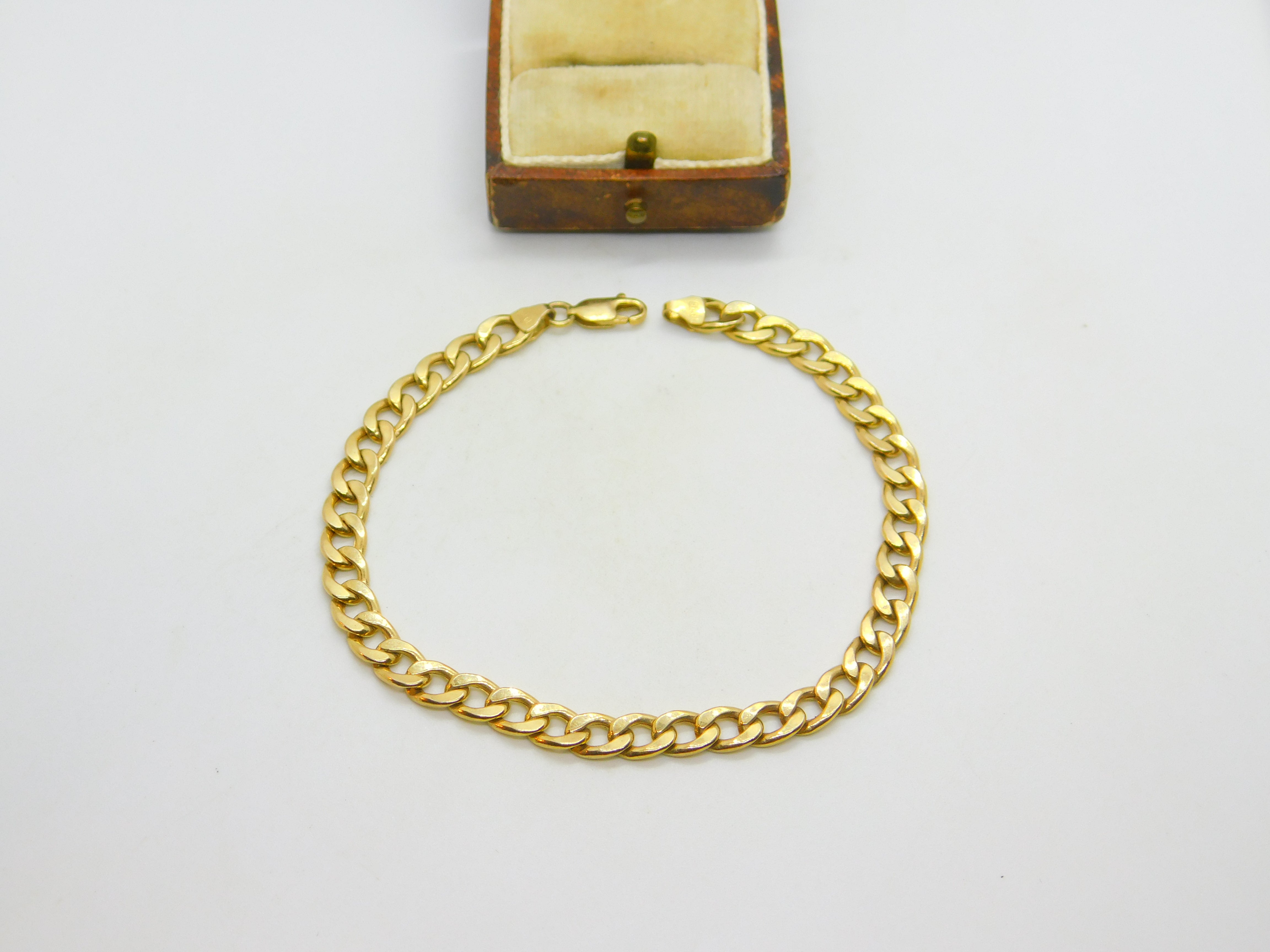 9ct Yellow Gold Curb Link Chain Bracelet Vintage c1980 7.8" Length