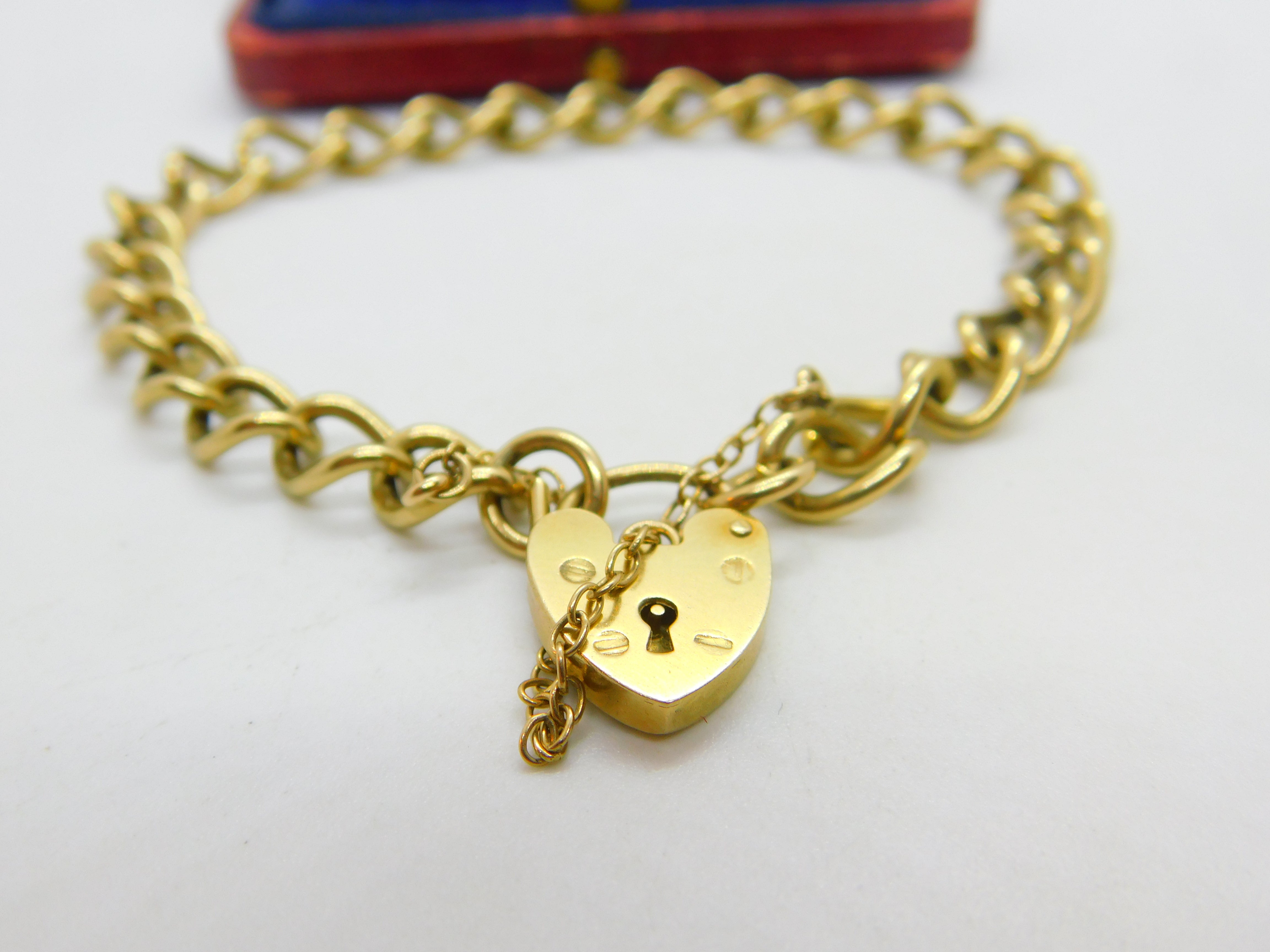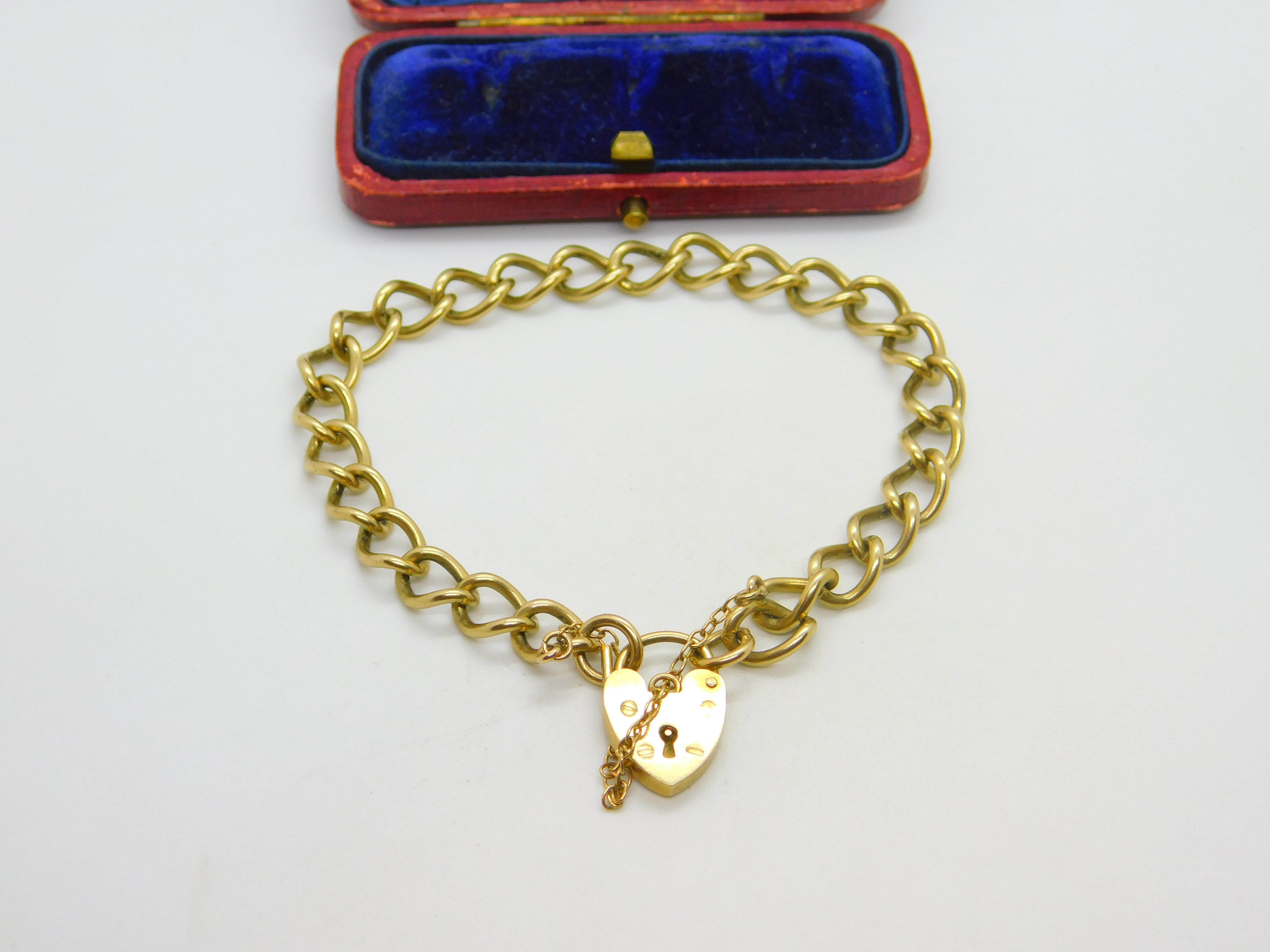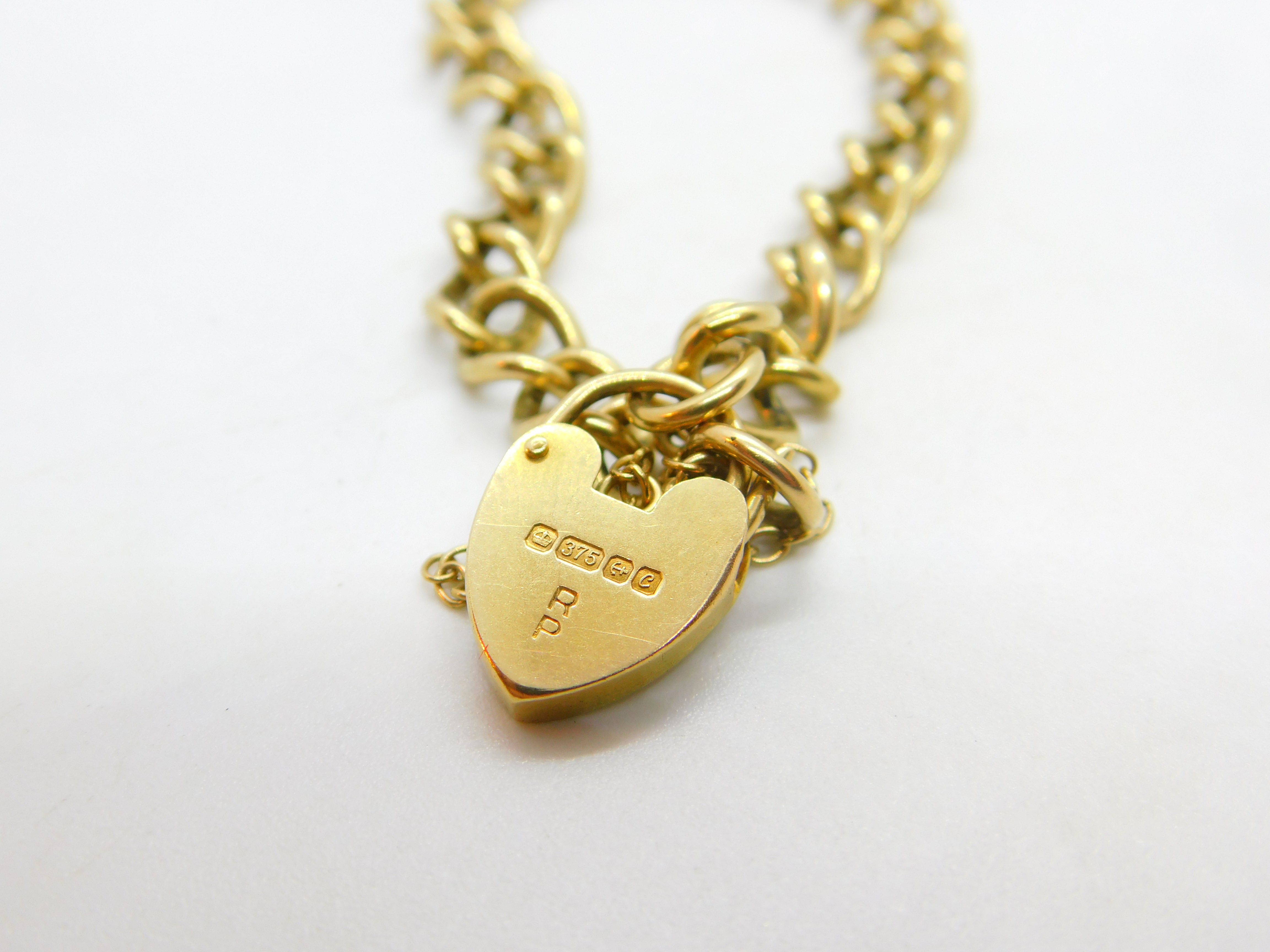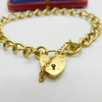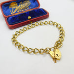 9ct Yellow Gold Curb Link Charm Bracelet Heart Lock Clasp 1977 Birmingham