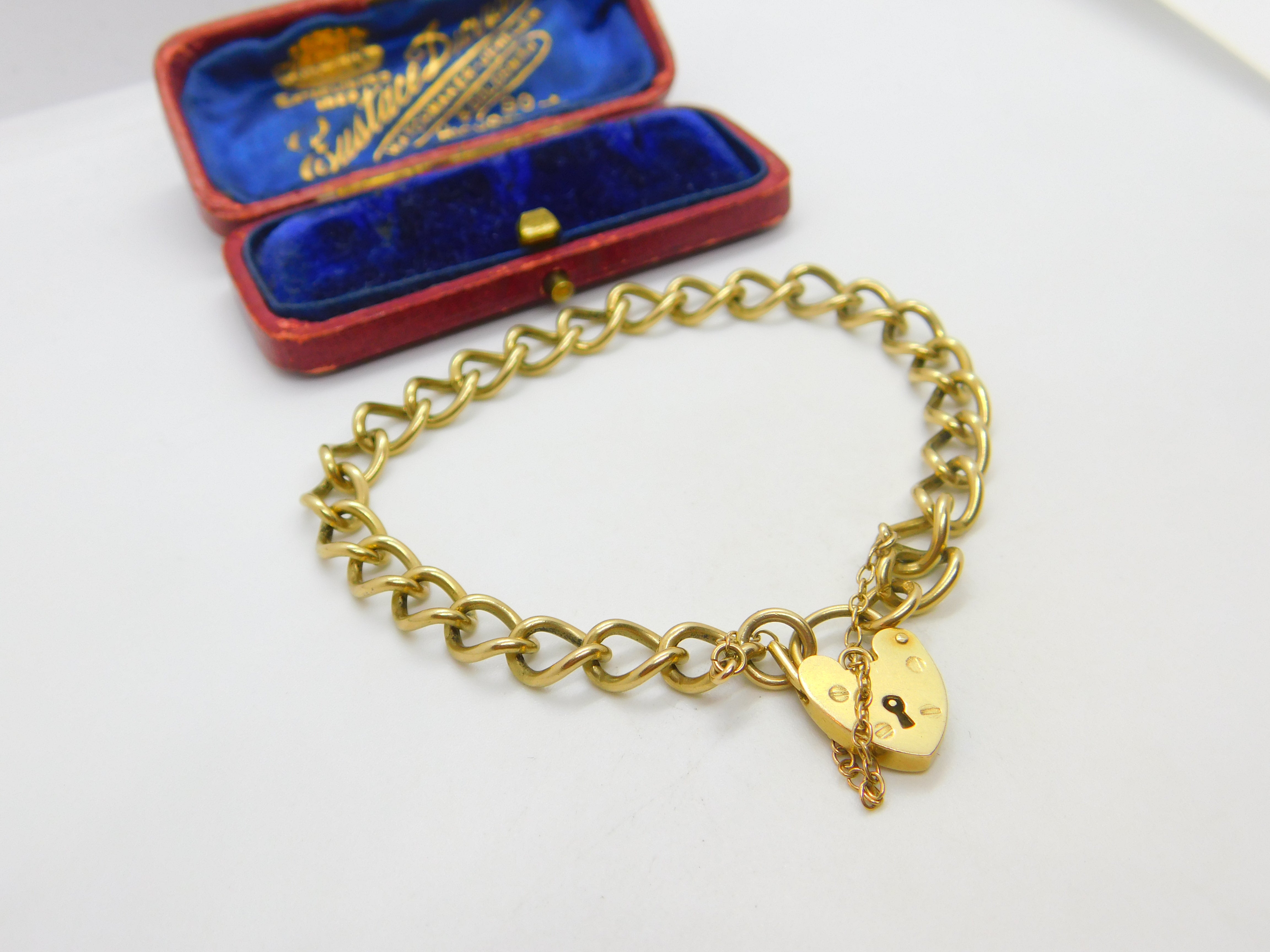 Details: A fantastic and wonderfully designed vintage 9ct yellow gold curb link charm bracelet with heart lock clasp hallmarked Birmingham 1977 to the reverse. This is a wonderful item that would make a perfect gift or addition to any collection. The BOX pictured is for PRESENTATION ONLY and is NOT included in the listings but used to frame the pictures unless specifically stated otherwise.