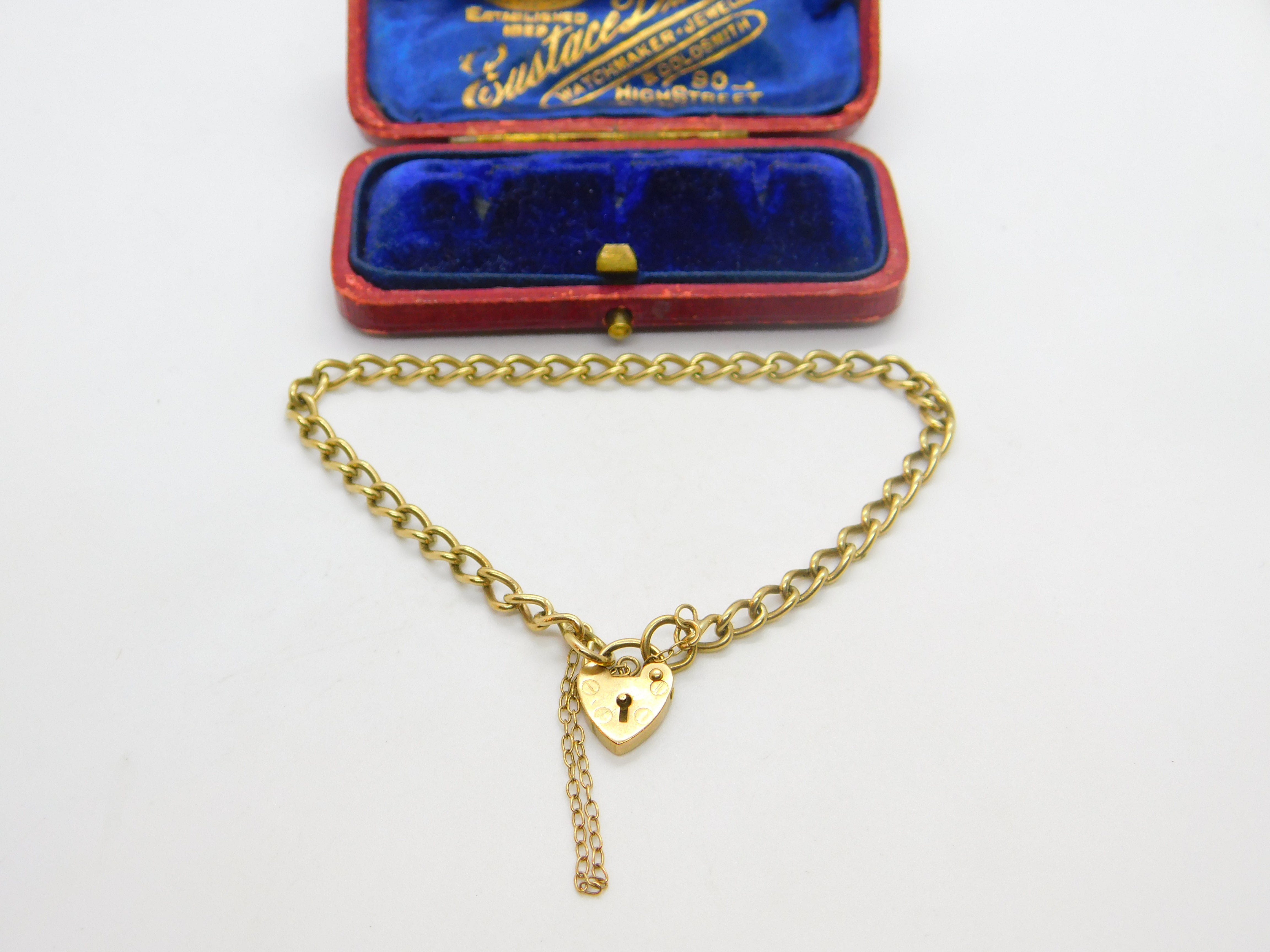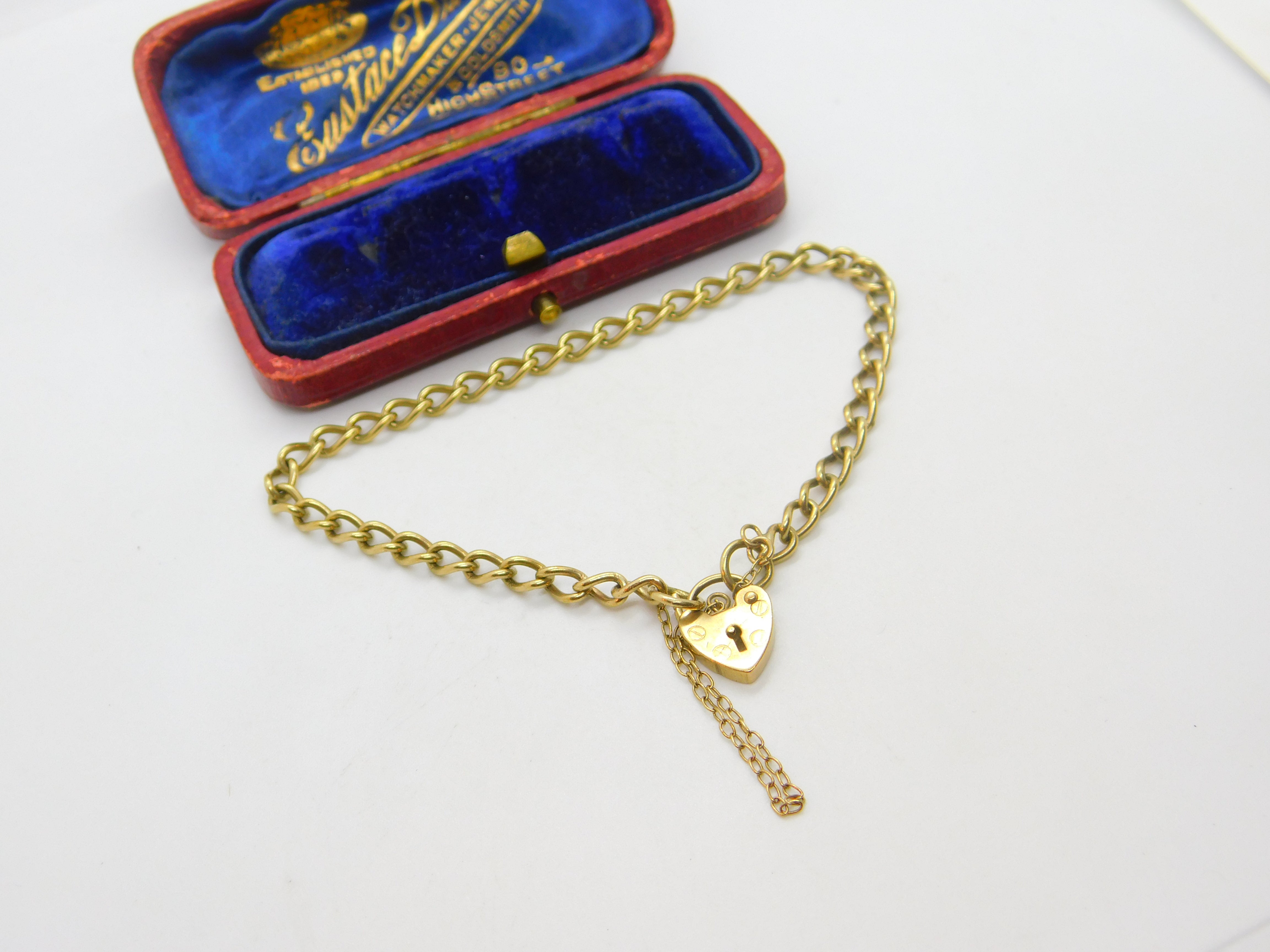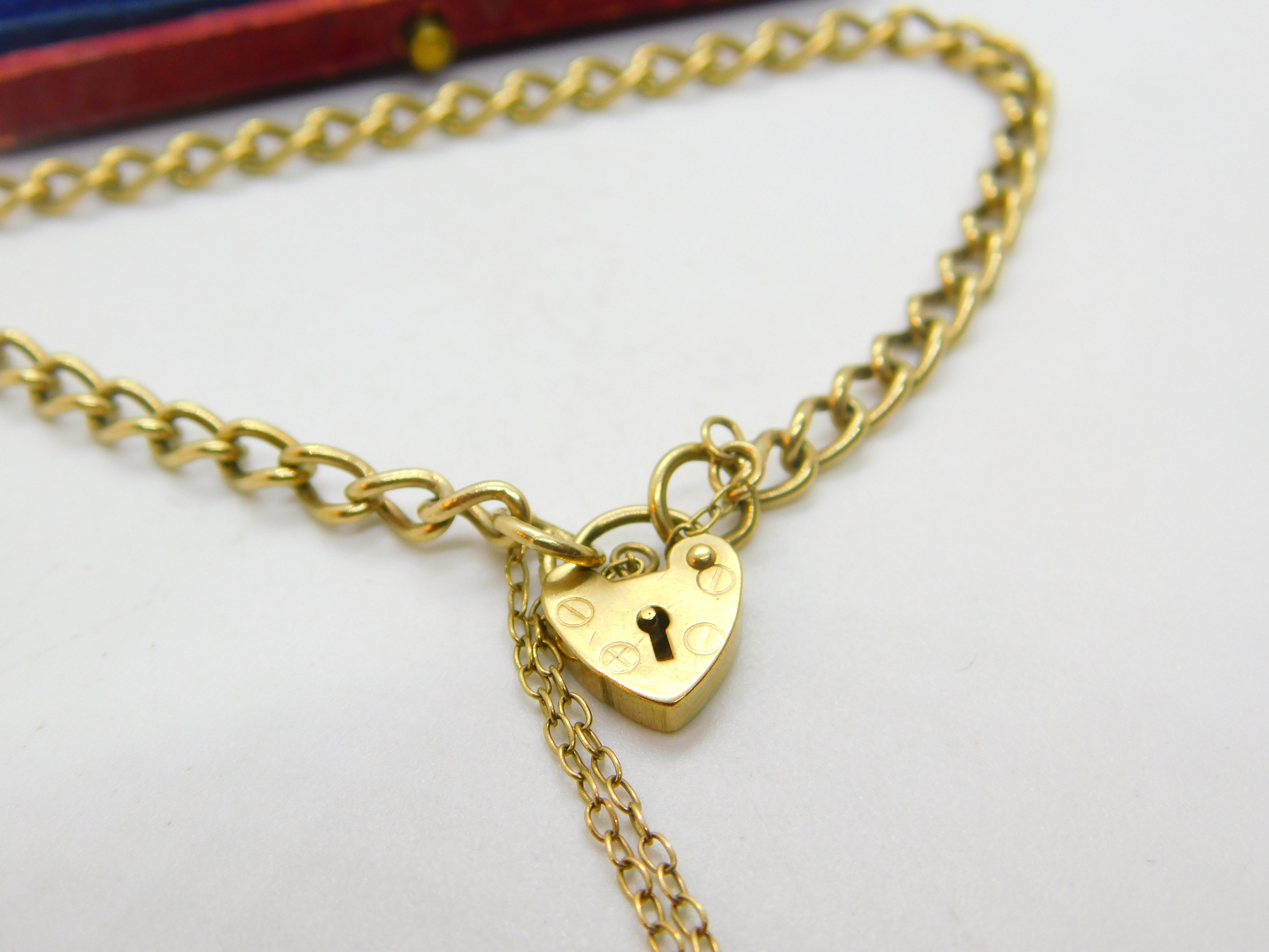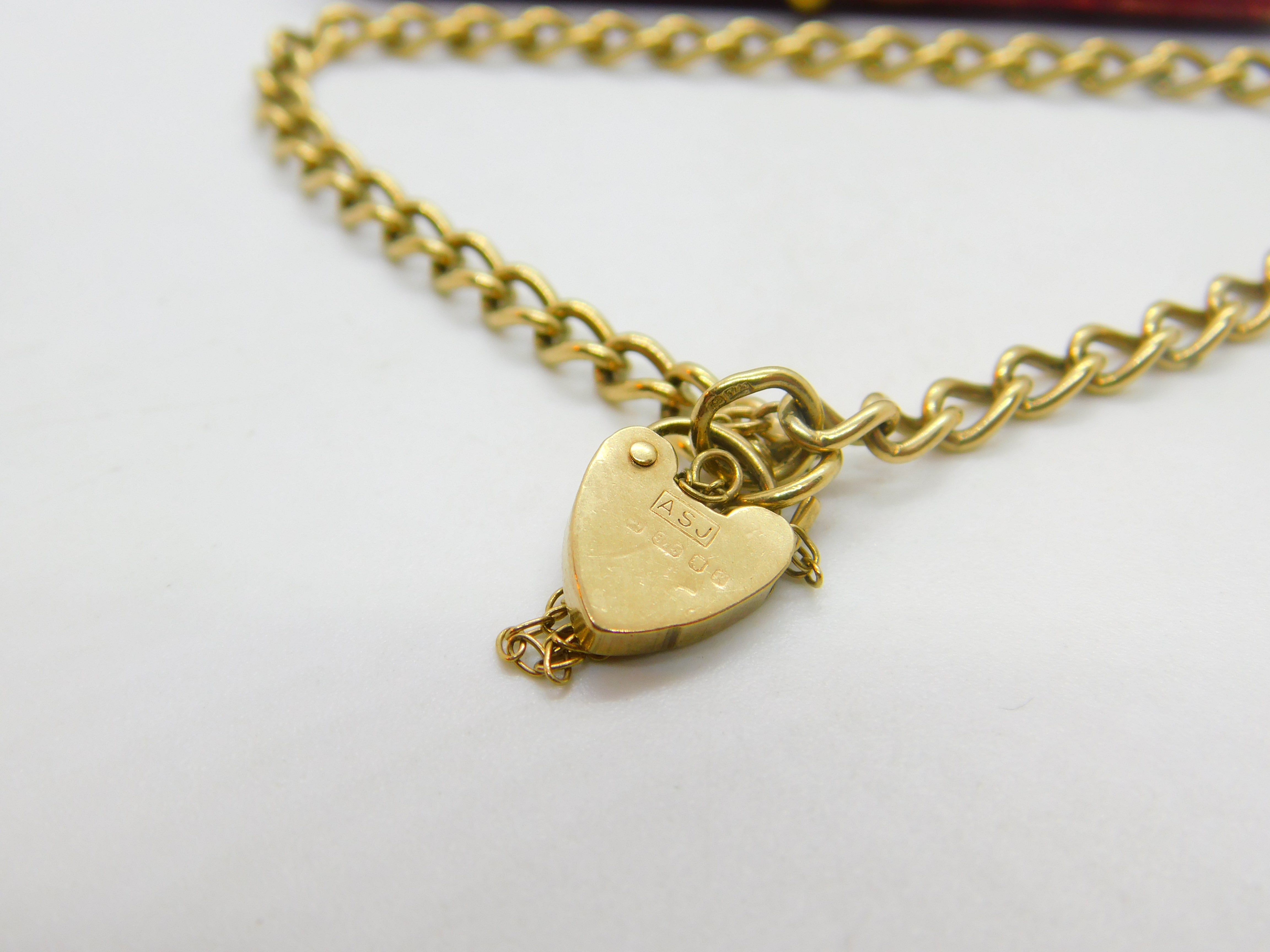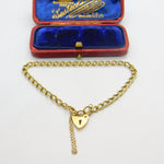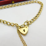 9ct Yellow Gold Curb Link Charm Bracelet with Heart Lock Clasp 1984 London