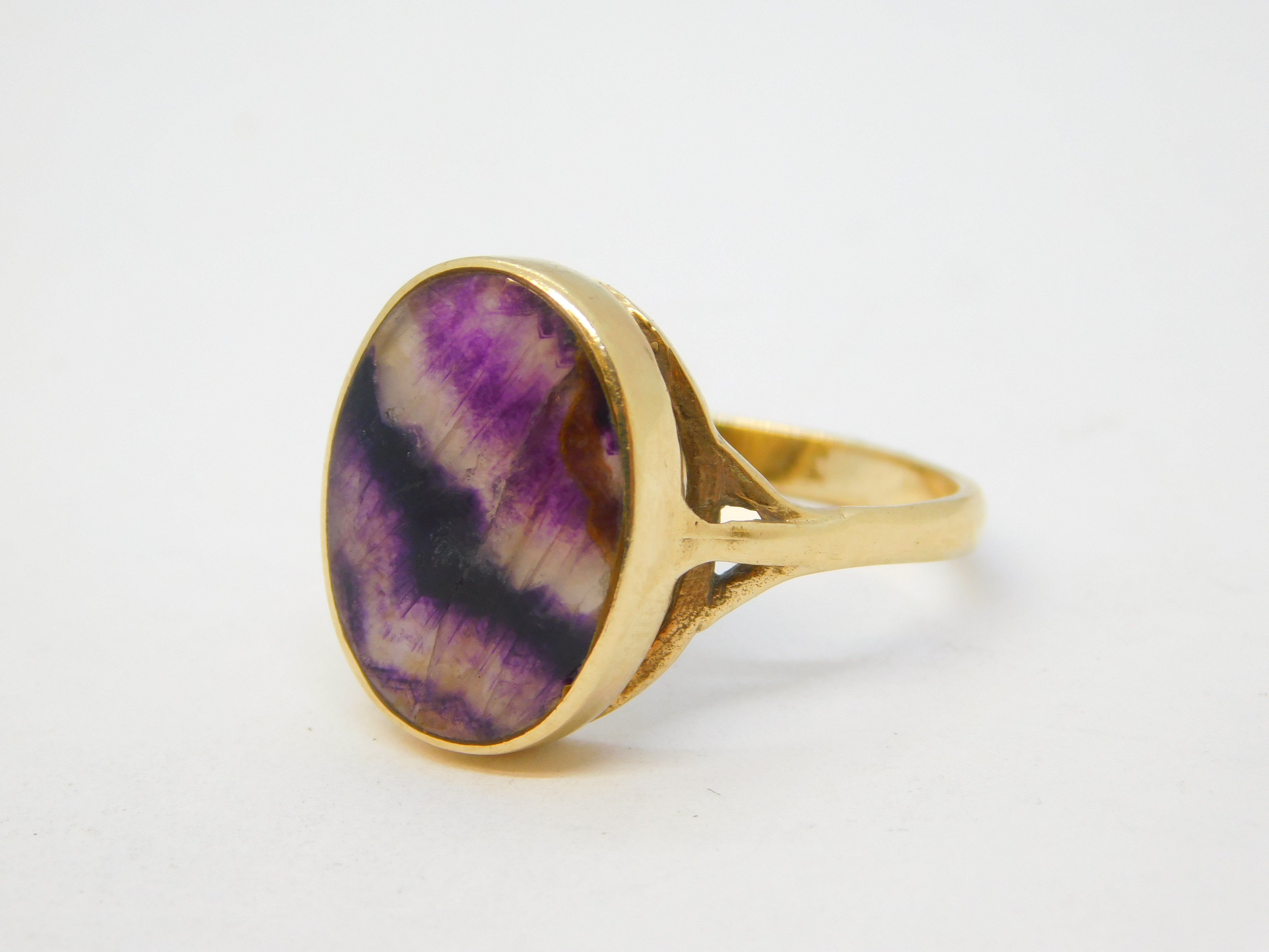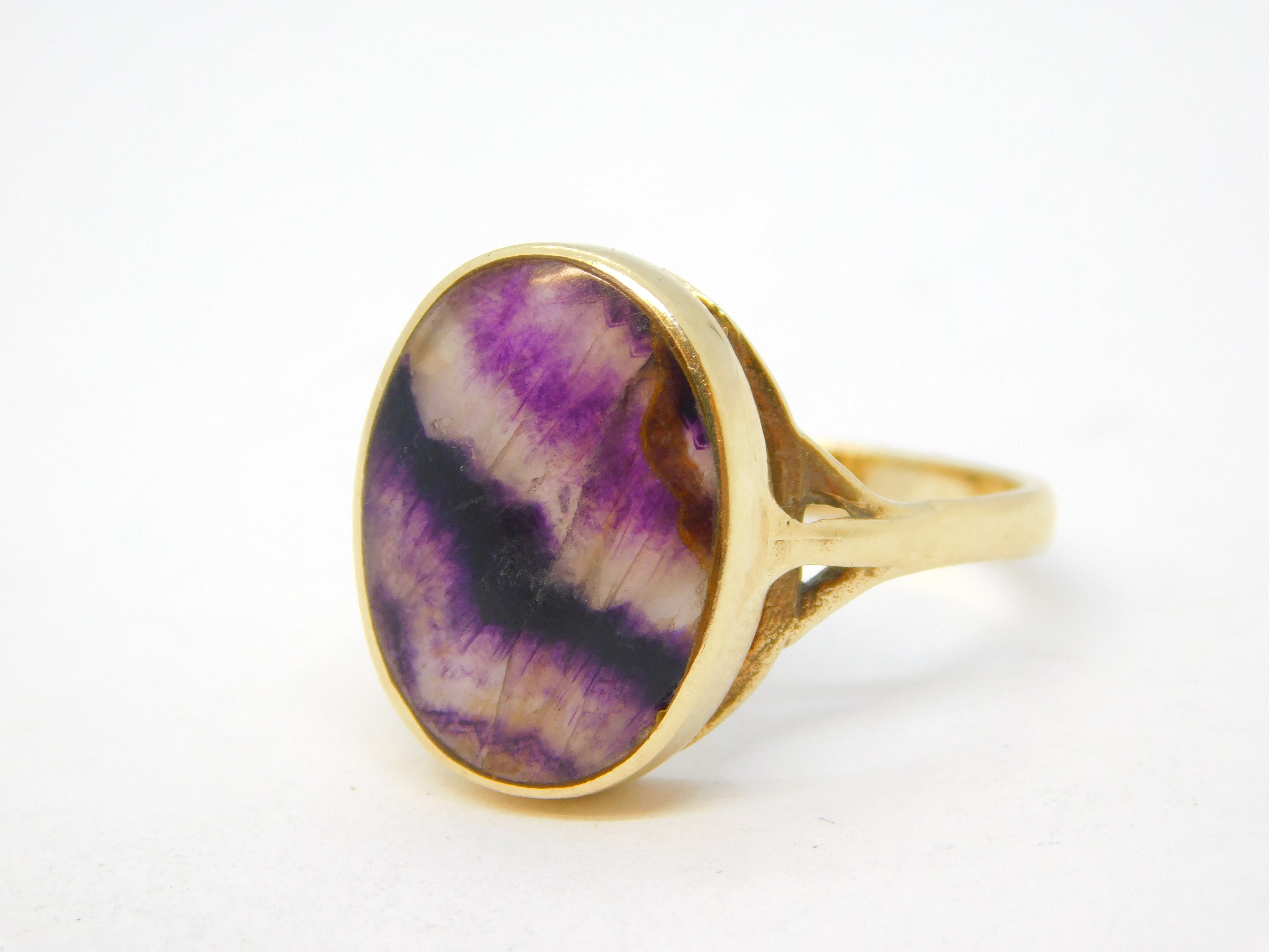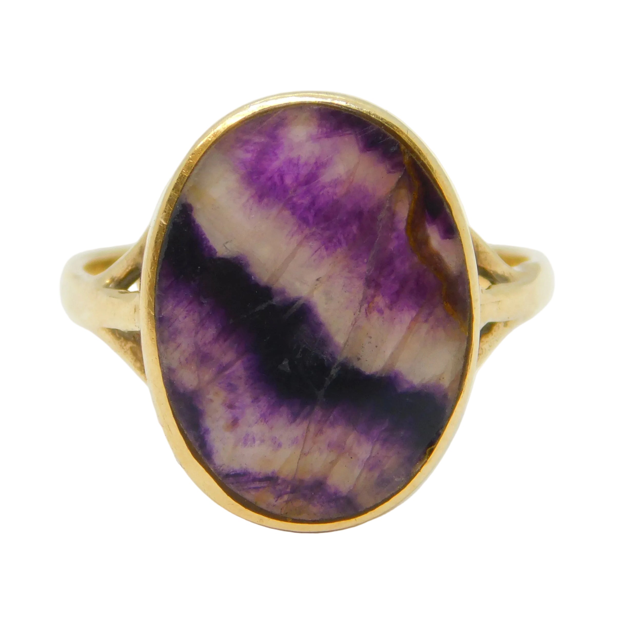 9ct Yellow Gold & Derbyshire Blue John Dress Ring Vintage London c1970