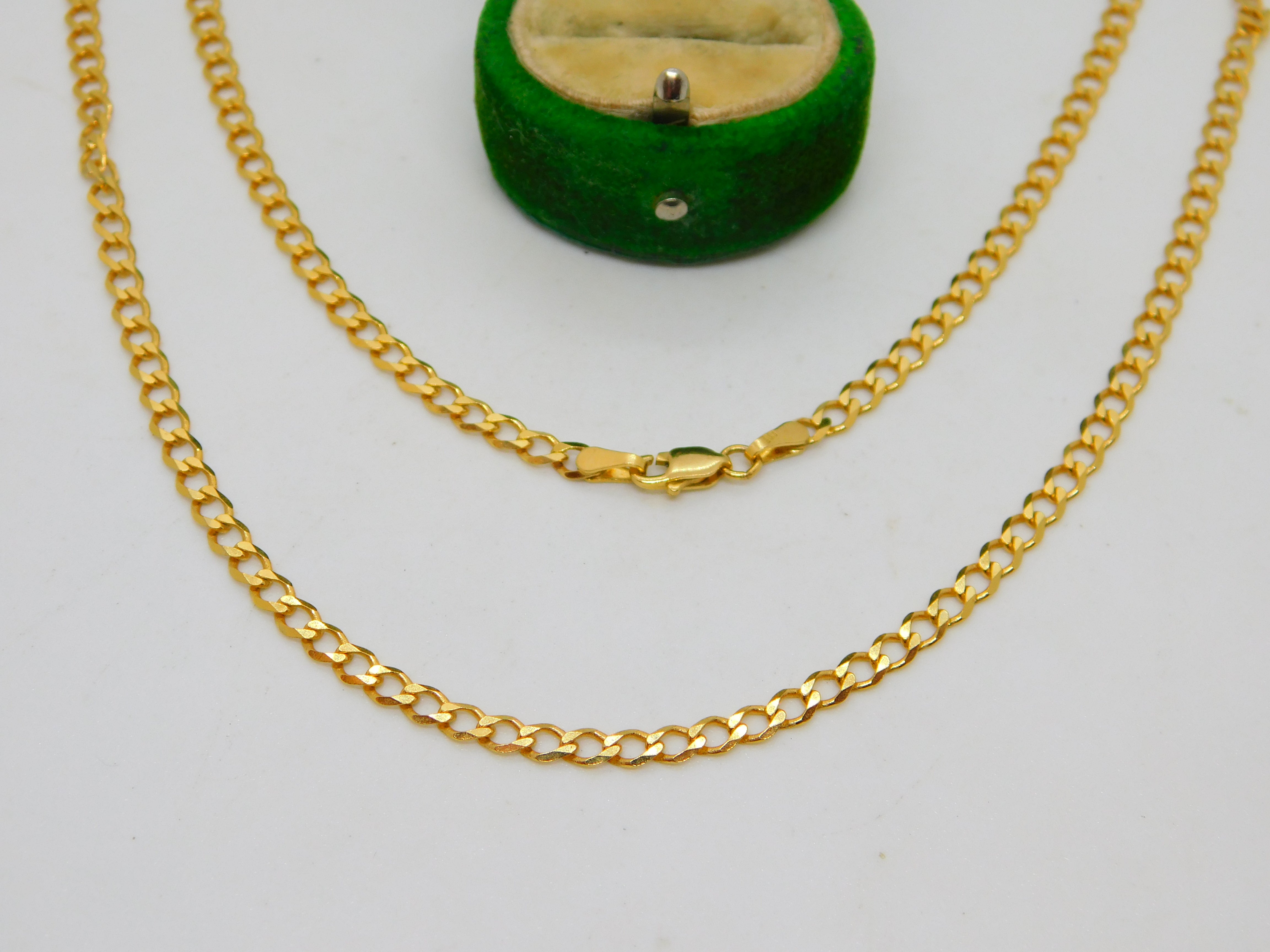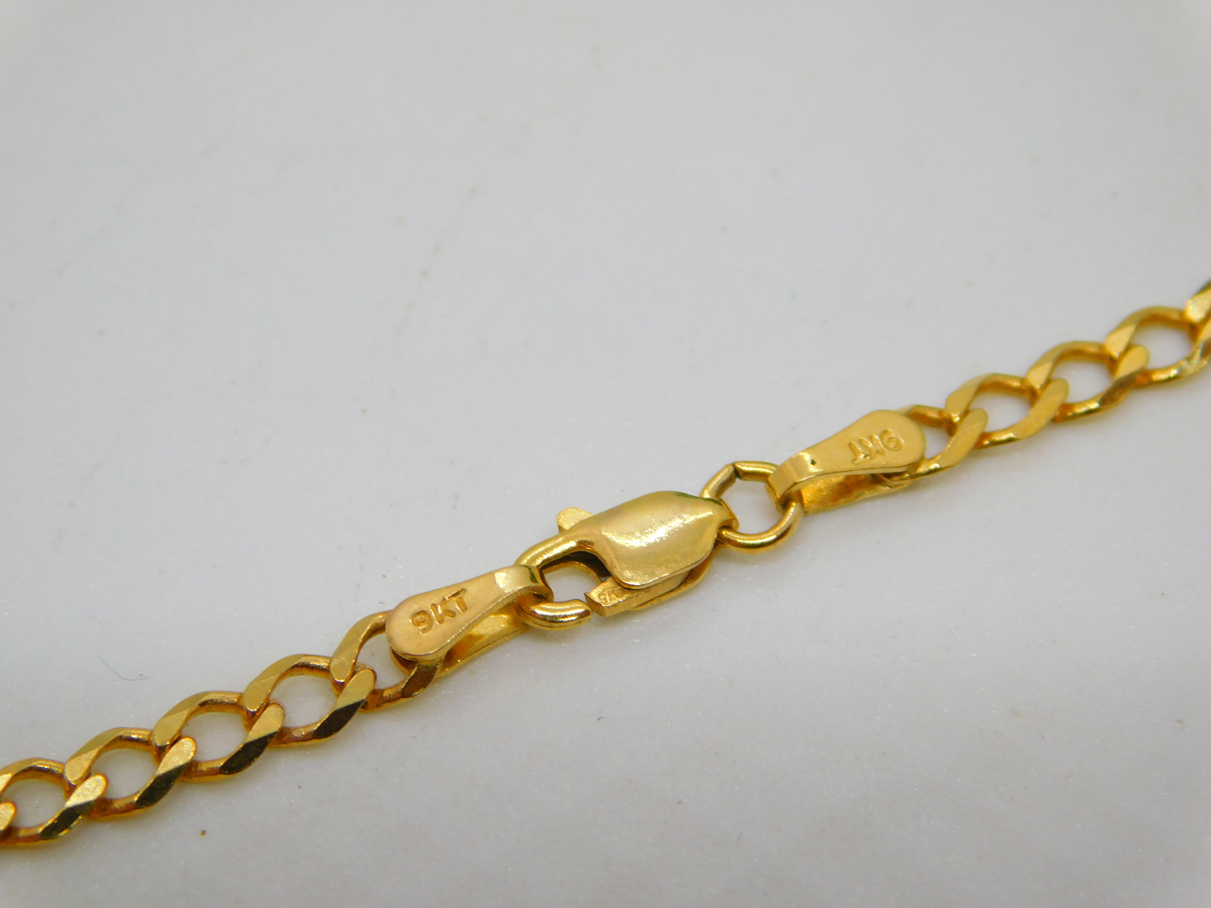 9ct Yellow Gold Diamond Cut Curb Chain Necklace Vintage c1980 46cm Length