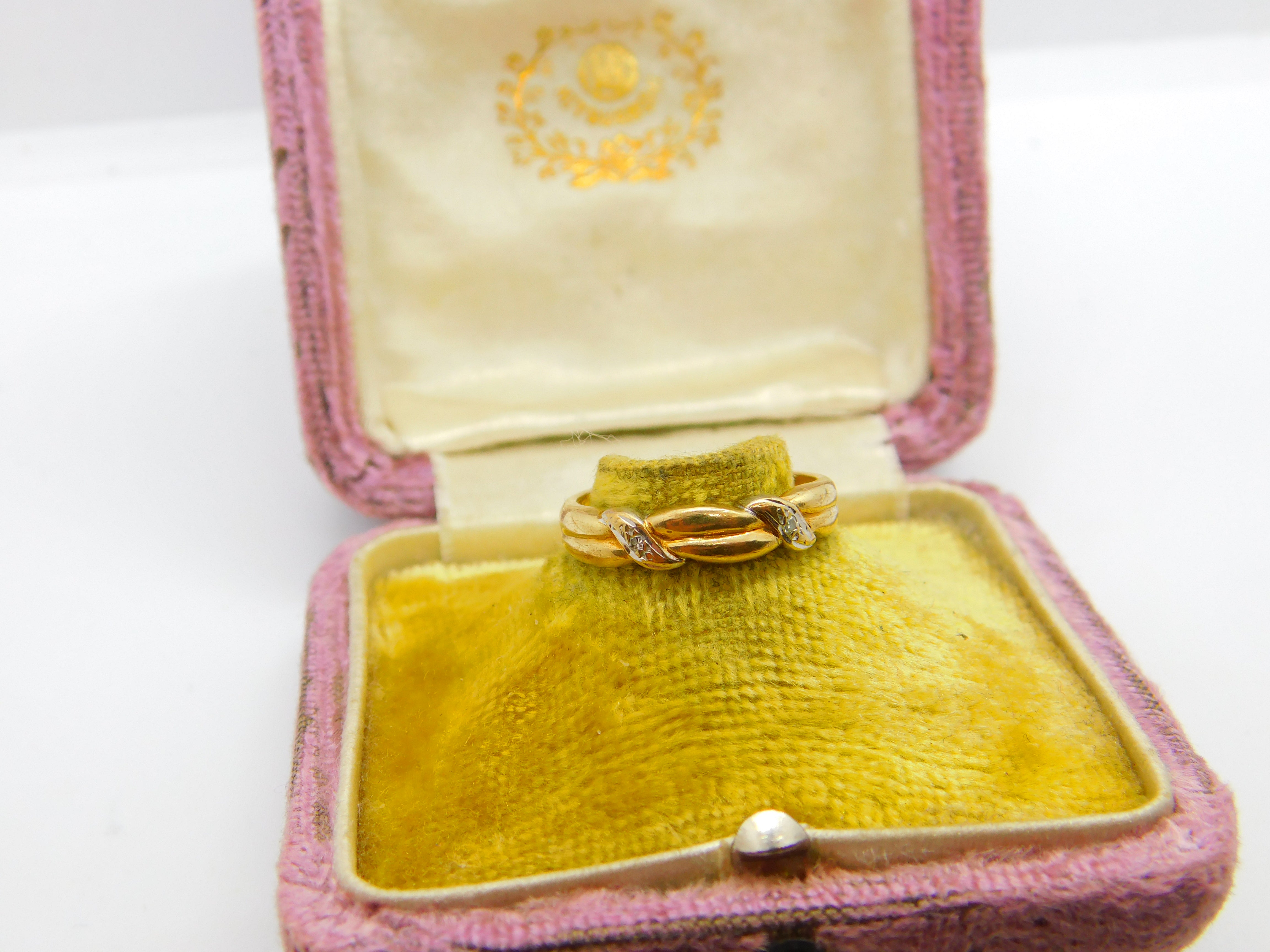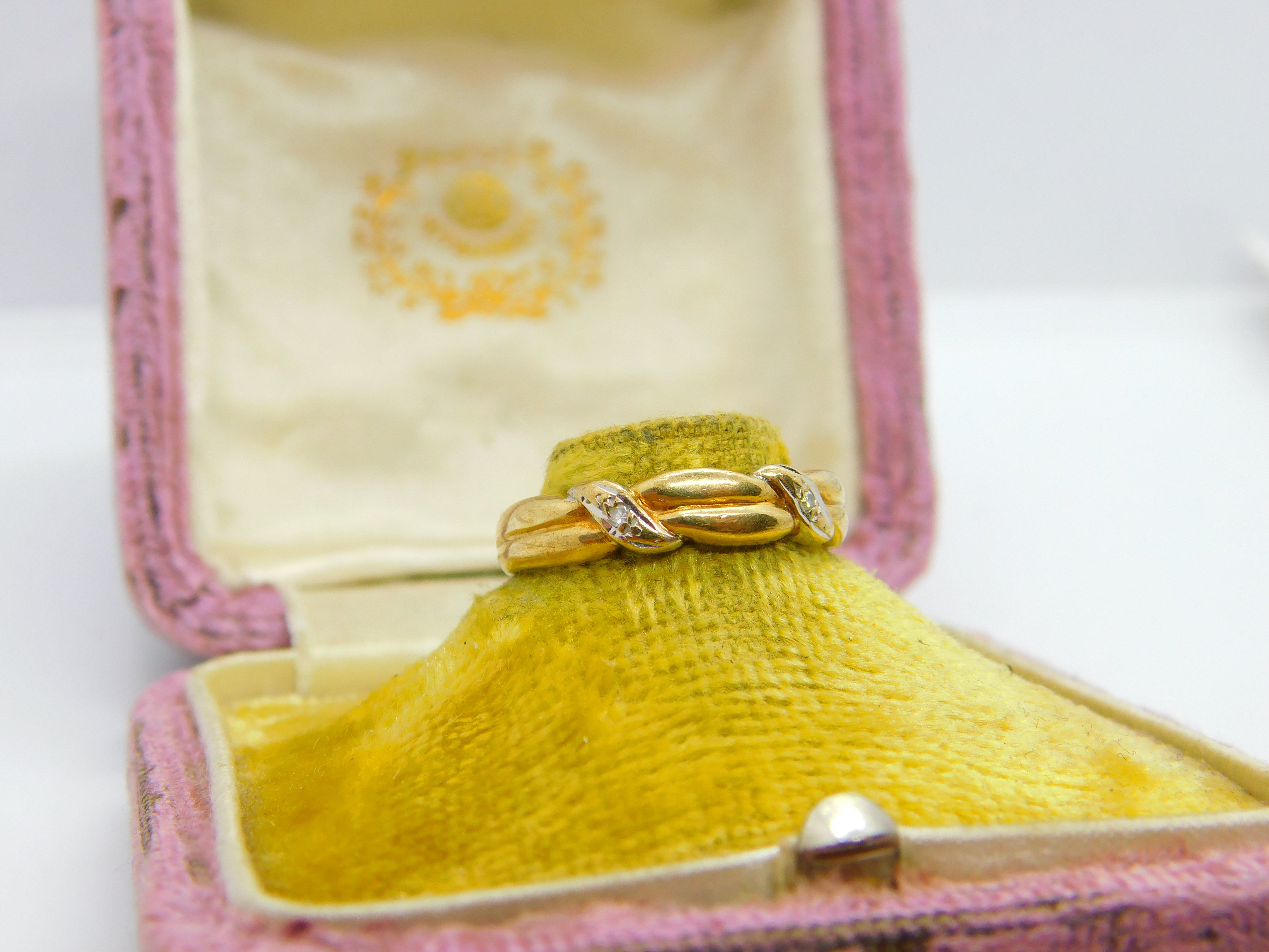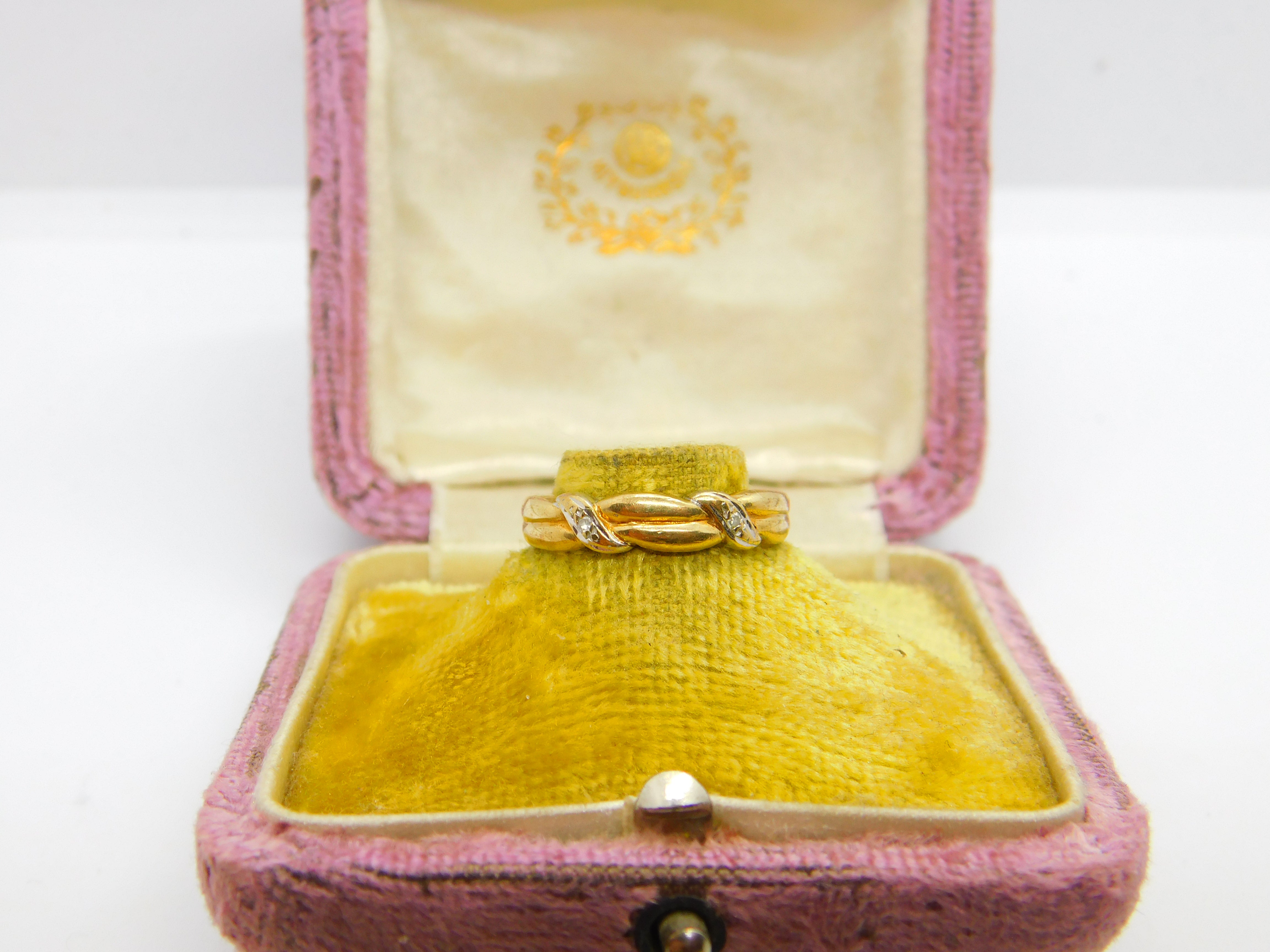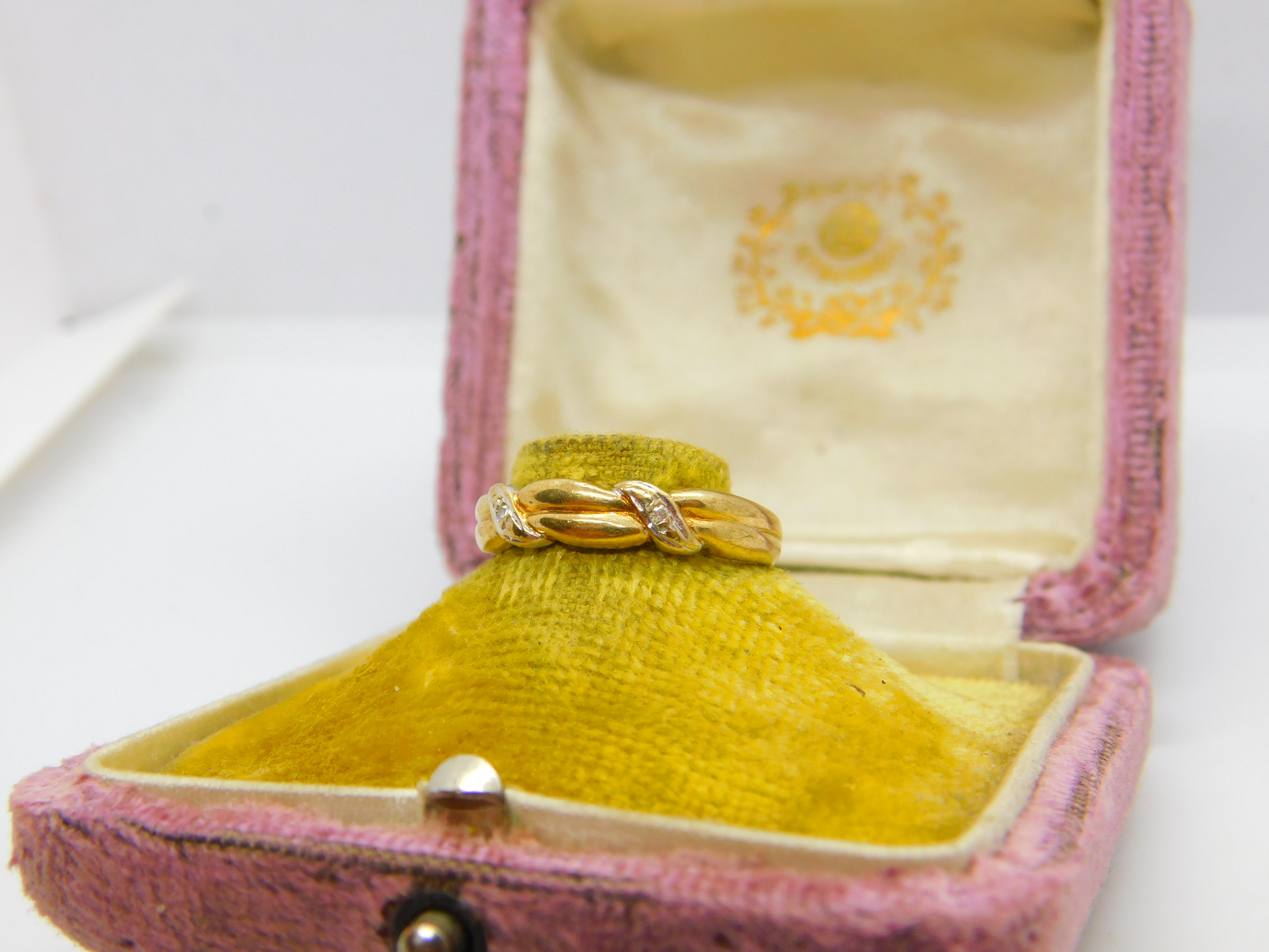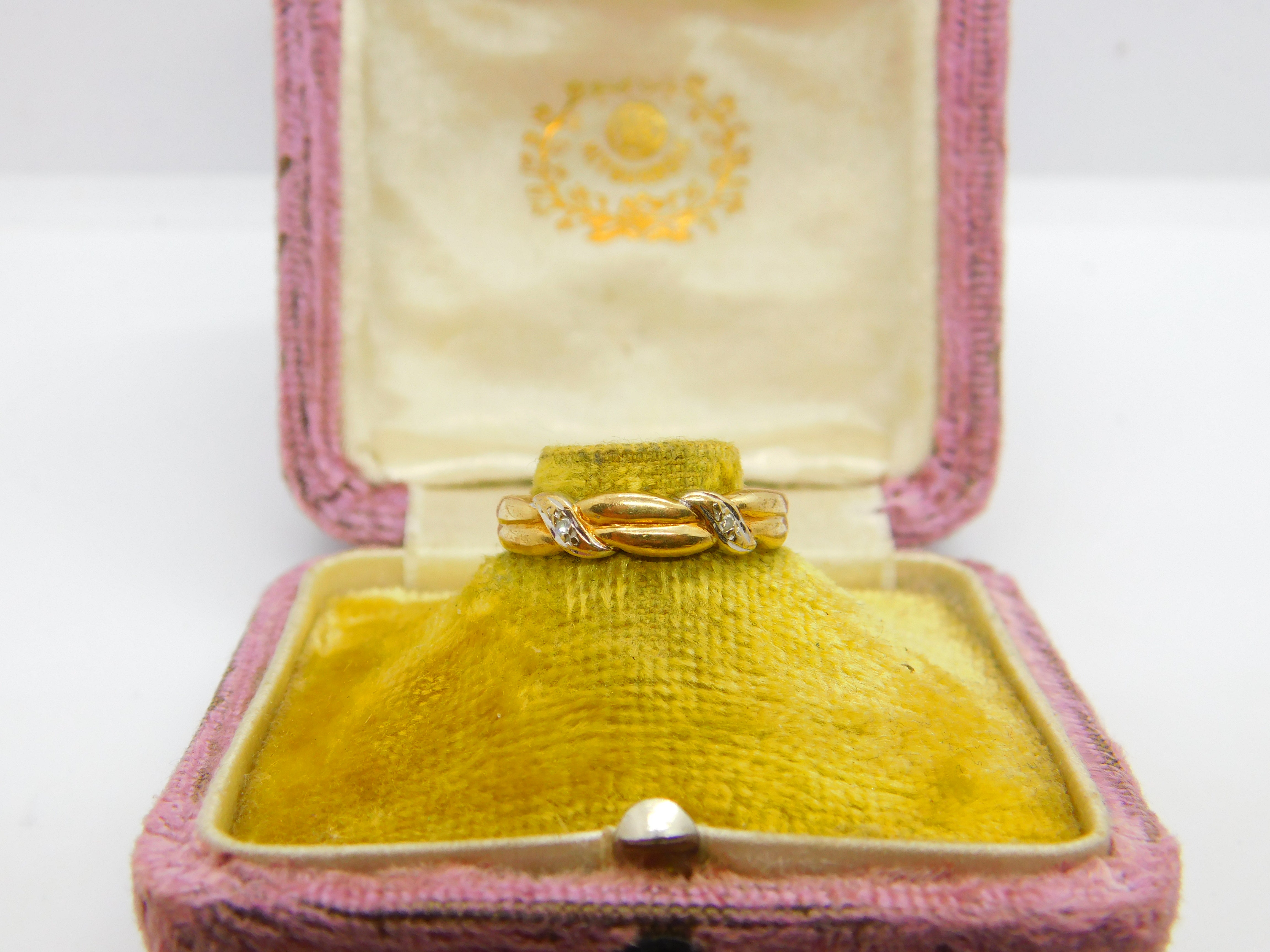 Details: A fantastic and wonderfully designed vintage 9ct yellow gold rope twist band ring set with diamonds hallmarked Birminham c1990 to the interior band. This is a wonderful item that would make a perfect gift or addition to any collection. The BOX pictured is for PRESENTATION ONLY and is NOT included in the listings but used to frame the pictures unless specifically stated otherwise.