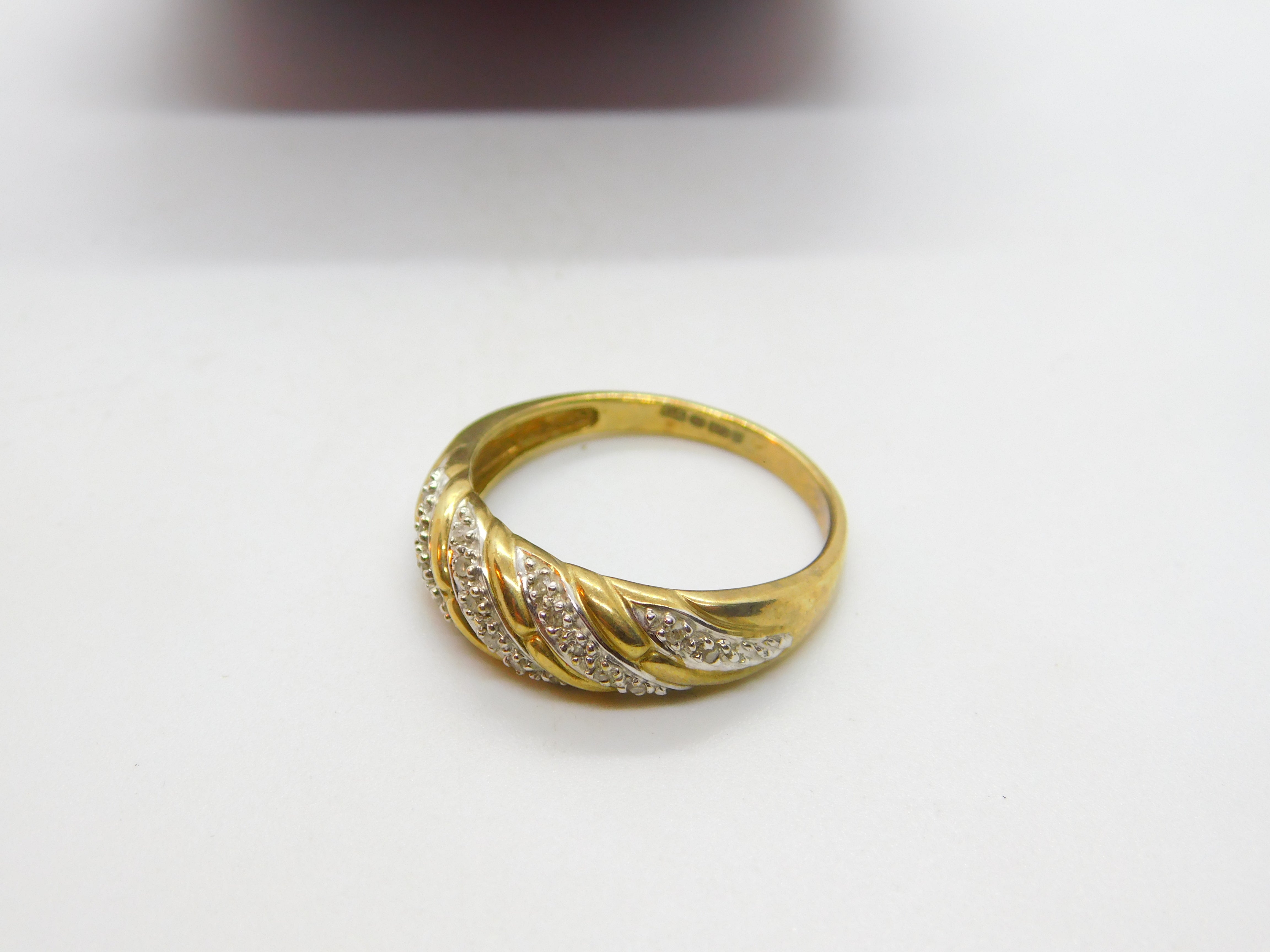 9ct Yellow Gold & Diamond Set Swirl Form Band Ring Vintage c1990 Sheffield