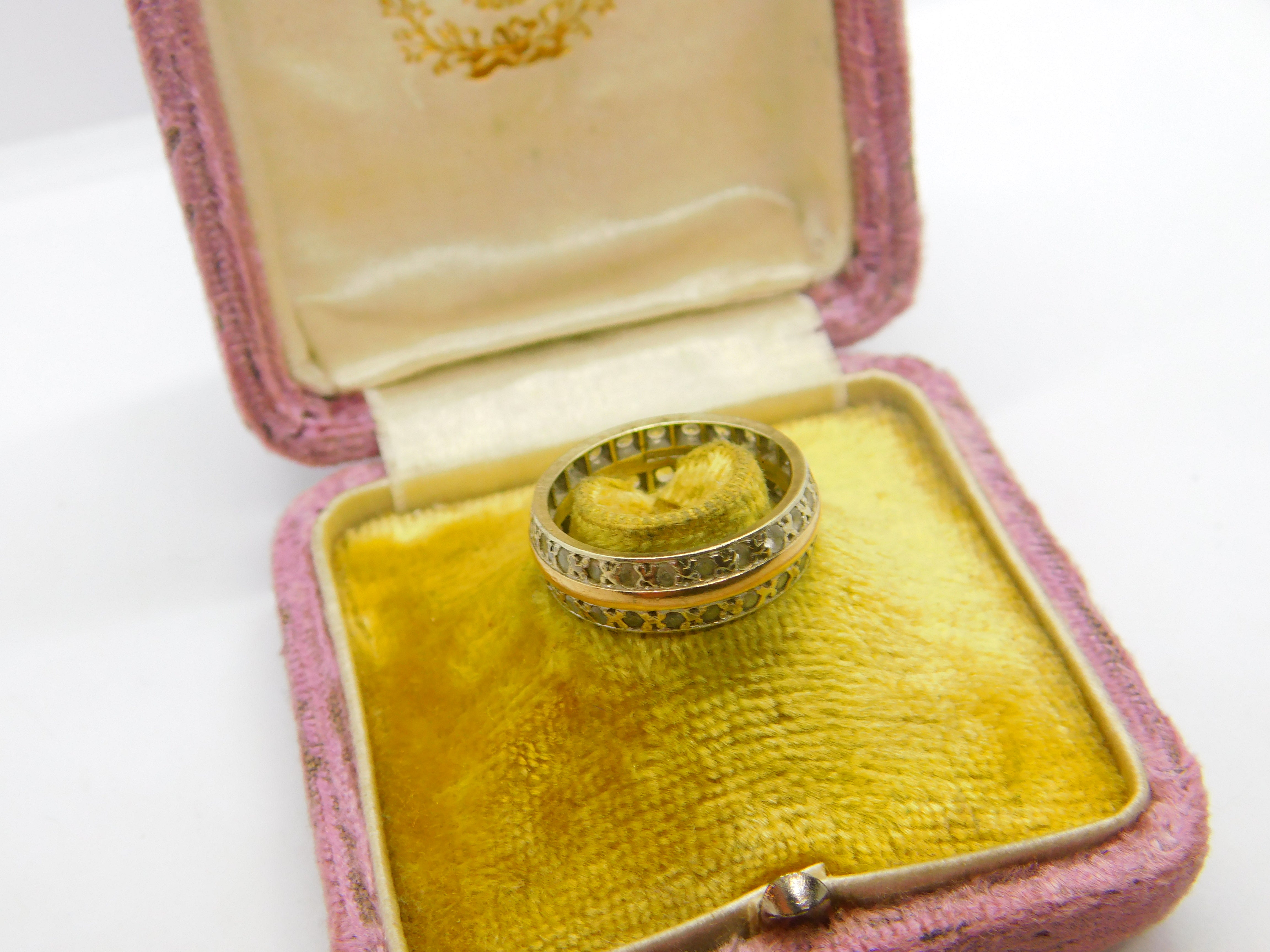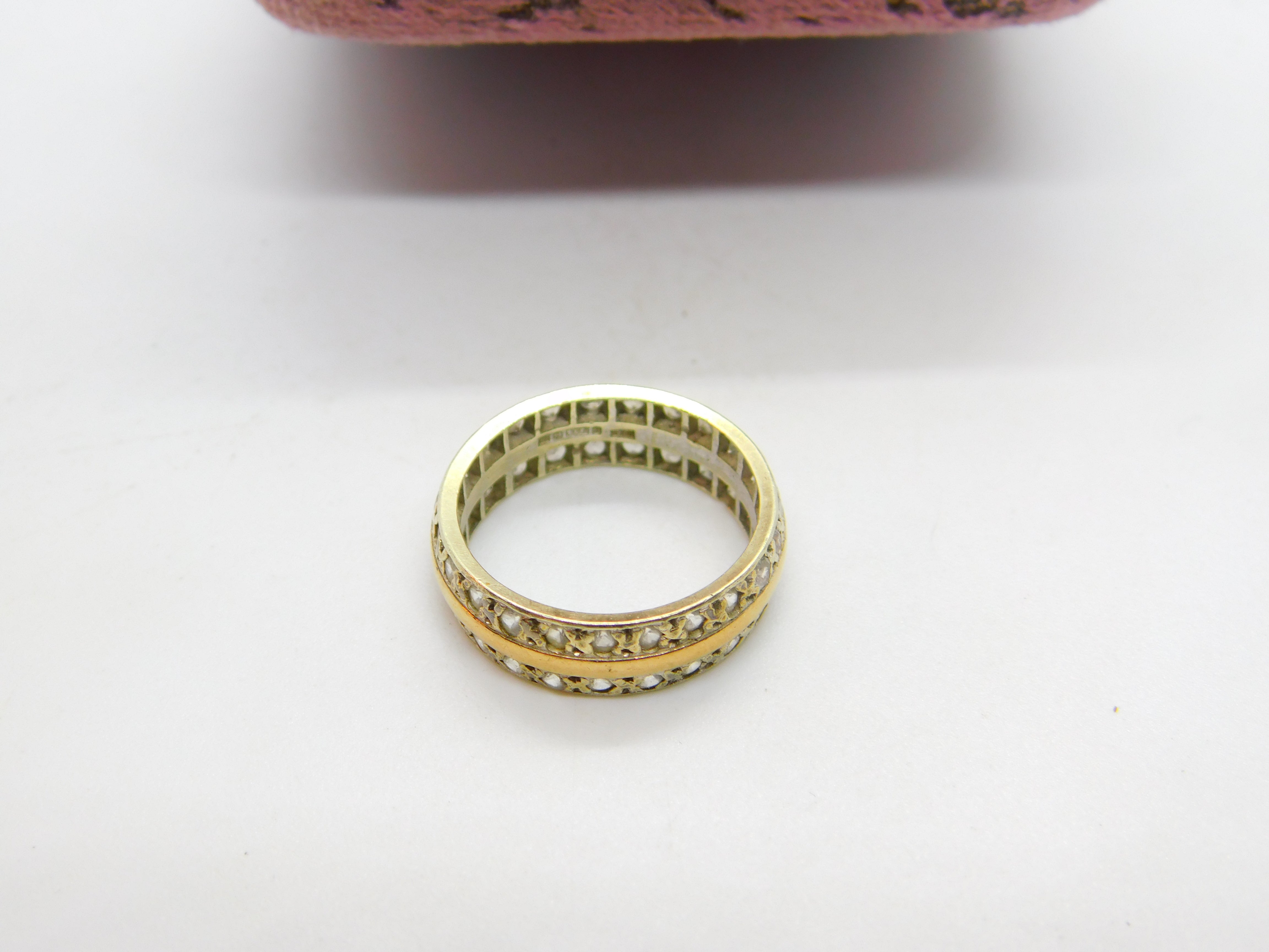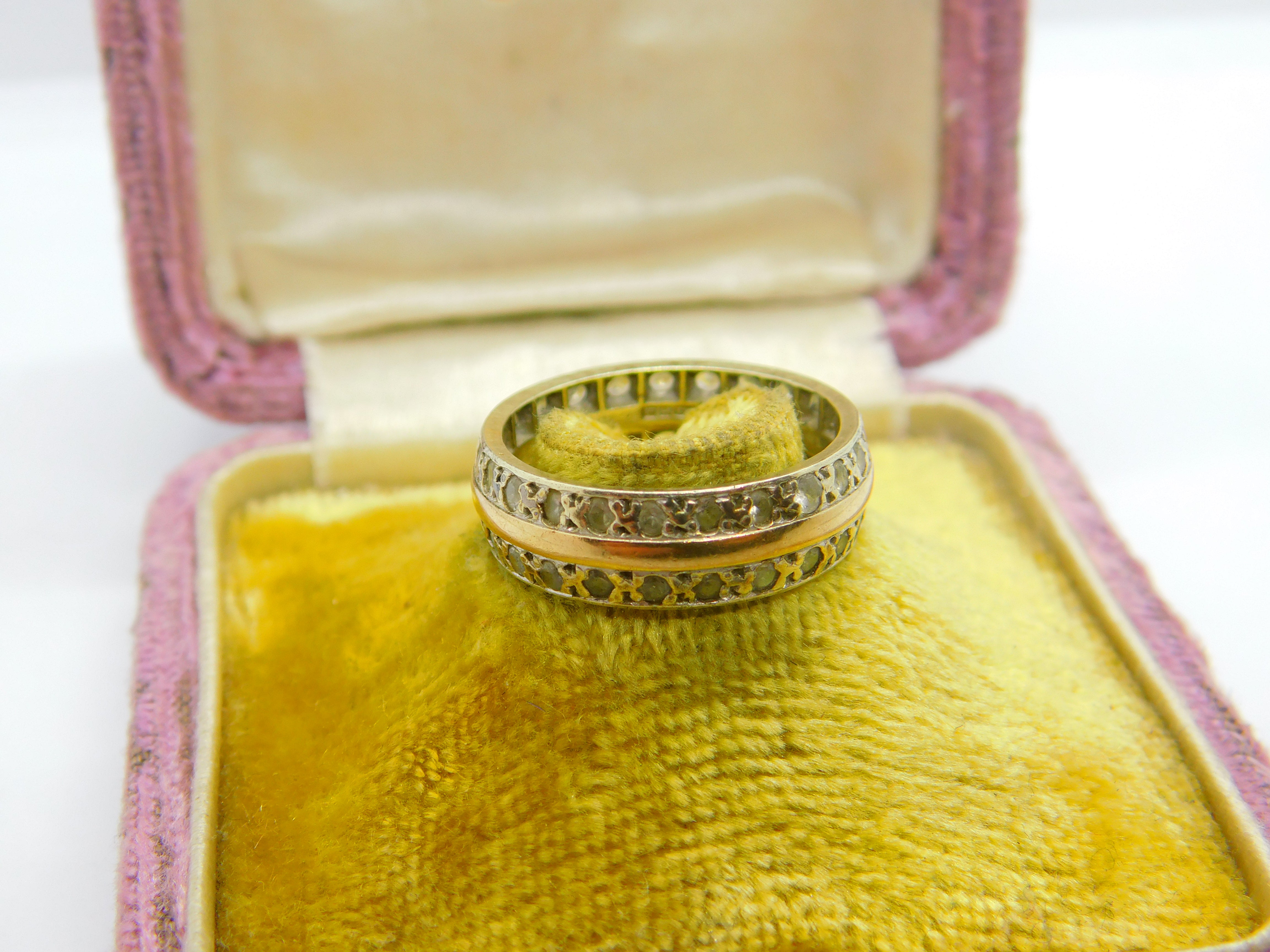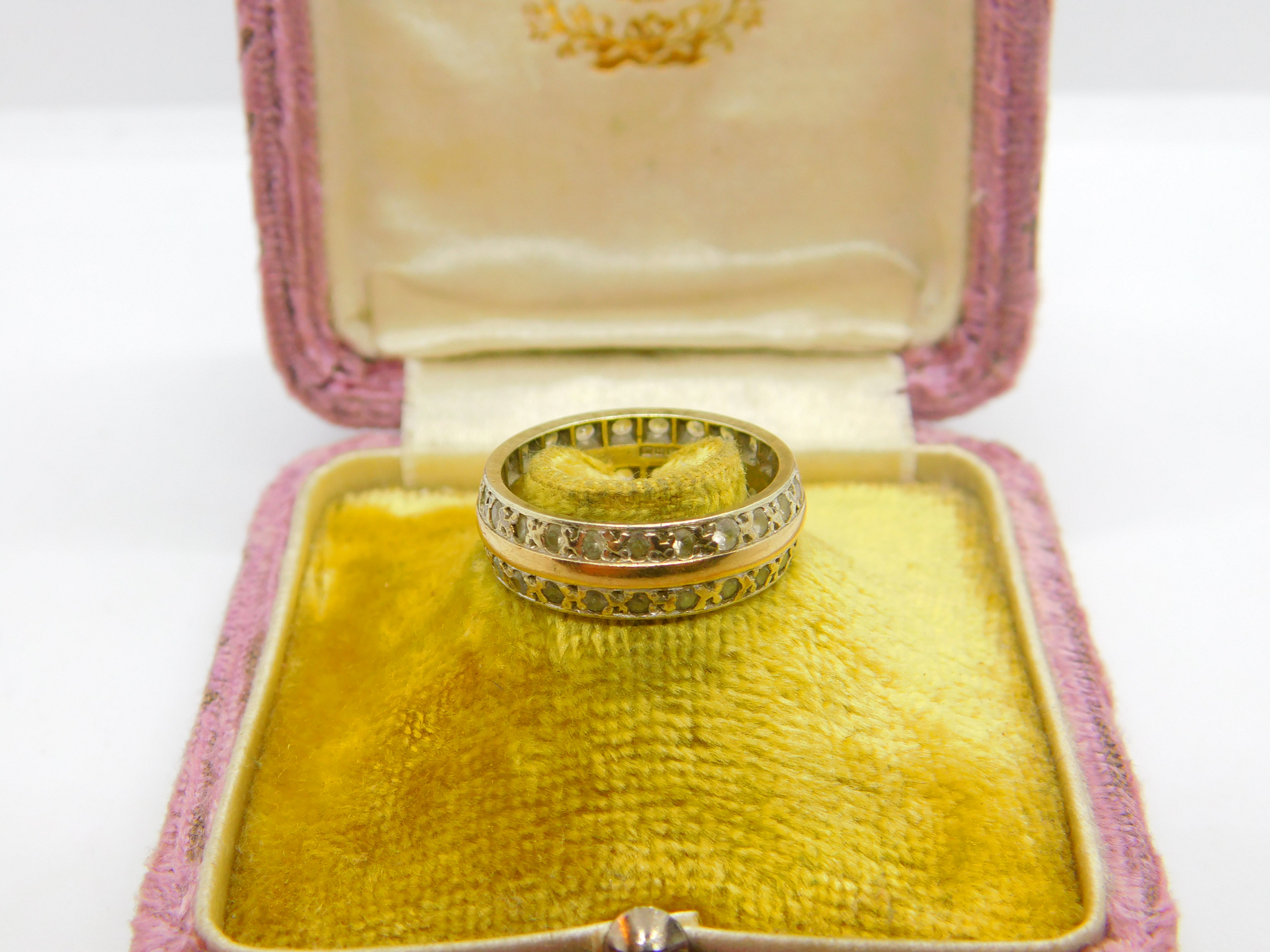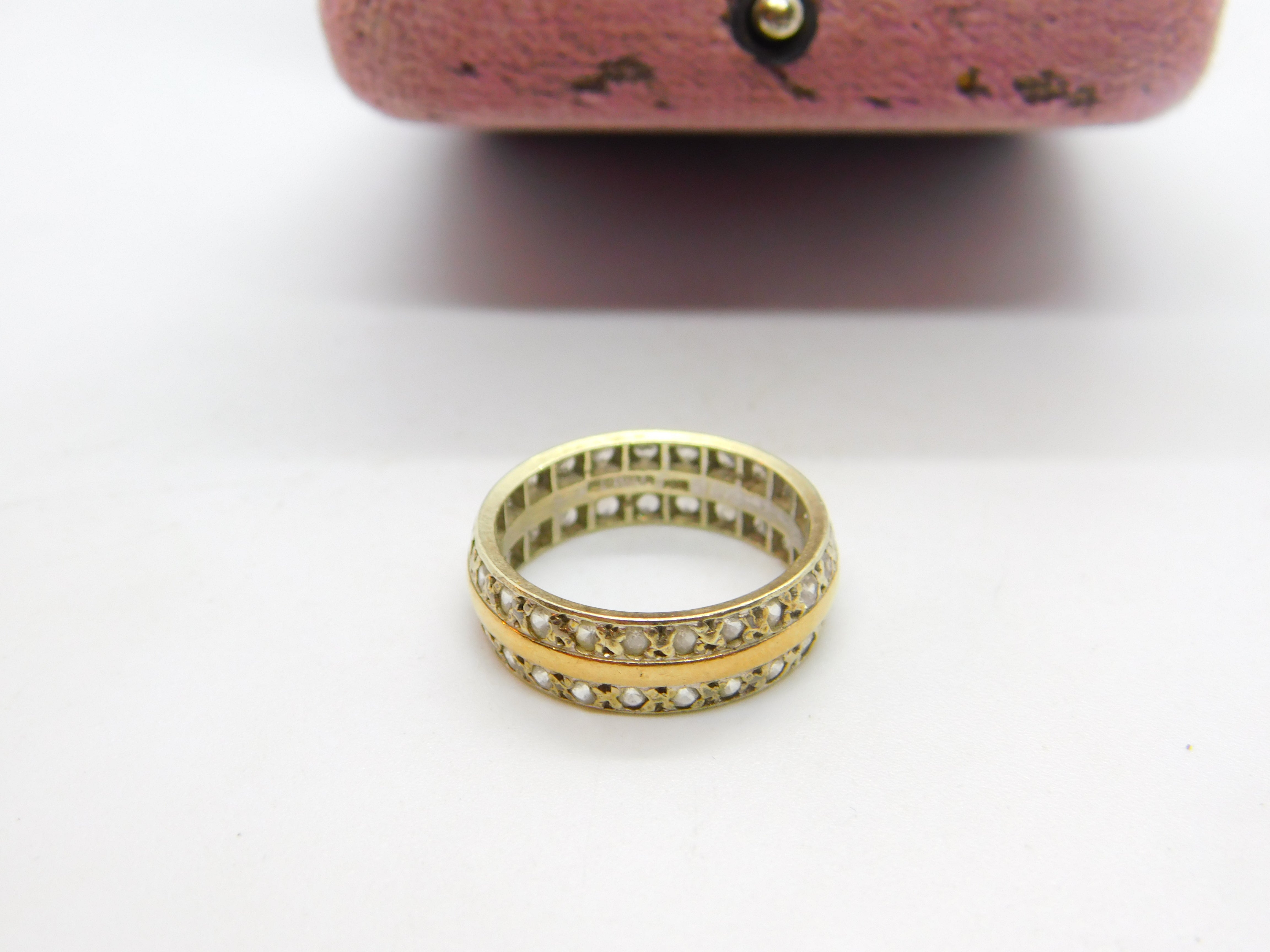 9ct Yellow Gold Double Eternity Ring with Diamond Paste Vintage 1961 Birmingham
