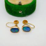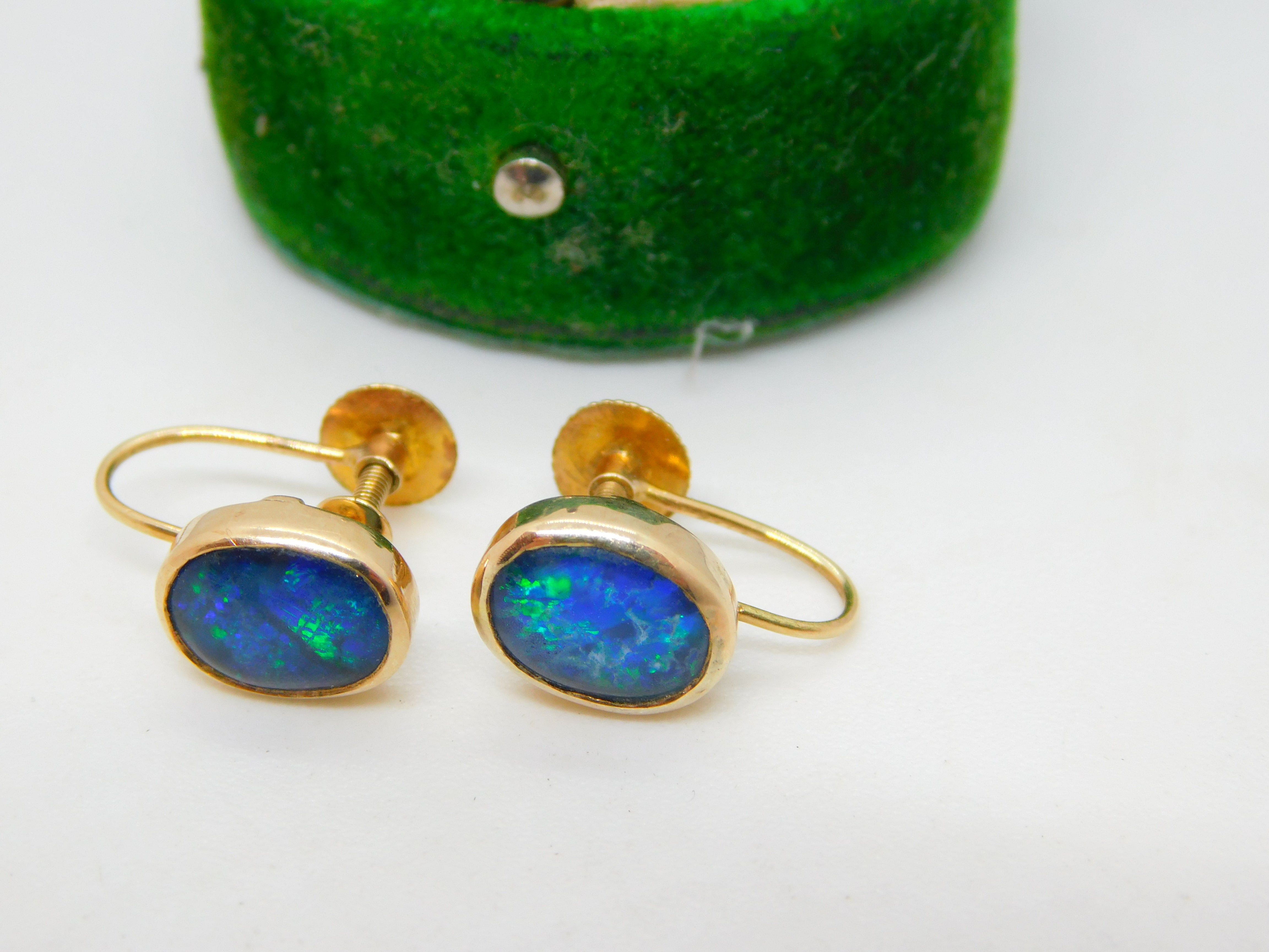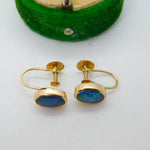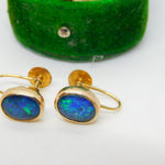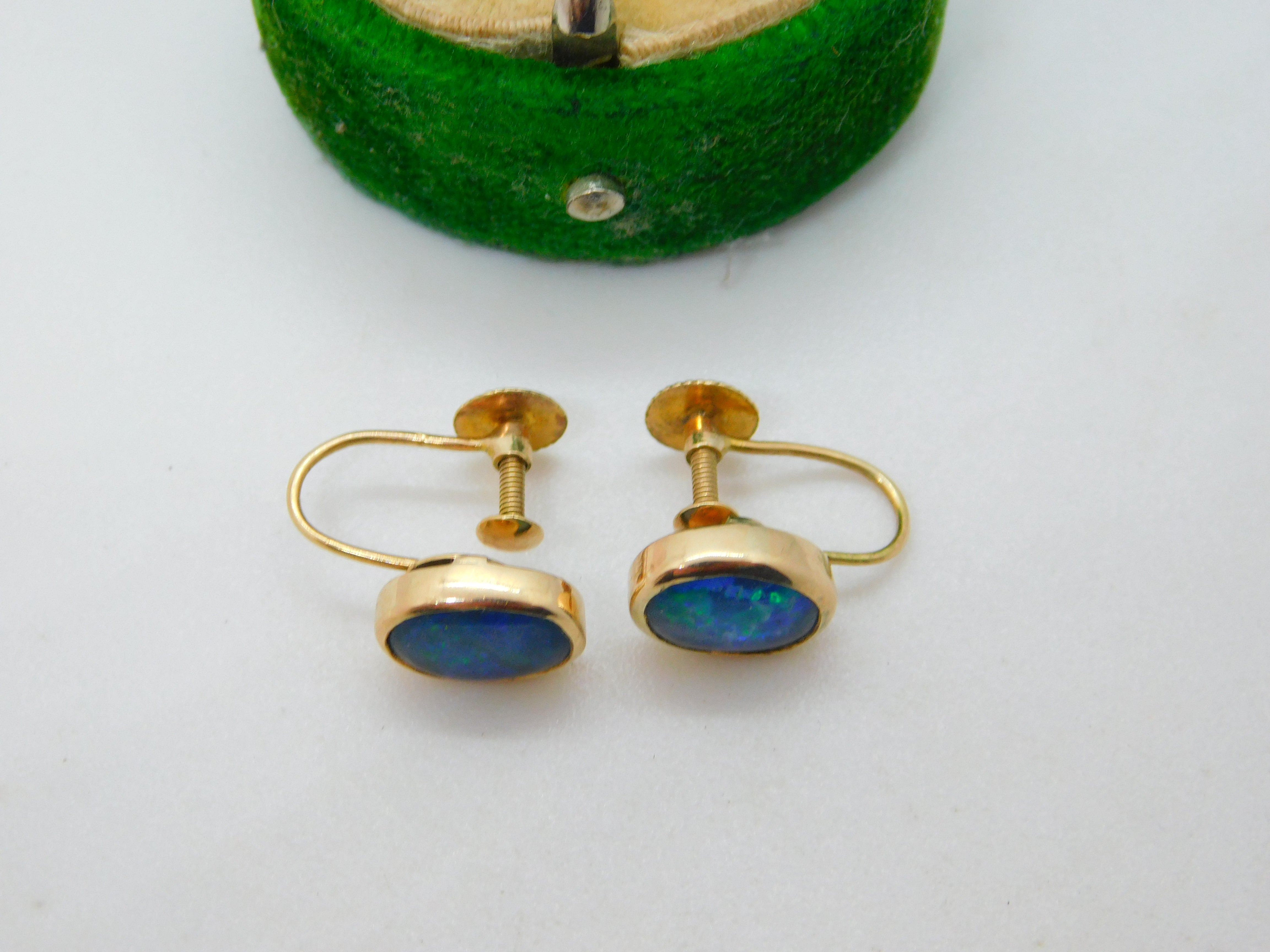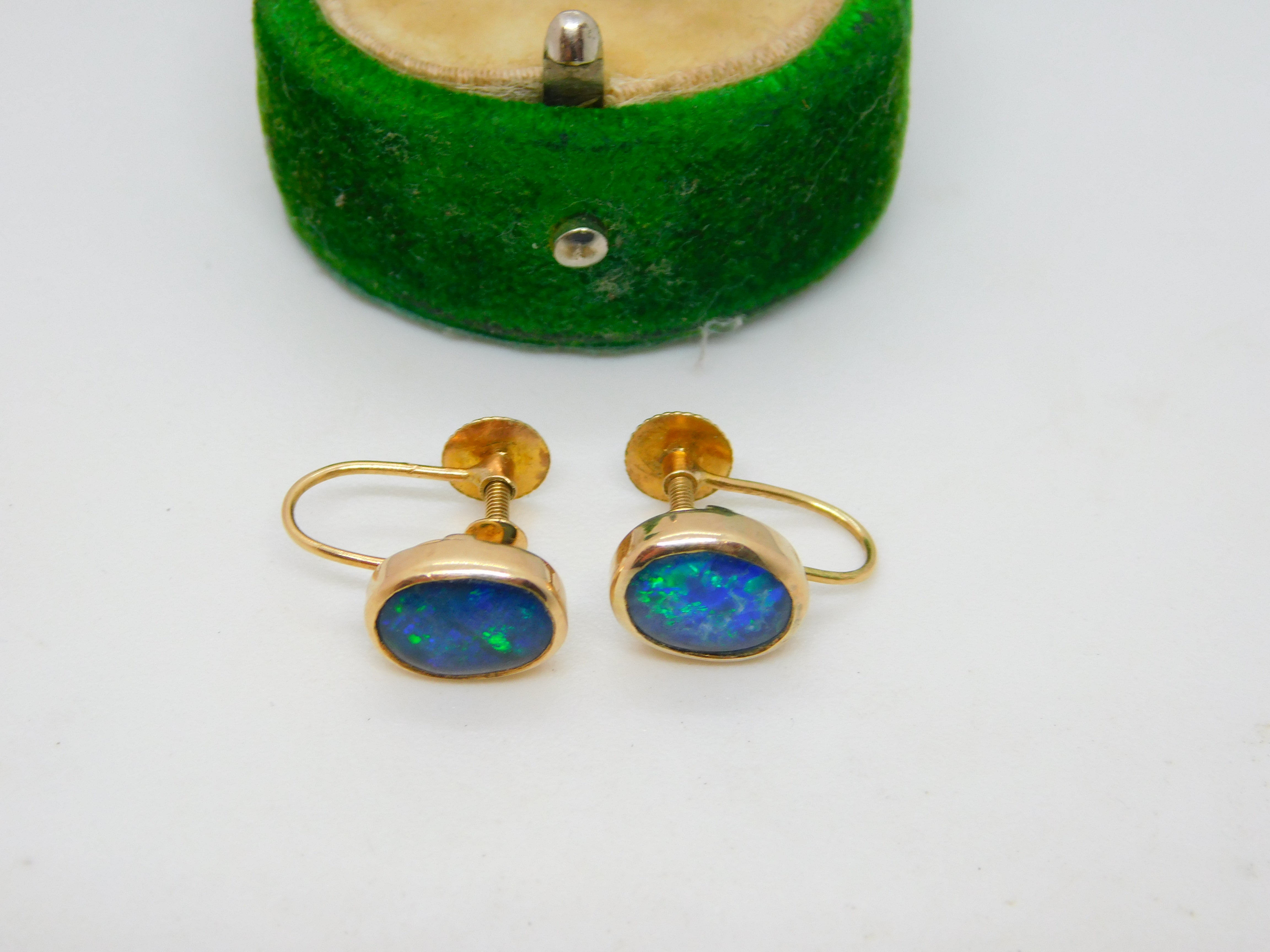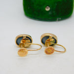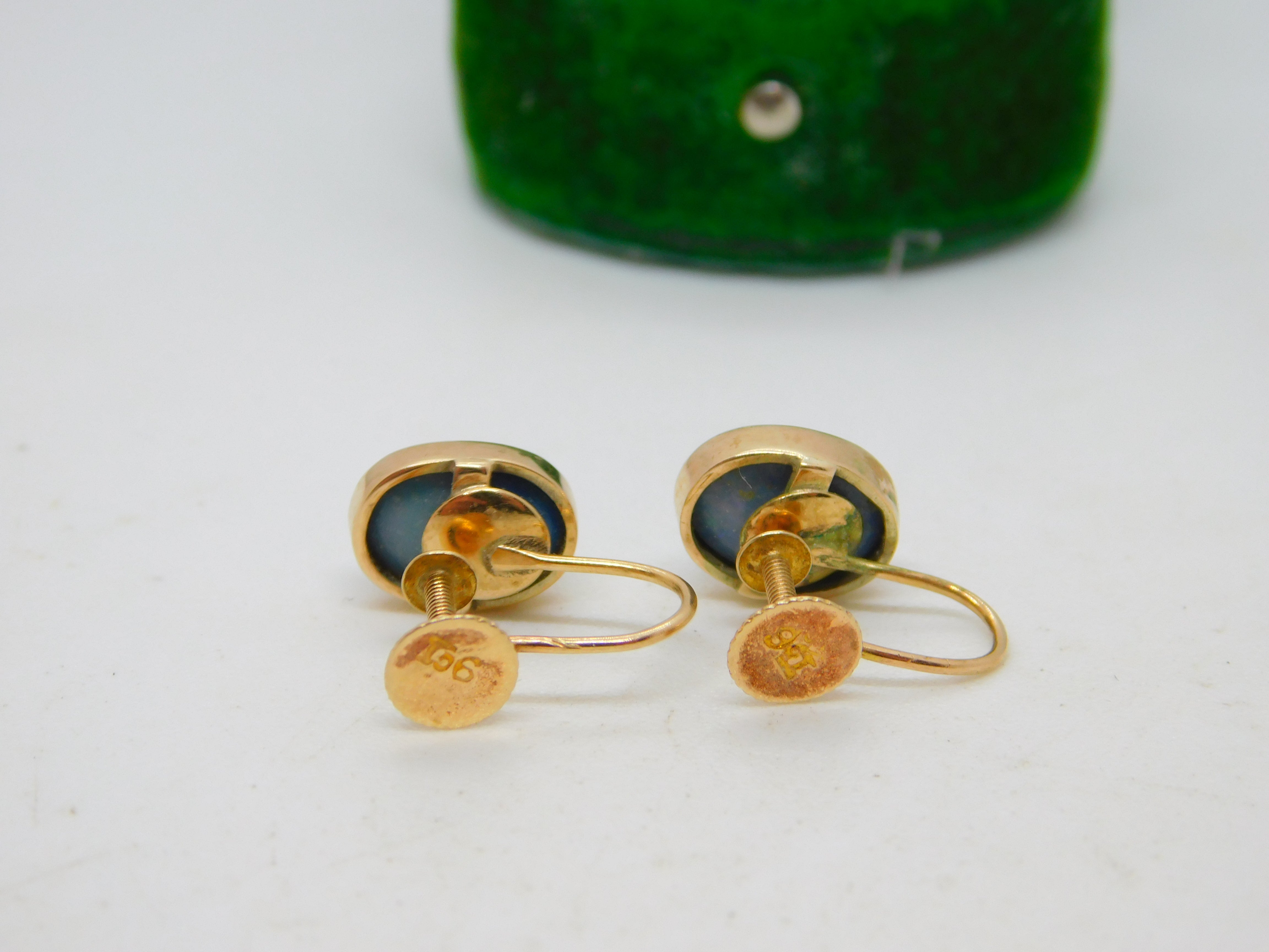 9ct Yellow Gold Doublet Black Opal Screw-Back Earrings Antique c1920 Art Deco