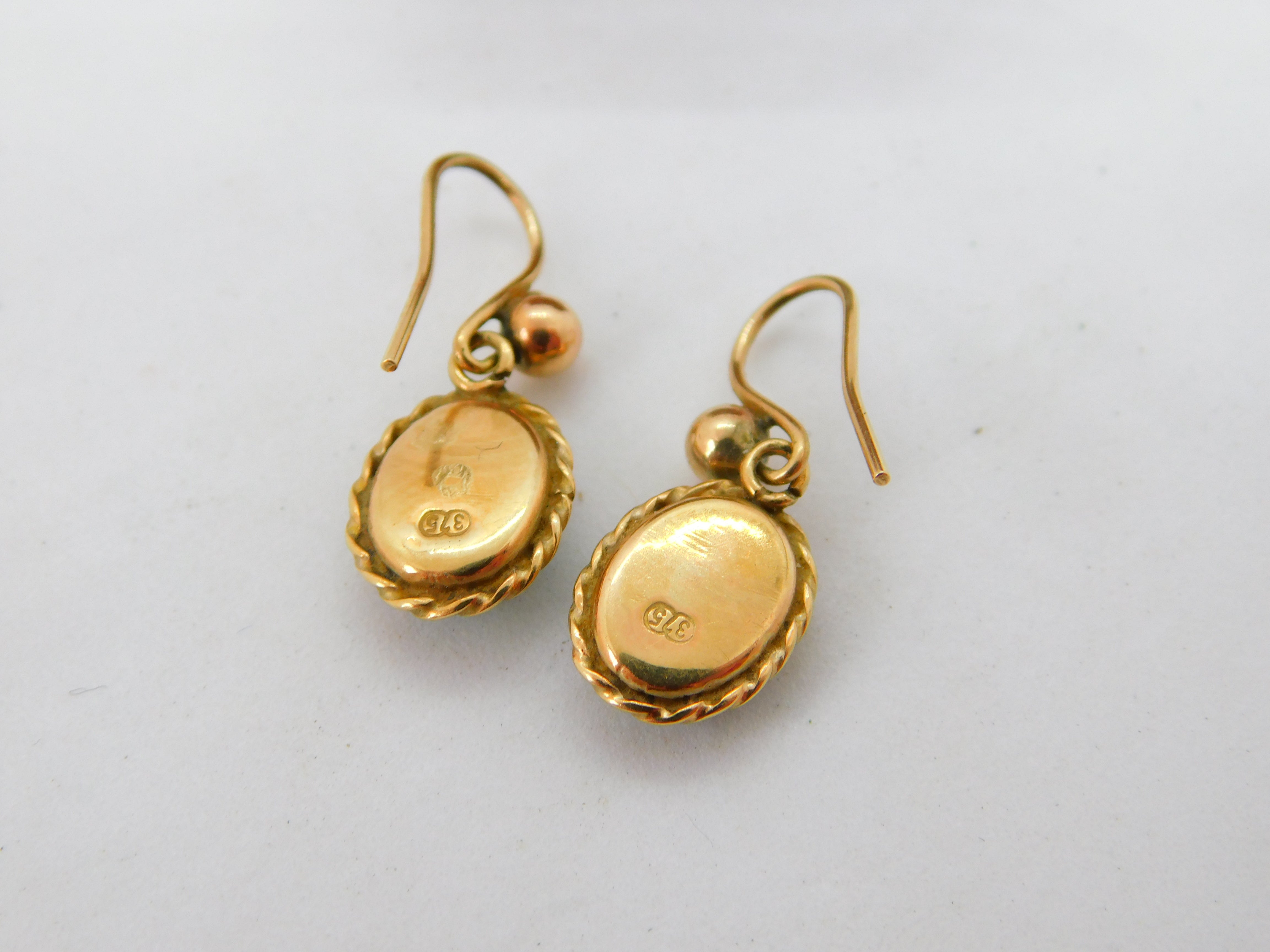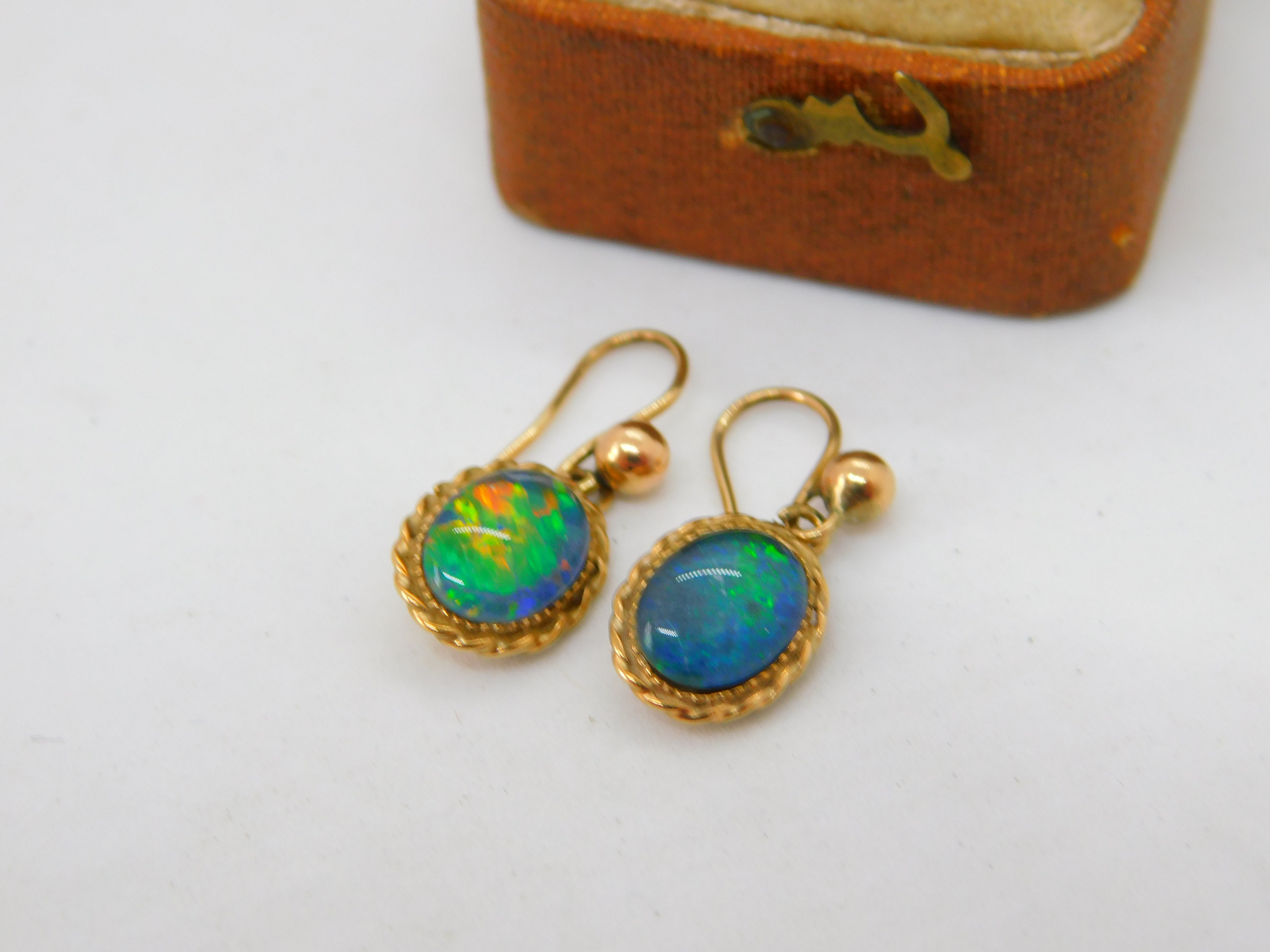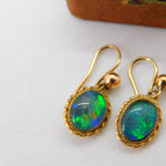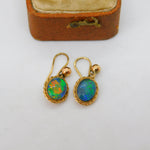 9ct Yellow Gold Doublet Opal Drop Earrings Antique c1920 Art Deco