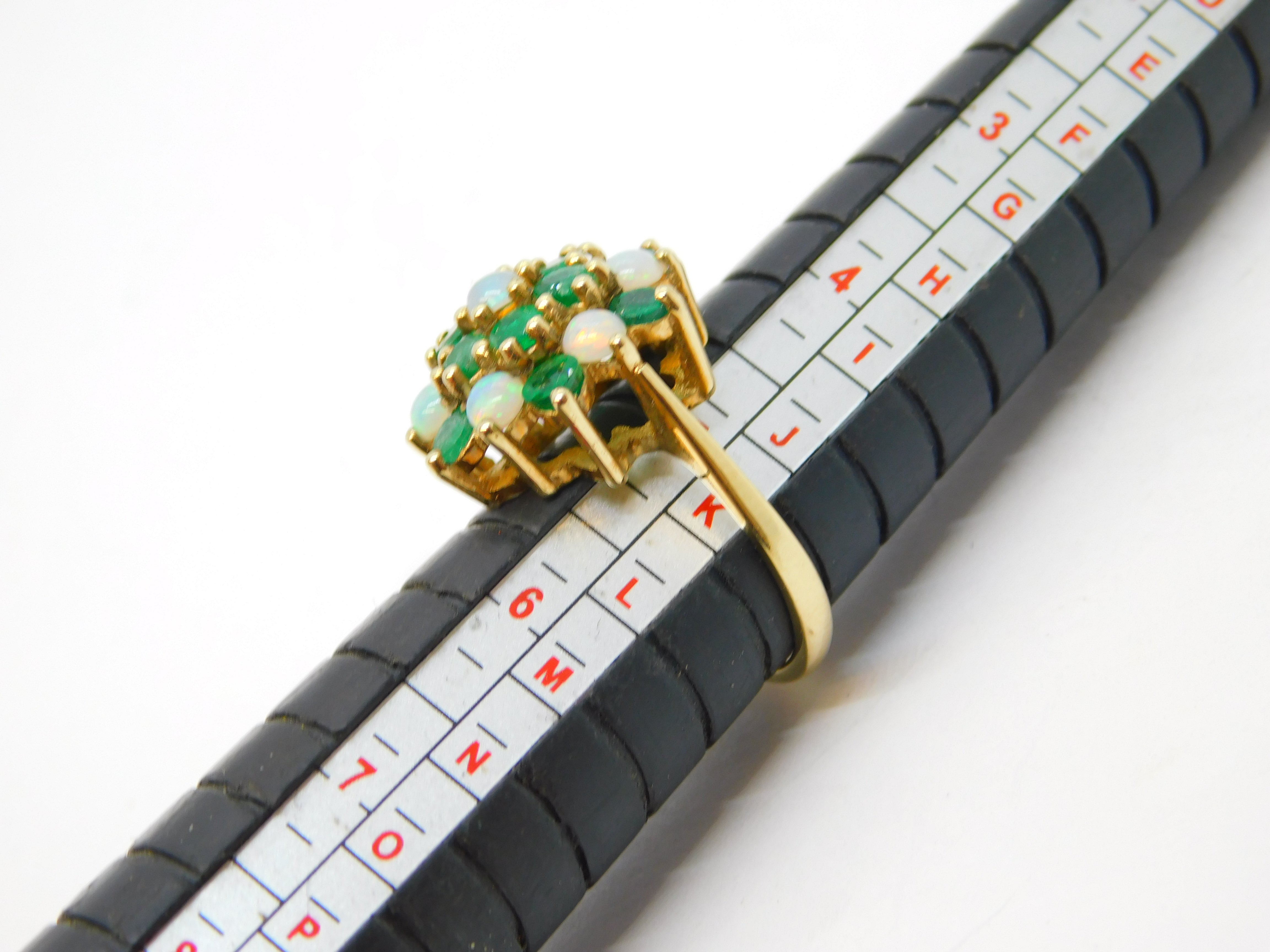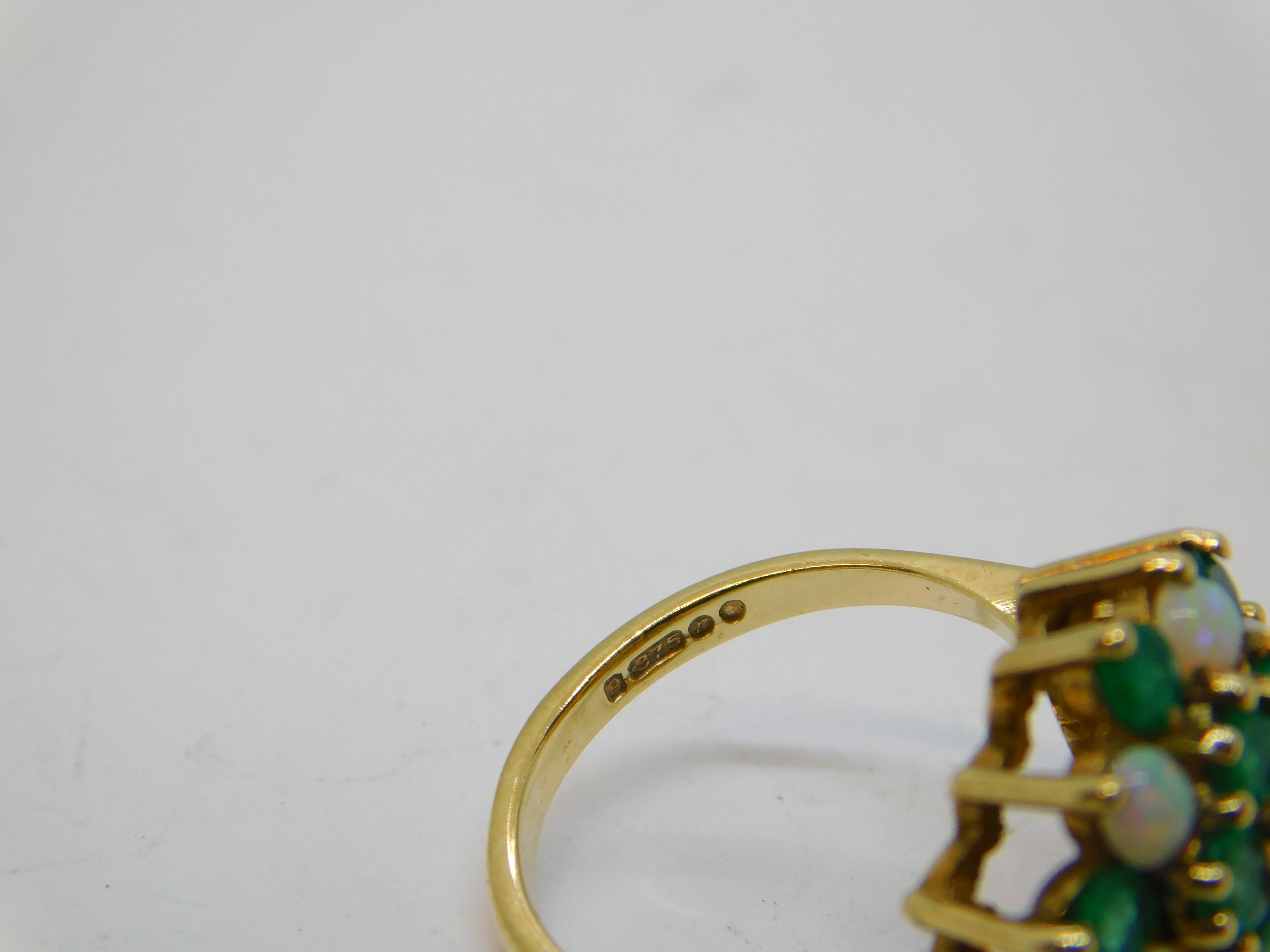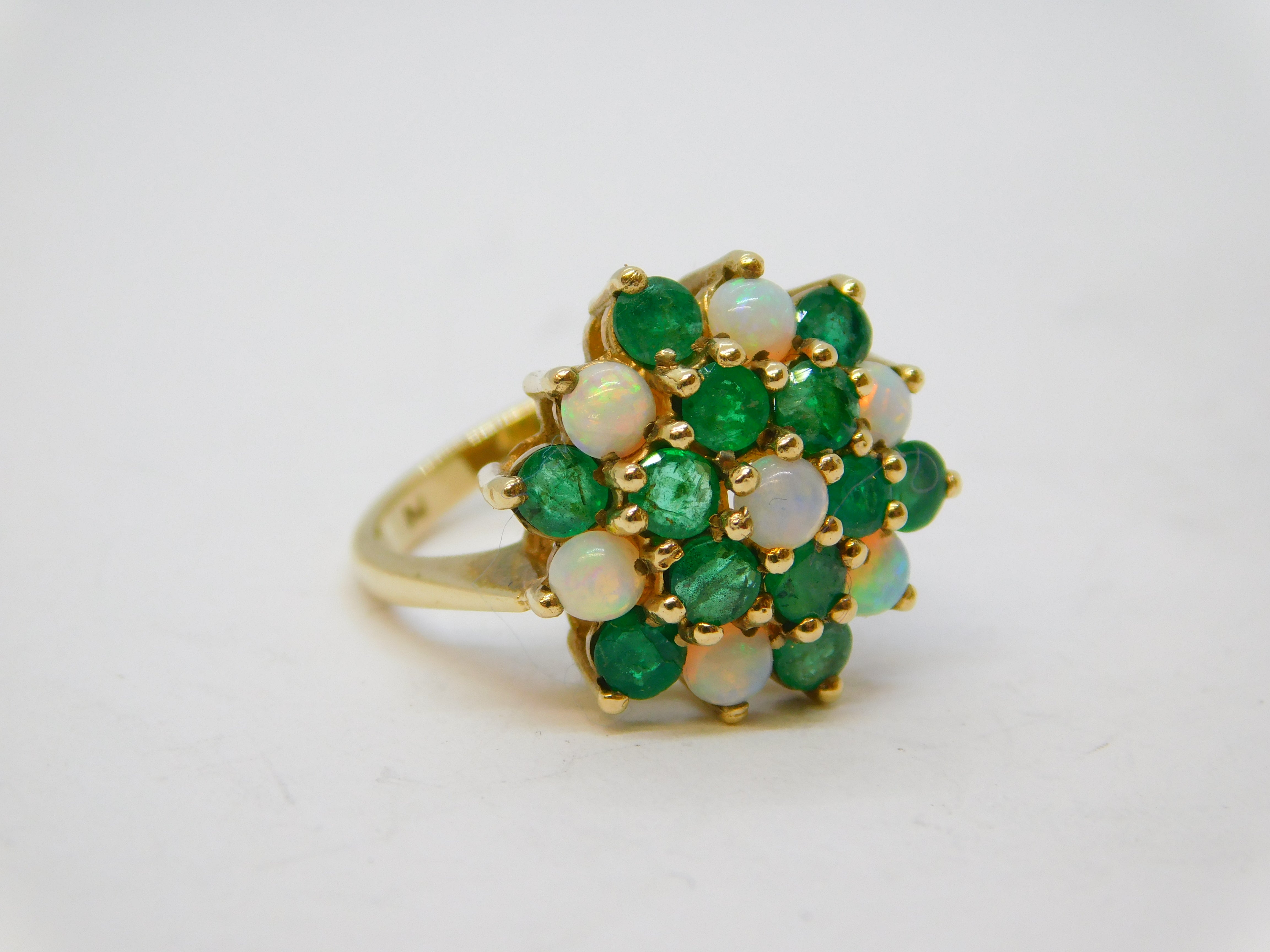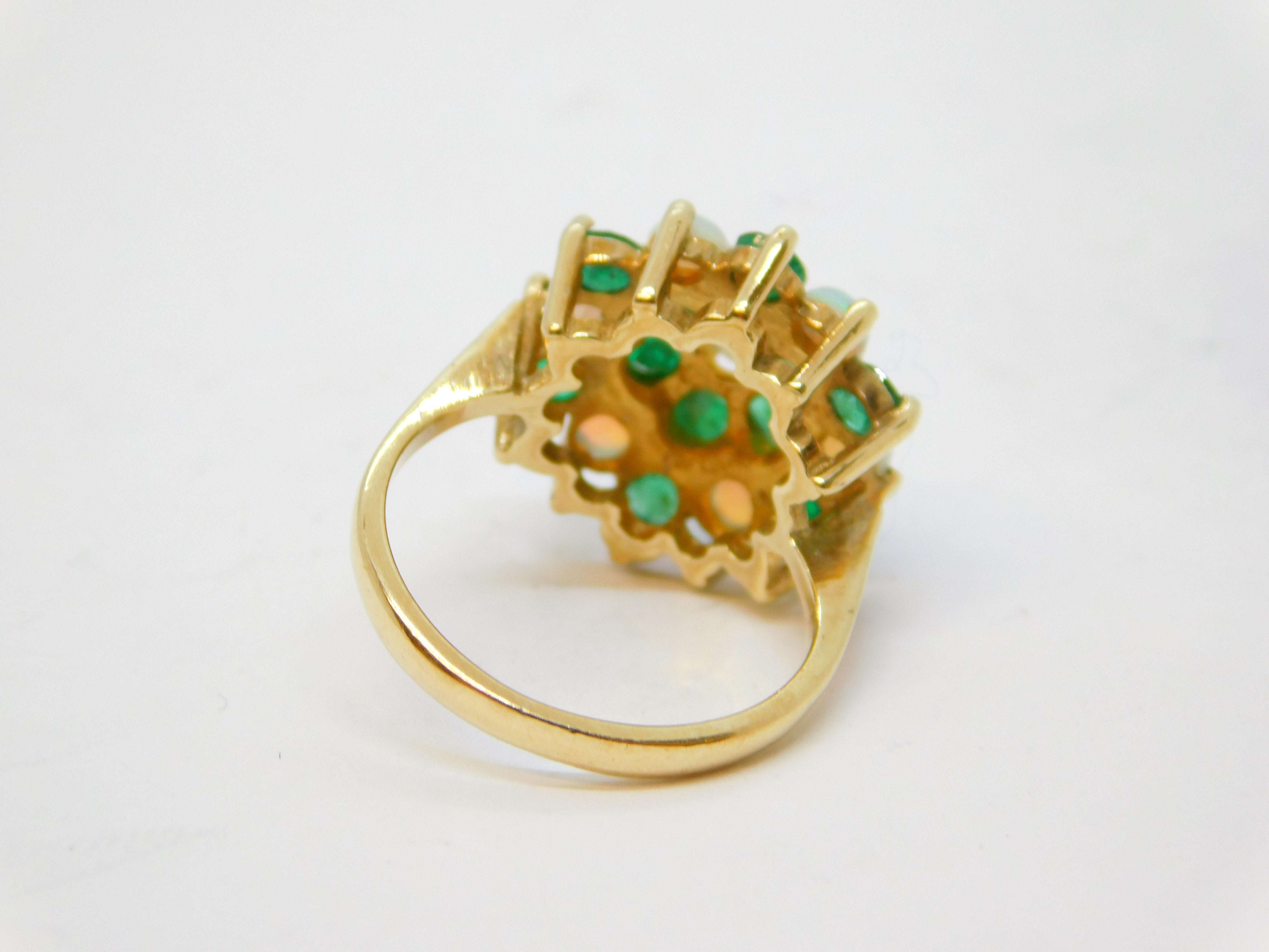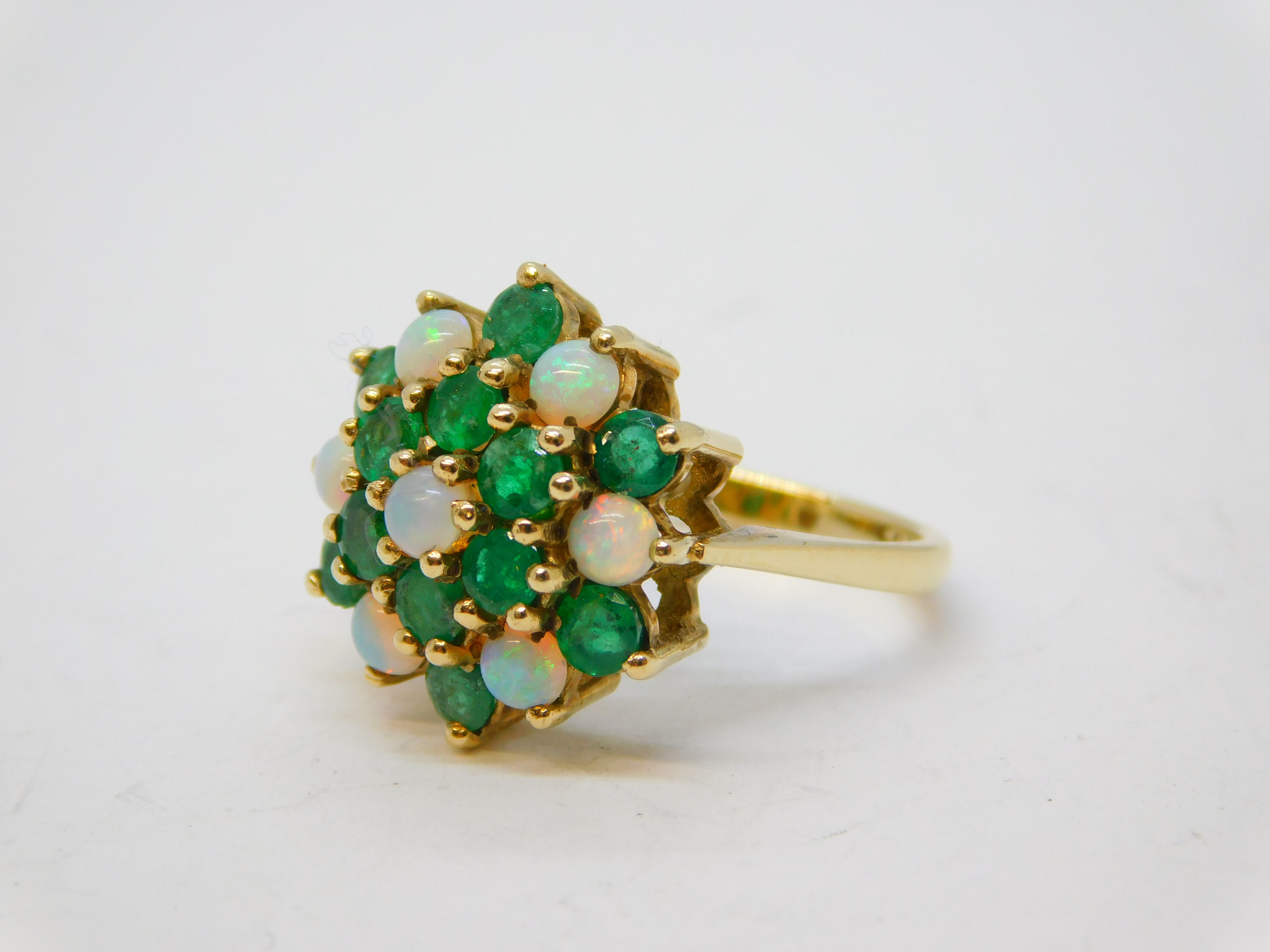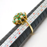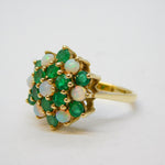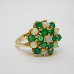 9ct Yellow Gold, Emerald & Opal Floral Cluster Ring Vintage 1972 London