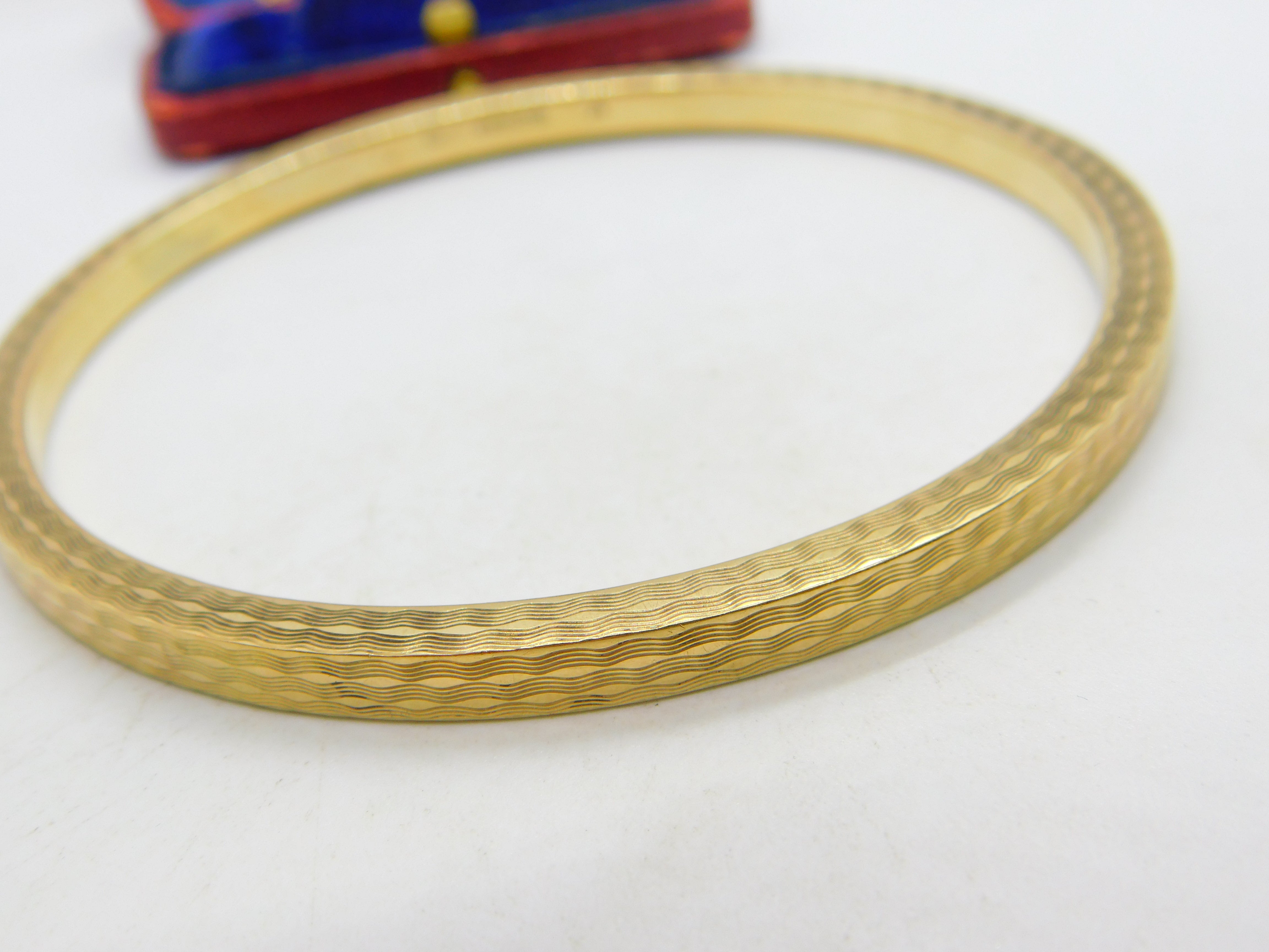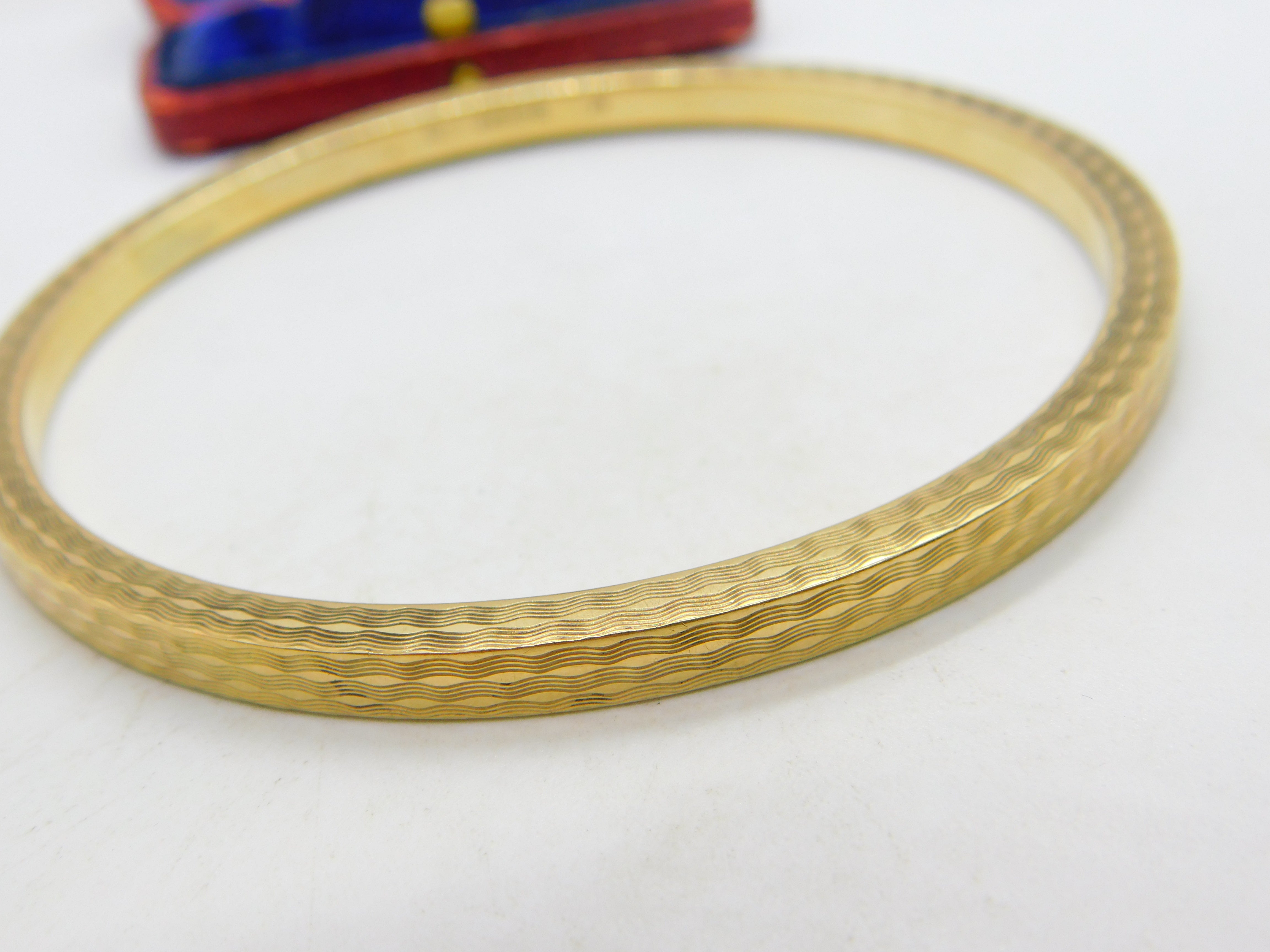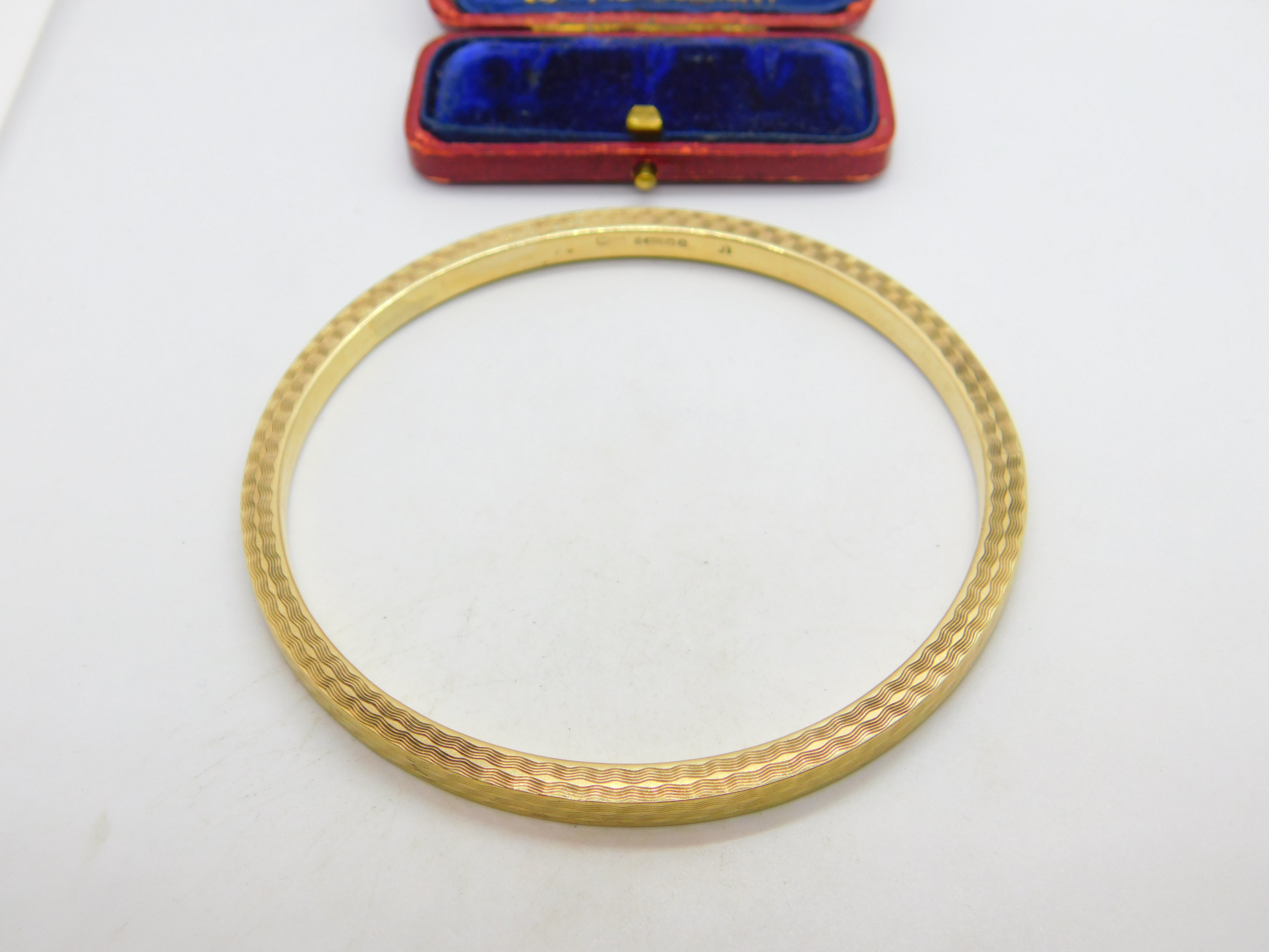 9ct Yellow Gold Engine Turned 'Slave' Bangle Bracelet 1925 Birmingham Antique