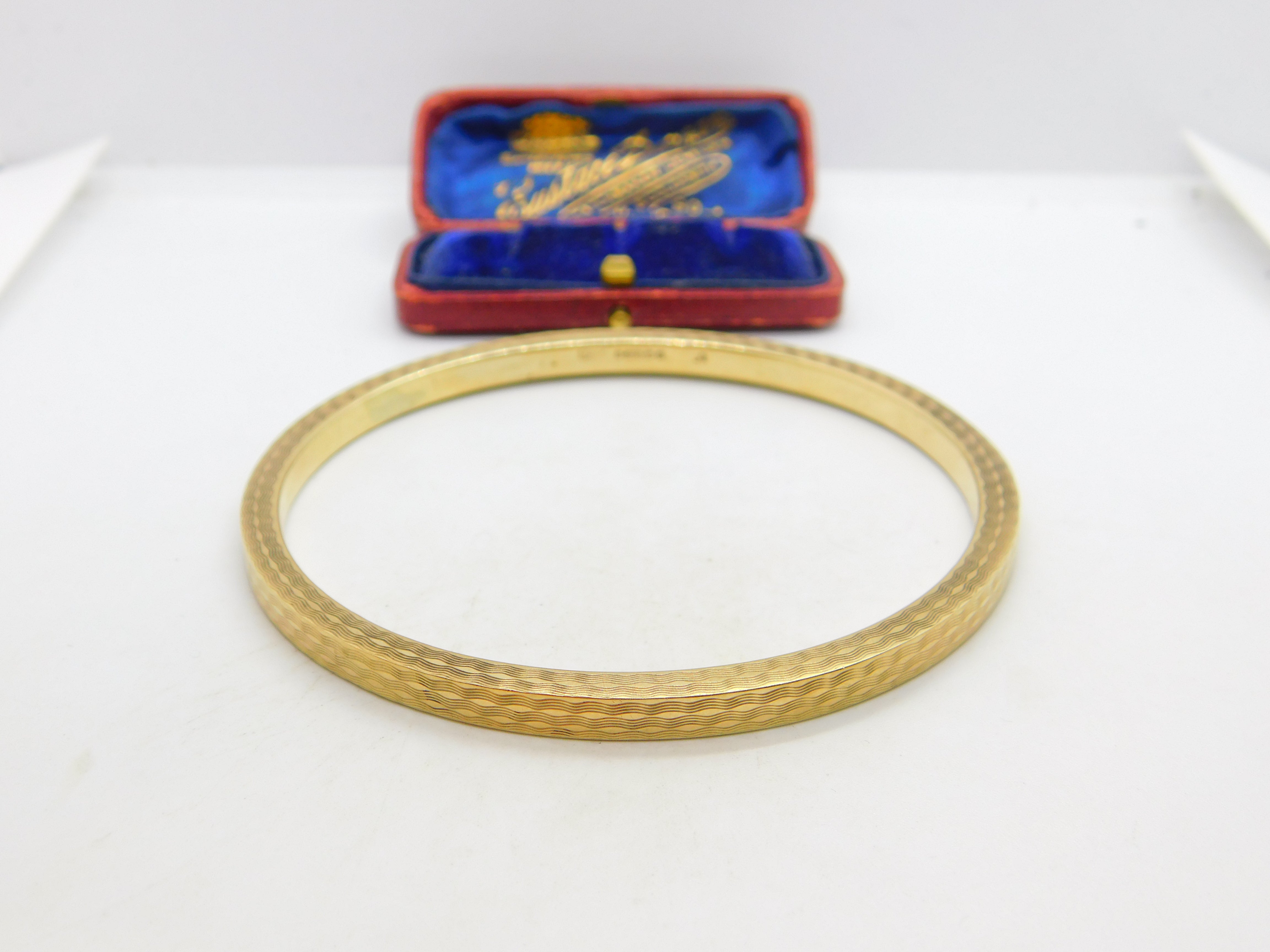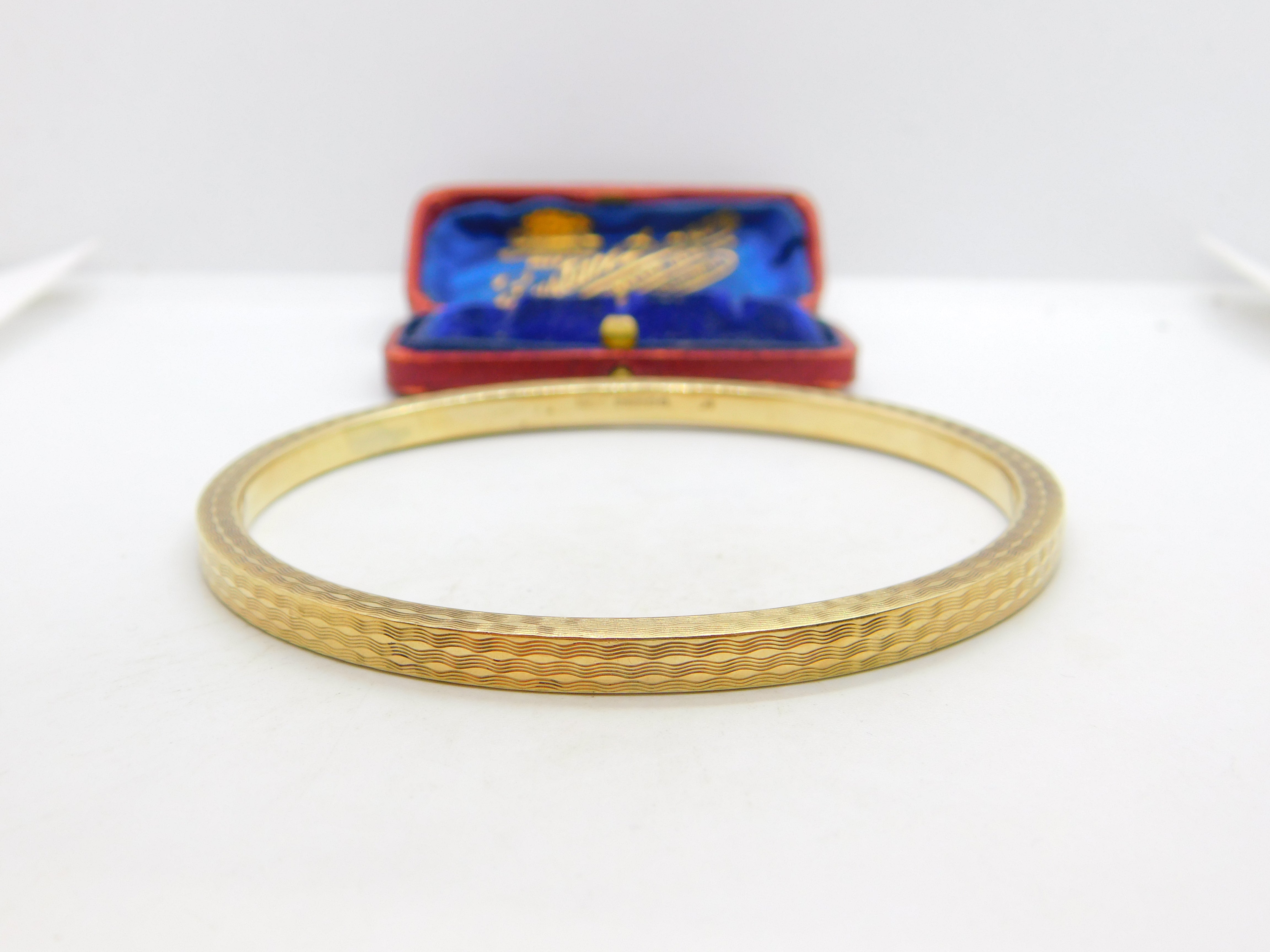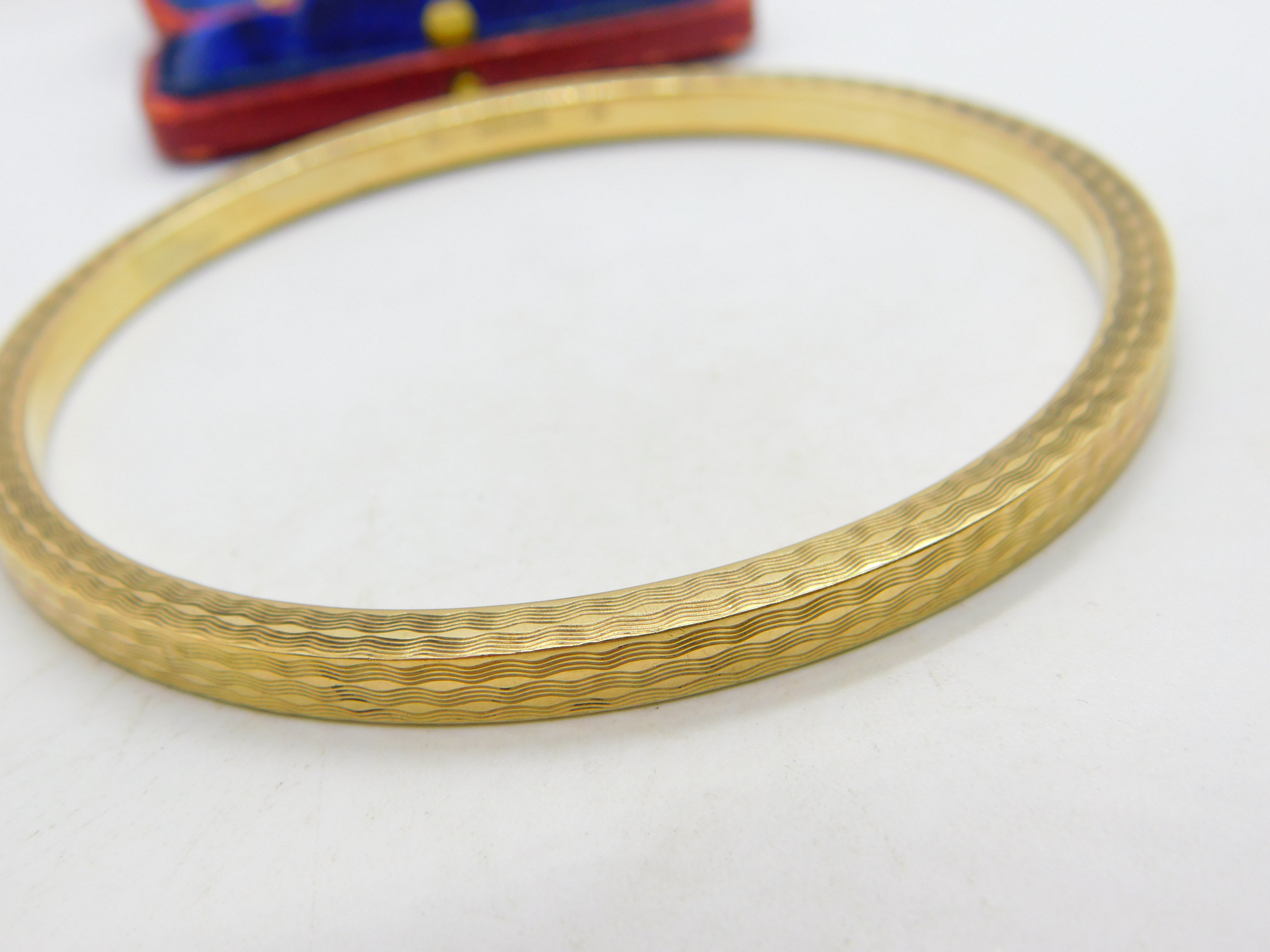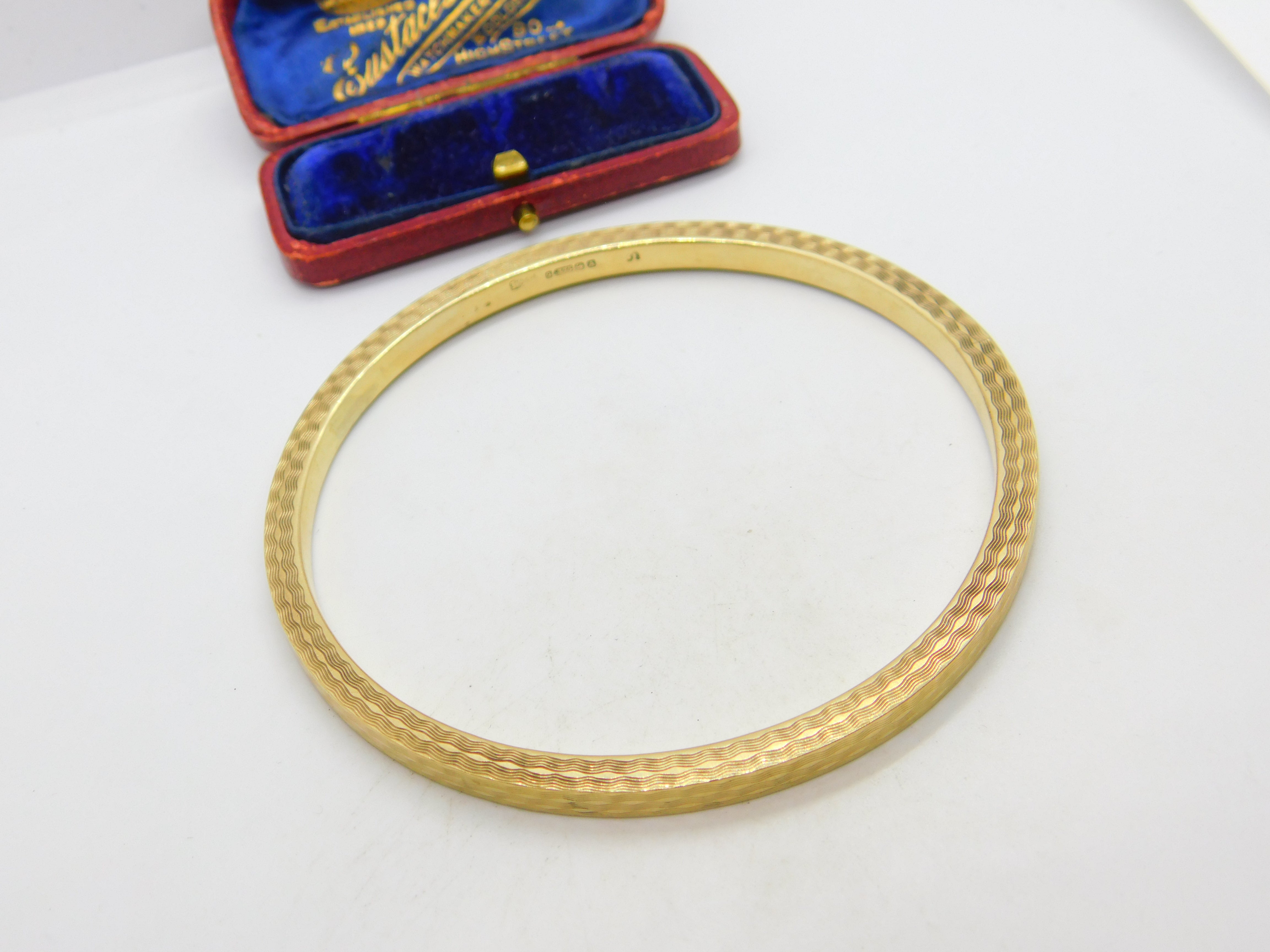 9ct Yellow Gold Engine Turned 'Slave' Bangle Bracelet 1925 Birmingham Antique