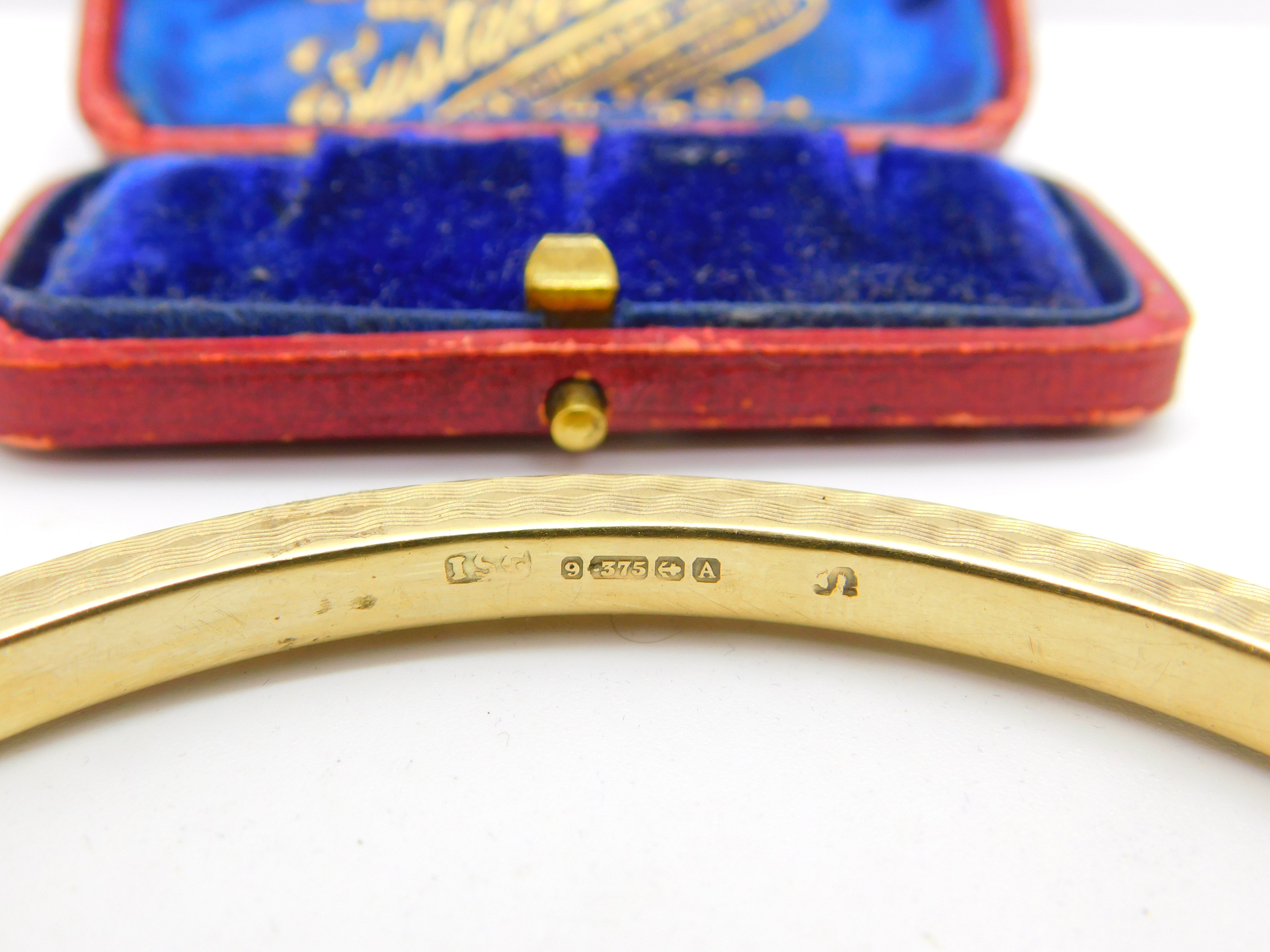 Details: A fantastic and wonderfully designed antique art deco 9ct yellow gold engine turned slave bangle bracelet with lovely detailing hallmarked Birmingham 1925 to the interior. This is a wonderful item that would make a perfect gift or addition to any collection. The BOX pictured is for PRESENTATION ONLY and is NOT included in the listings but used to frame the pictures unless specifically stated otherwise.