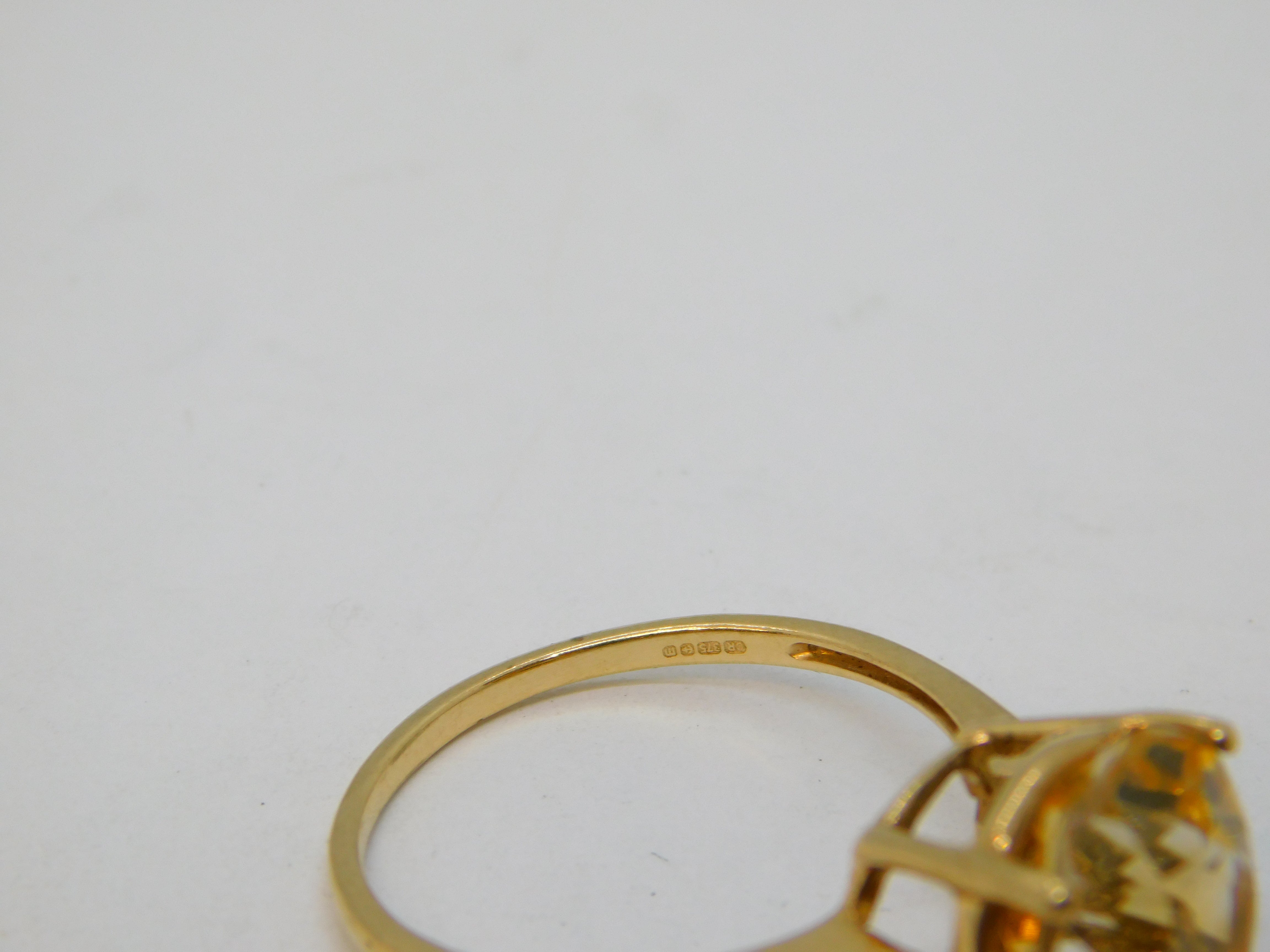 9ct Yellow Gold & Faceted Citrine Cocktail Ring Vintage 2011 Birmingham