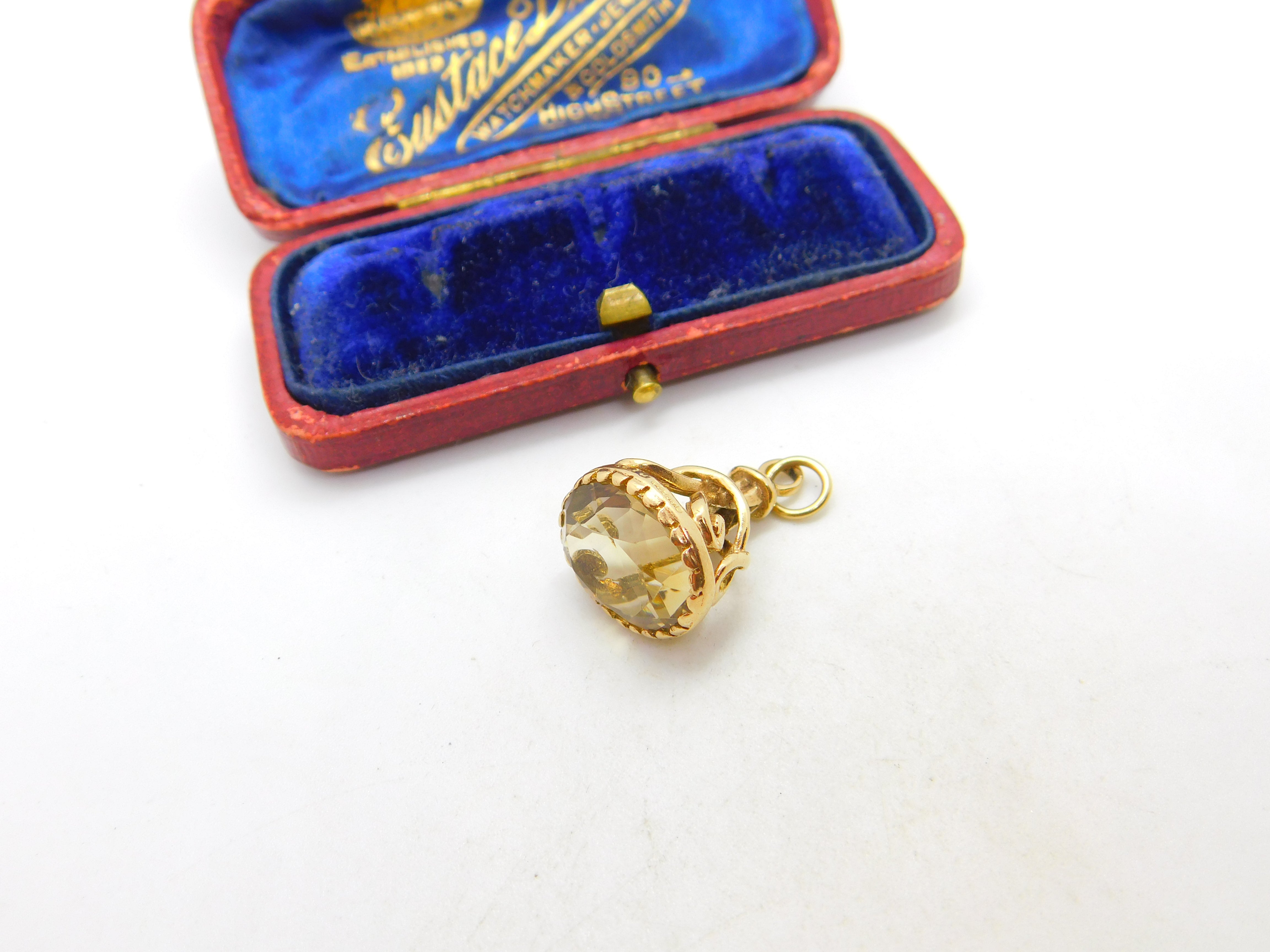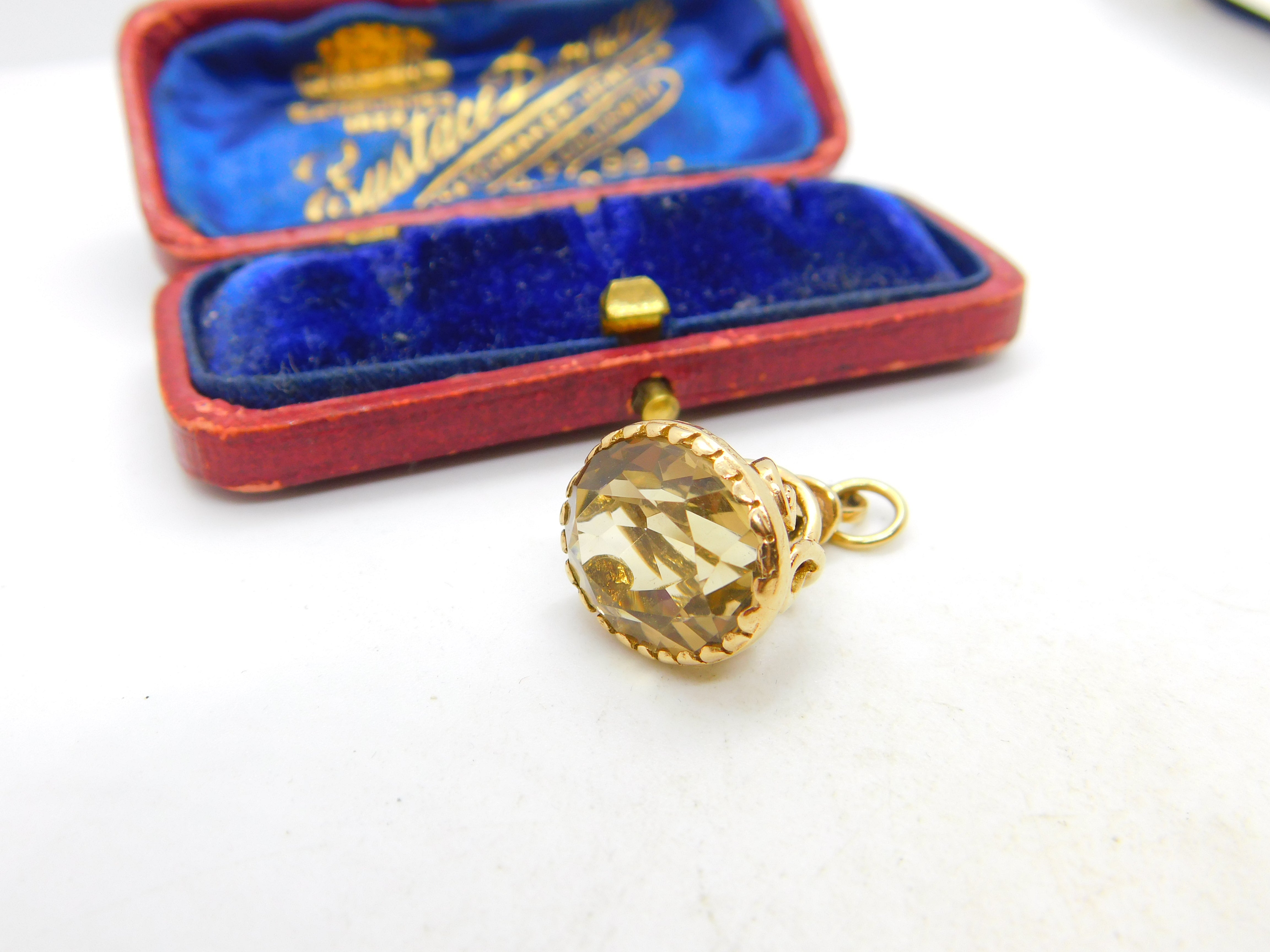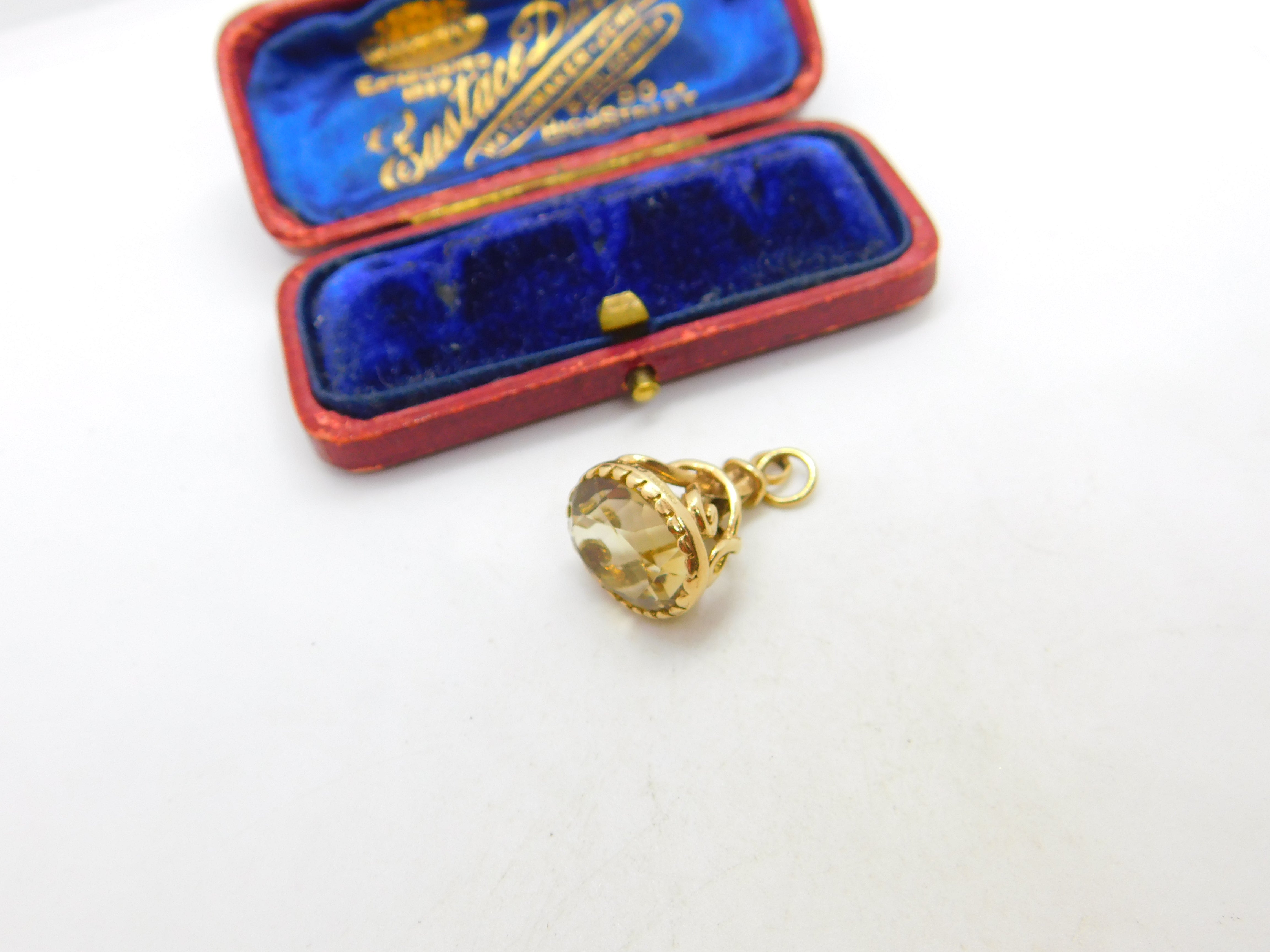 9ct Yellow Gold Faceted Citrine Set Fob Seal Pendant Vintage 1983 London