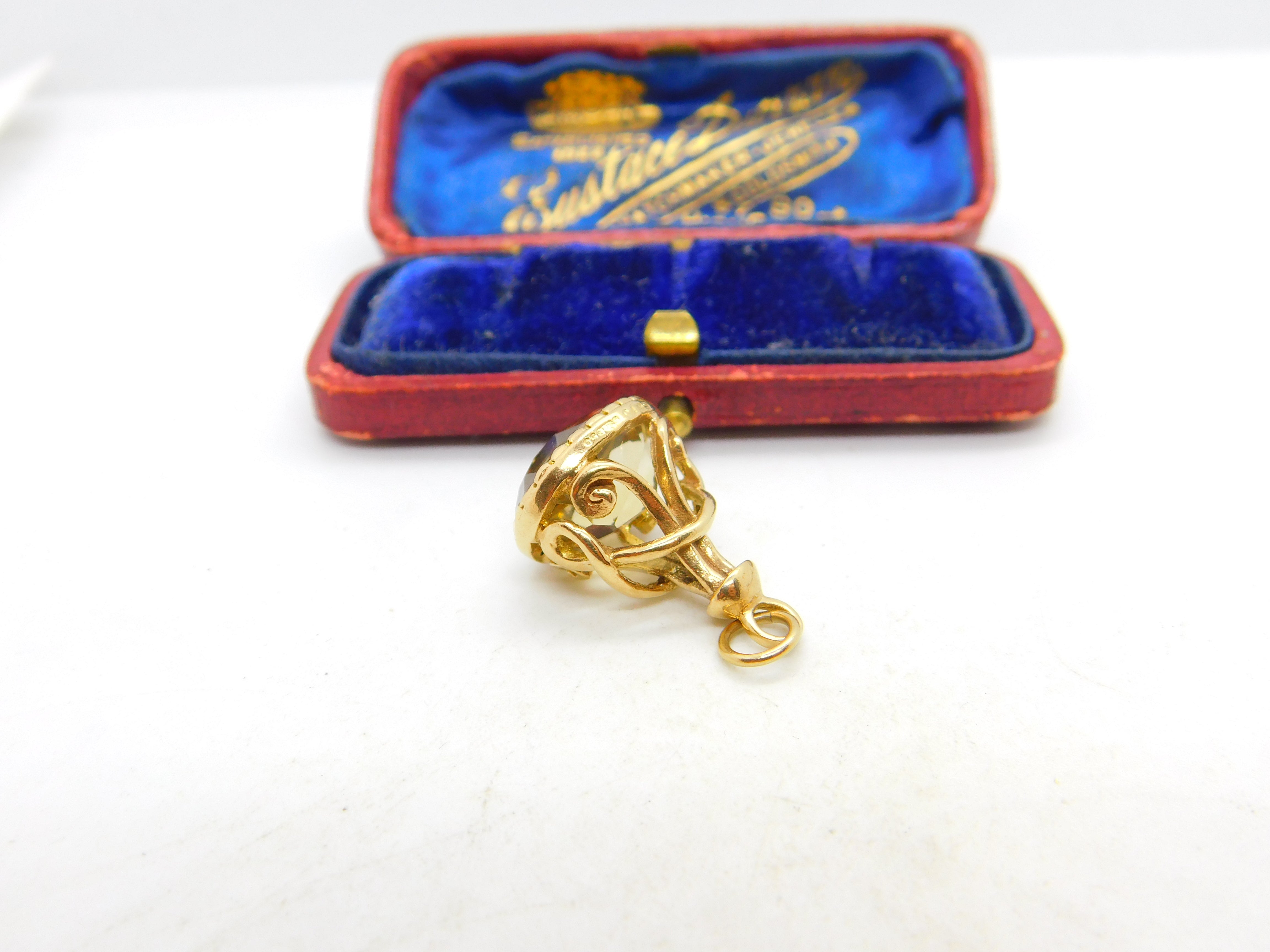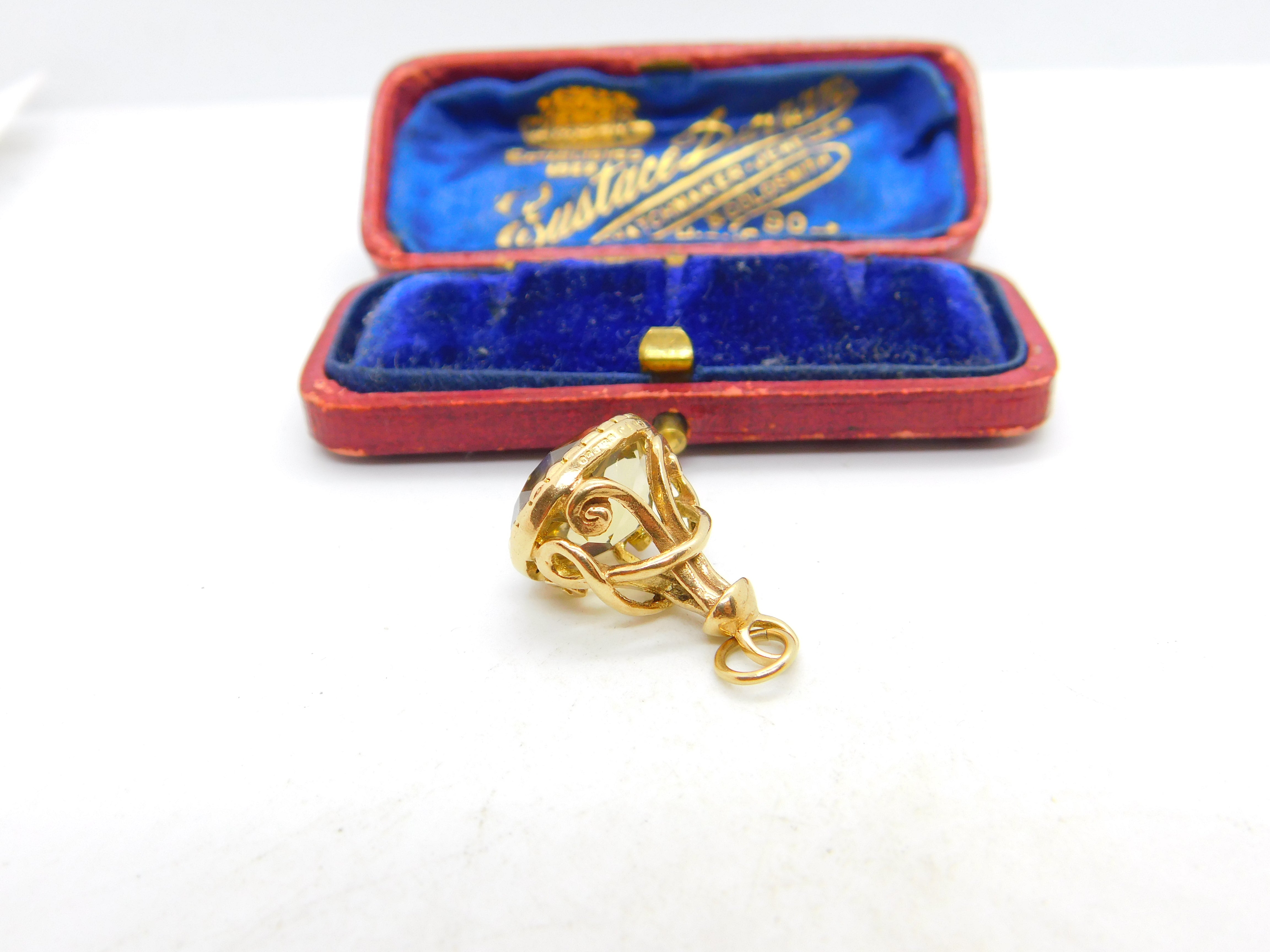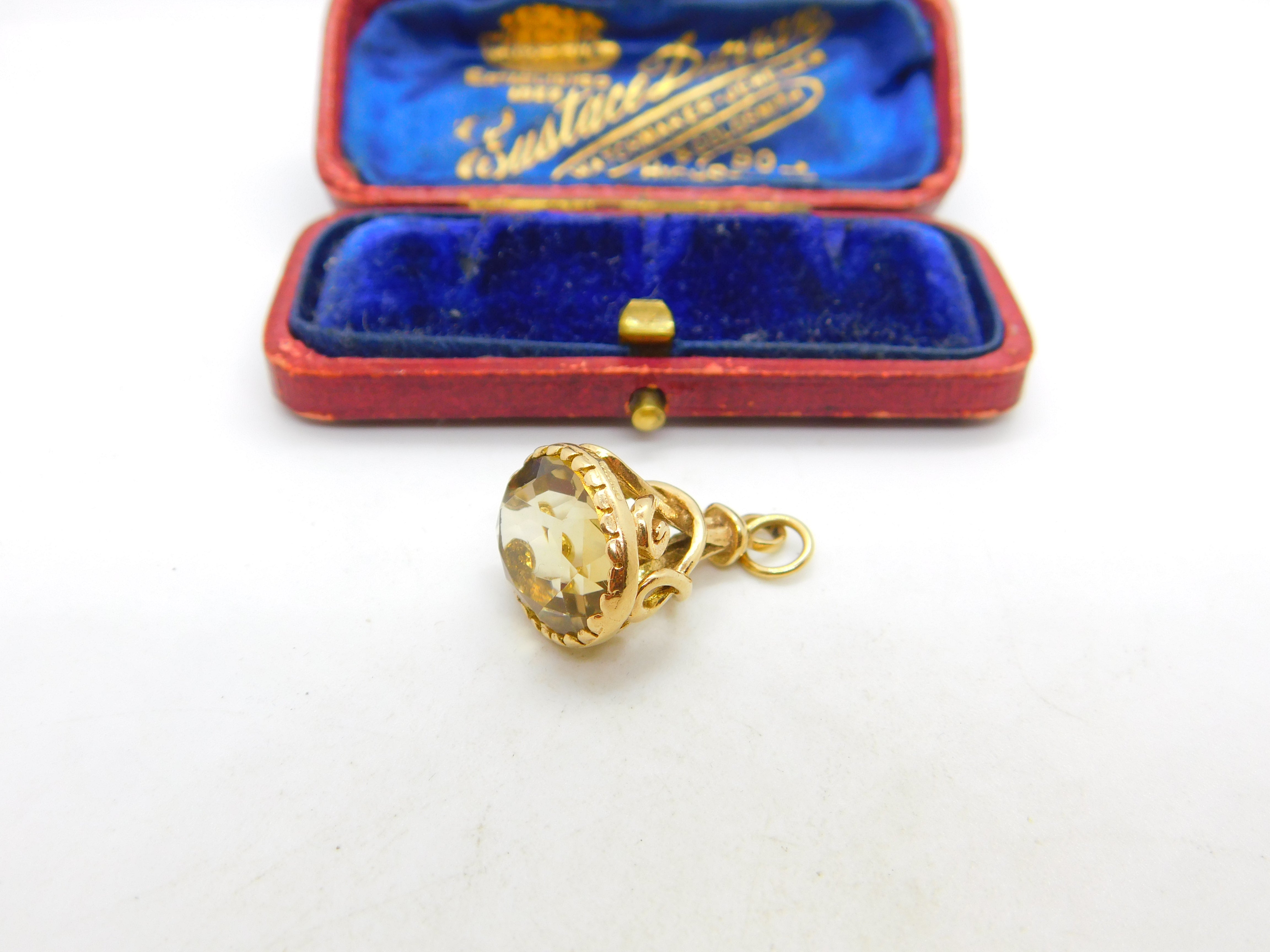 9ct Yellow Gold Faceted Citrine Set Fob Seal Pendant Vintage 1983 London
