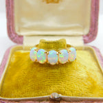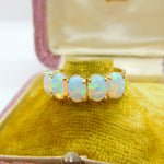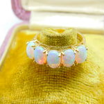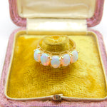 9ct Yellow Gold Five Stone Cabochon Opal Band Ring Vintage c1980