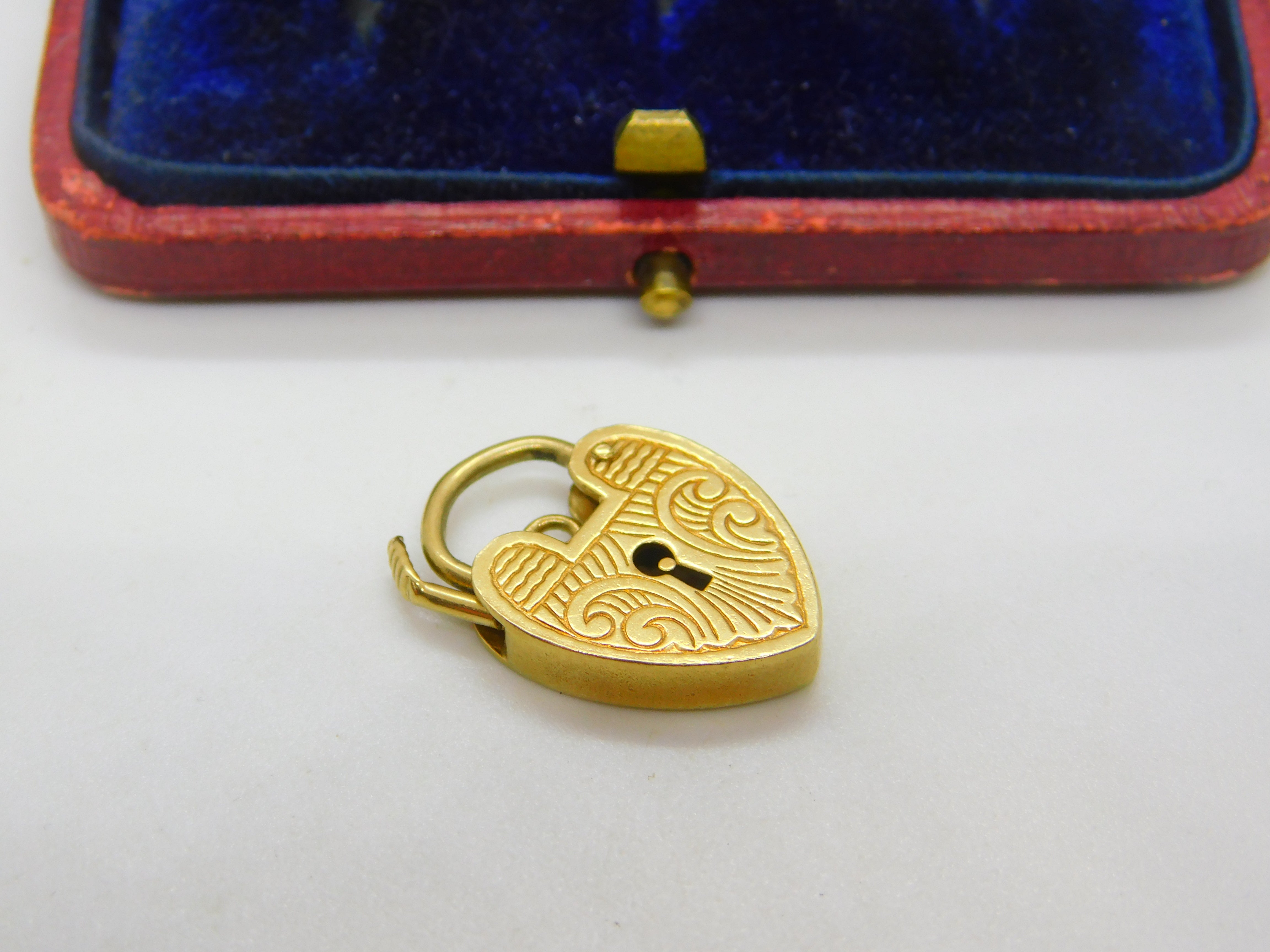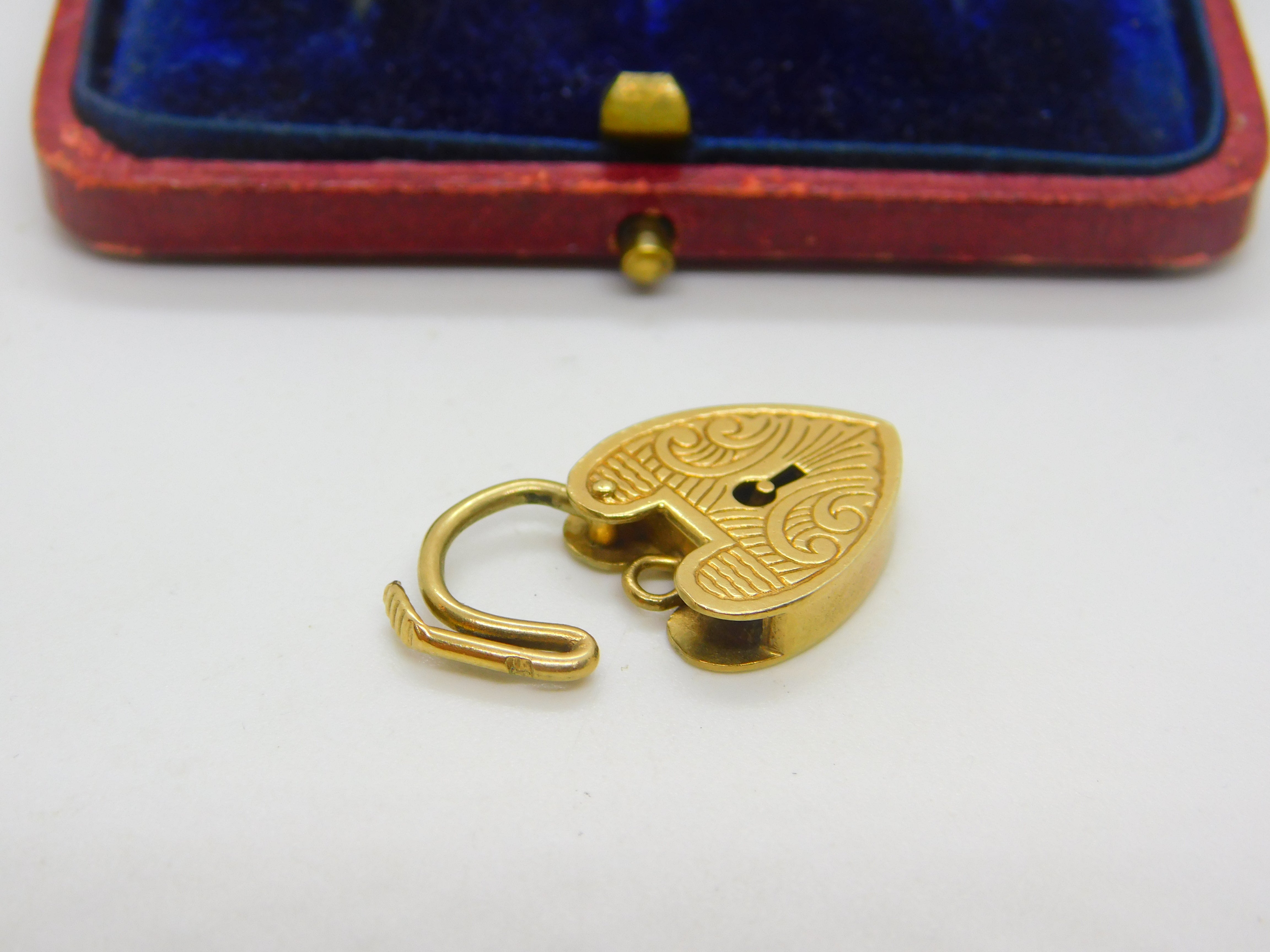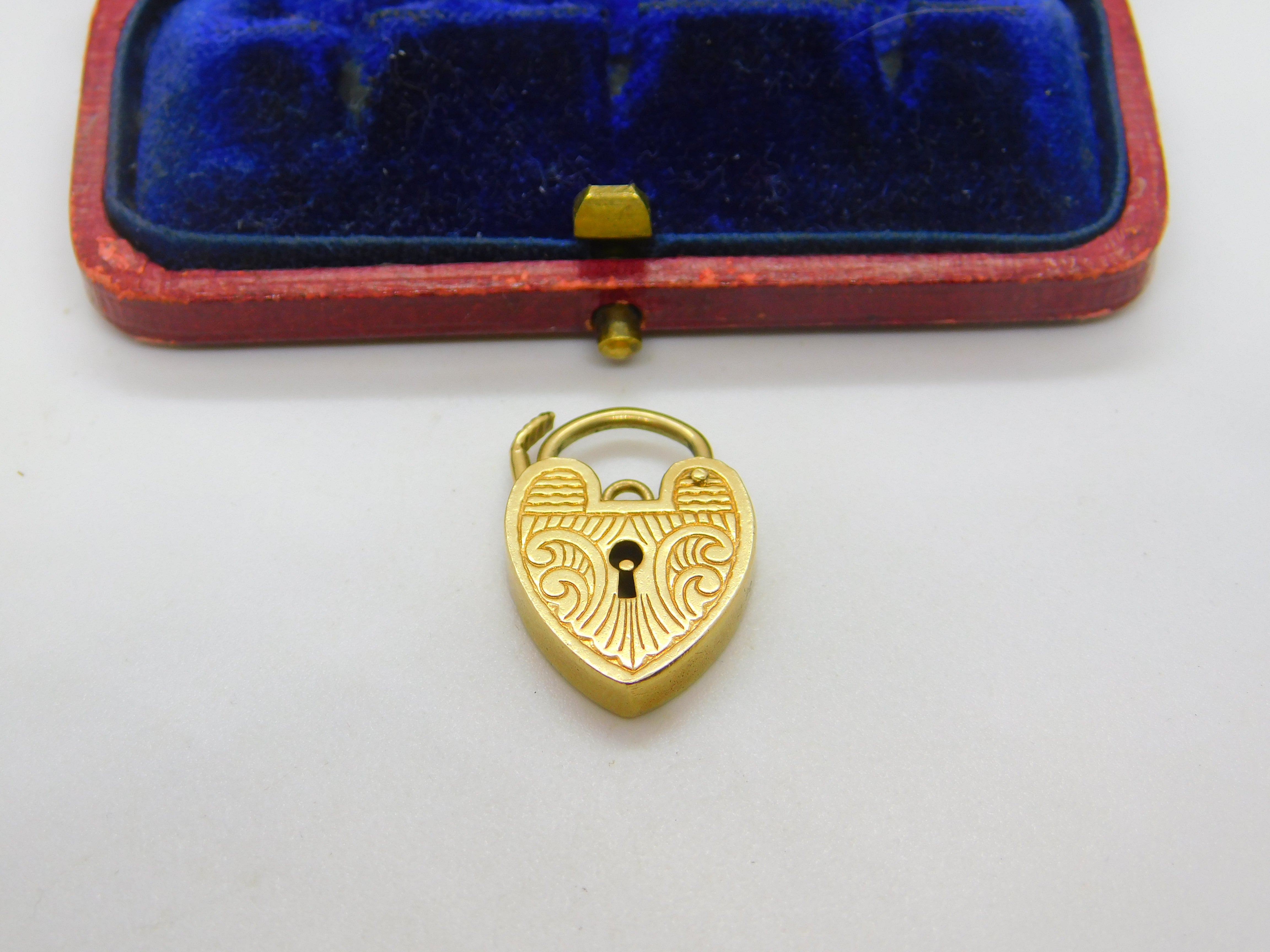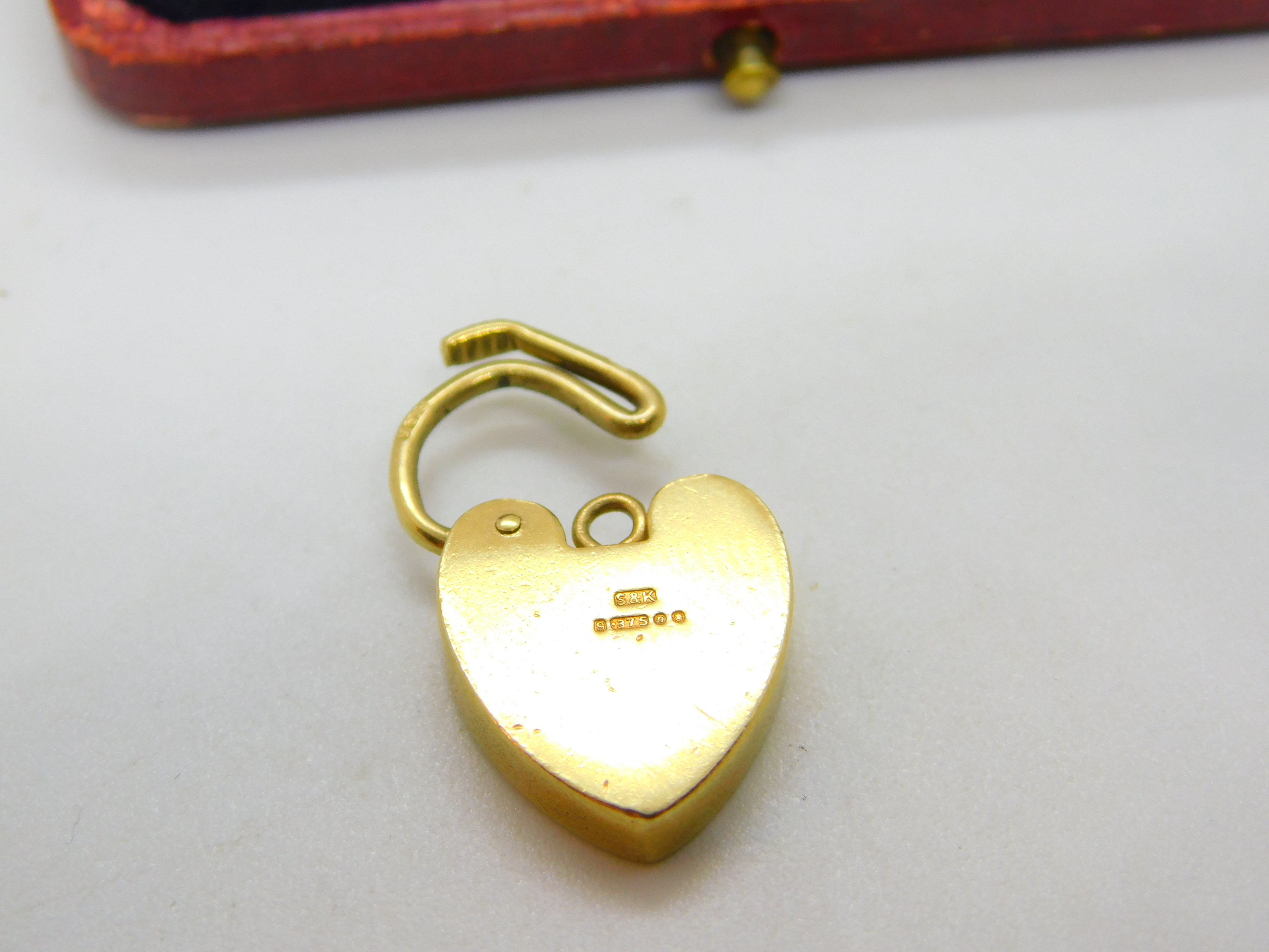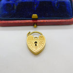 9ct Yellow Gold Floral Pattern Heart Lock Charm Bracelet Clasp 1968 London