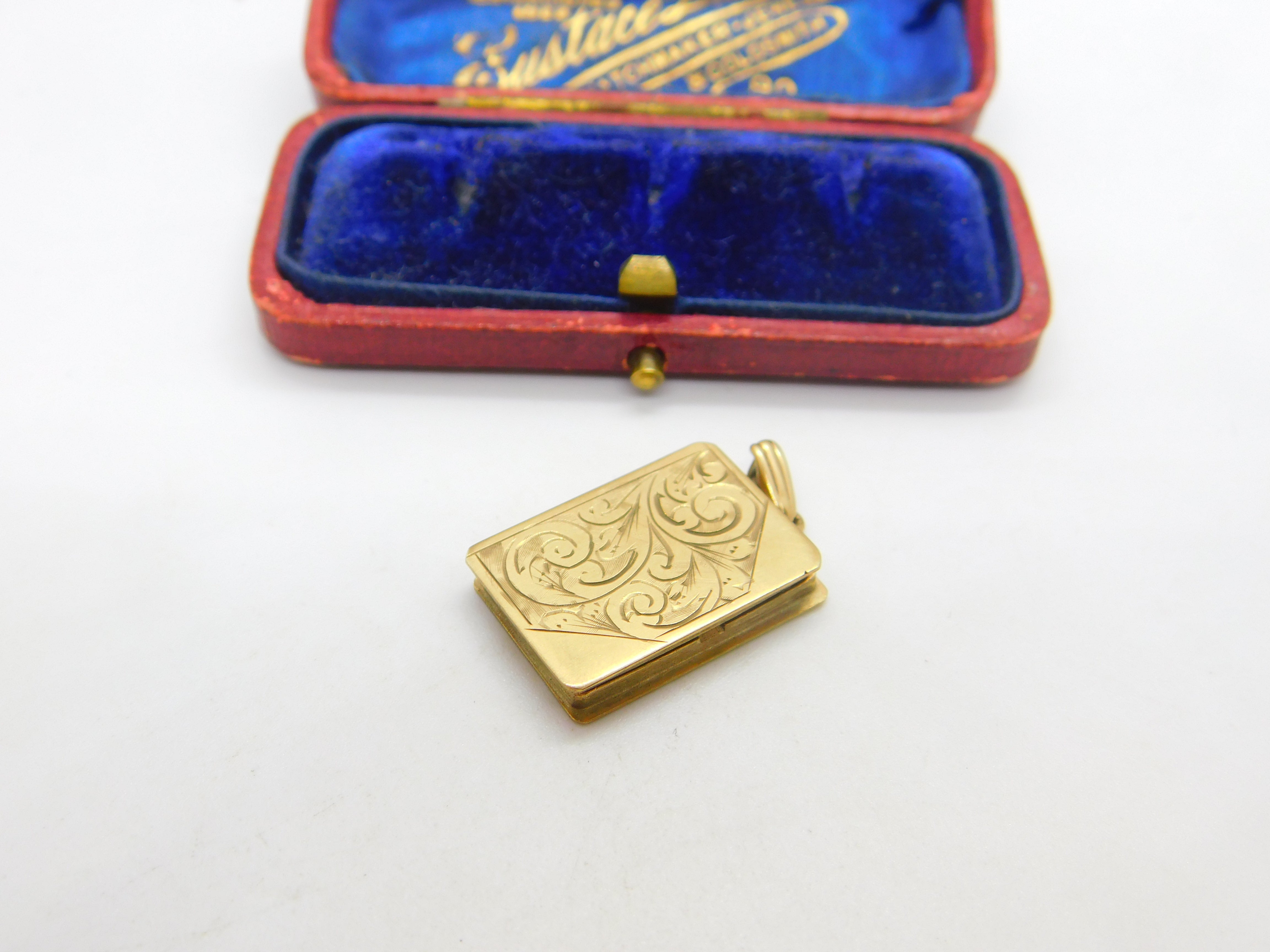 9ct Yellow Gold Floral Swirl Pattern Book Locket Pendant 1975 Birmingham Vintage