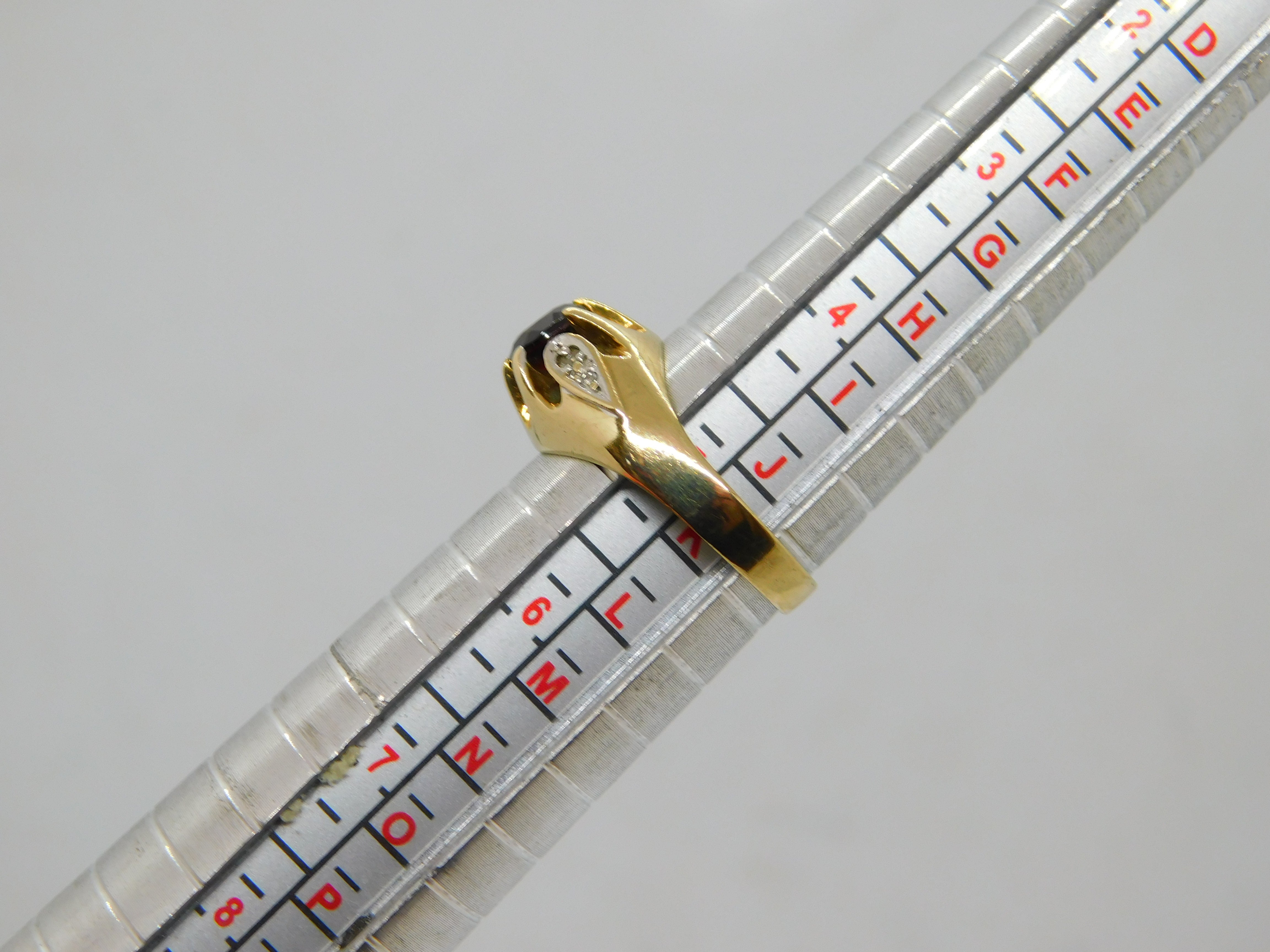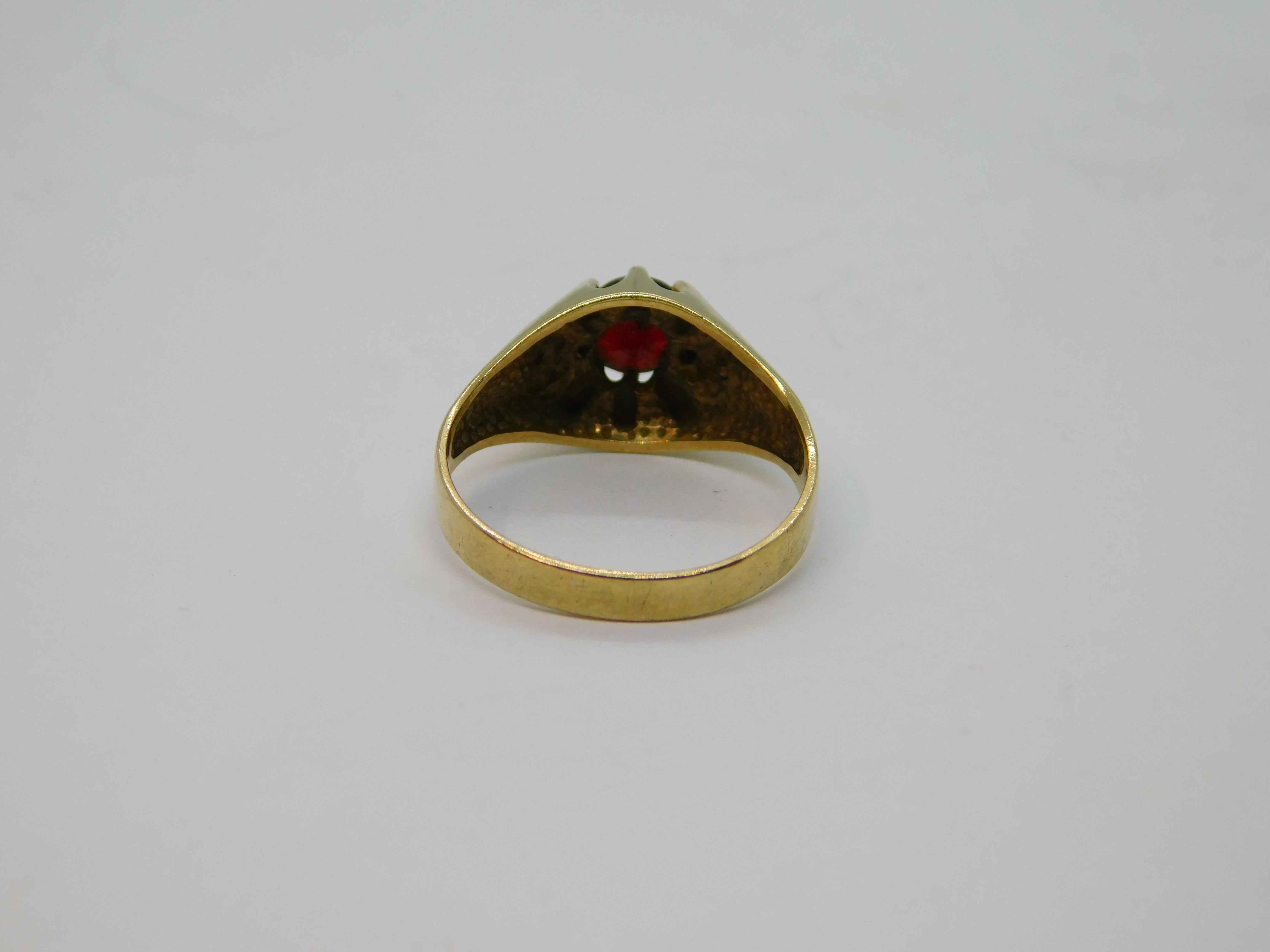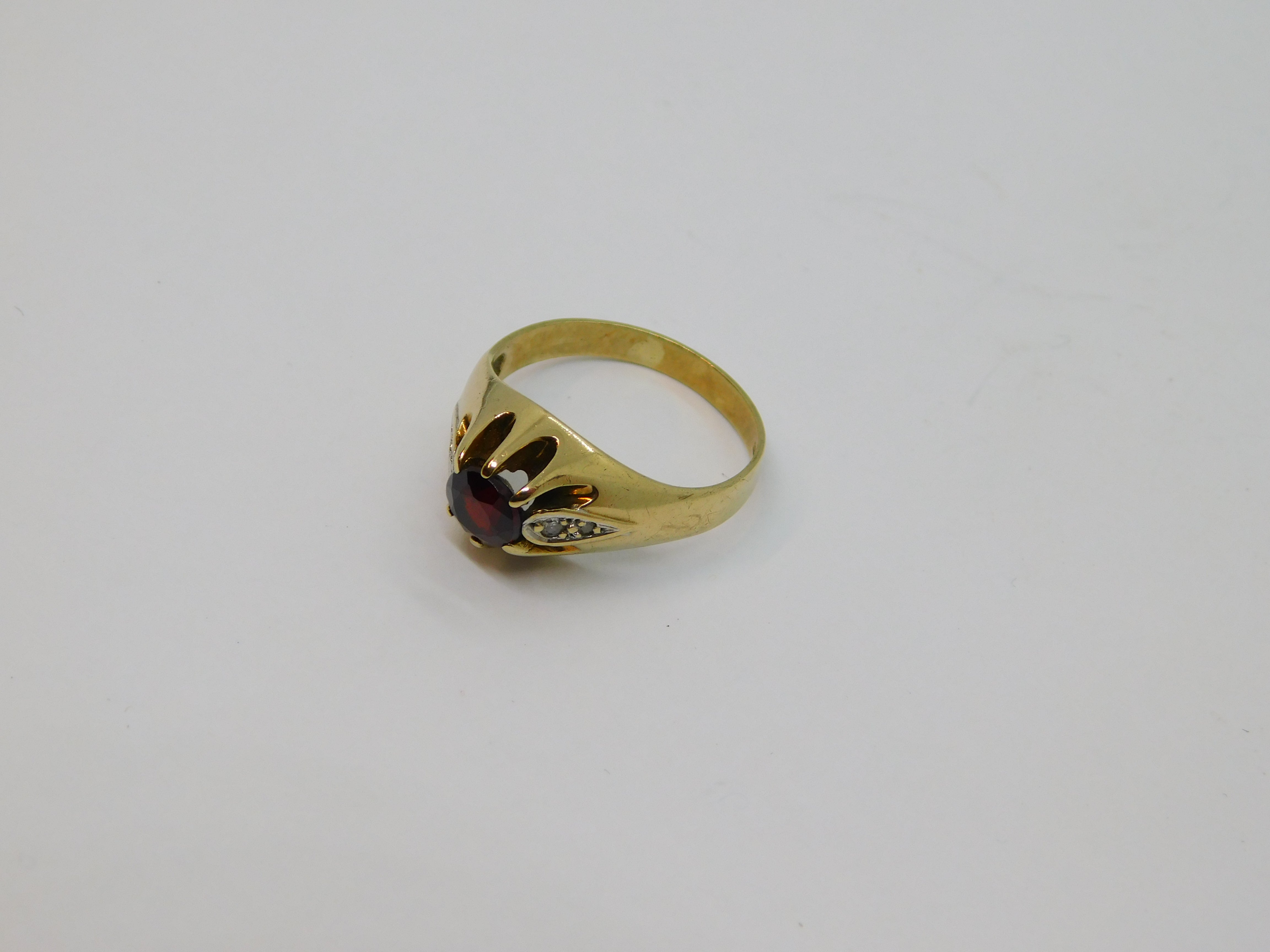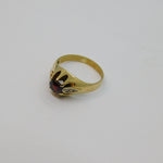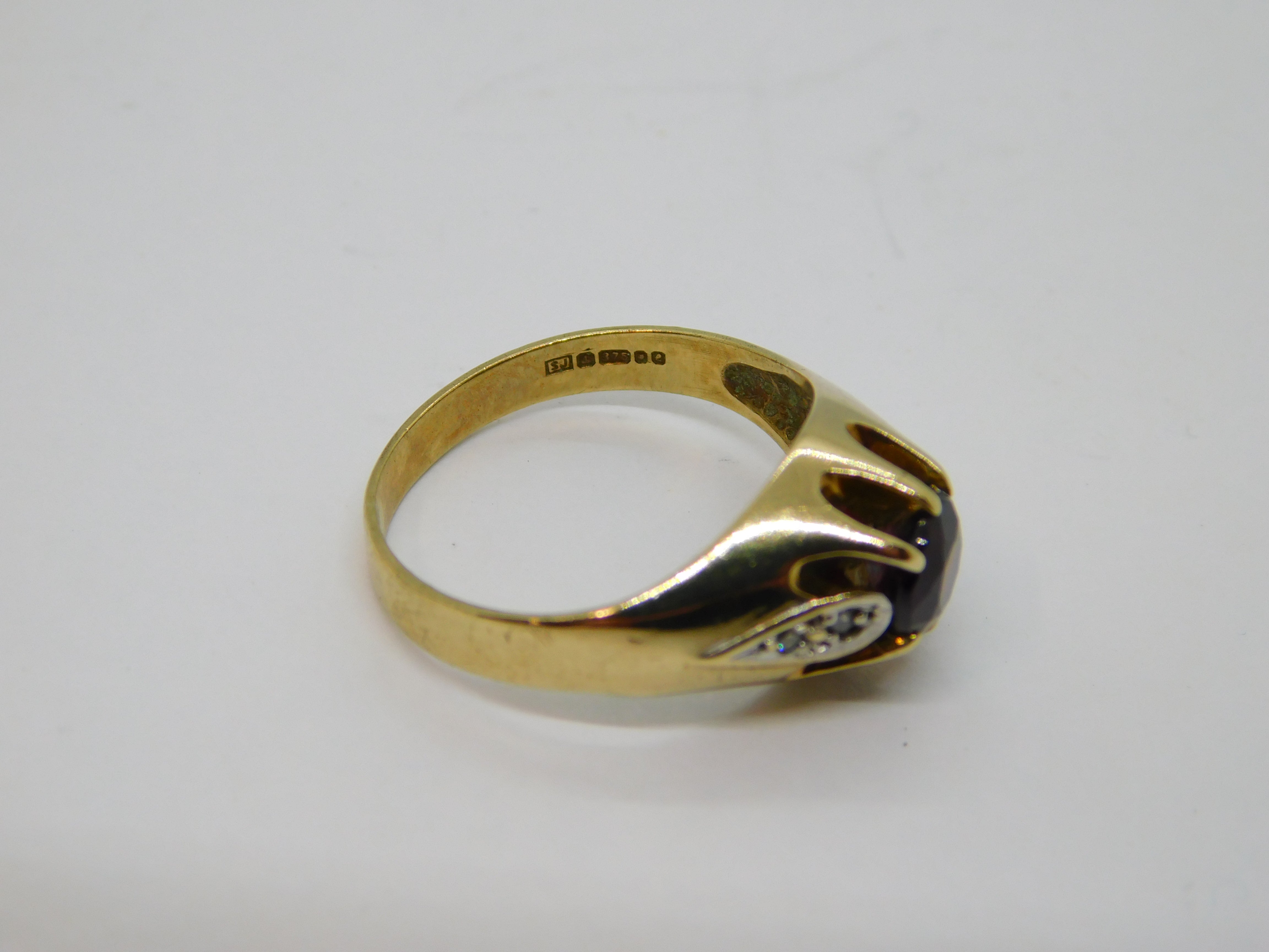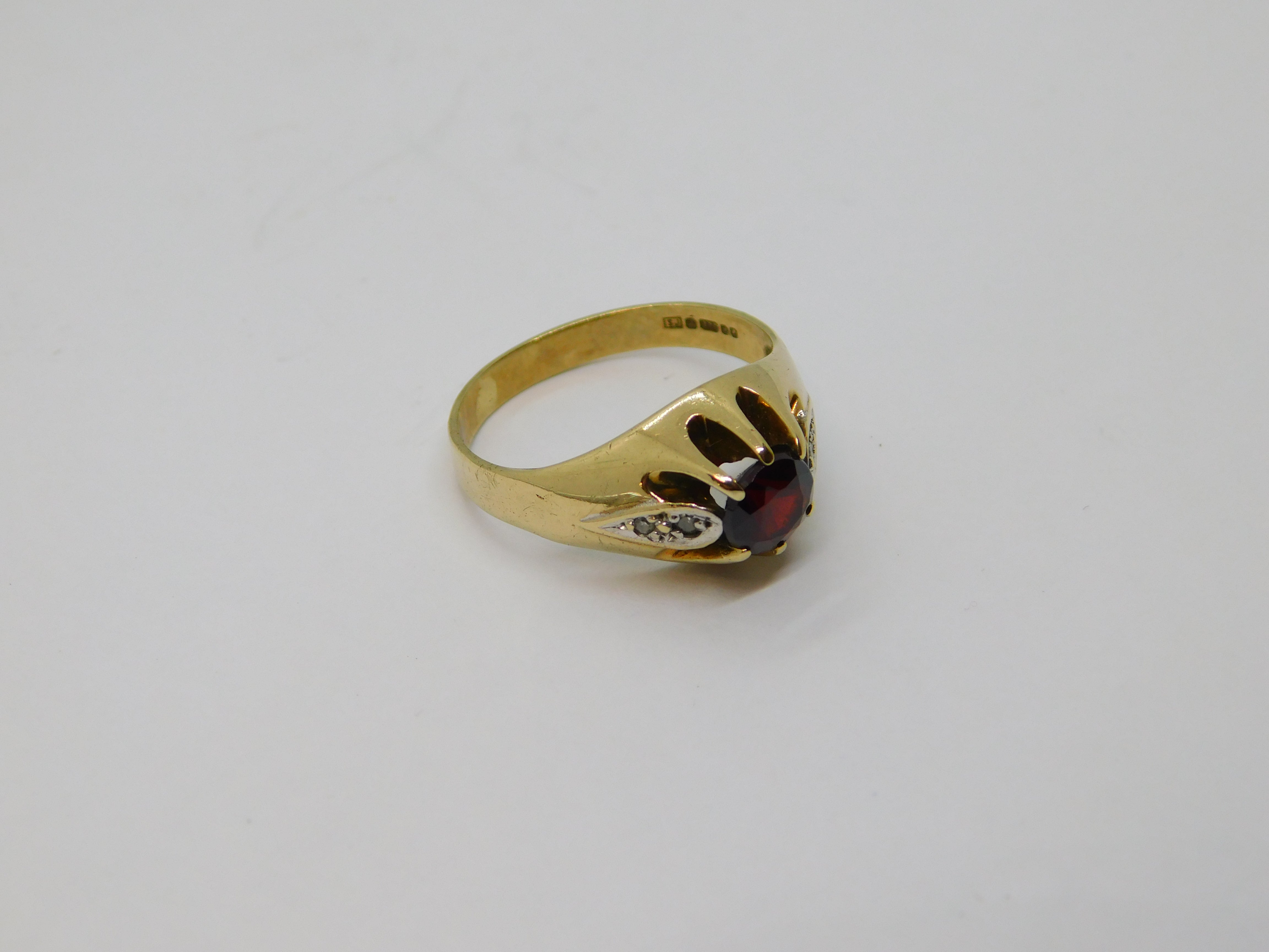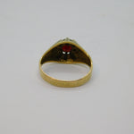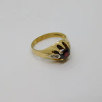 9ct Yellow Gold, Garnet & Diamond Gypsy Ring Vintage 1985 London